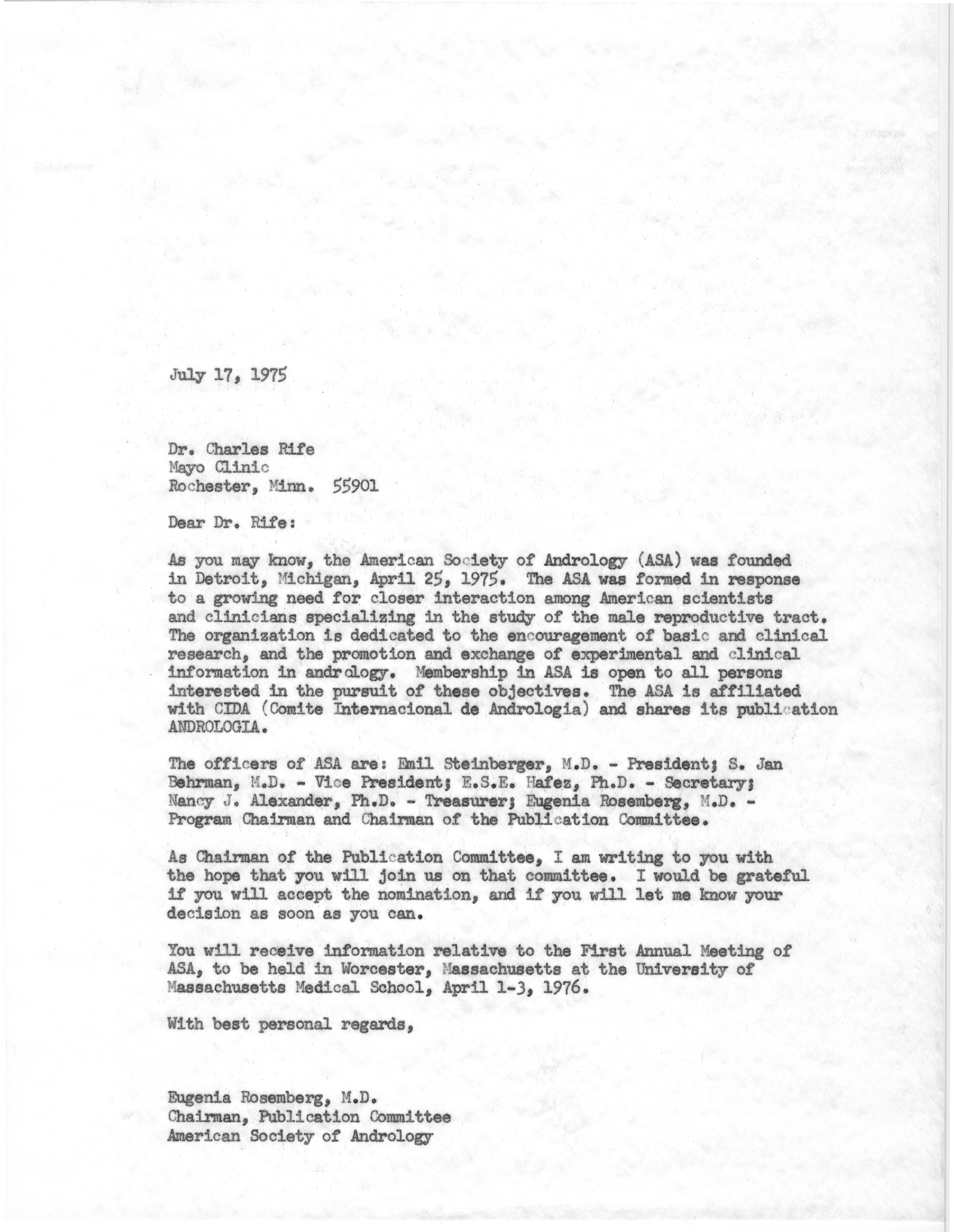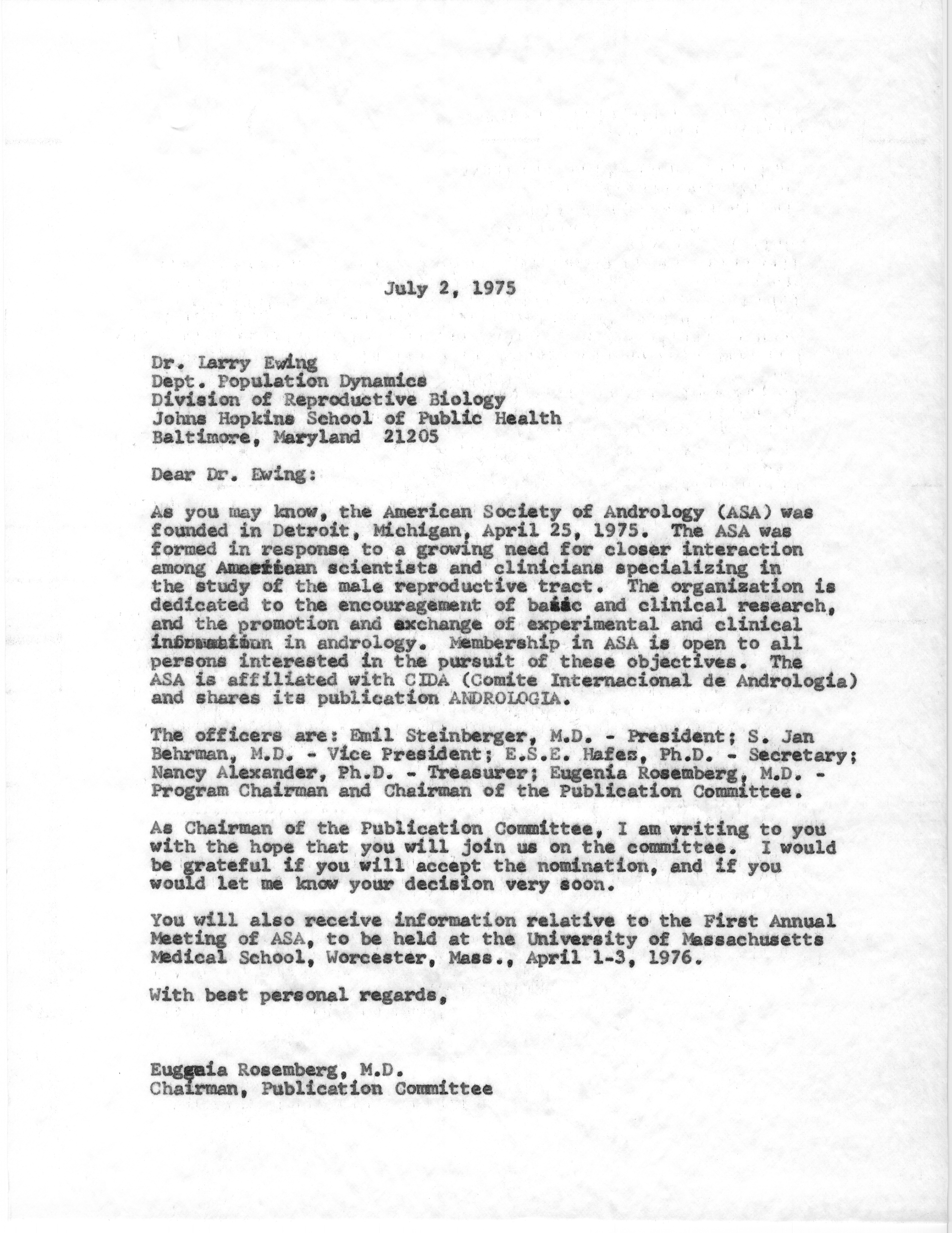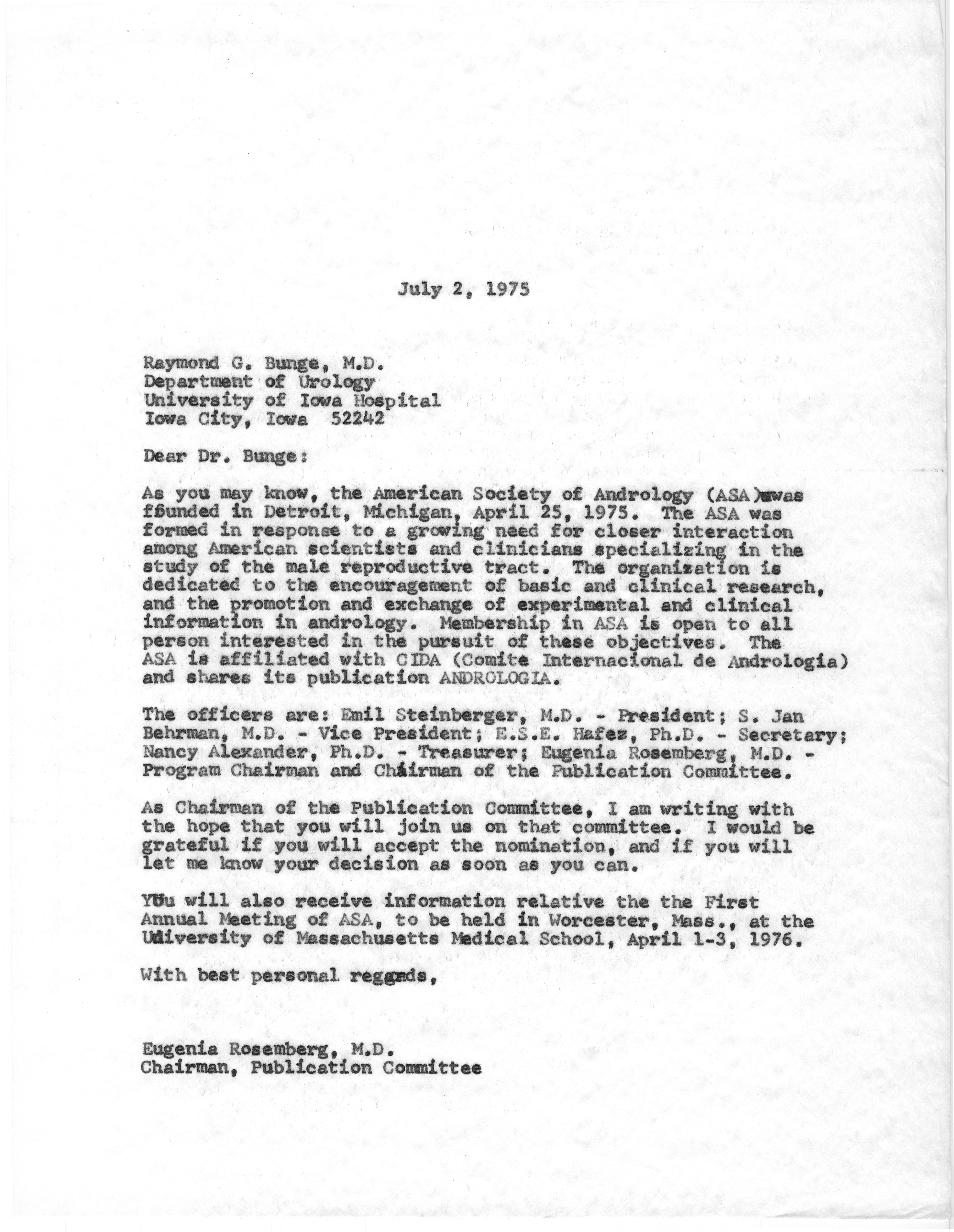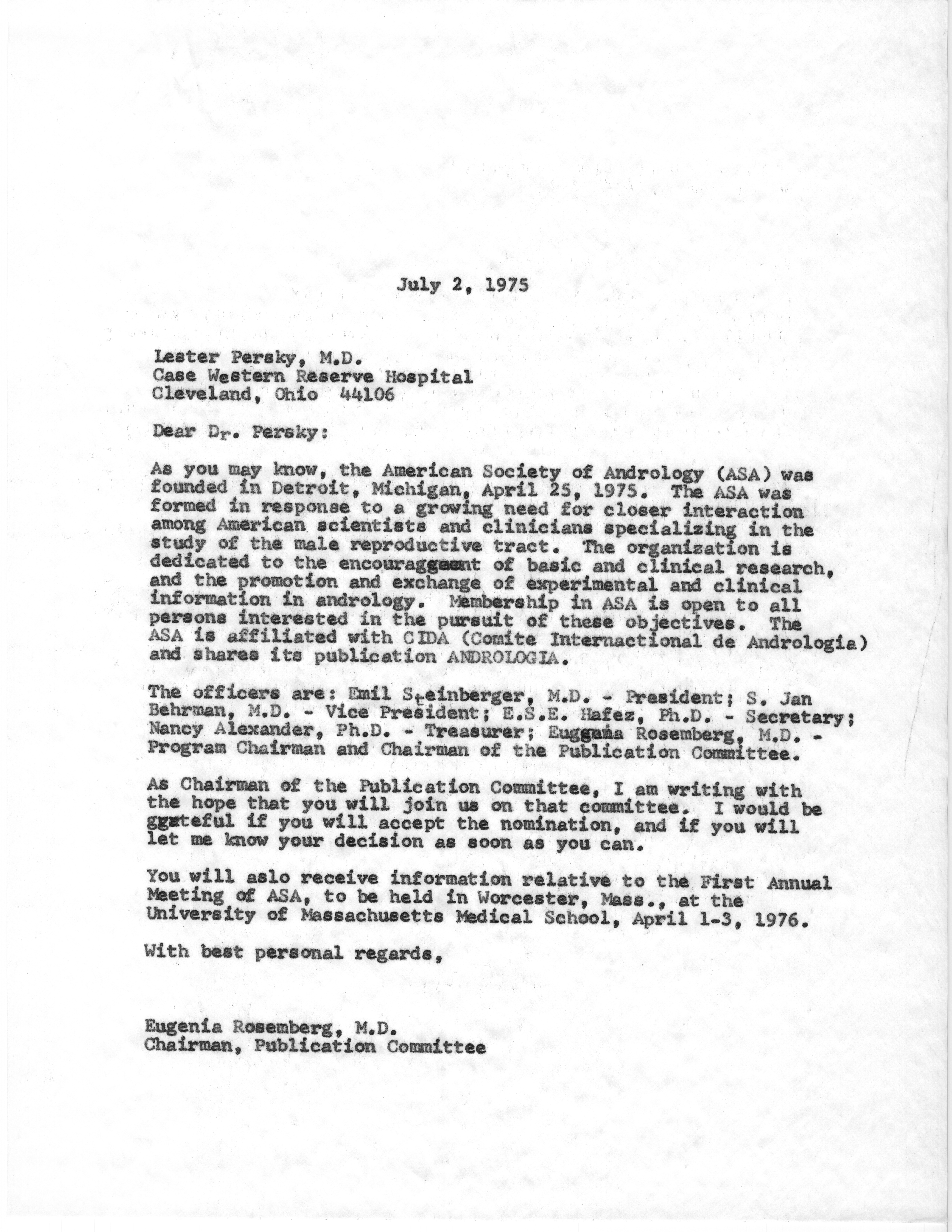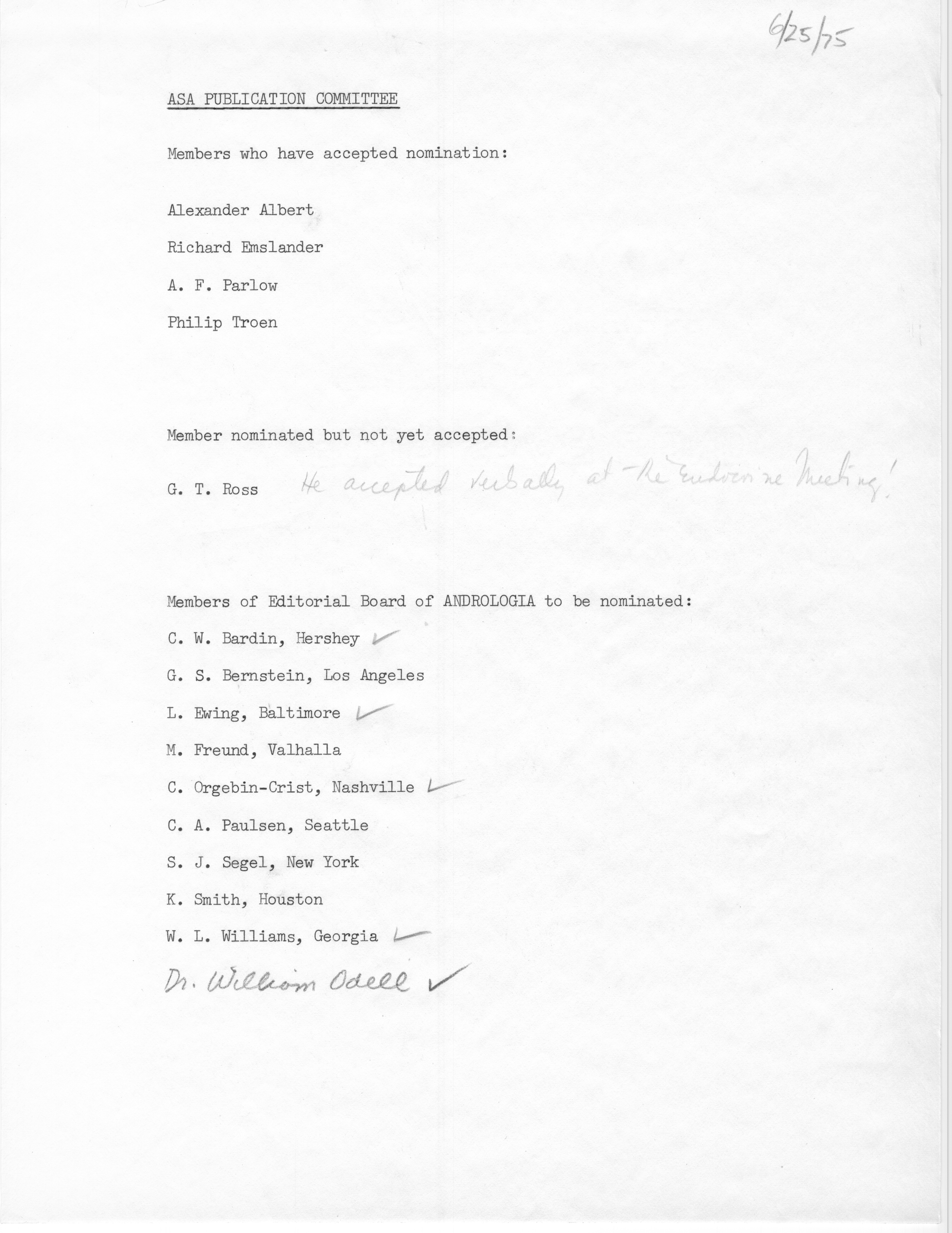 - "Publications Committee of the American Society of Andrology, 1975", American Society of Andrology Collection, Iowa State University Library Digital Collections