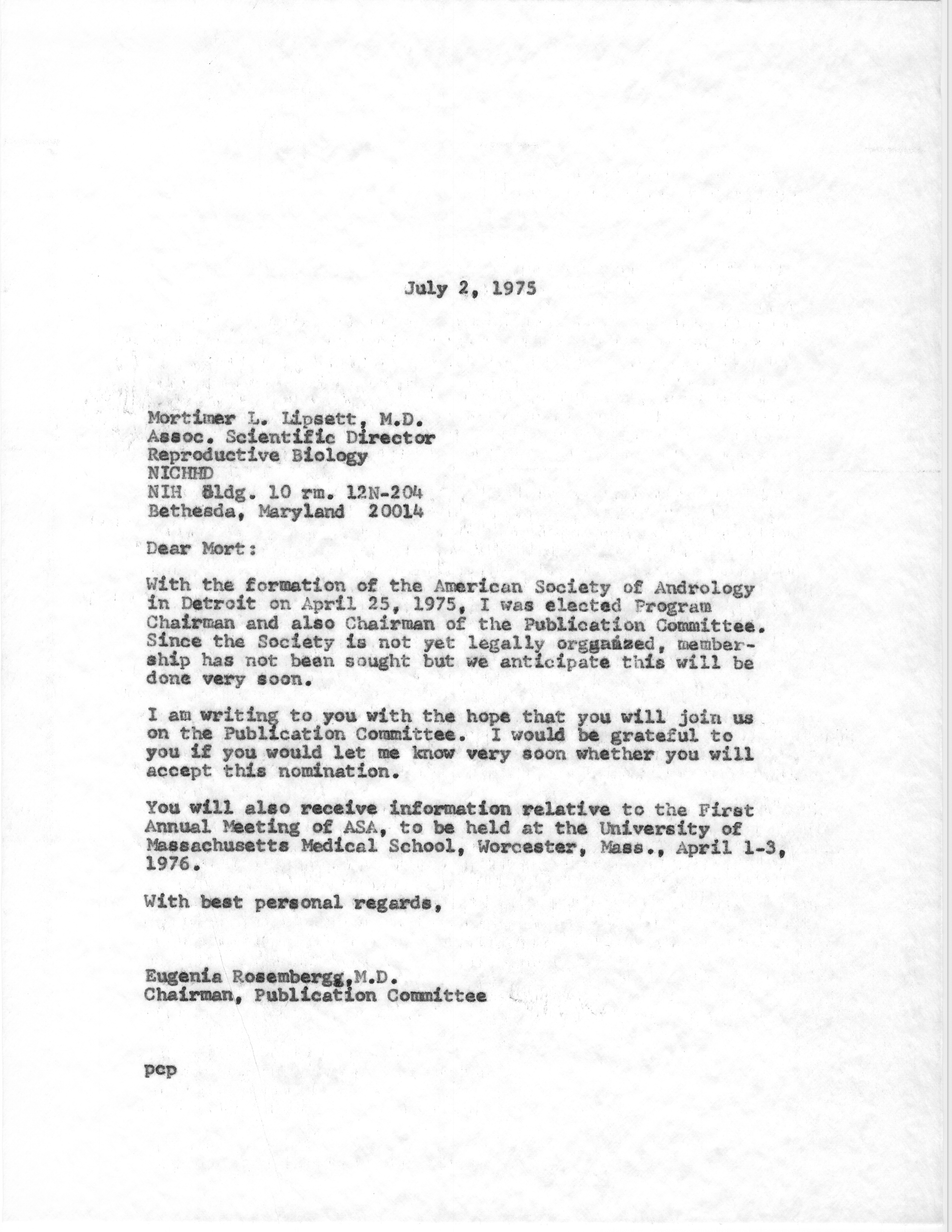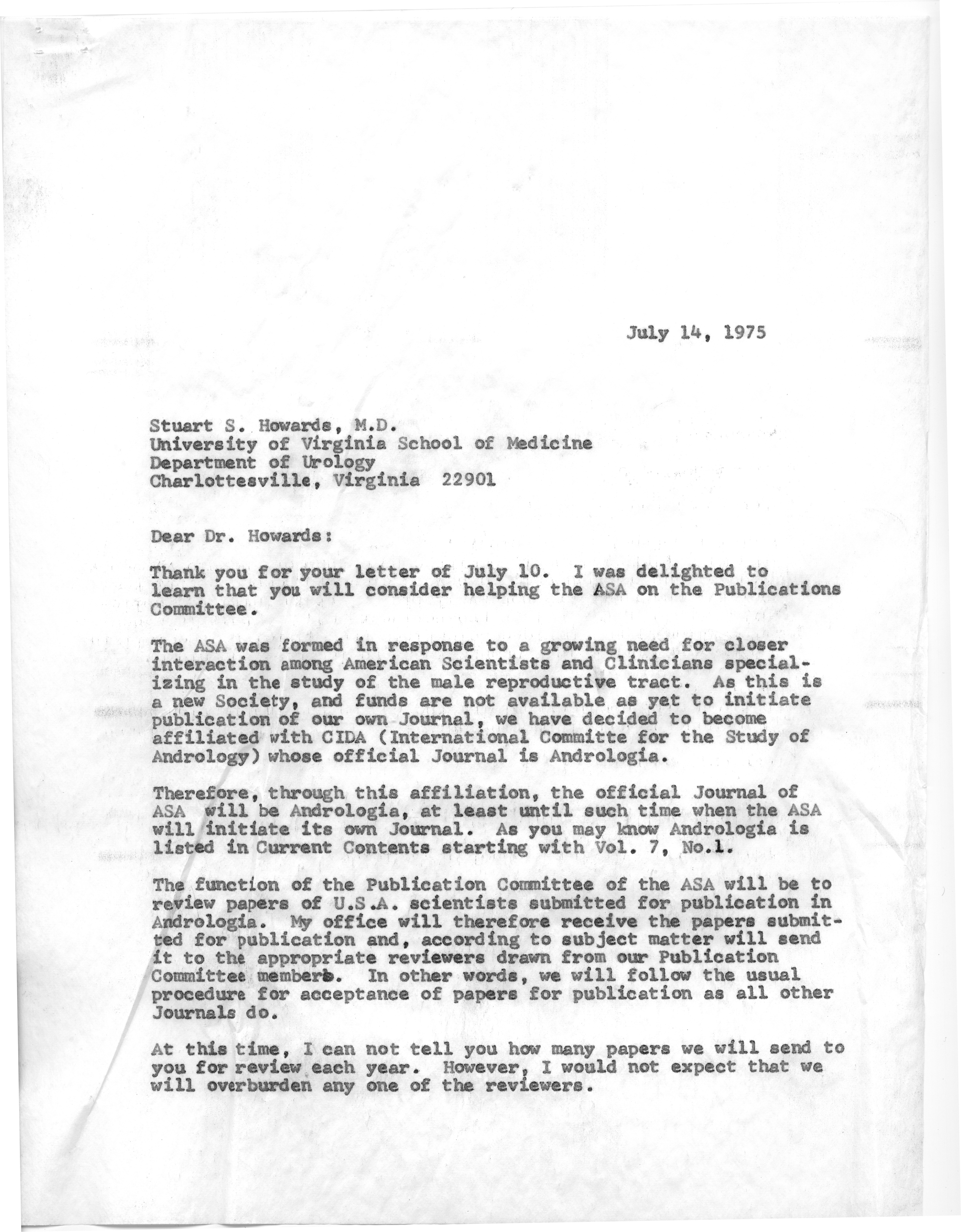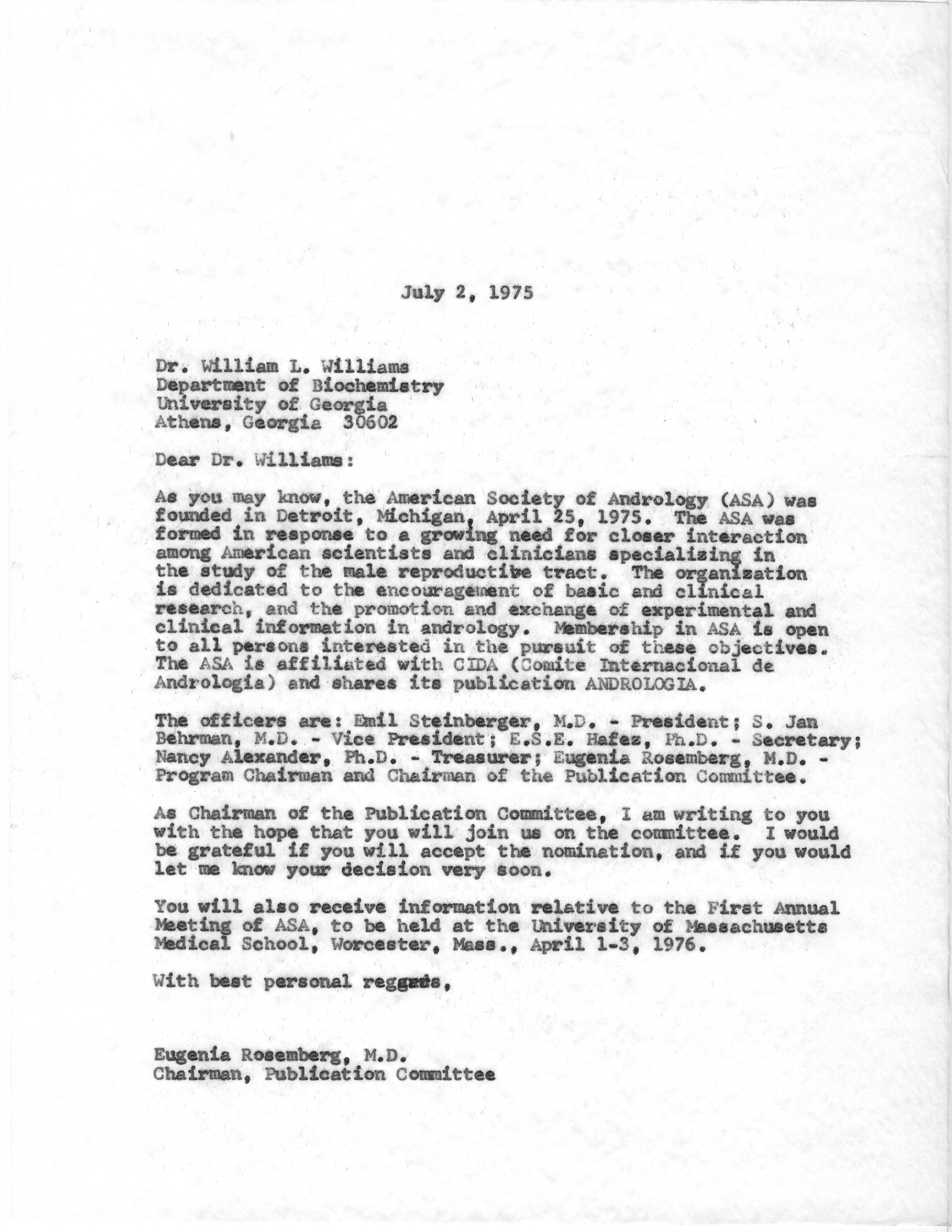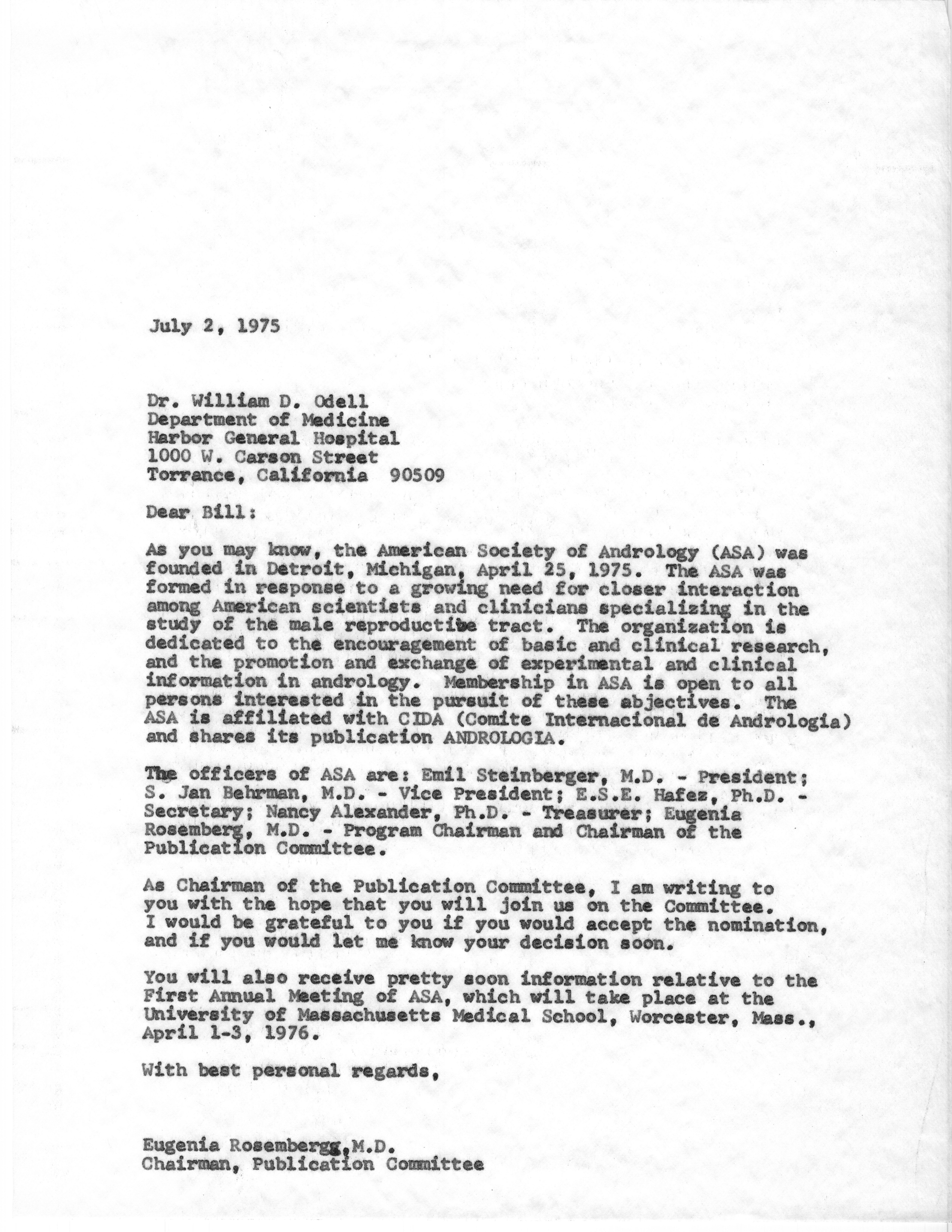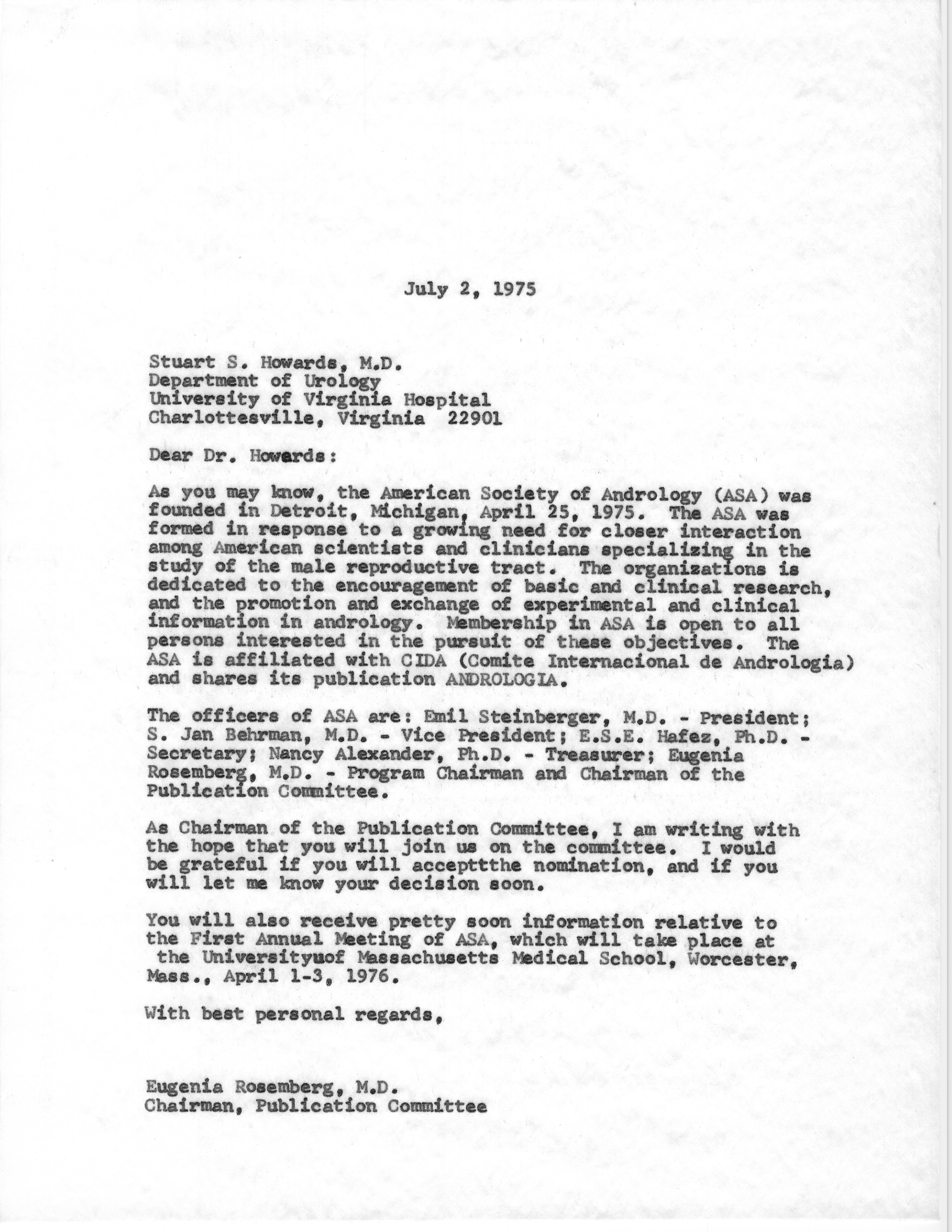 - "Publications Committee of the American Society of Andrology, 1975", American Society of Andrology Collection, Iowa State University Library Digital Collections