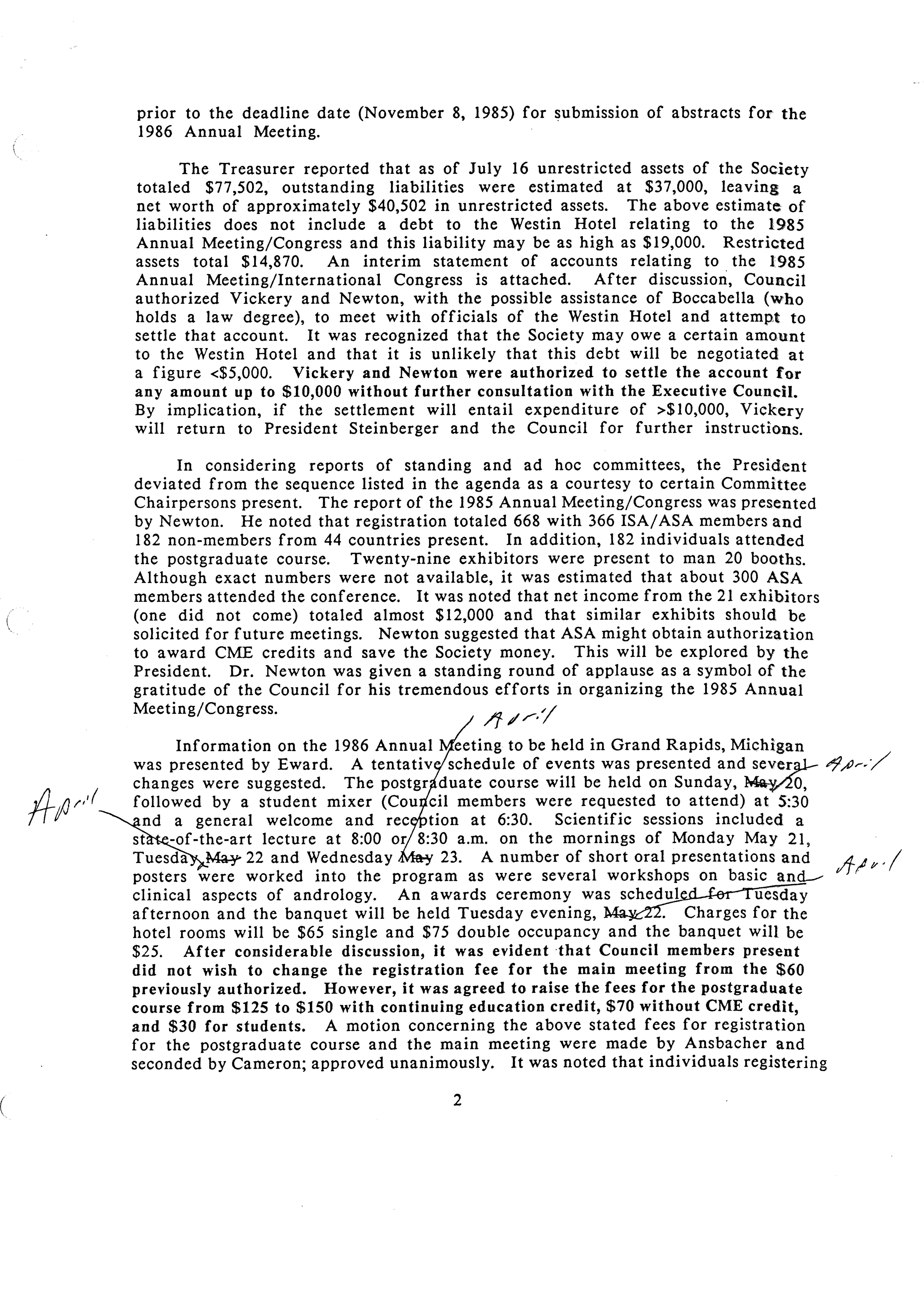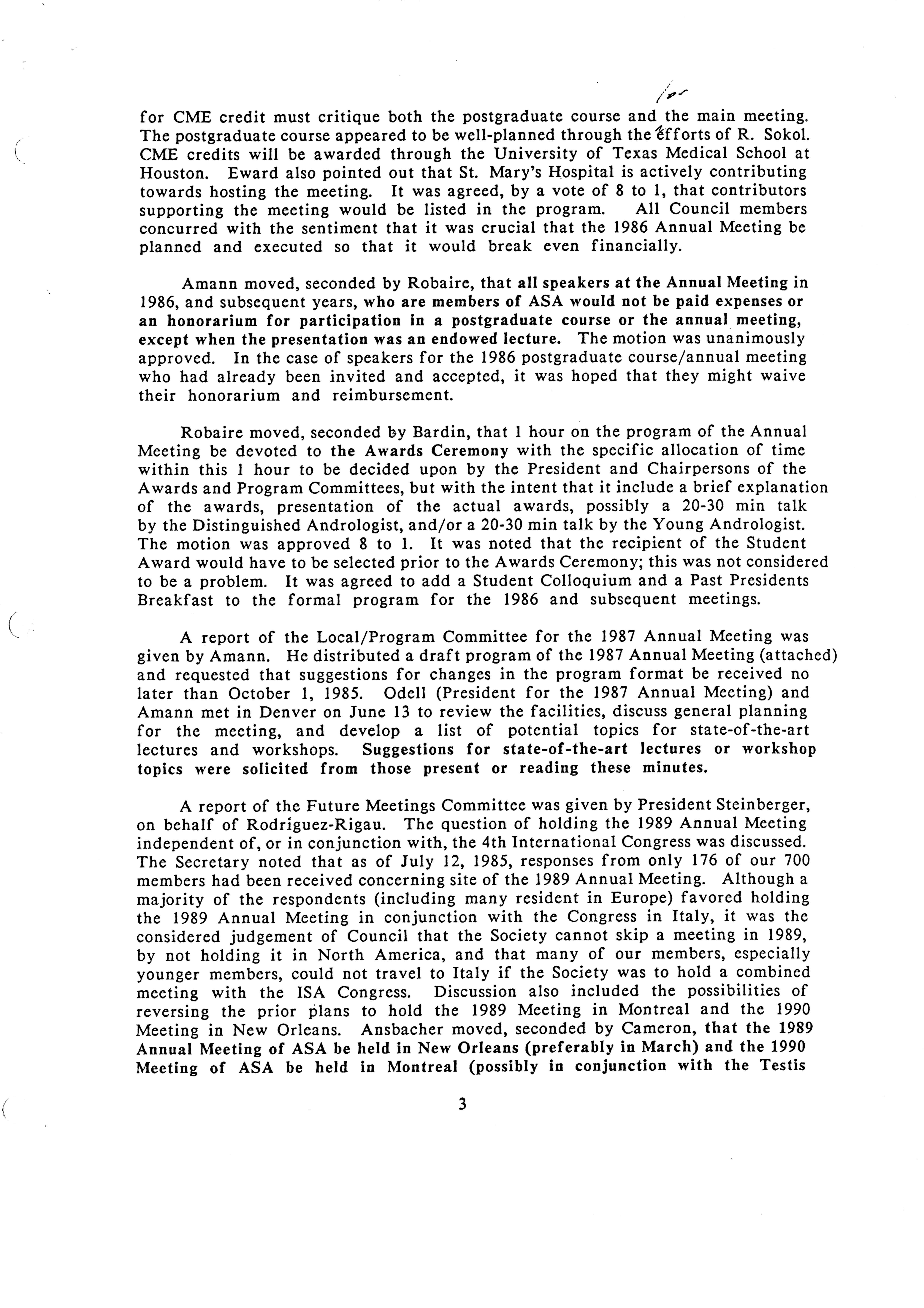 - Executive Council Meeting of the American Society of Andrology, July 23, 1985