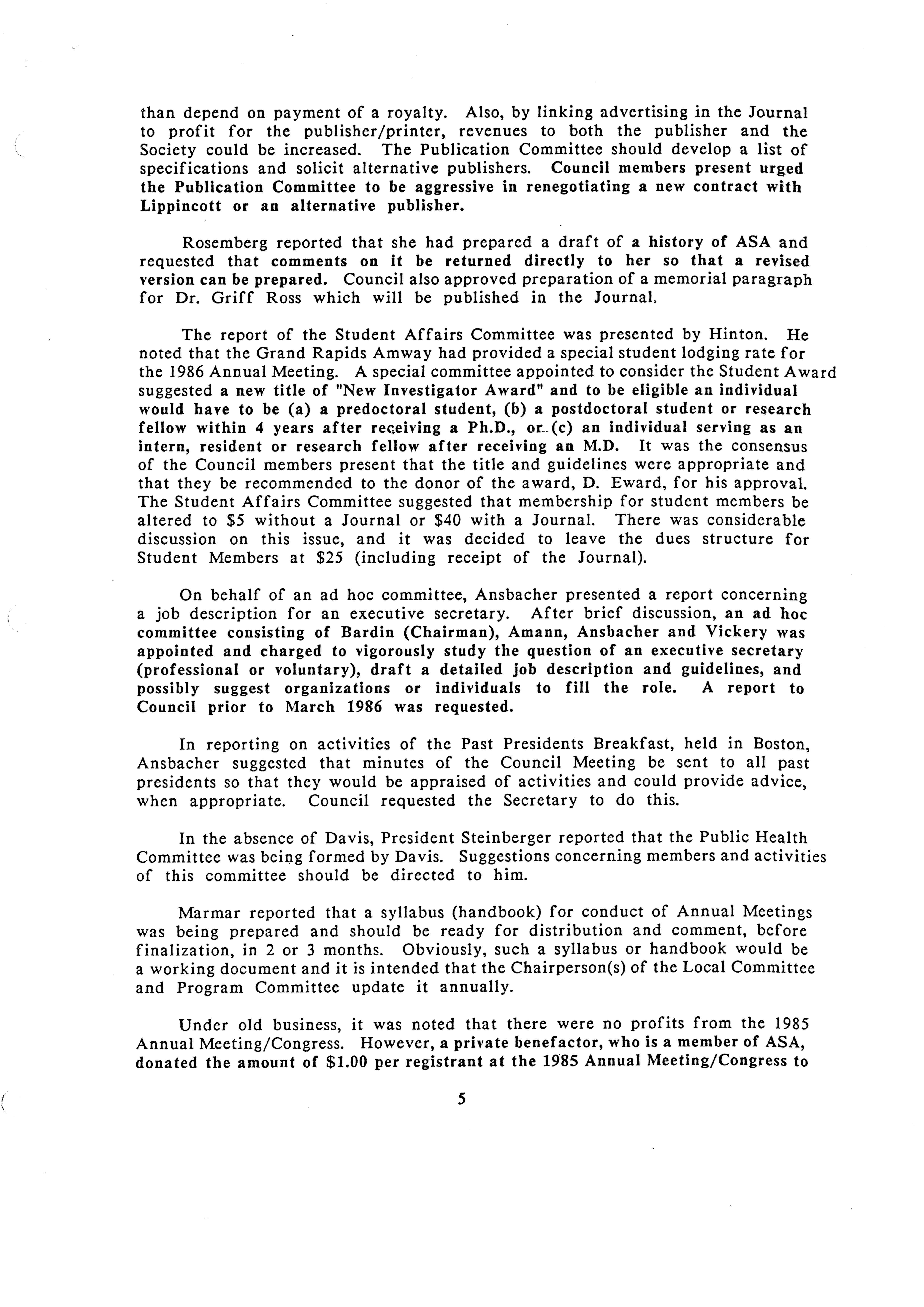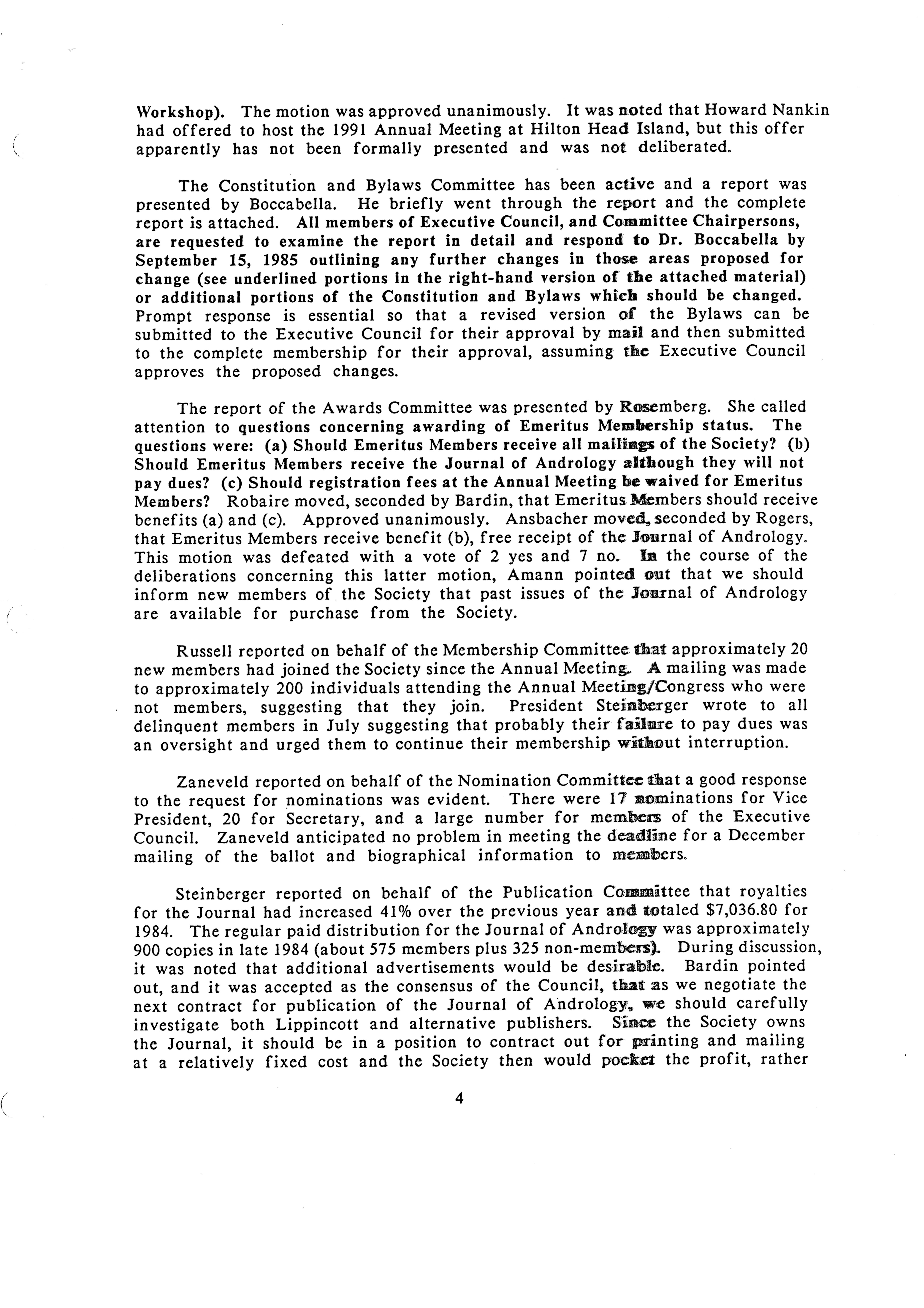 - "Executive Council Meeting of the American Society of Andrology, July 23, 1985", American Society of Andrology Collection, Iowa State University Library Digital Collections