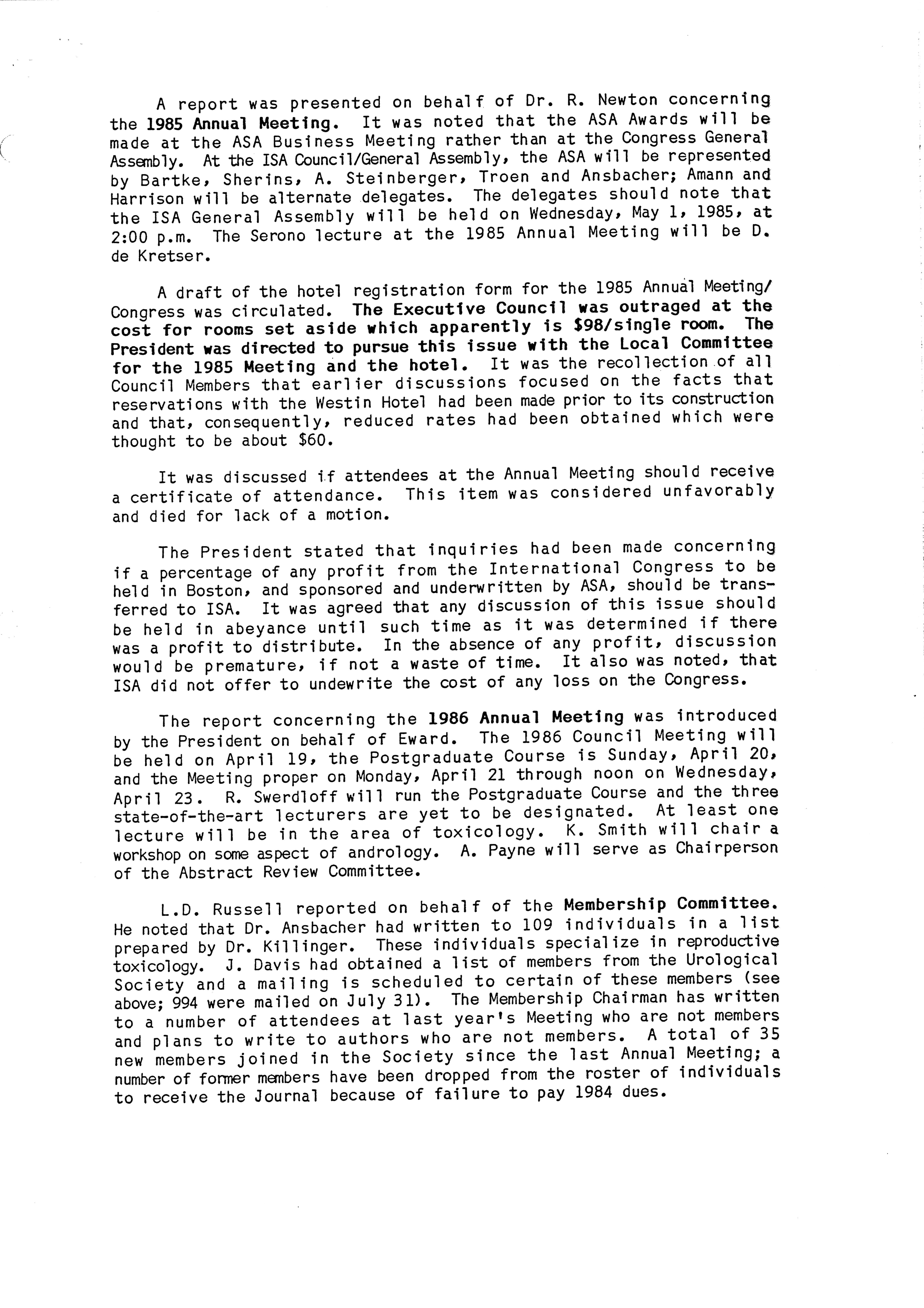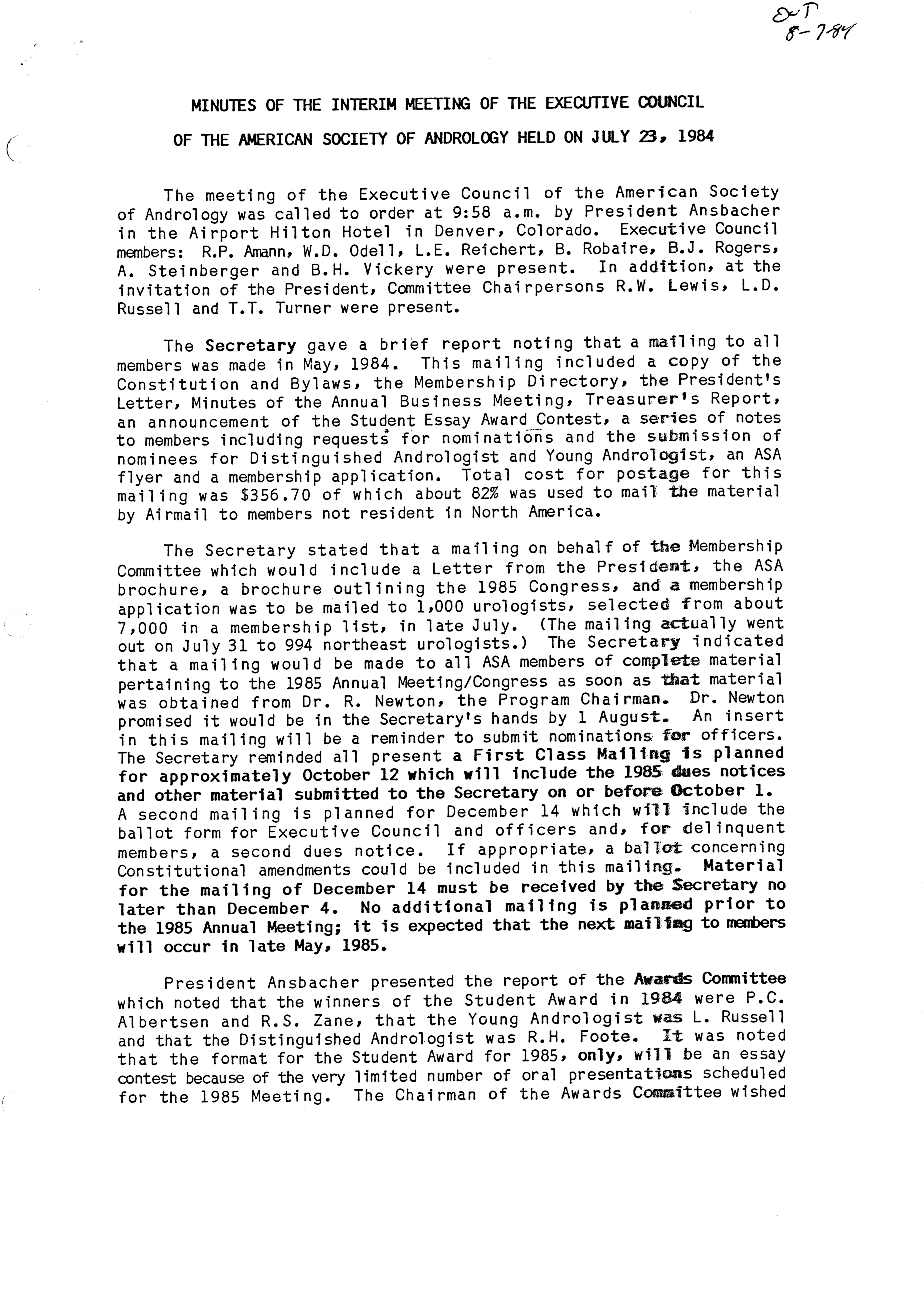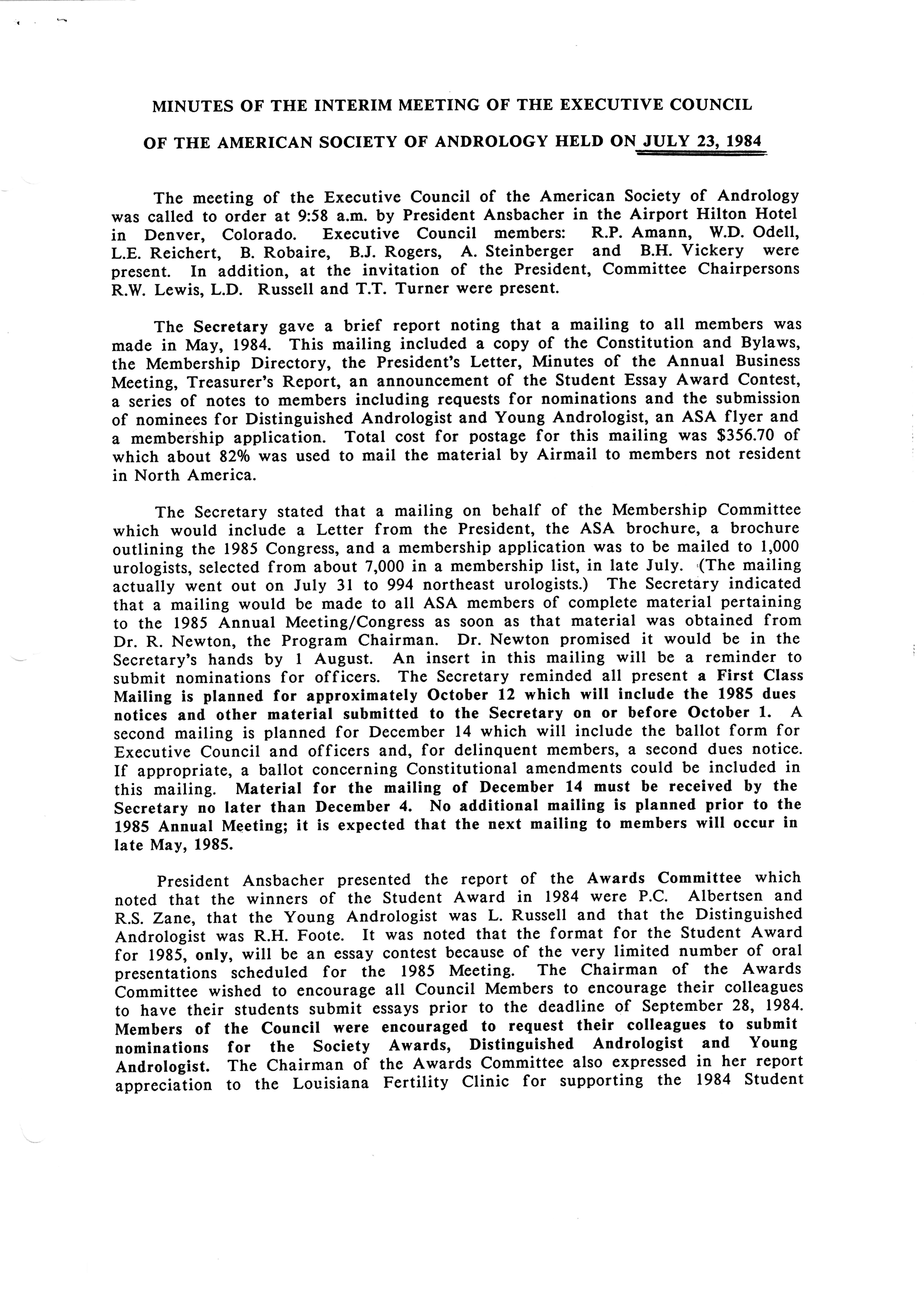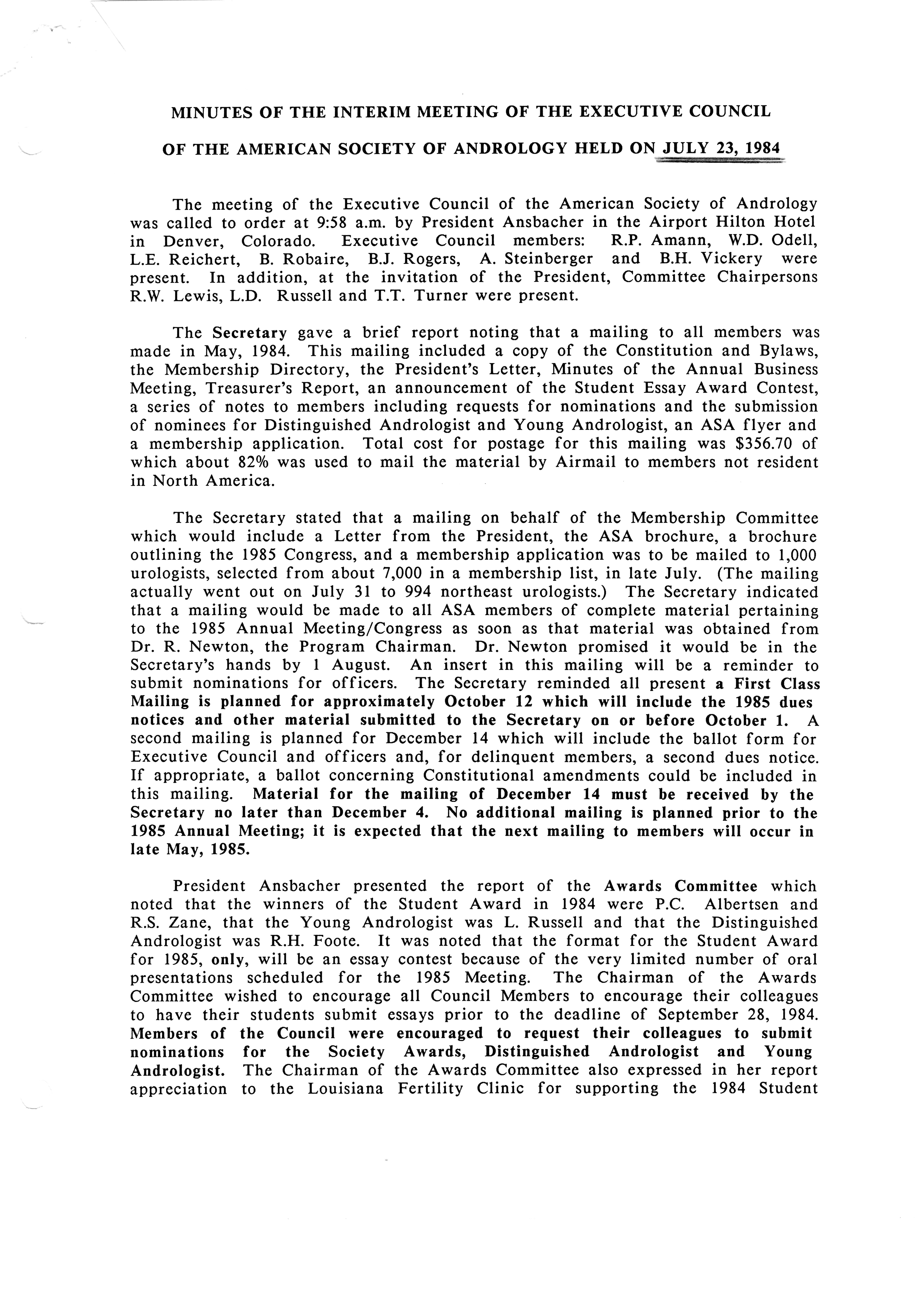 - Executive Council Meeting of the American Society of Andrology, July 23, 1984