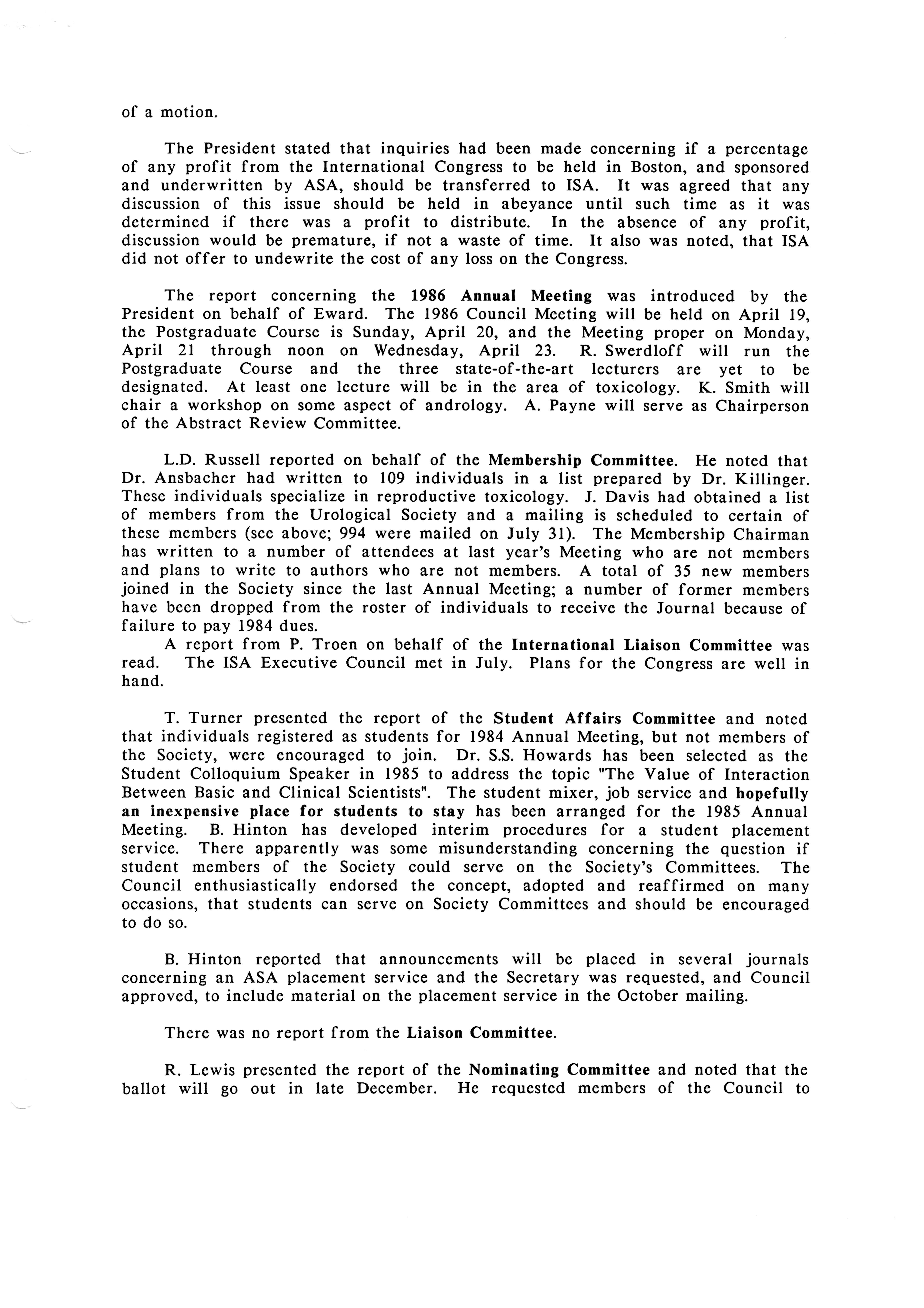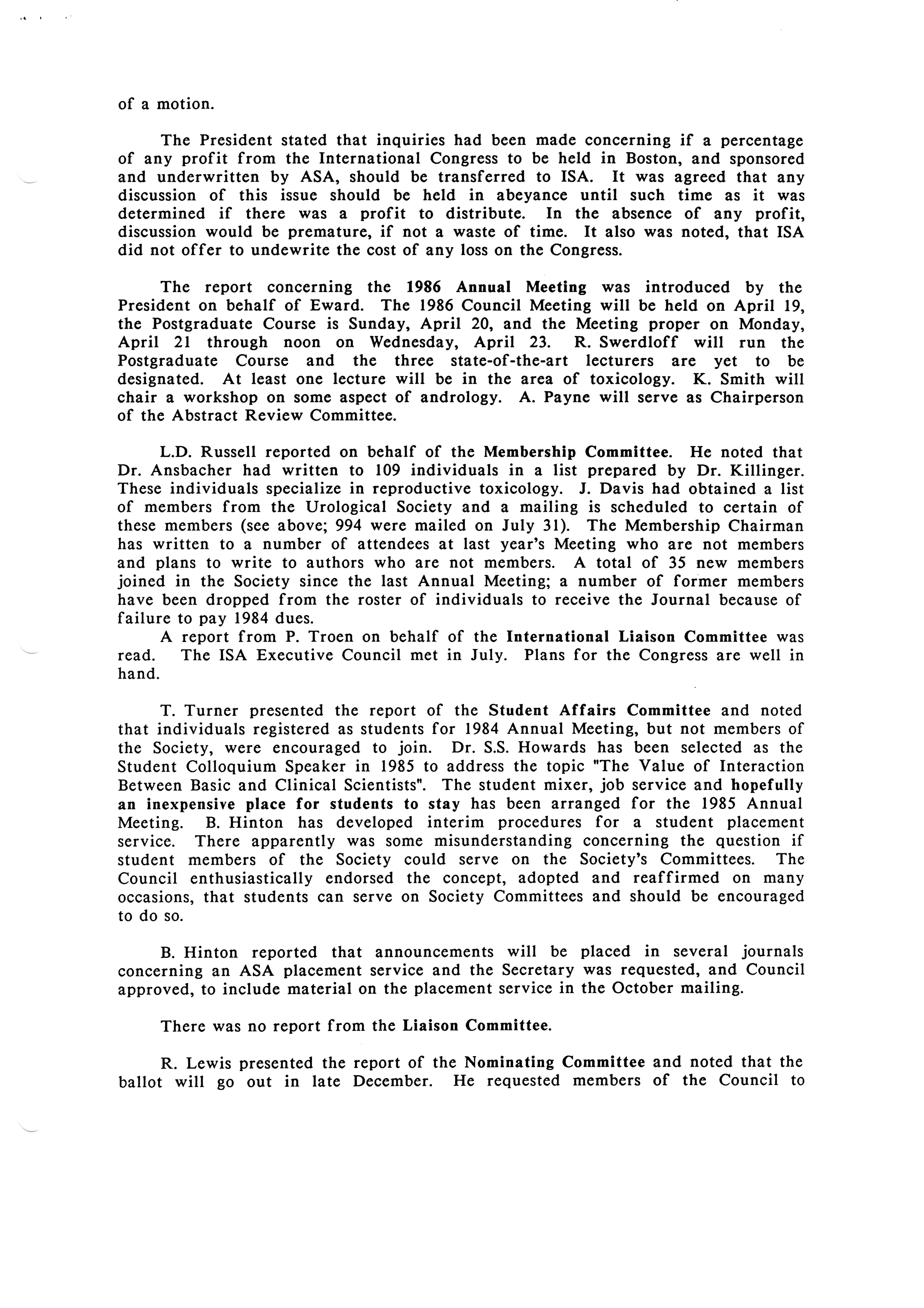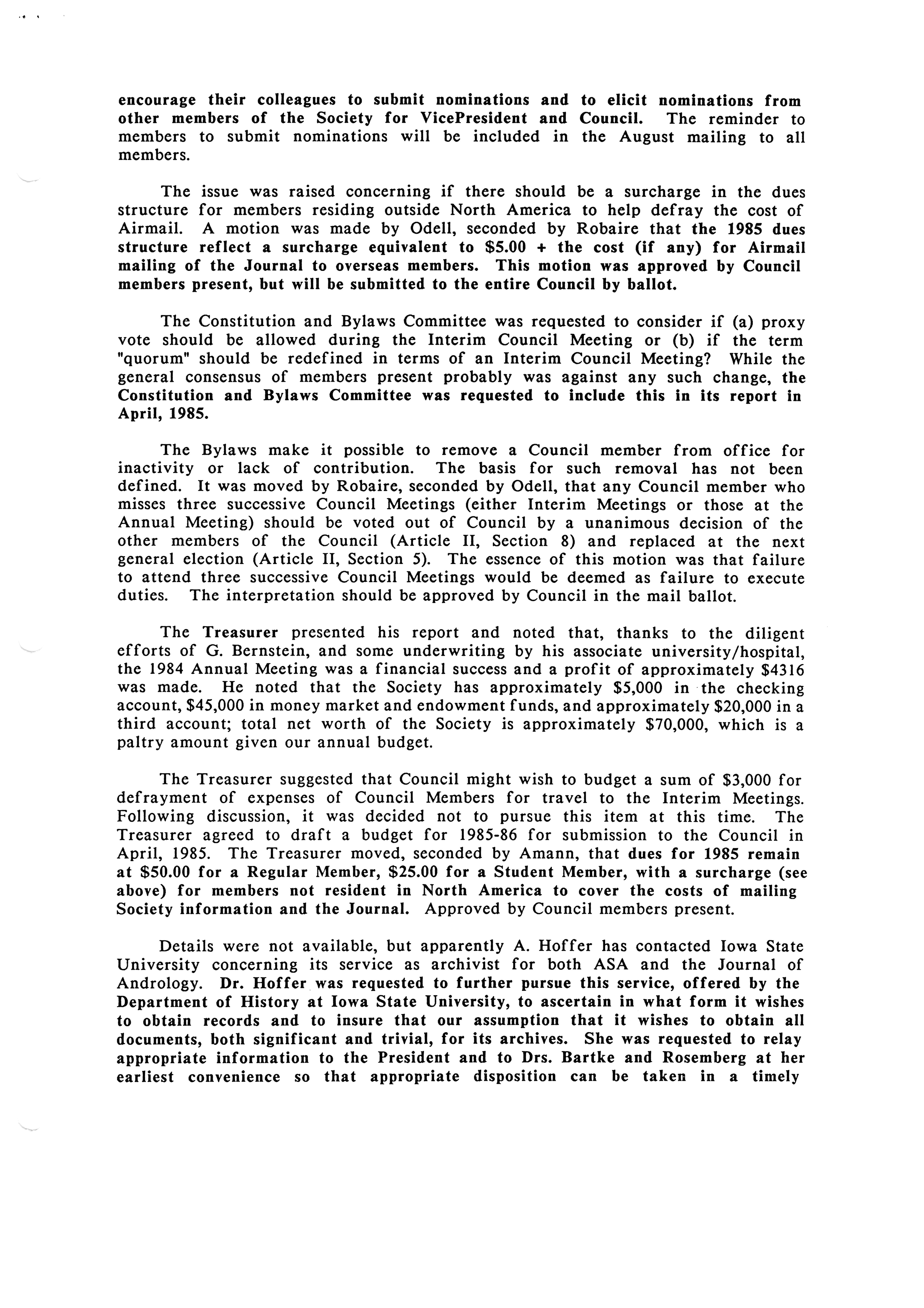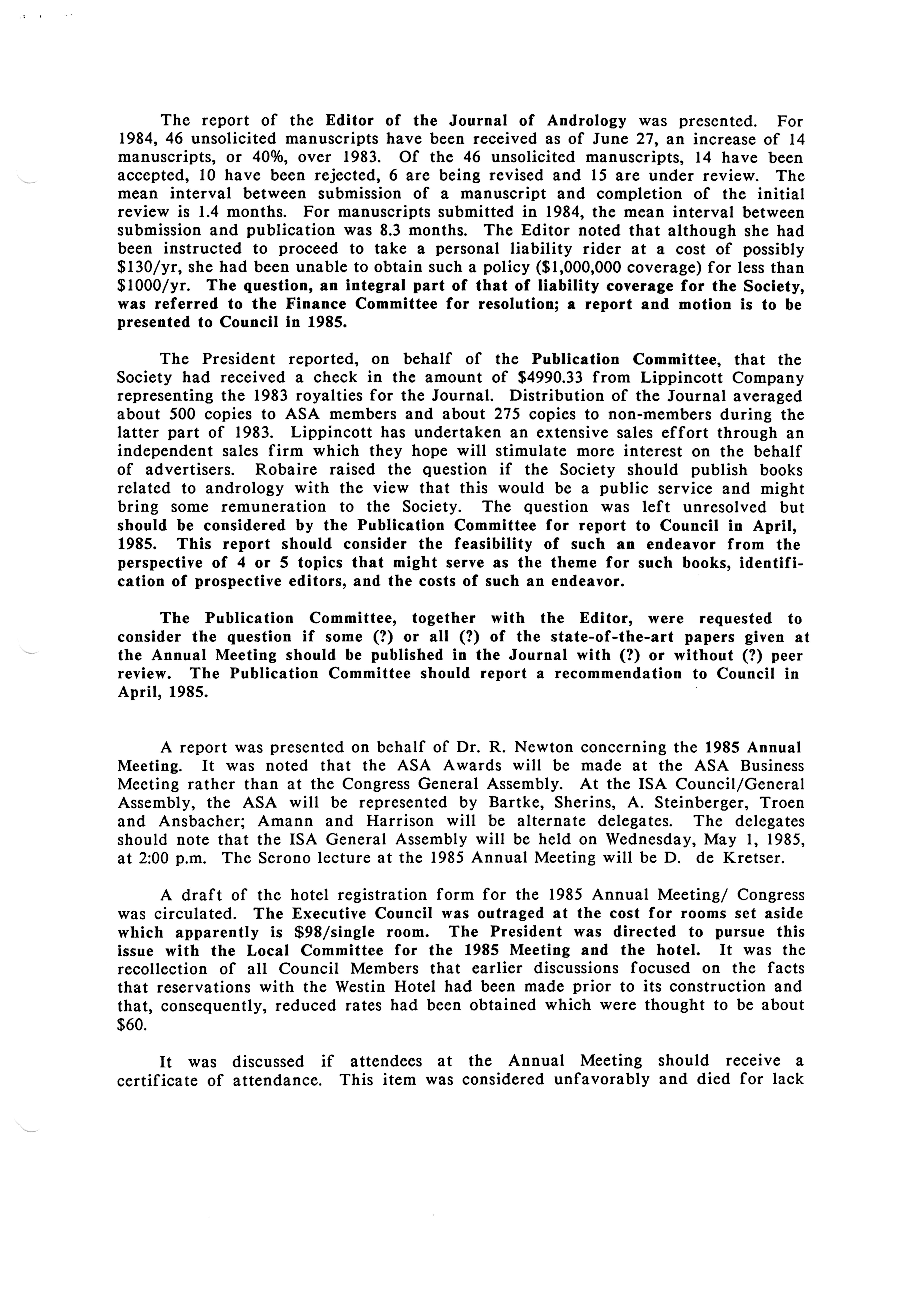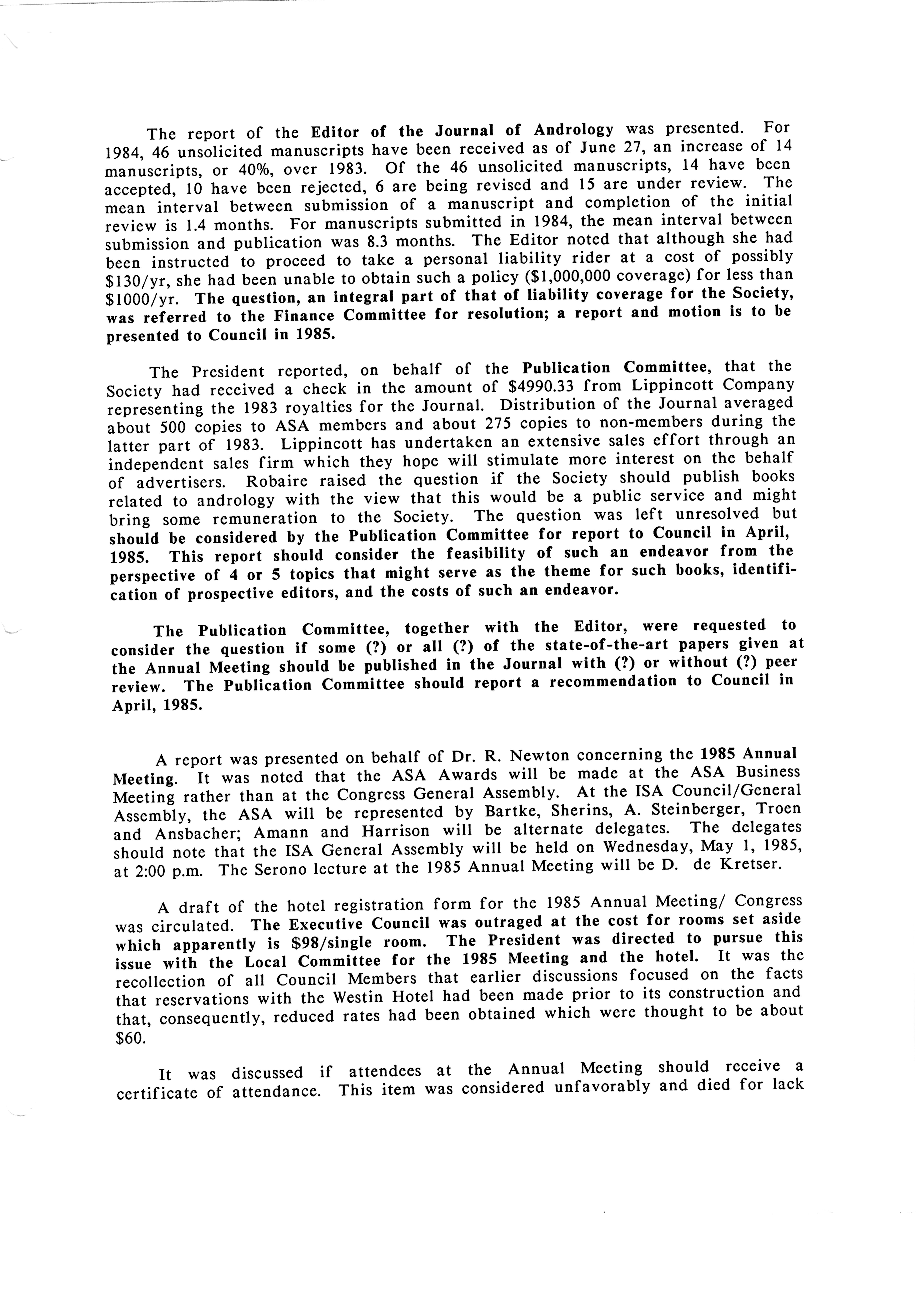 - "Executive Council Meeting of the American Society of Andrology, July 23, 1984", American Society of Andrology Collection, Iowa State University Library Digital Collections