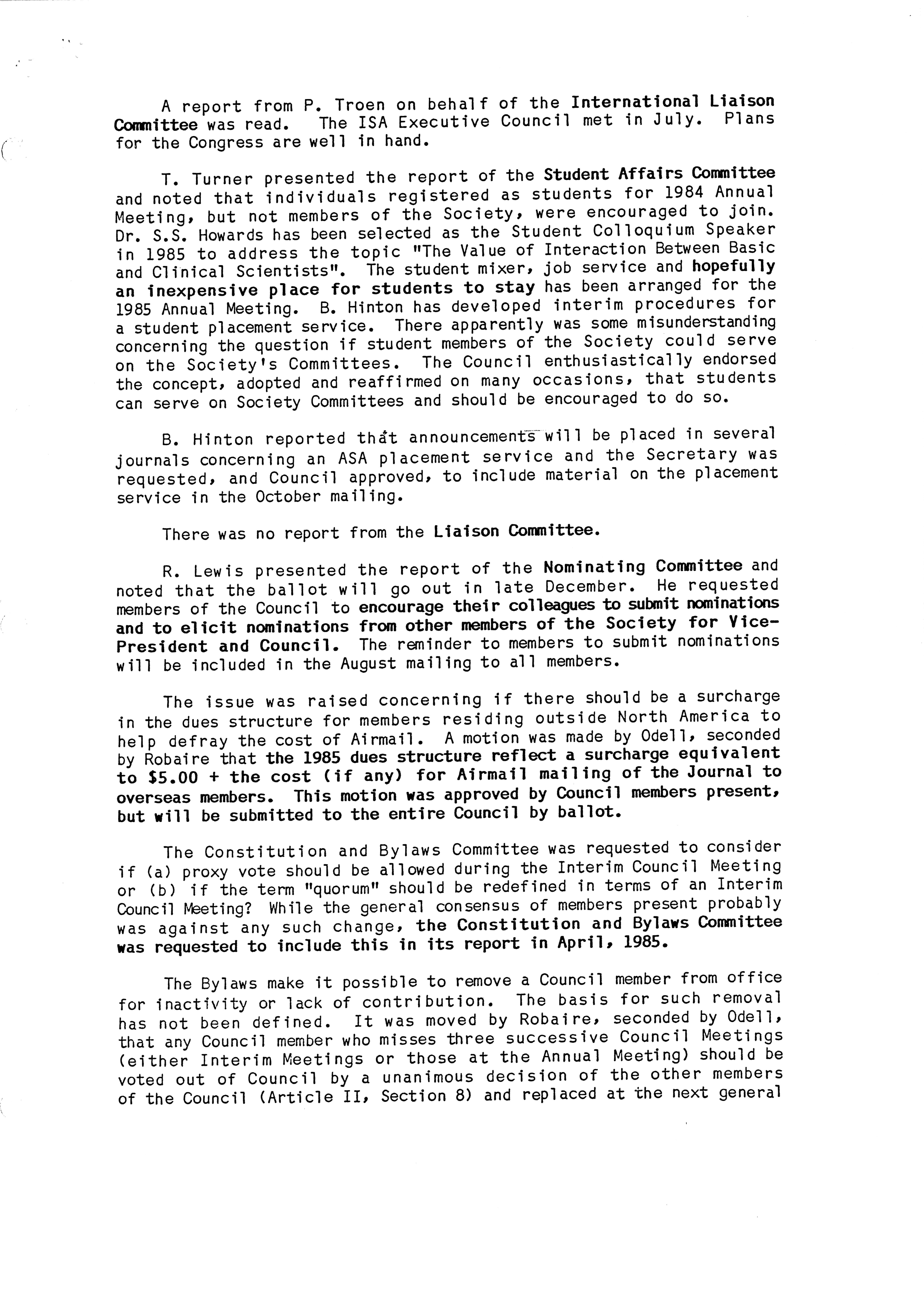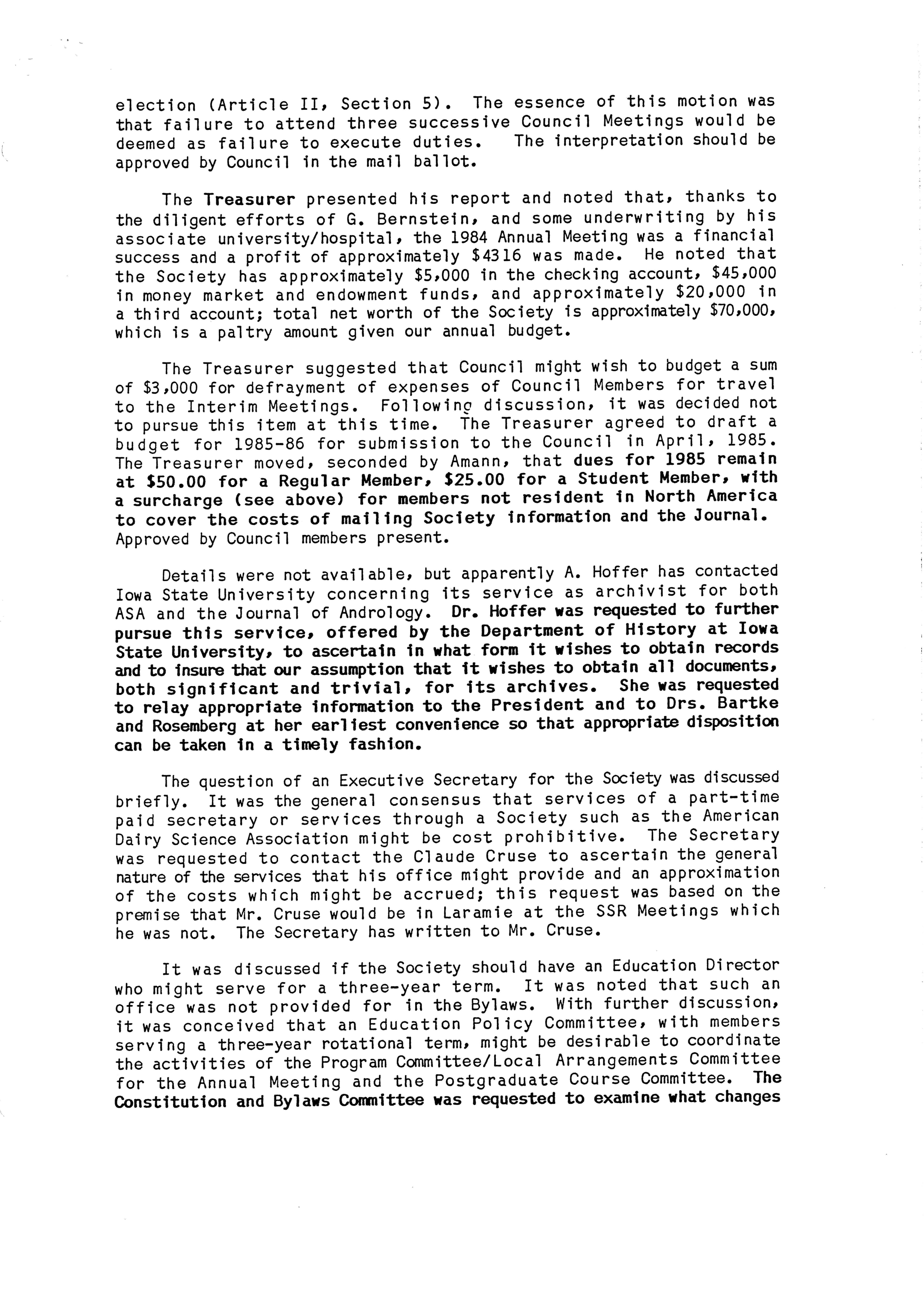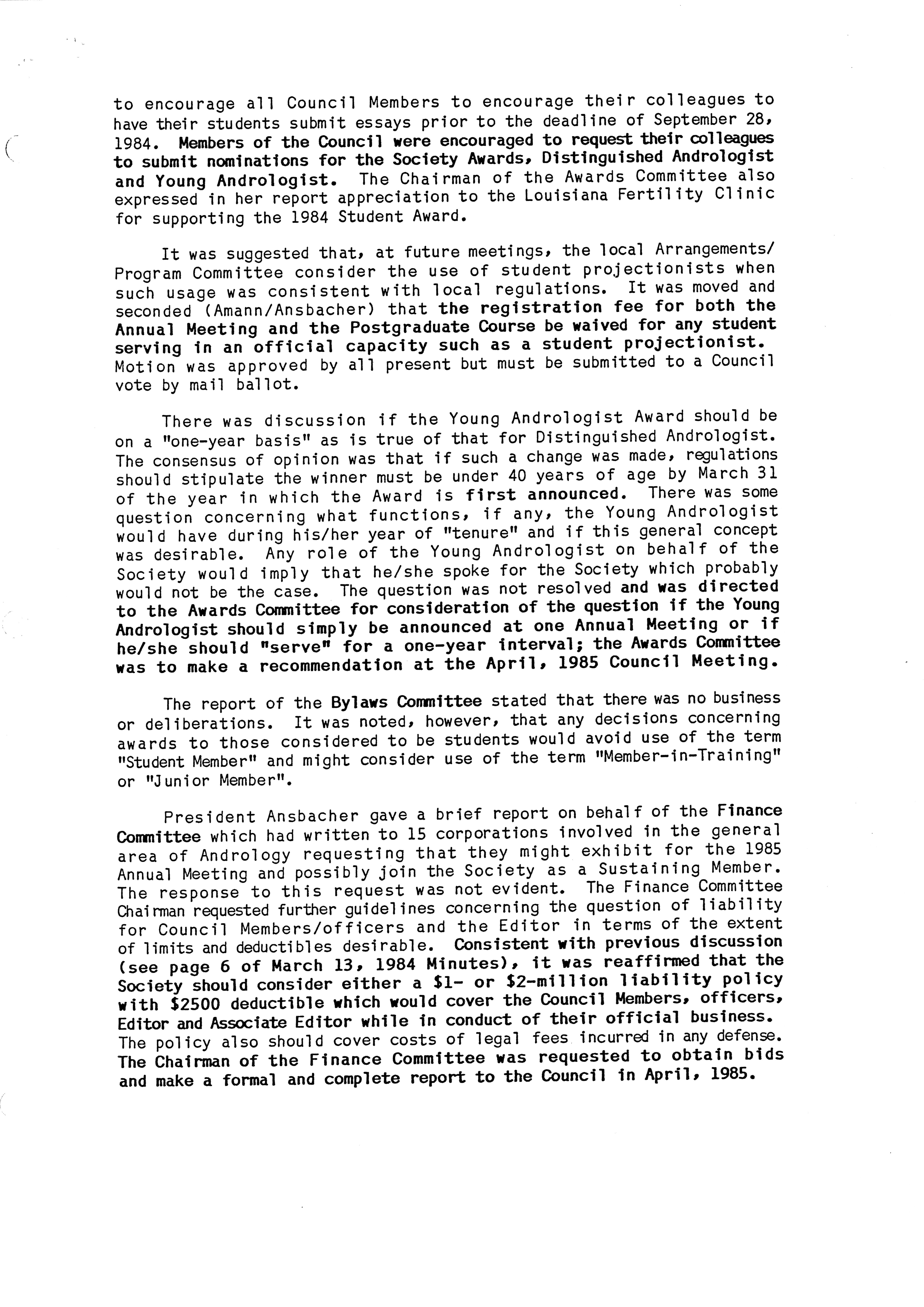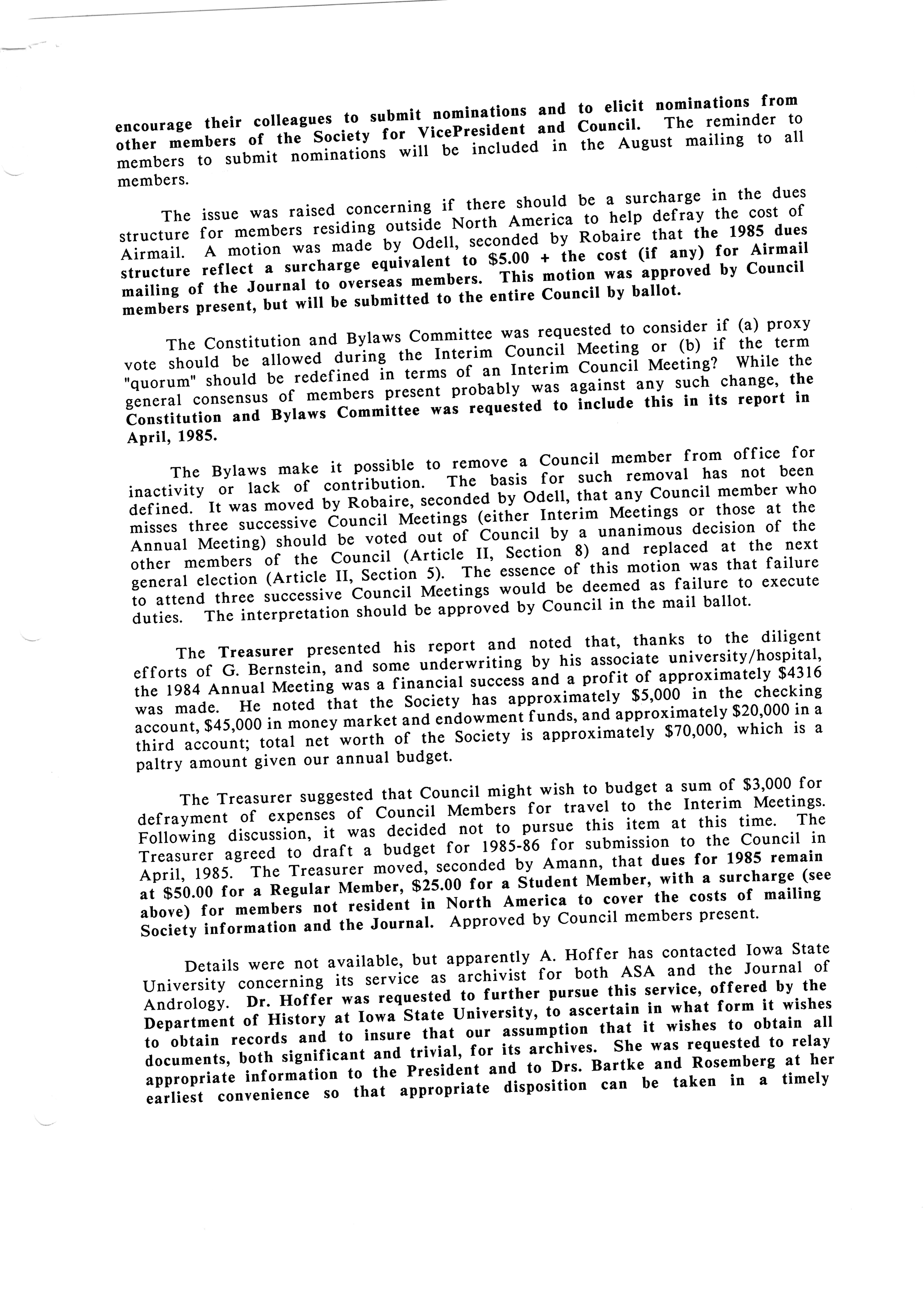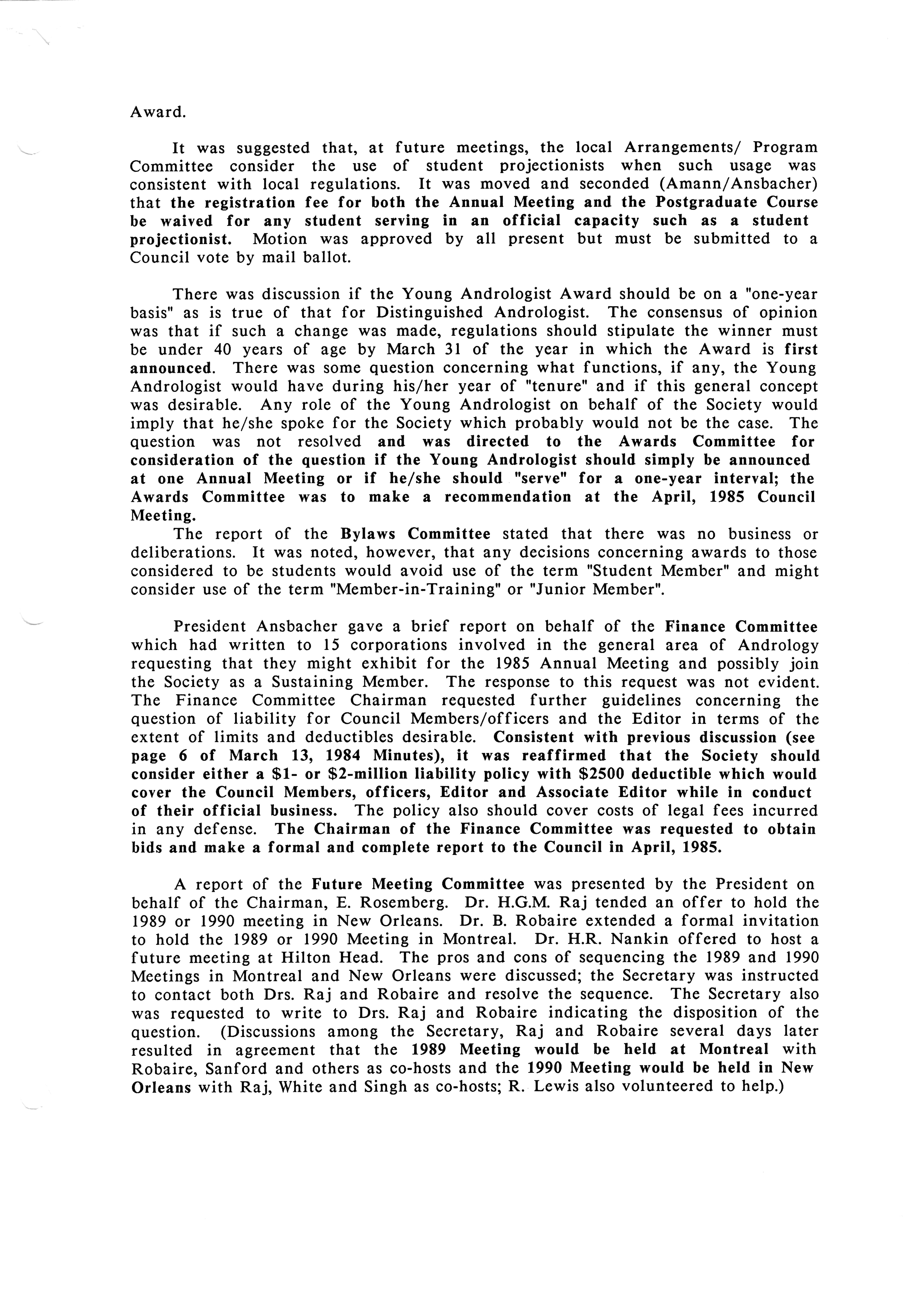 - "Executive Council Meeting of the American Society of Andrology, July 23, 1984", American Society of Andrology Collection, Iowa State University Library Digital Collections