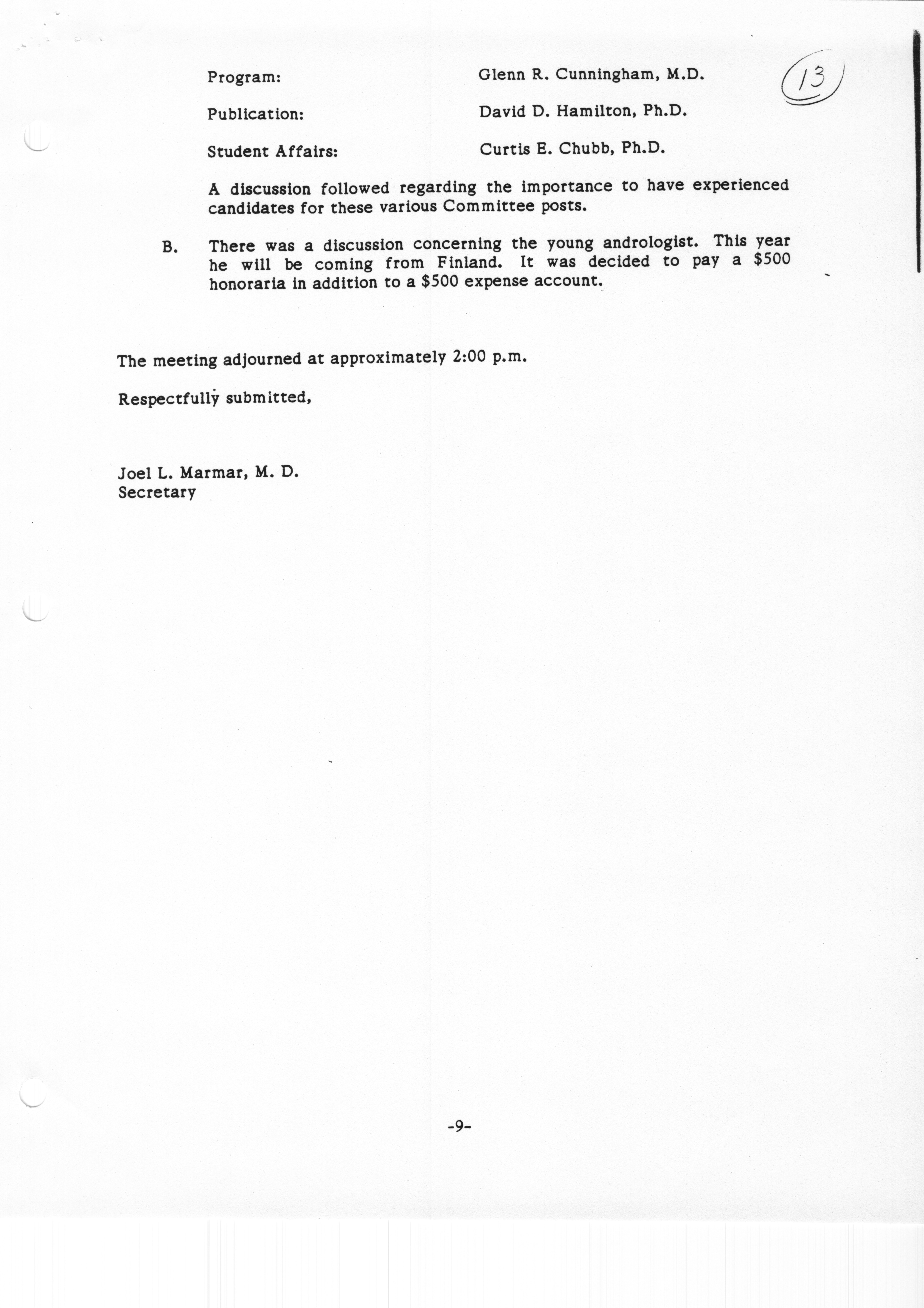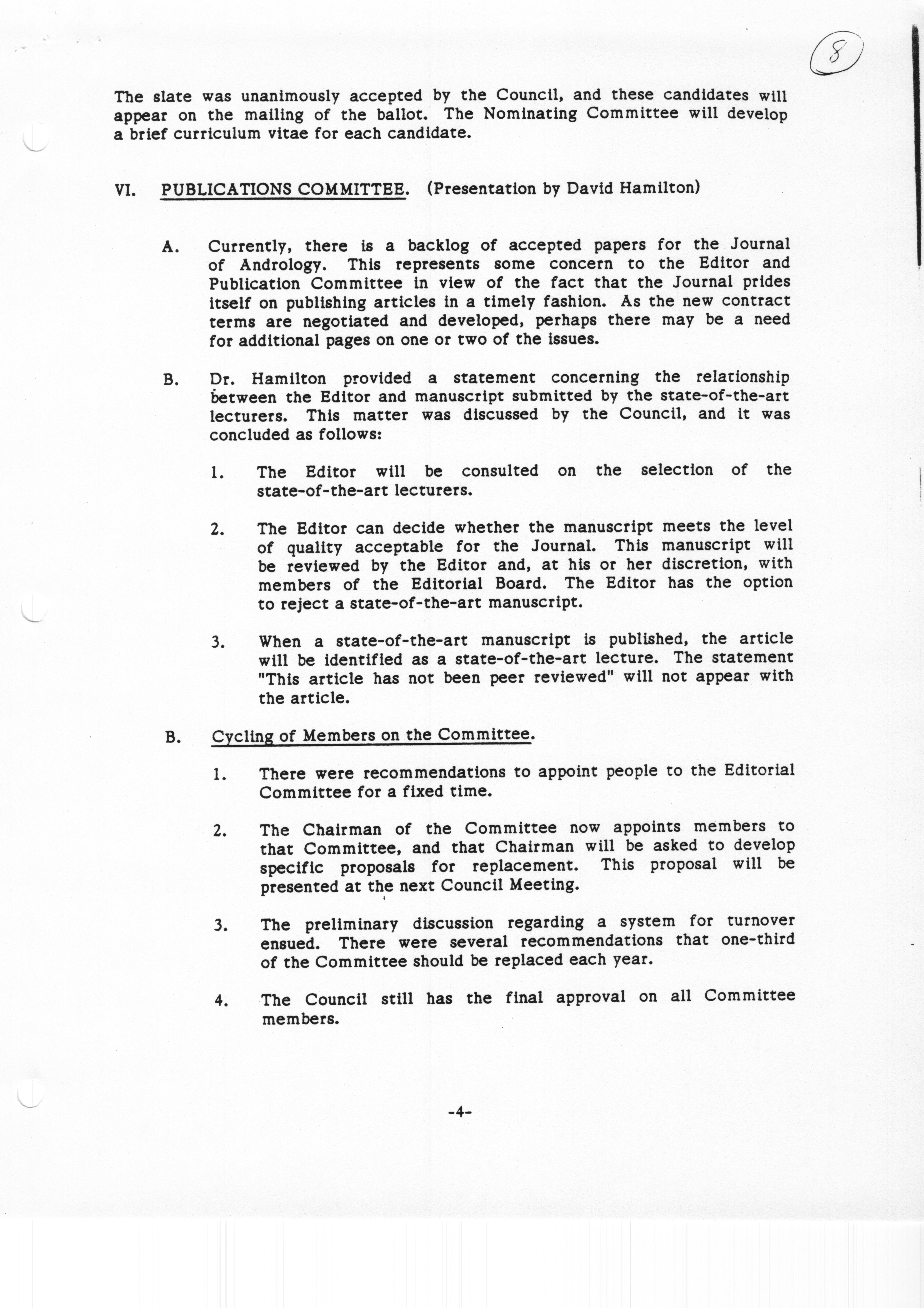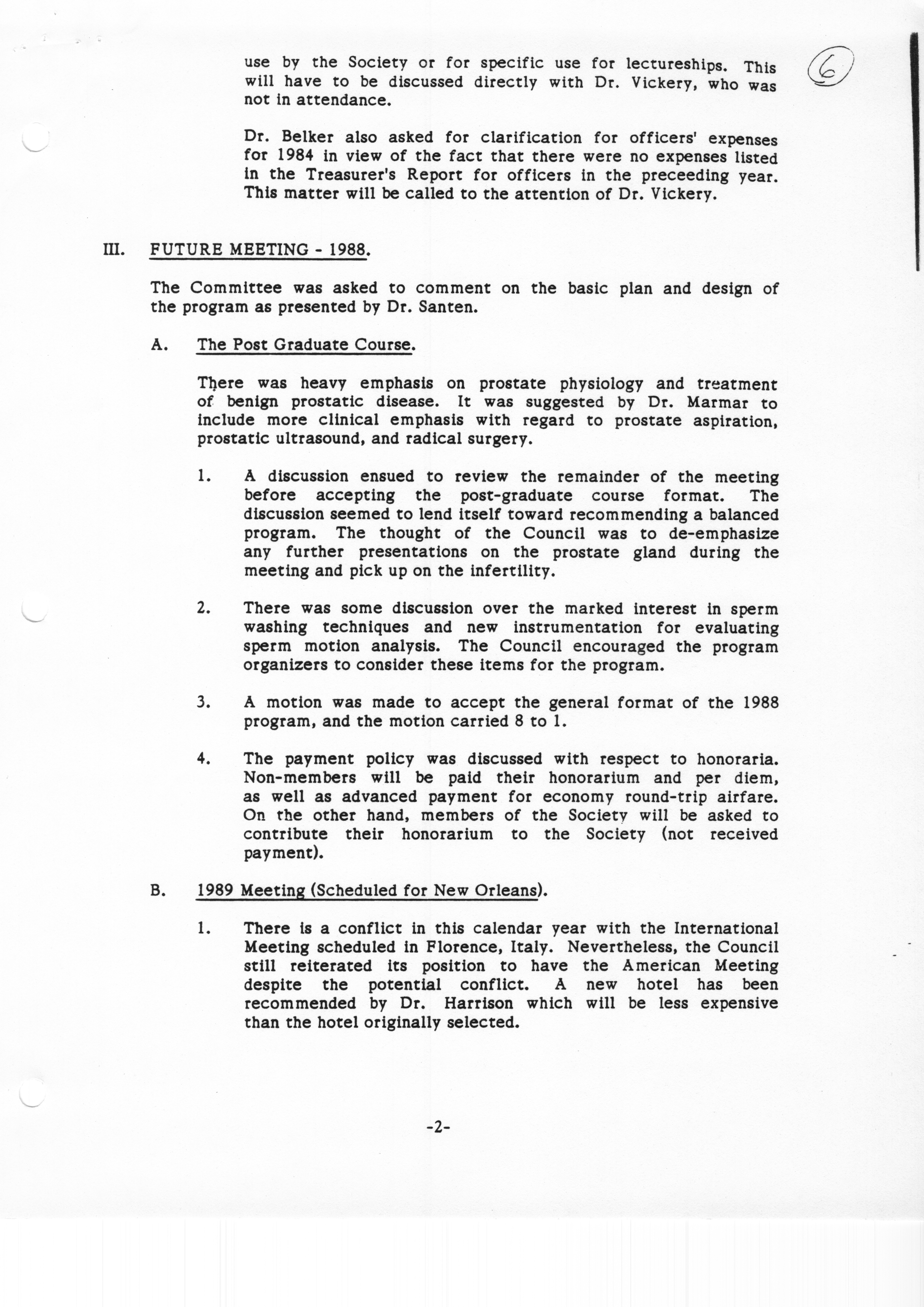 - "Executive Council Meetings of the American Society of Andrology, October 3, 1986", American Society of Andrology Collection, Iowa State University Library Digital Collections