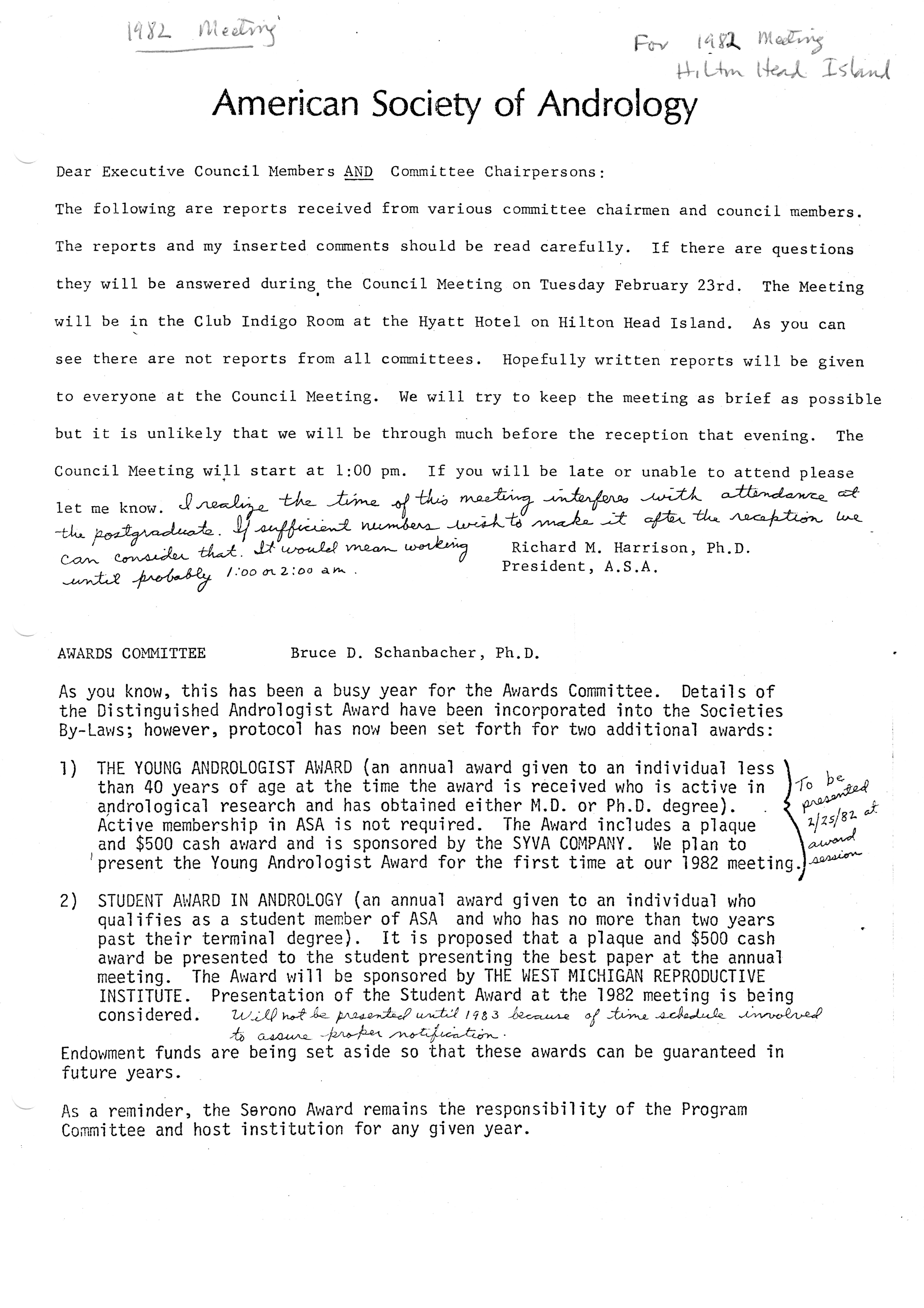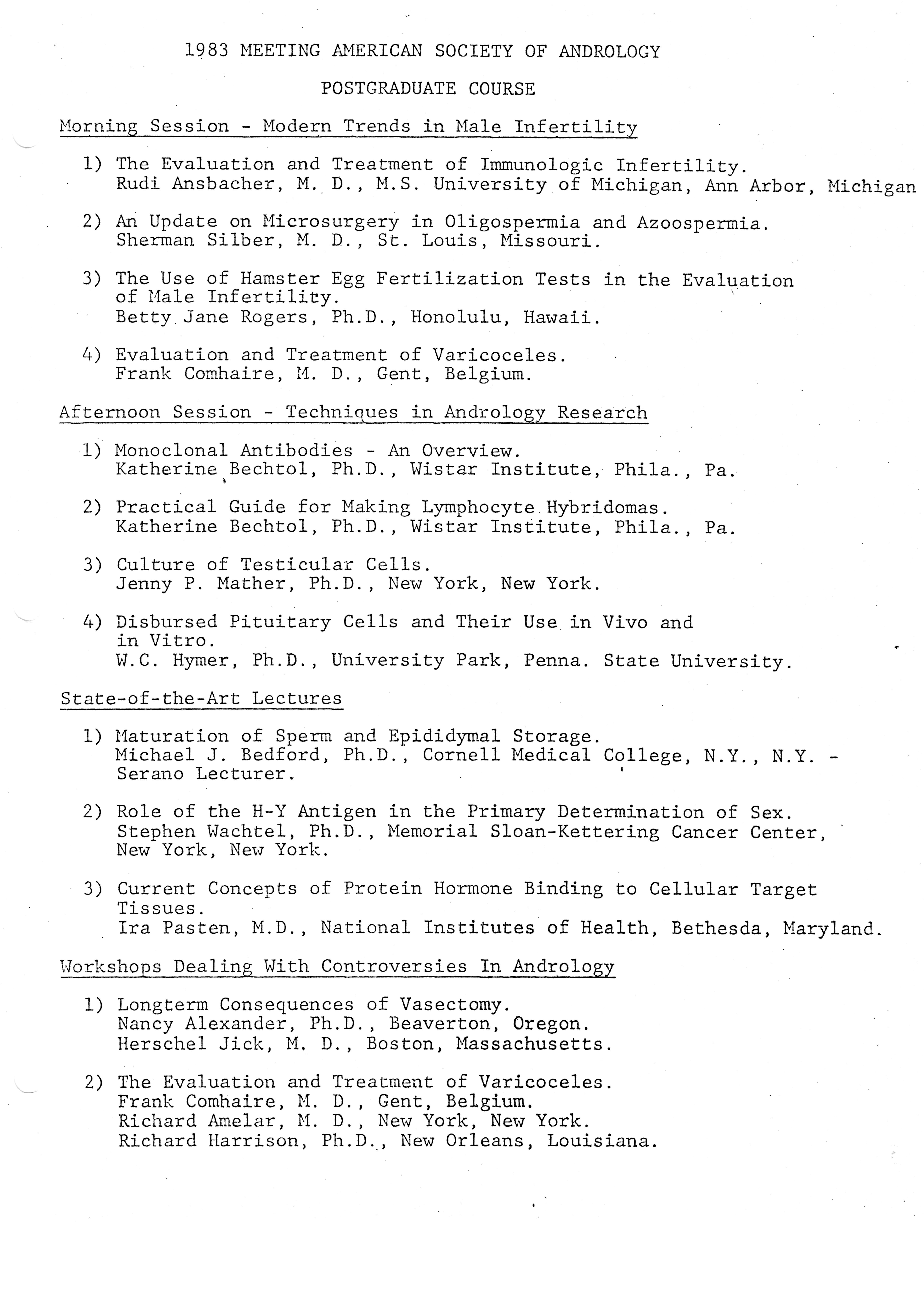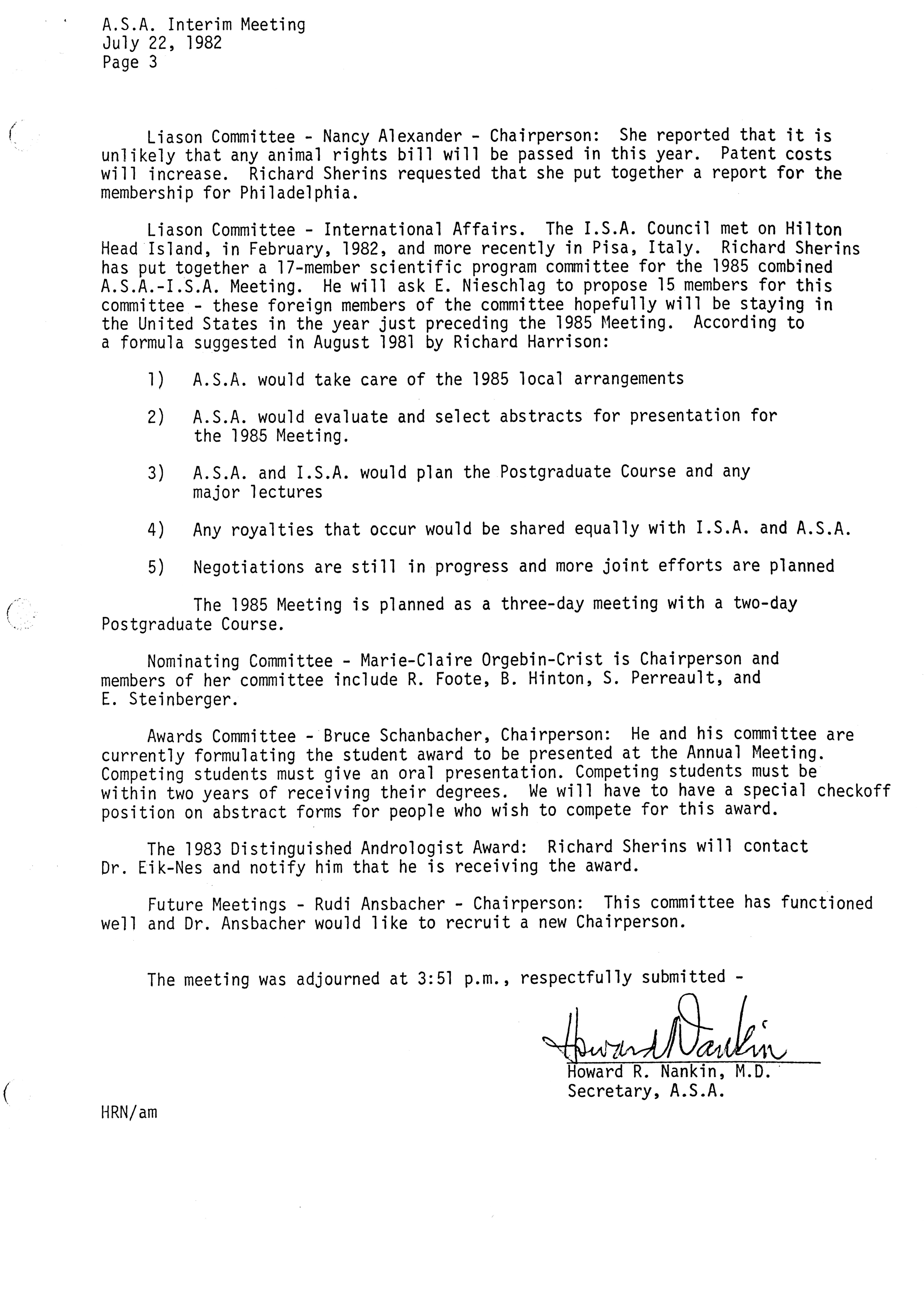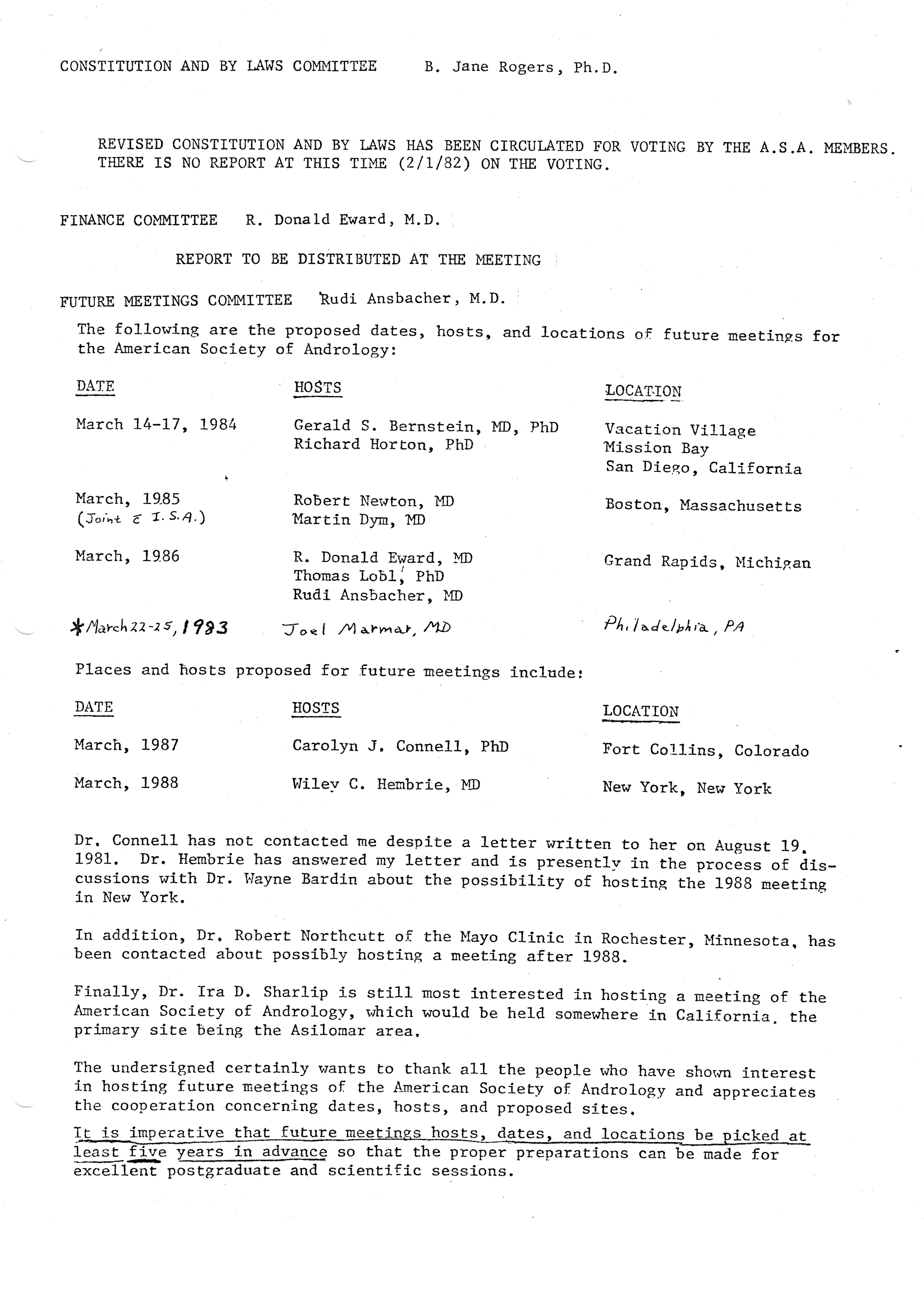 - "Executive Council Meetings of the American Society of Andrology, 1982", American Society of Andrology Collection, Iowa State University Library Digital Collections