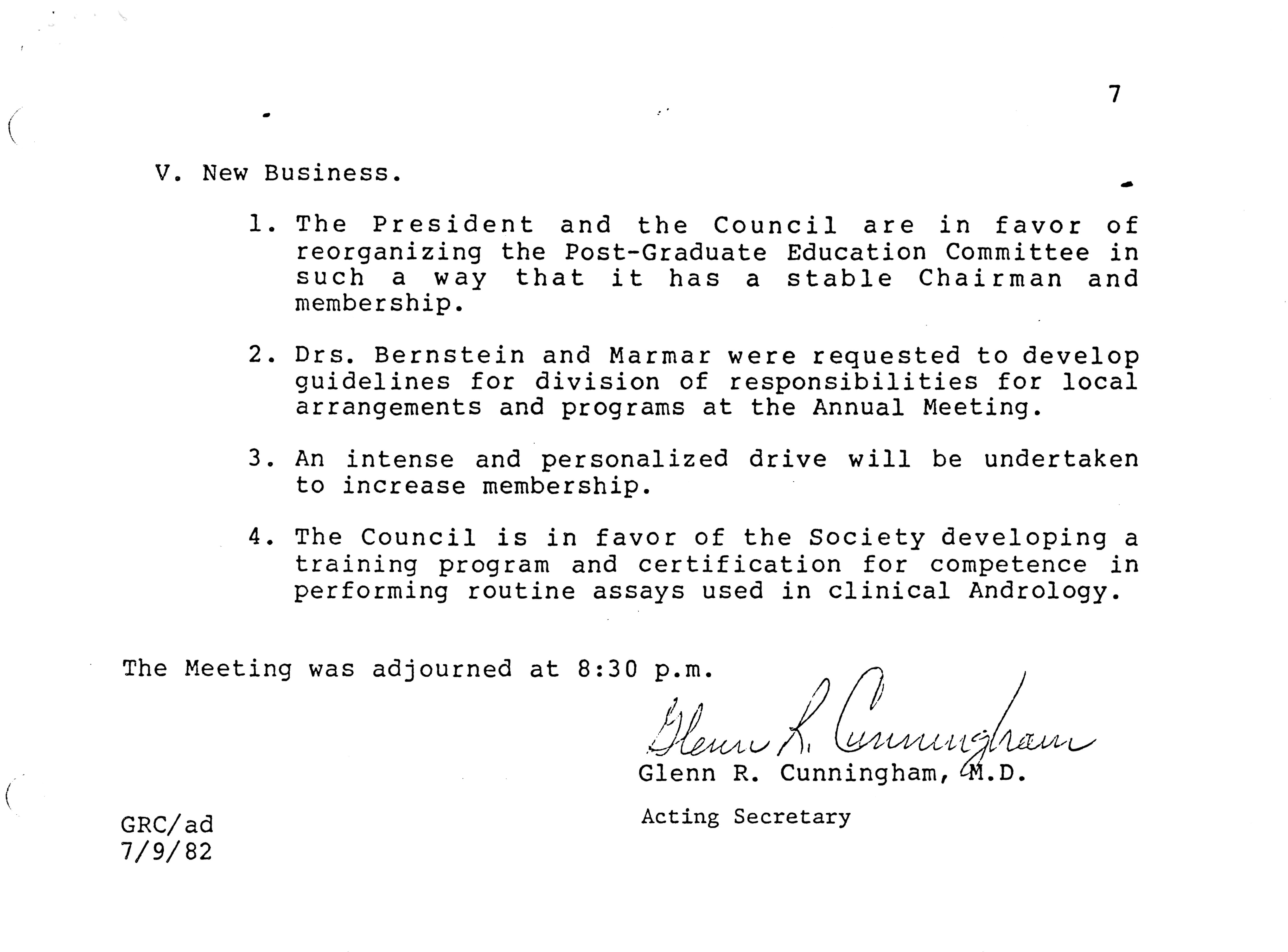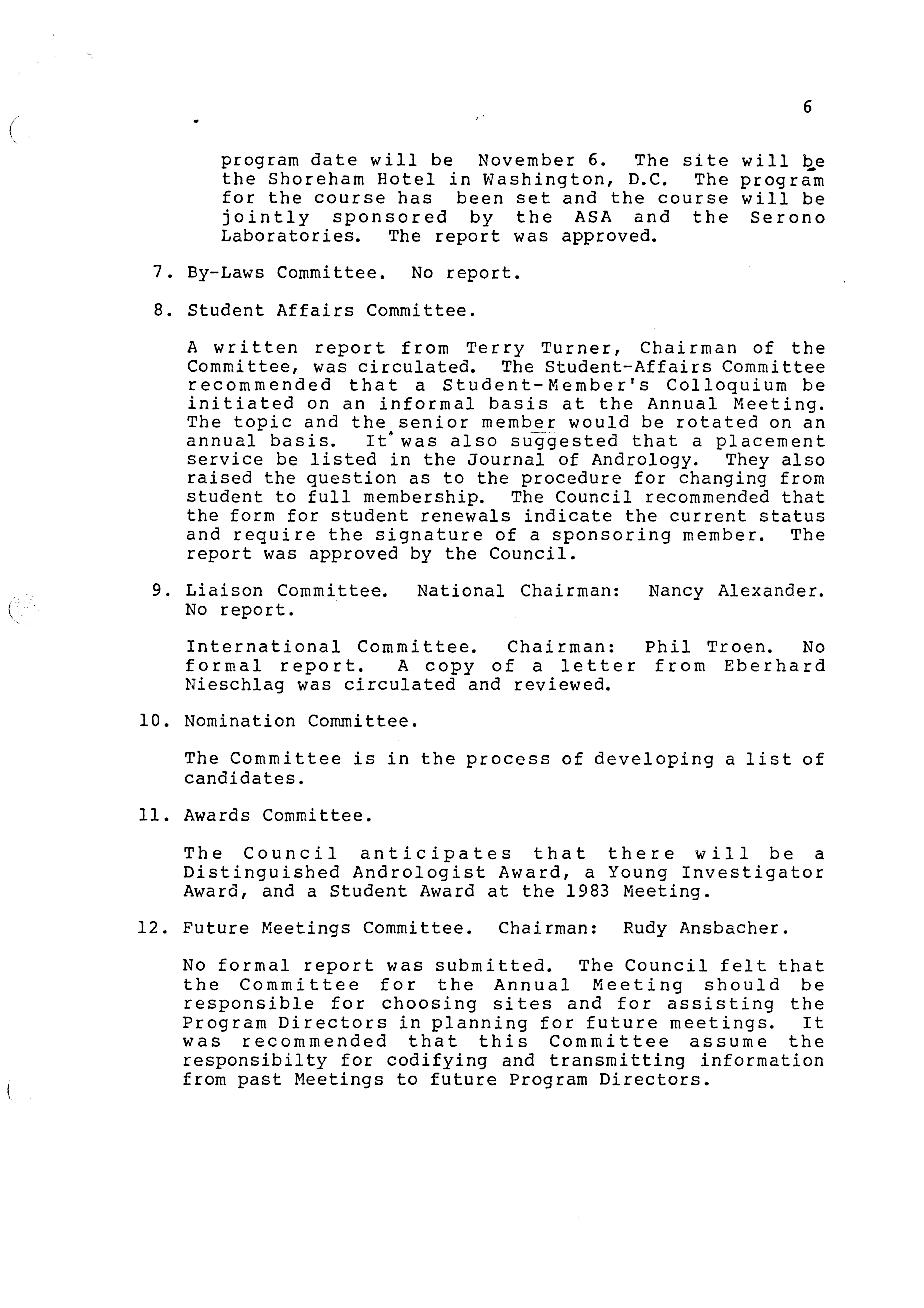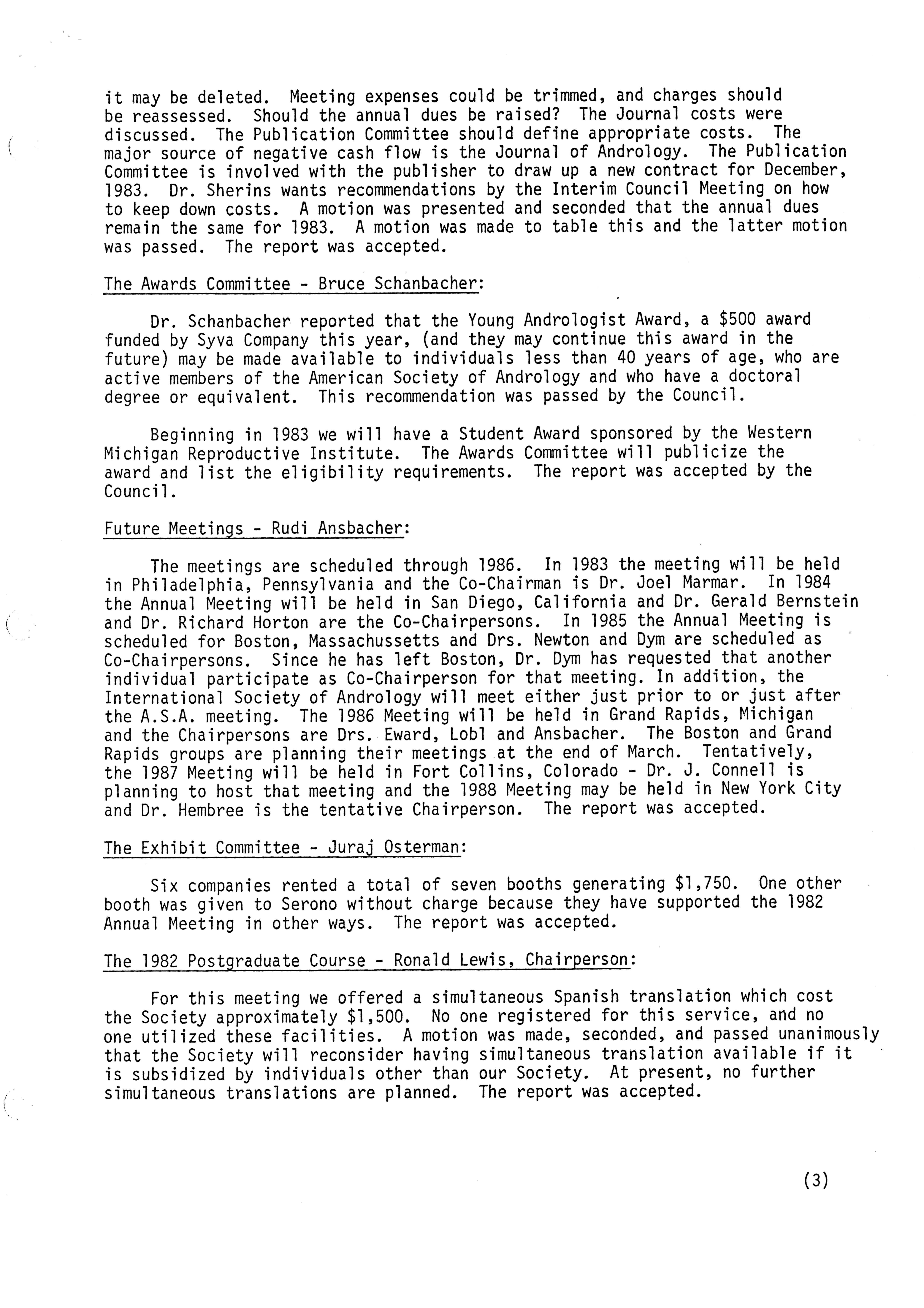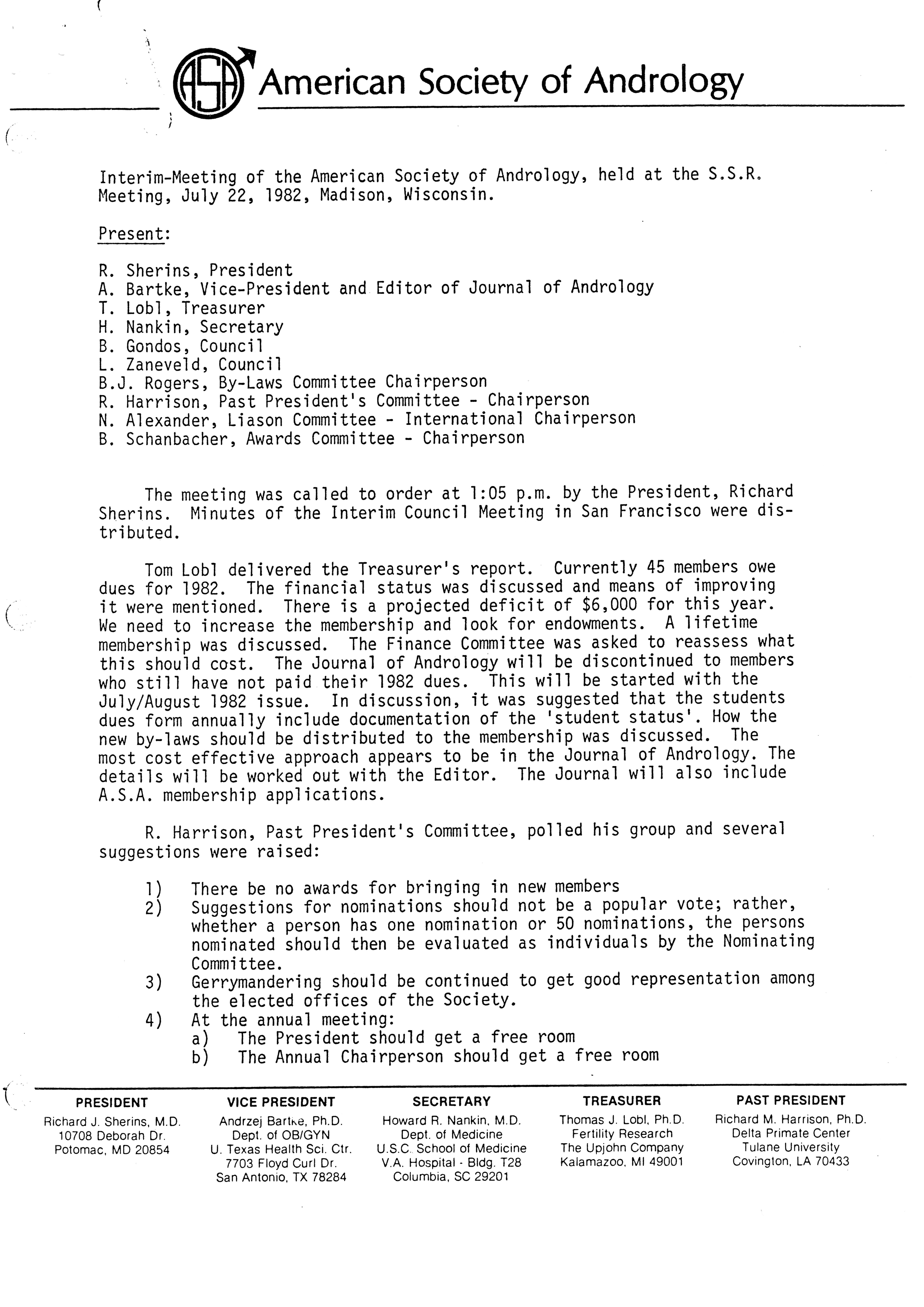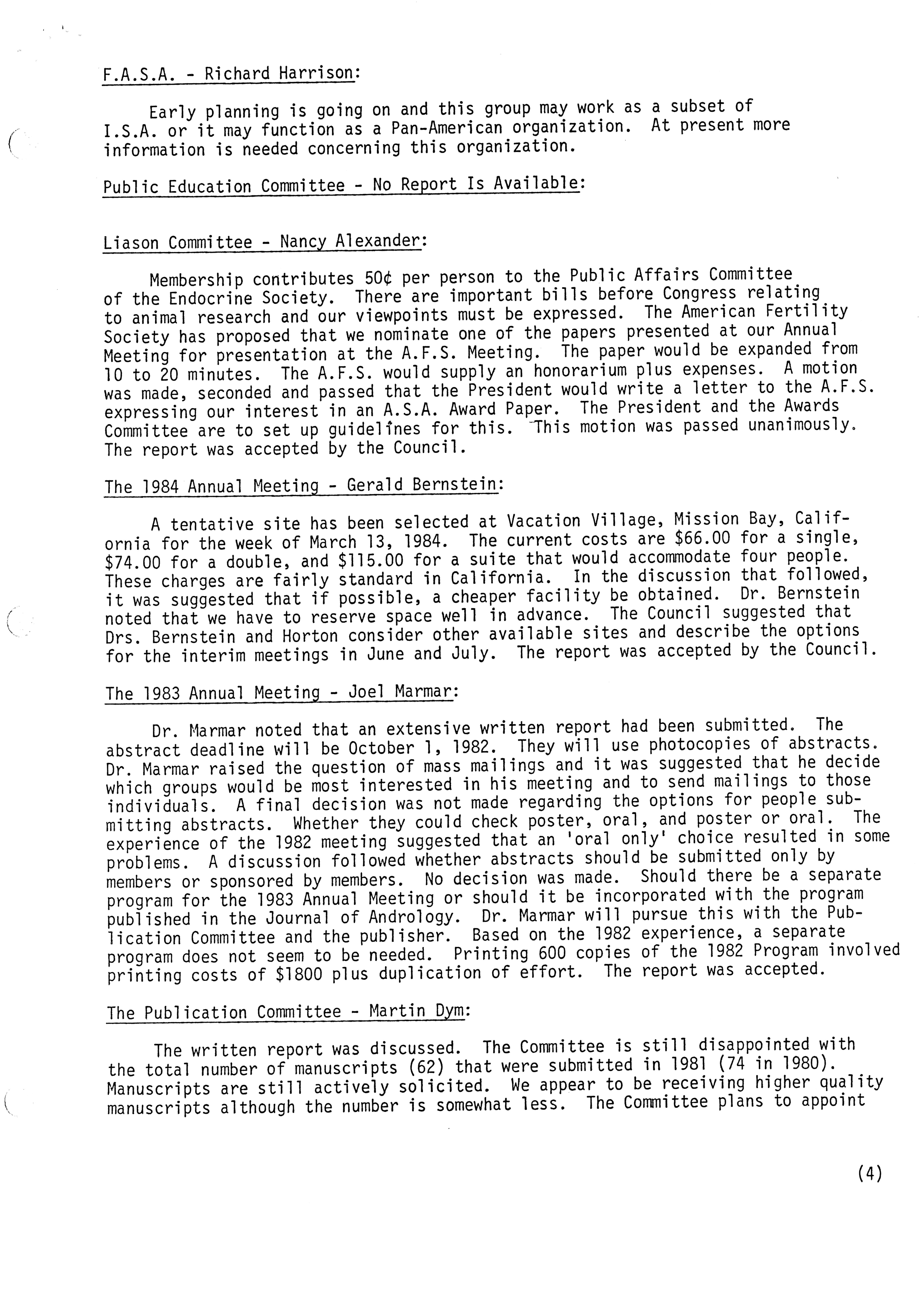 - "Executive Council Meetings of the American Society of Andrology, 1982", American Society of Andrology Collection, Iowa State University Library Digital Collections