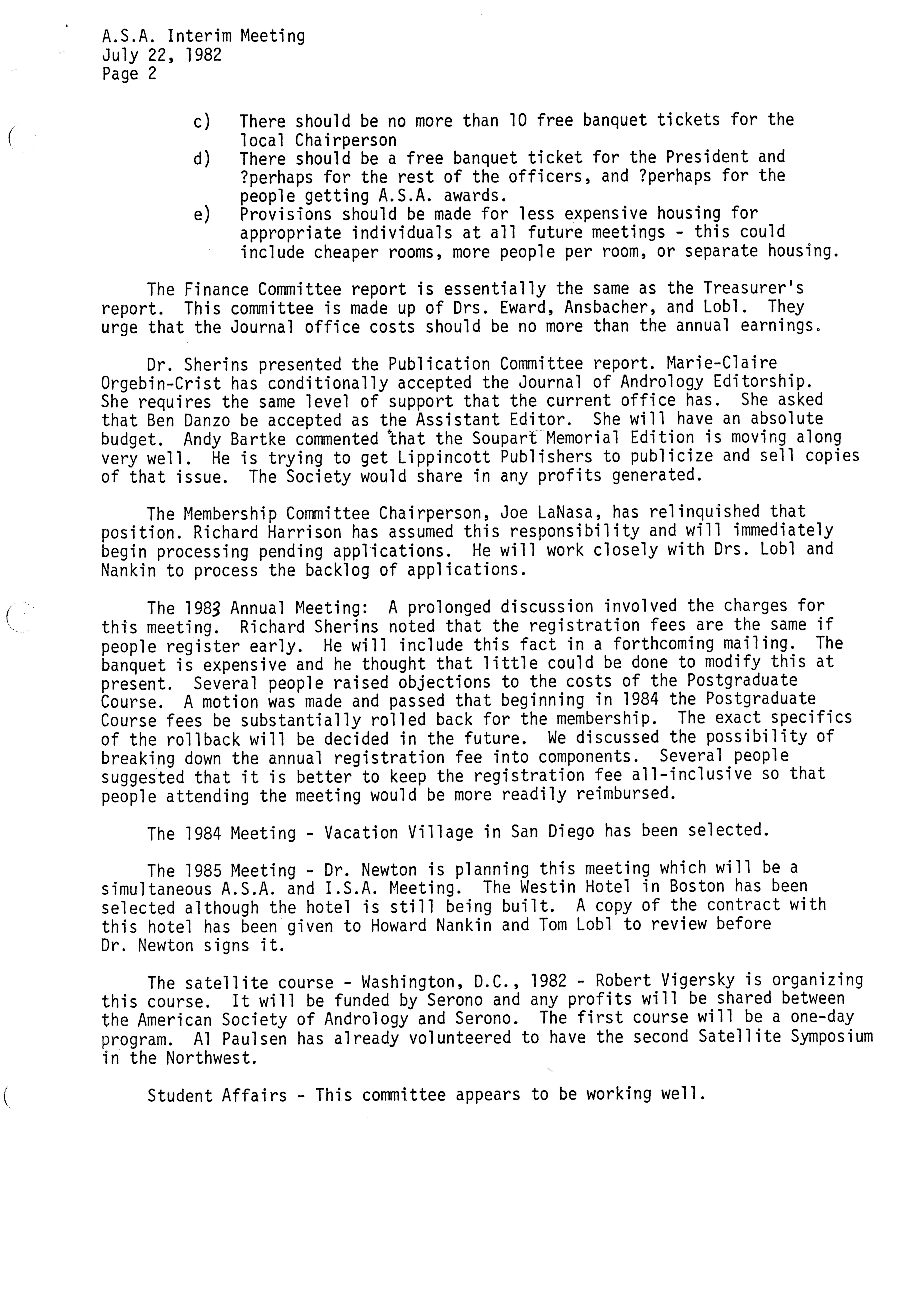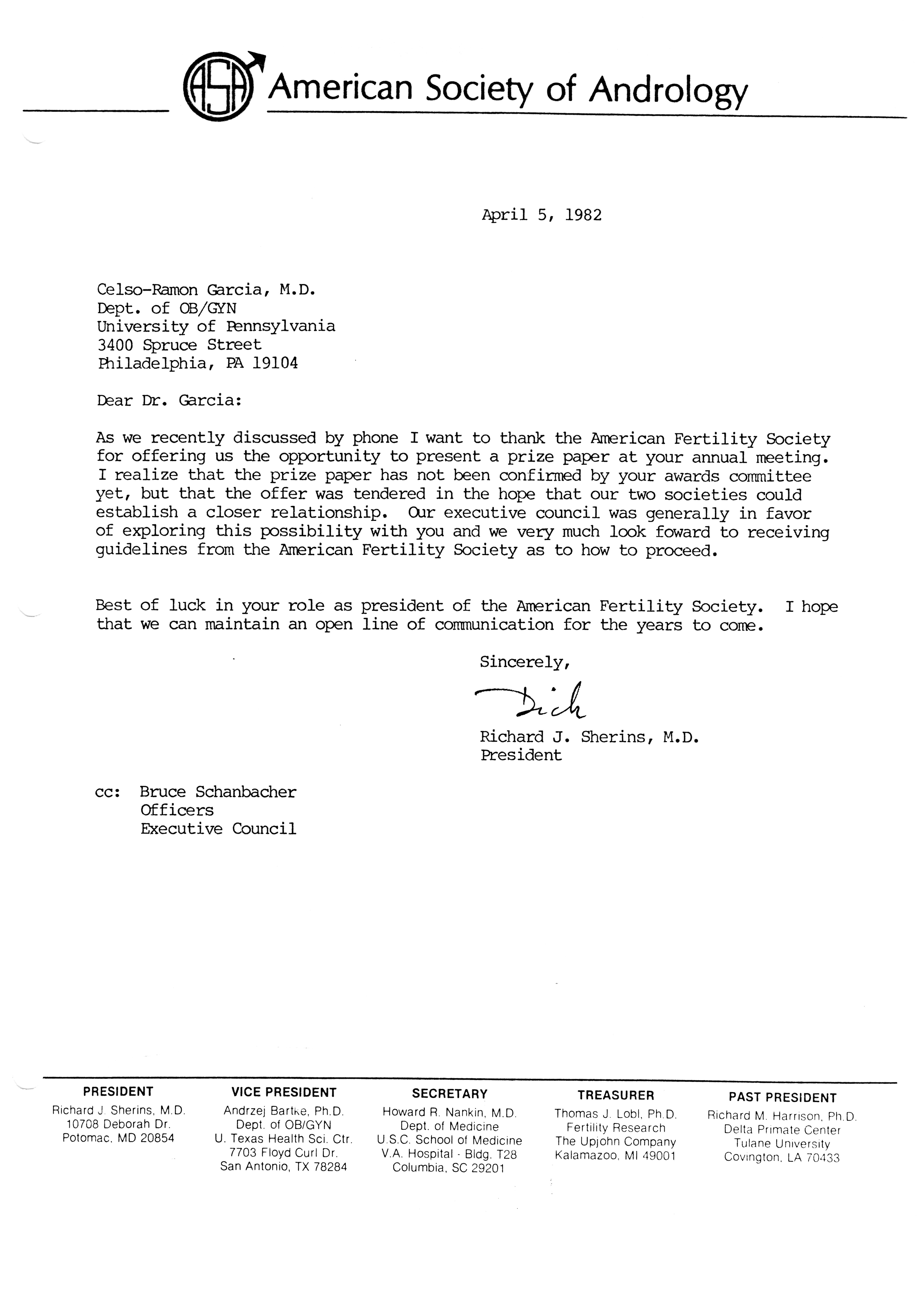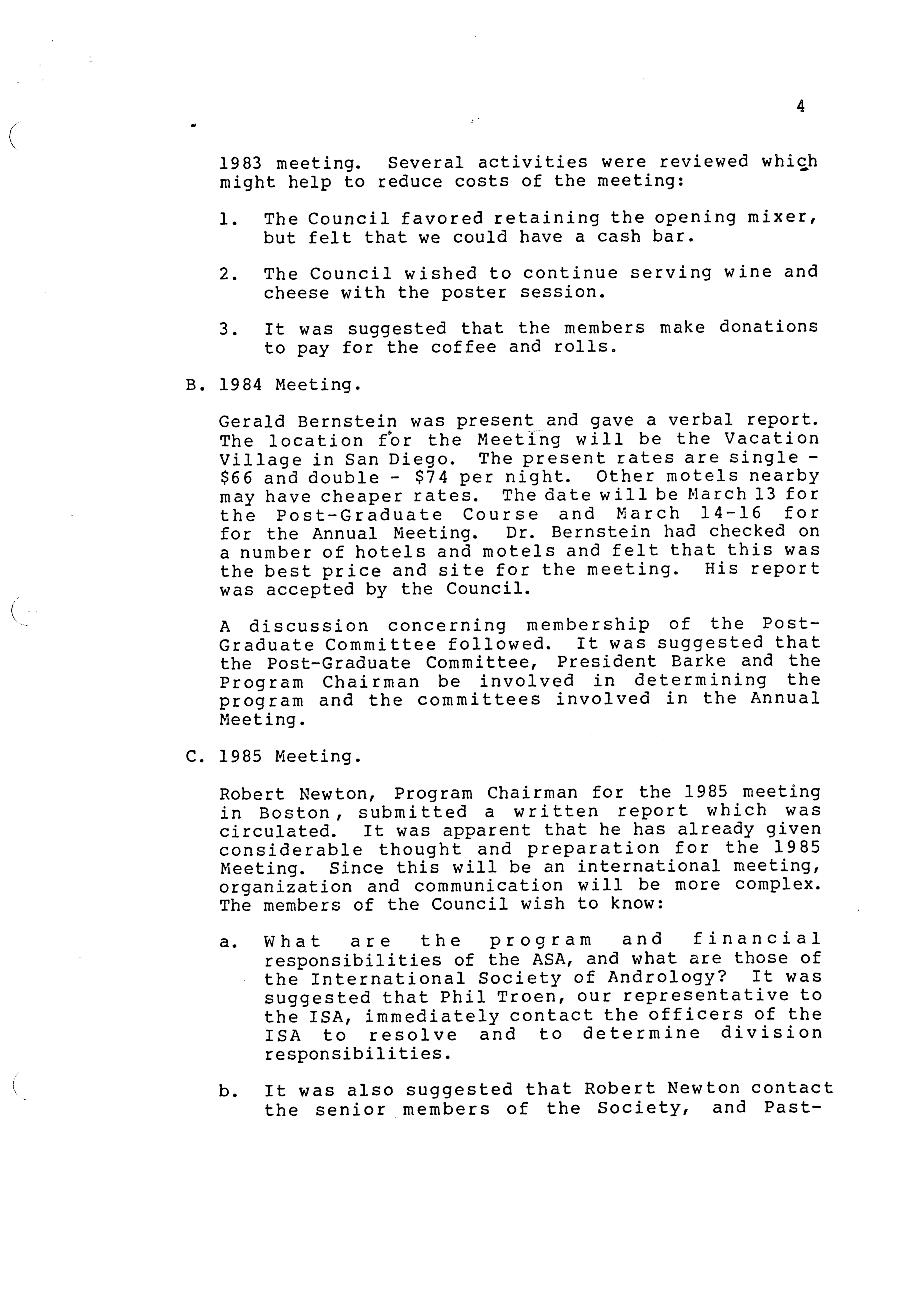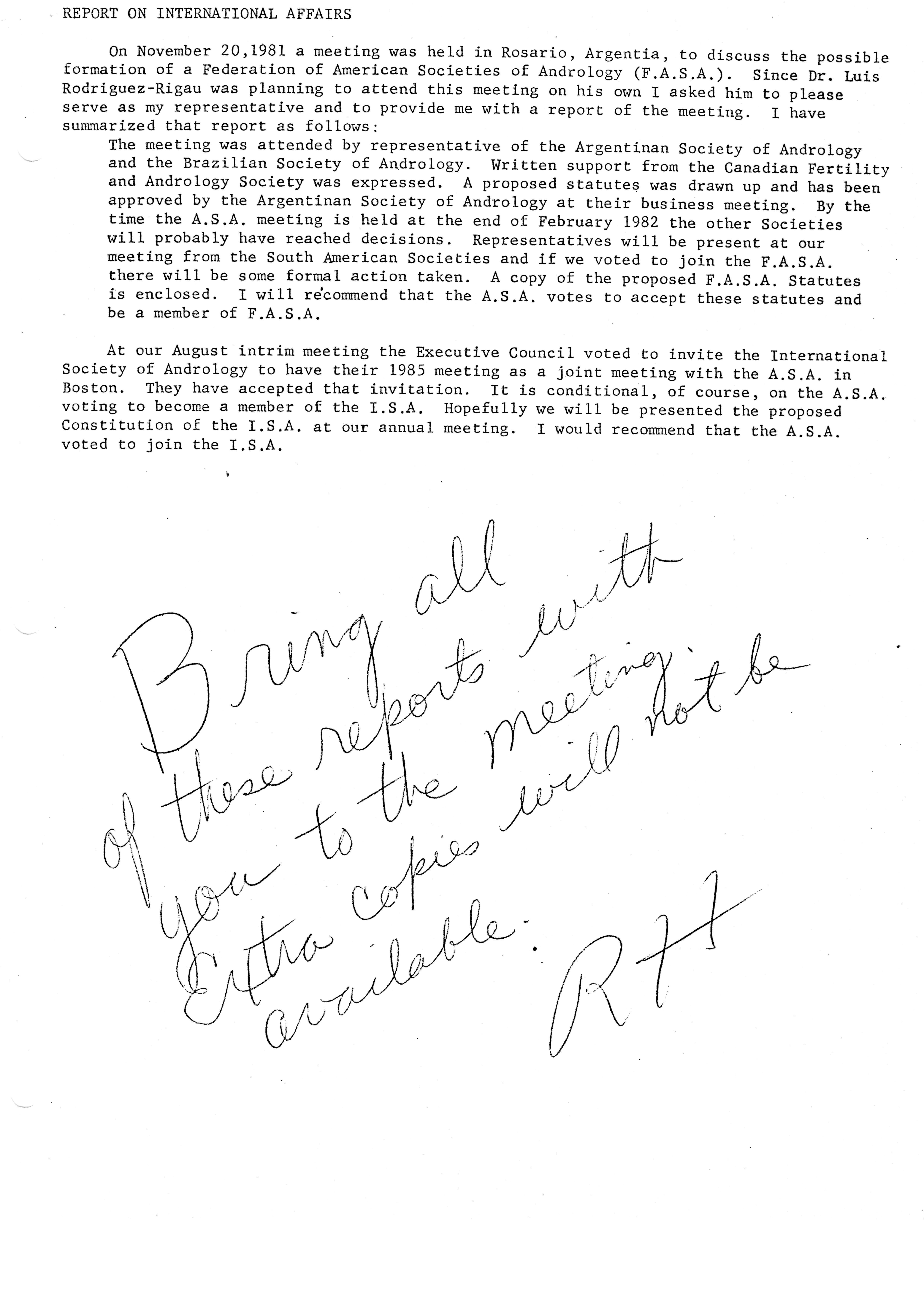 - "Executive Council Meetings of the American Society of Andrology, 1982", American Society of Andrology Collection, Iowa State University Library Digital Collections