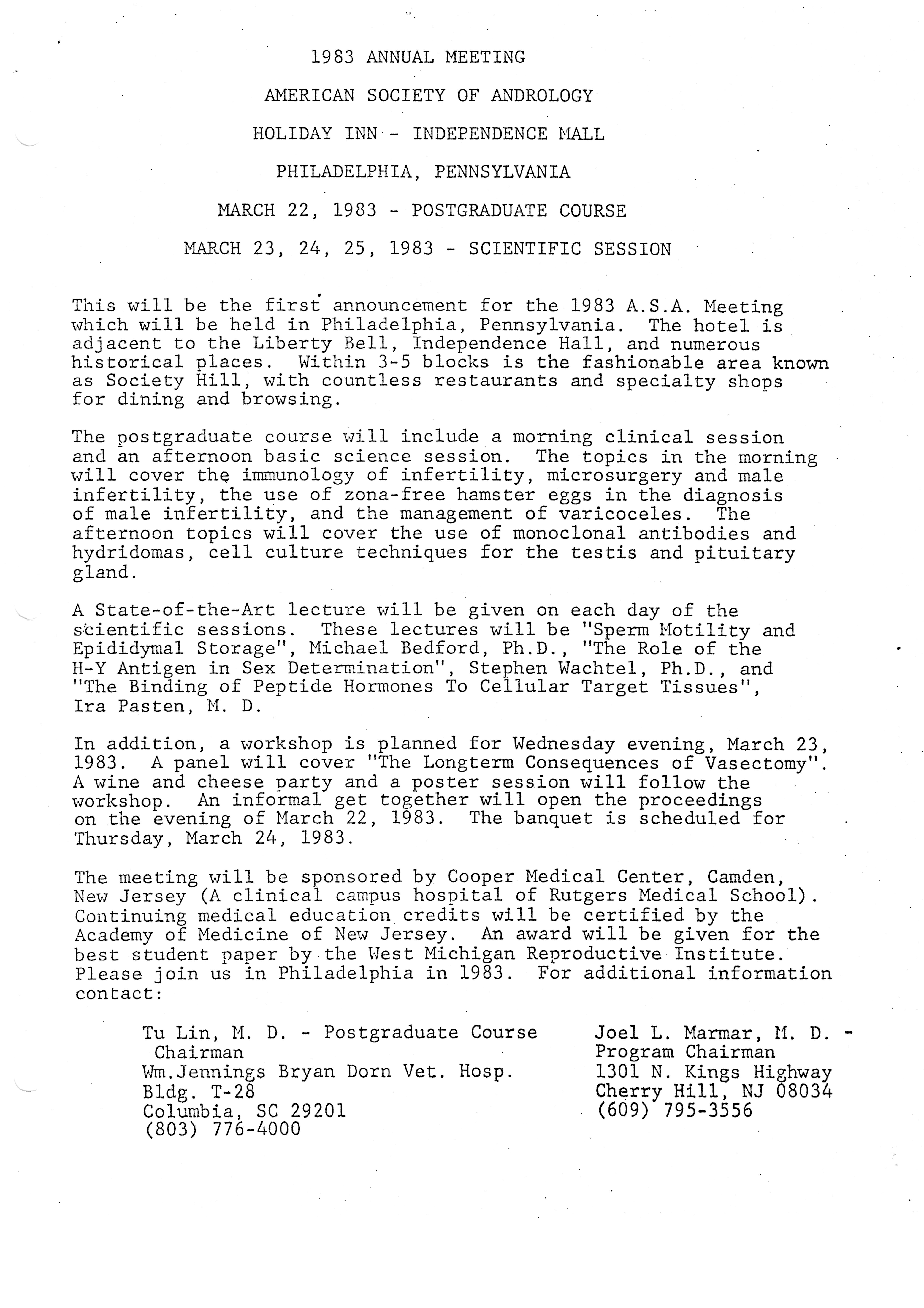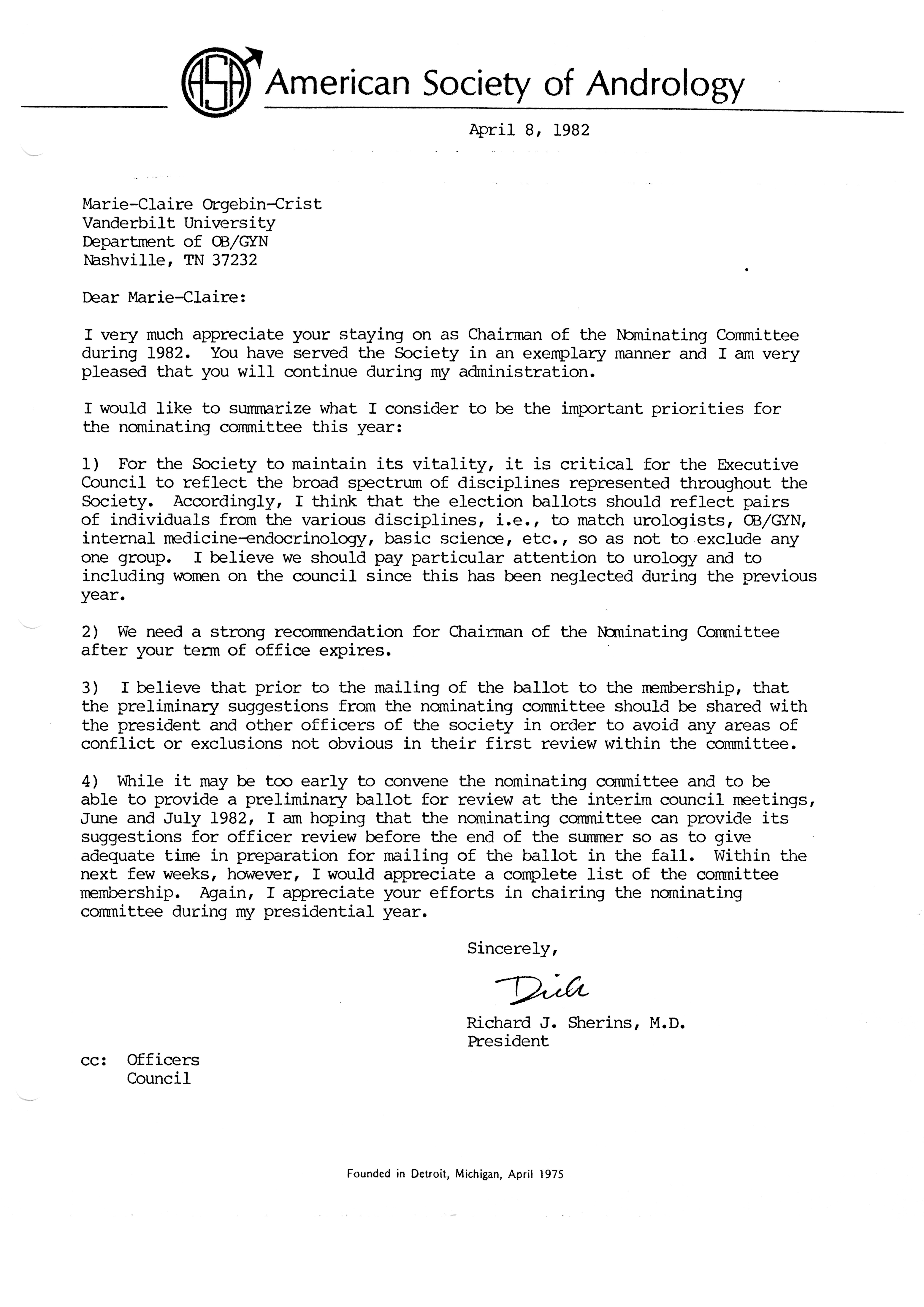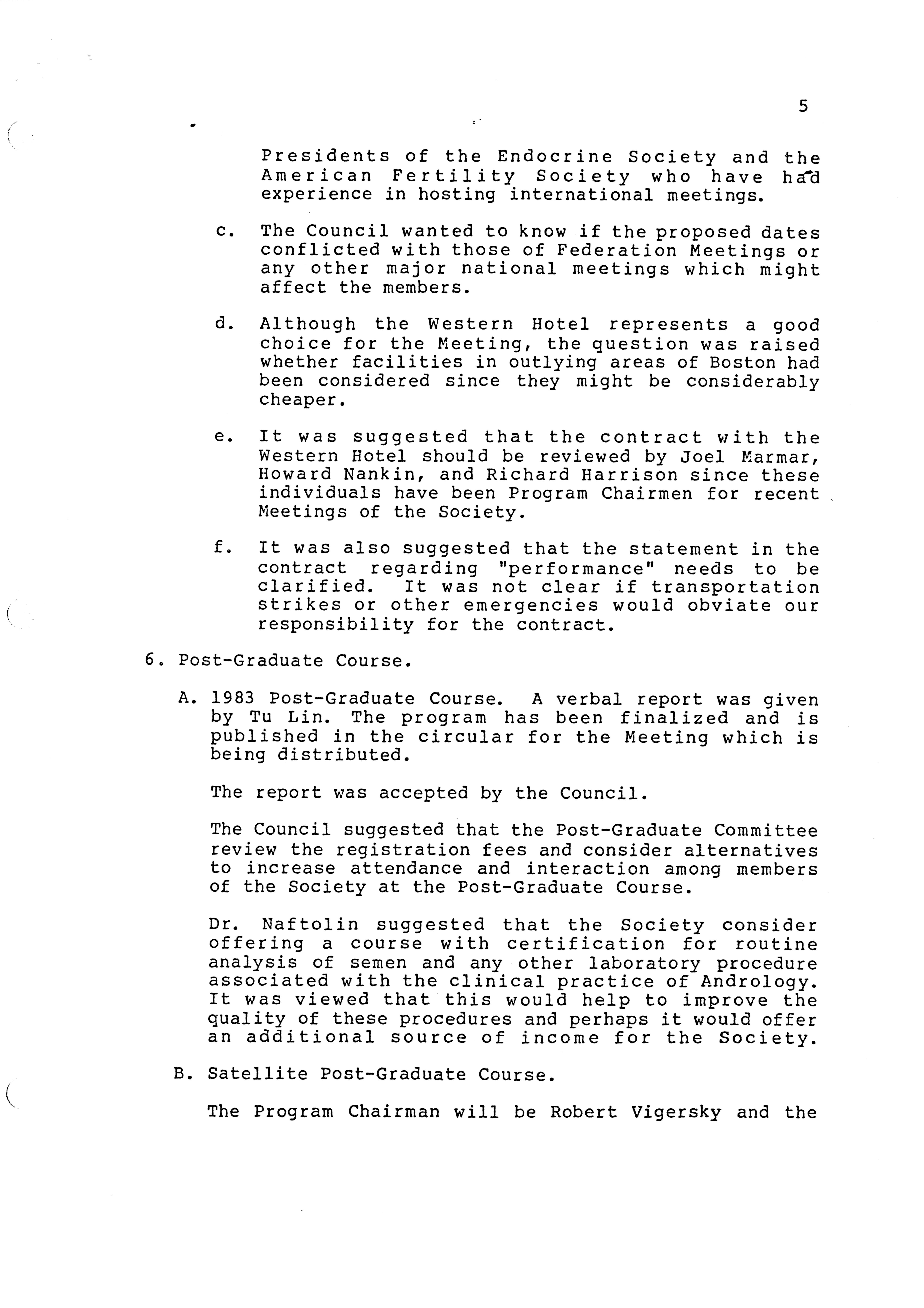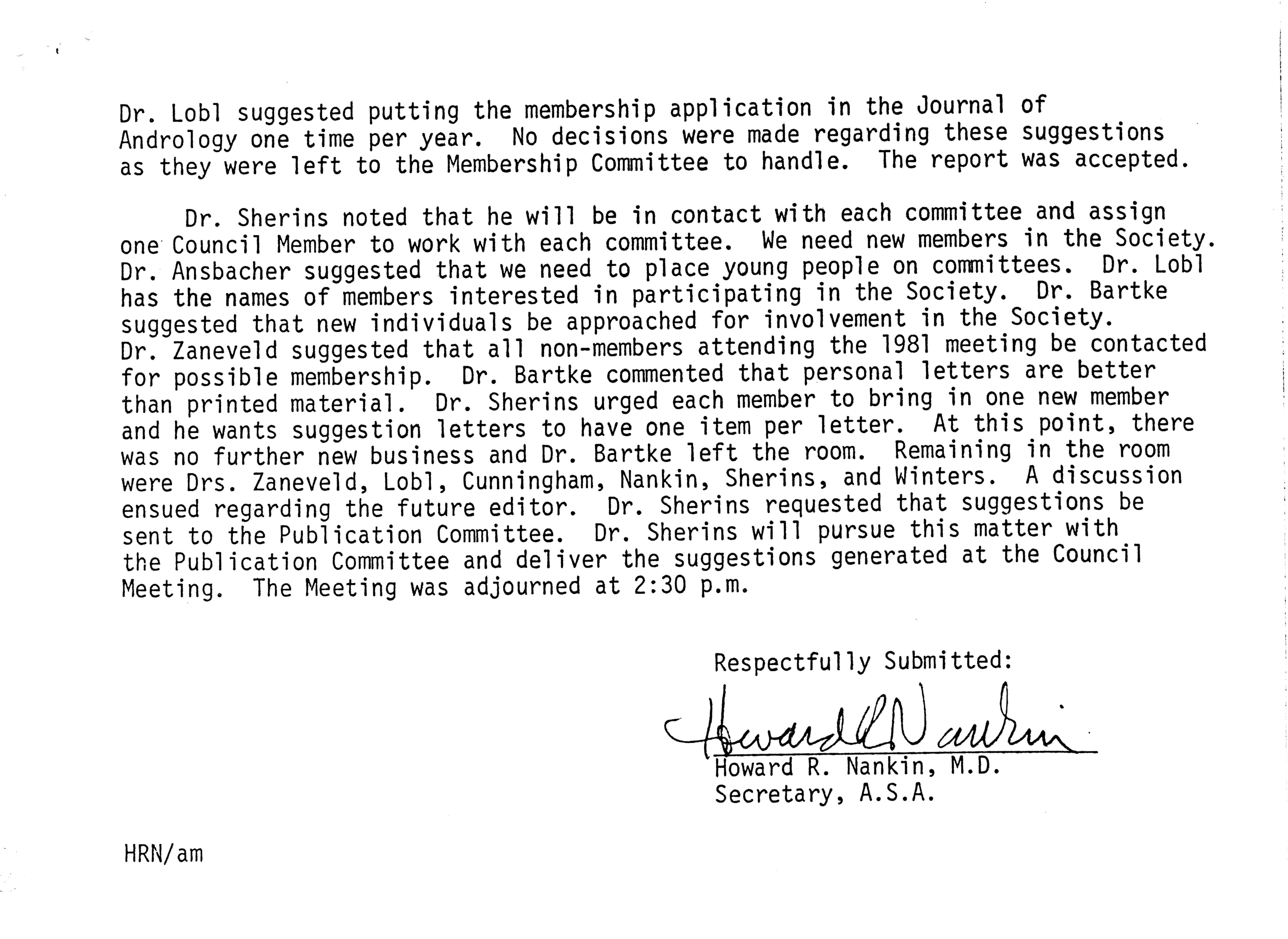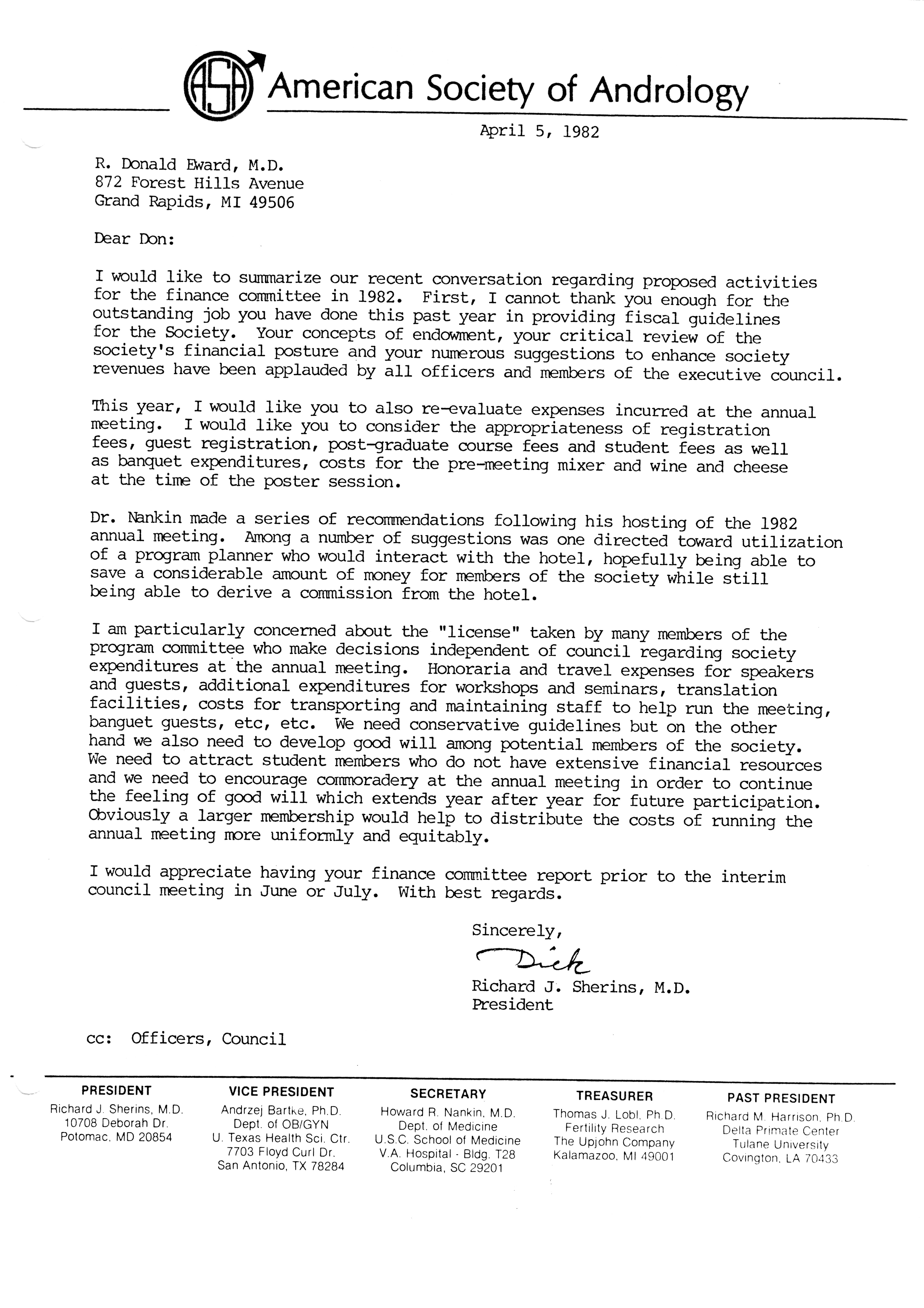 - "Executive Council Meetings of the American Society of Andrology, 1982", American Society of Andrology Collection, Iowa State University Library Digital Collections