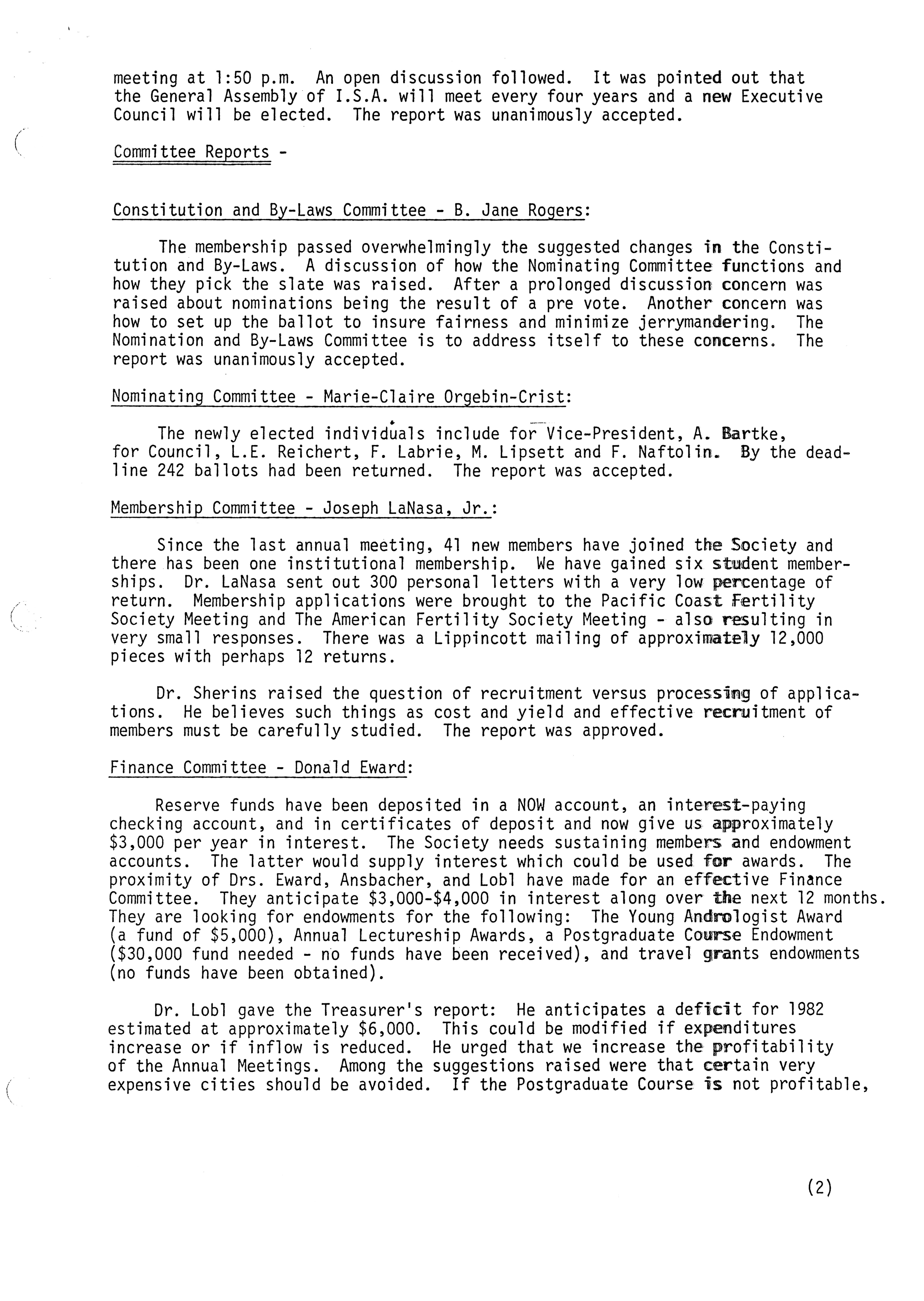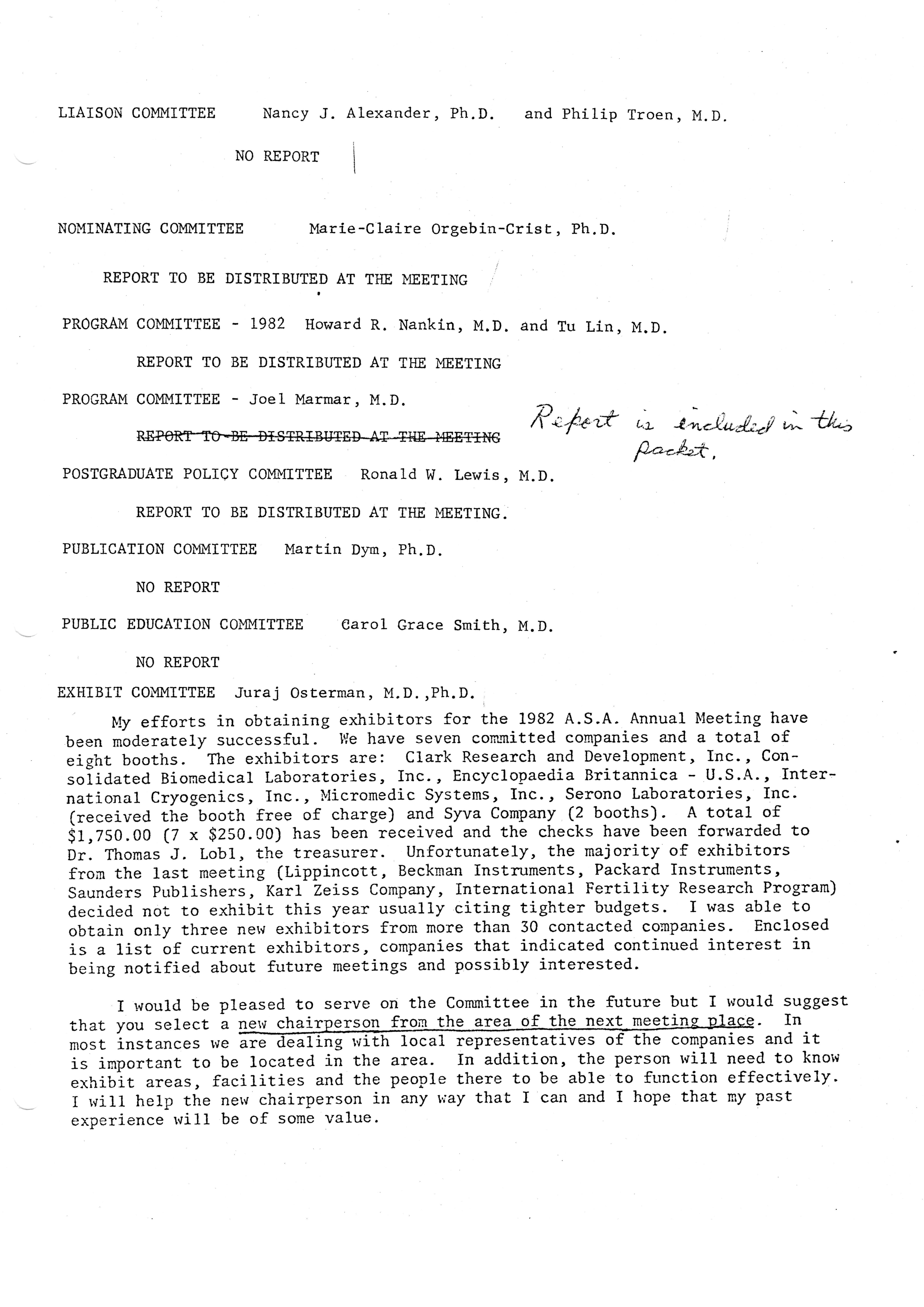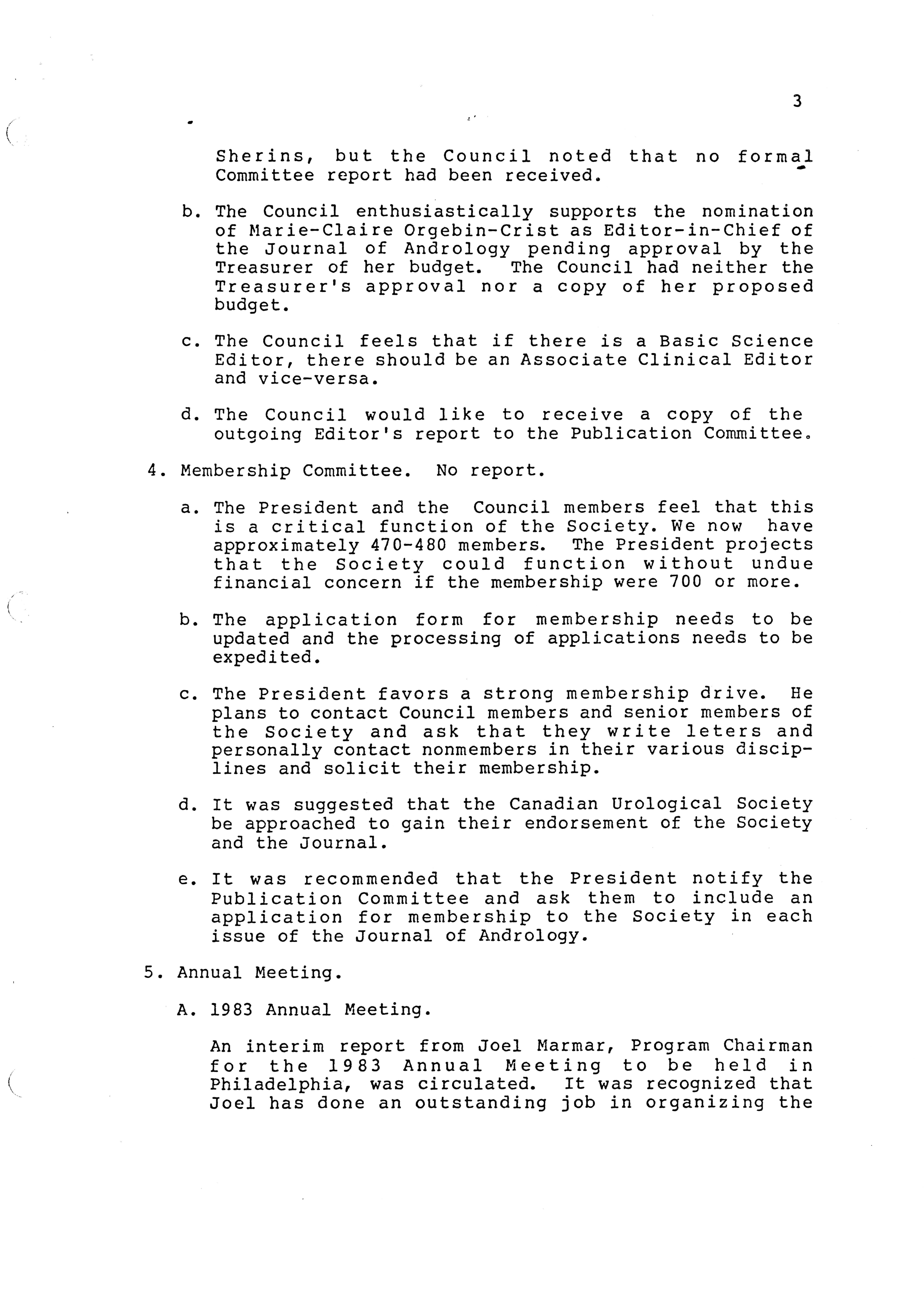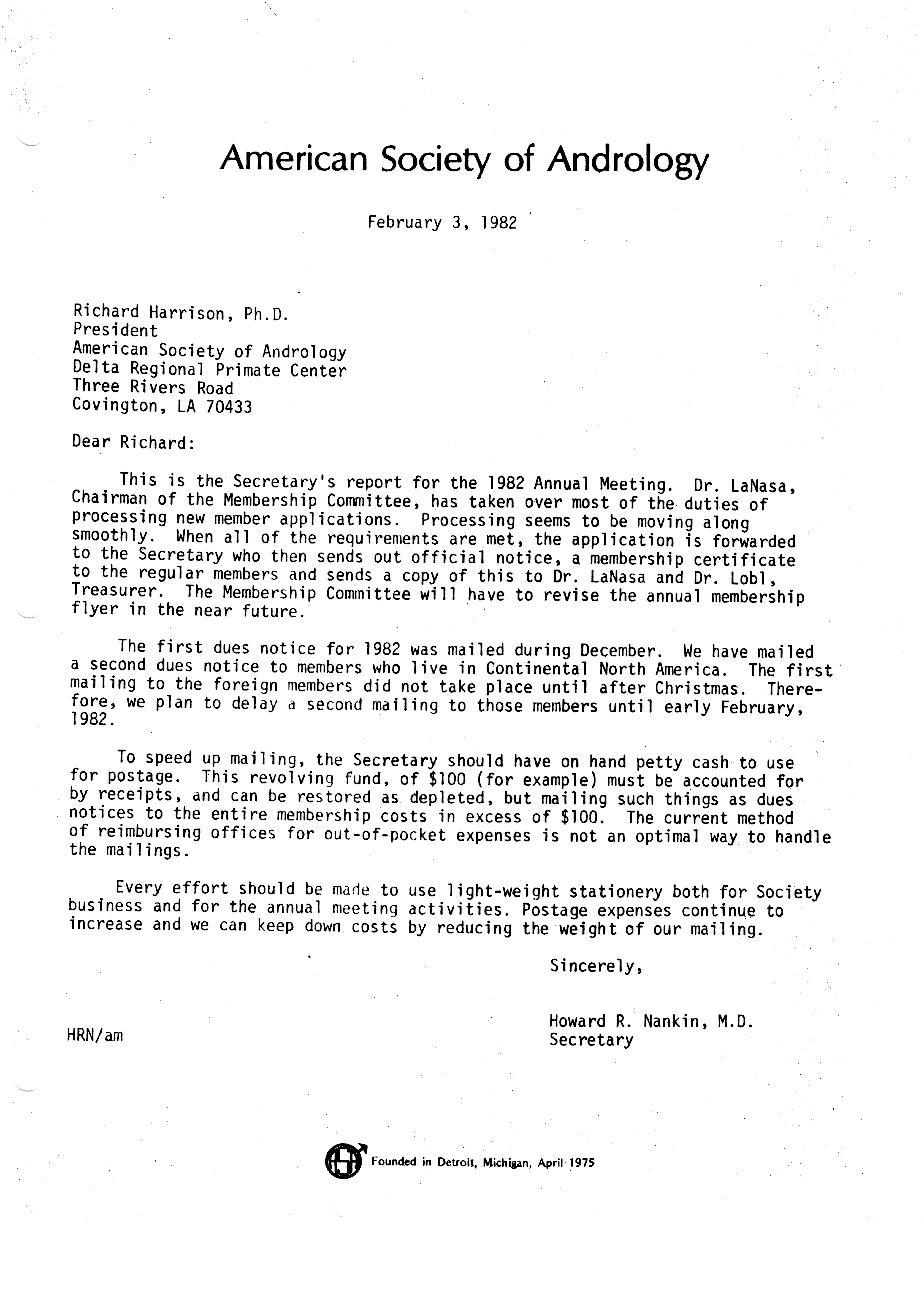 - "Executive Council Meetings of the American Society of Andrology, 1982", American Society of Andrology Collection, Iowa State University Library Digital Collections