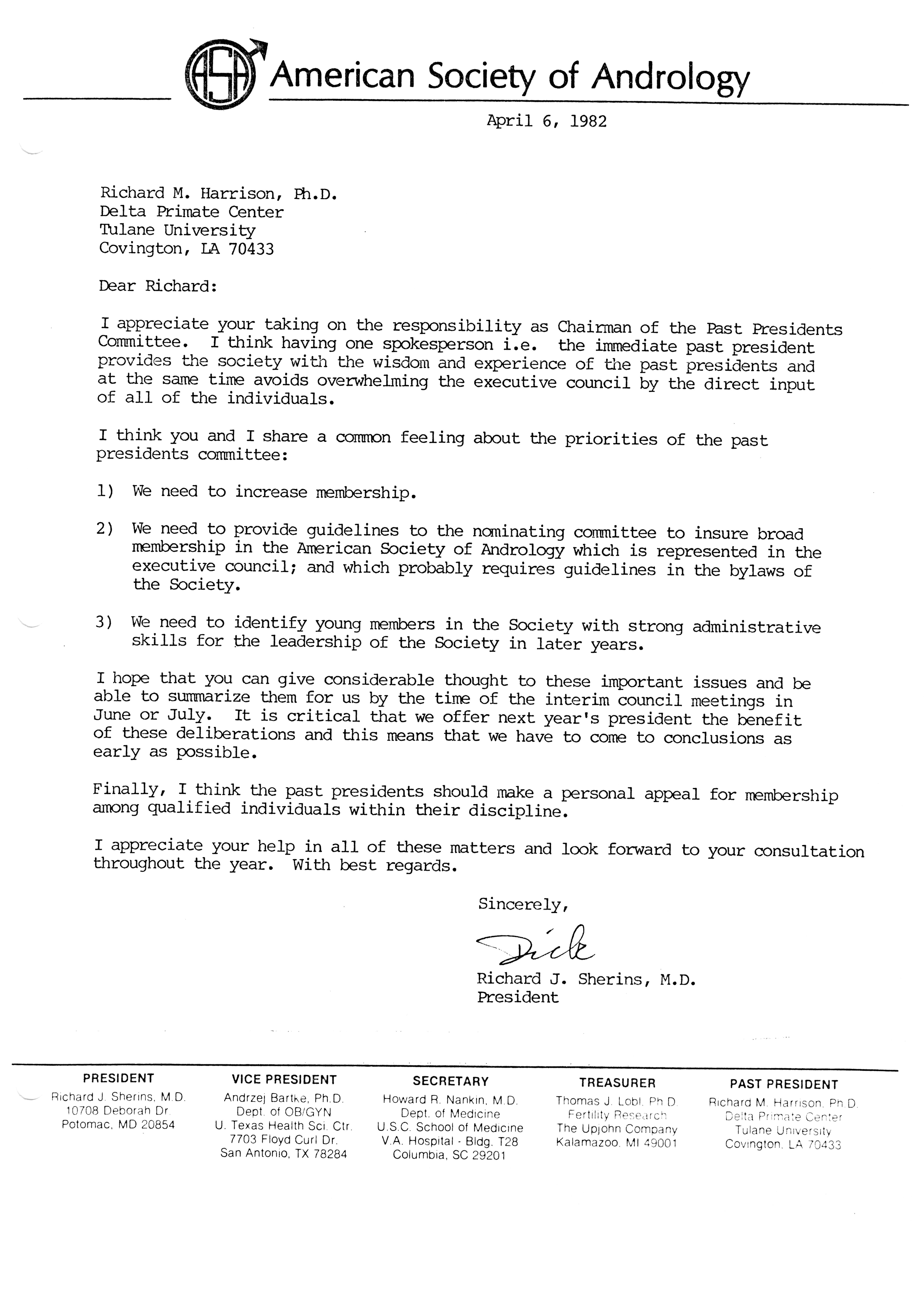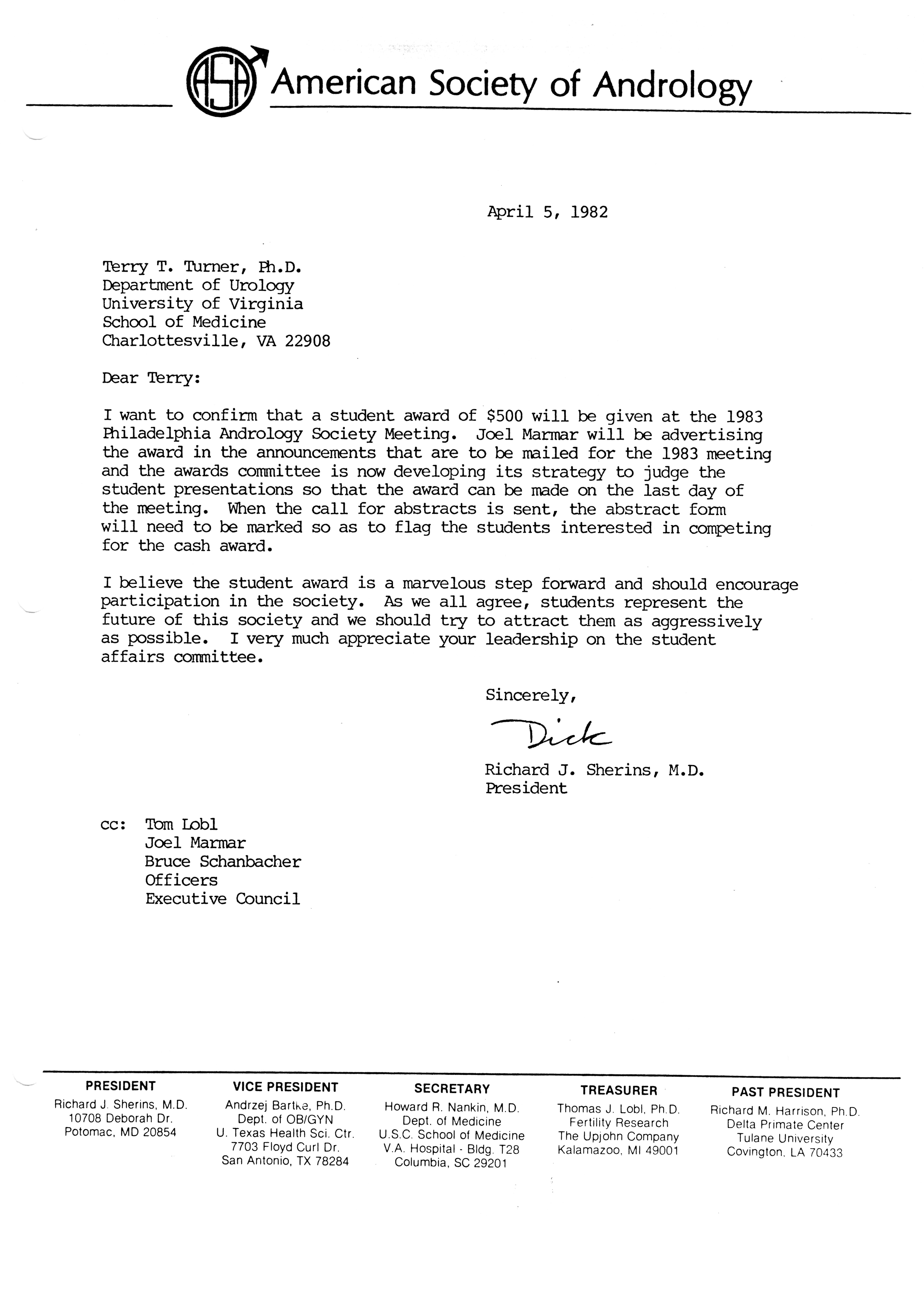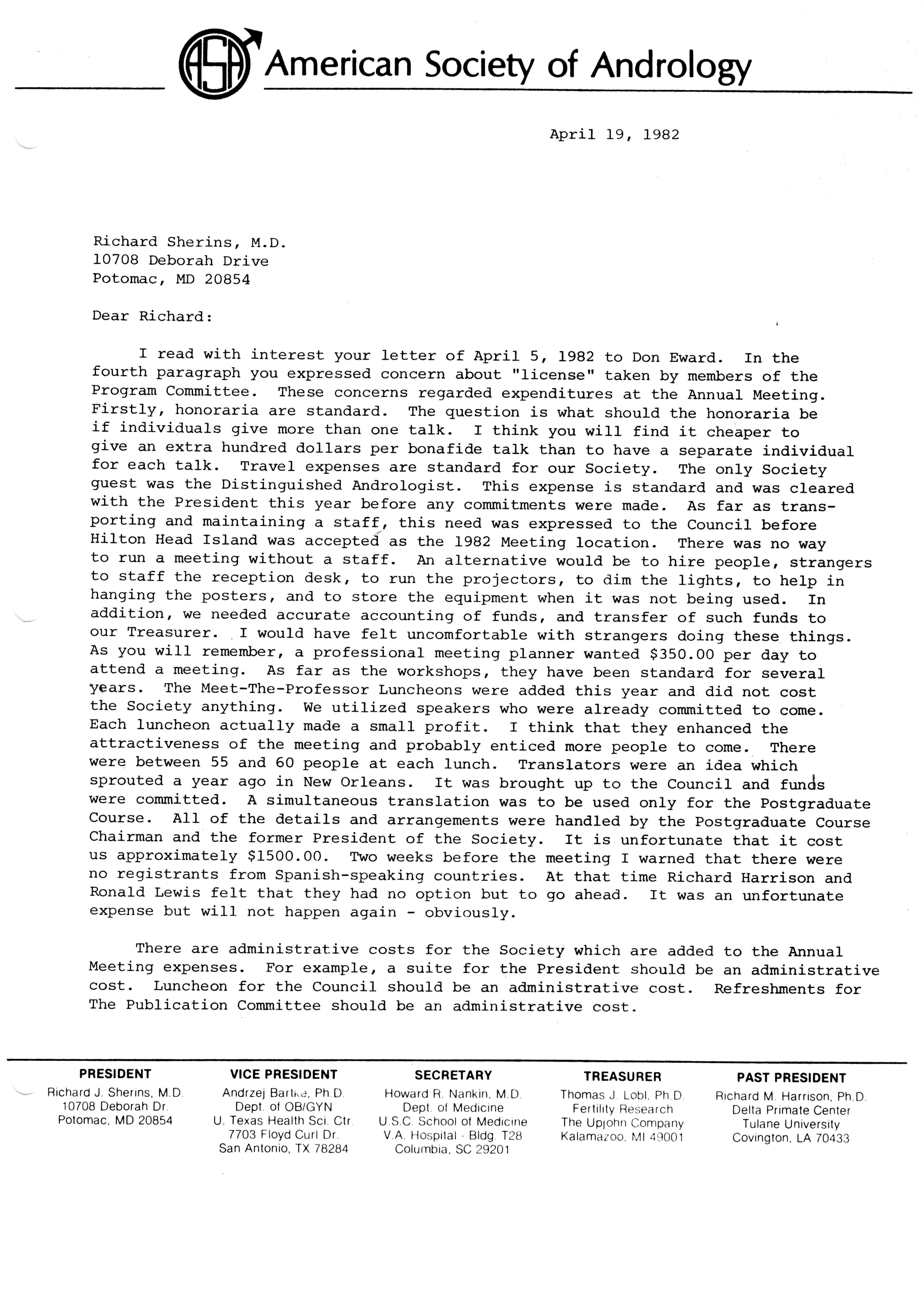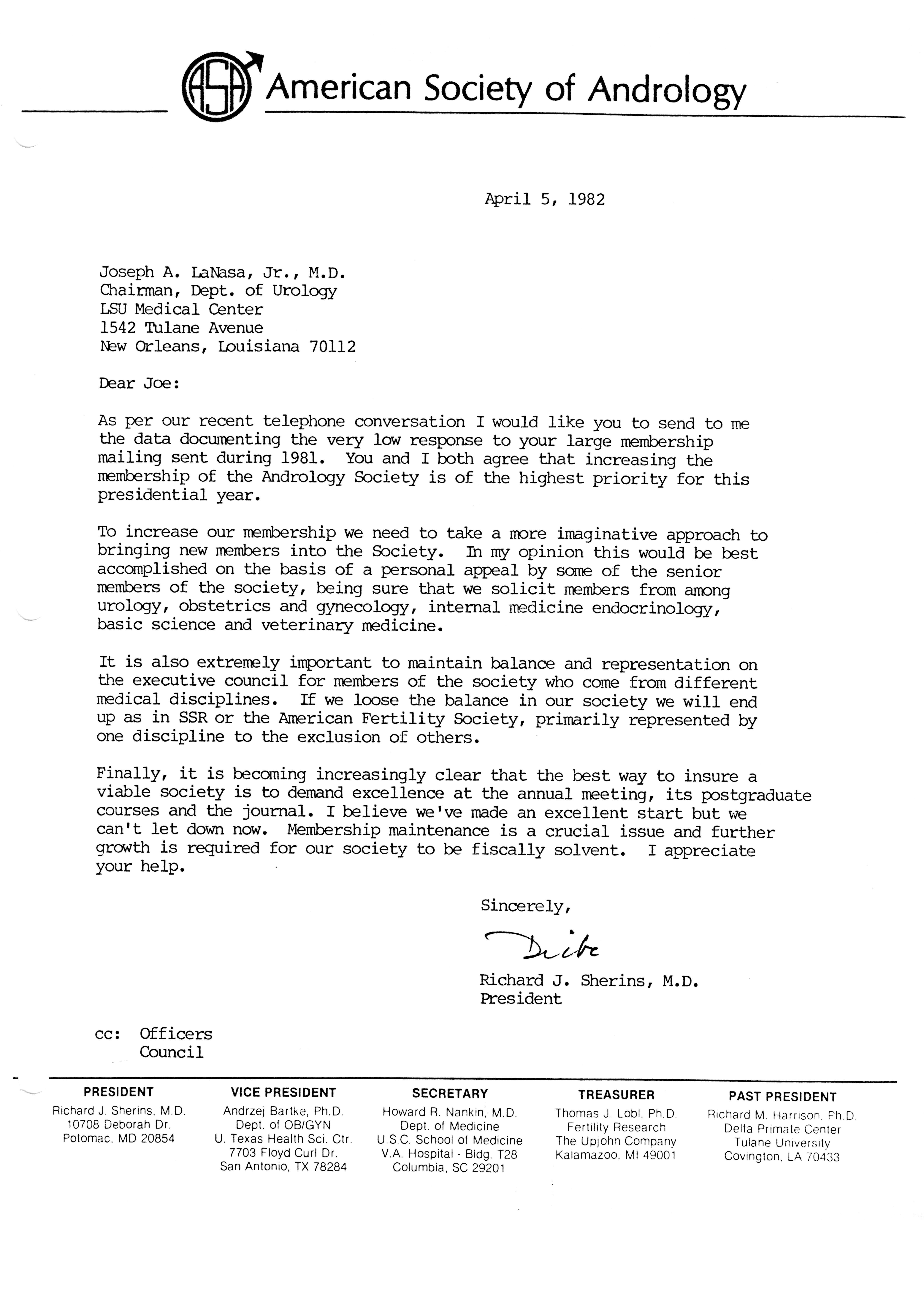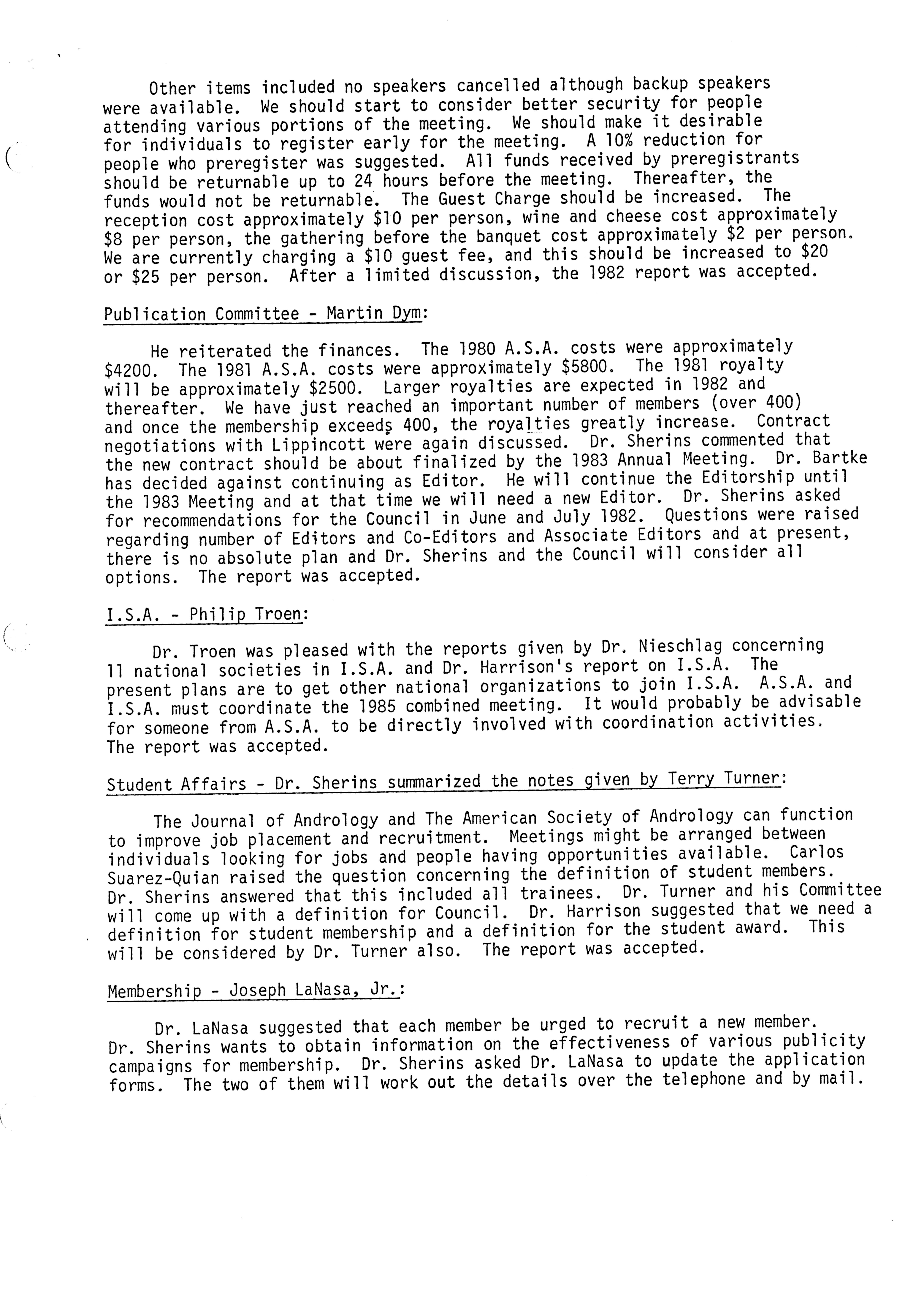 - "Executive Council Meetings of the American Society of Andrology, 1982", American Society of Andrology Collection, Iowa State University Library Digital Collections