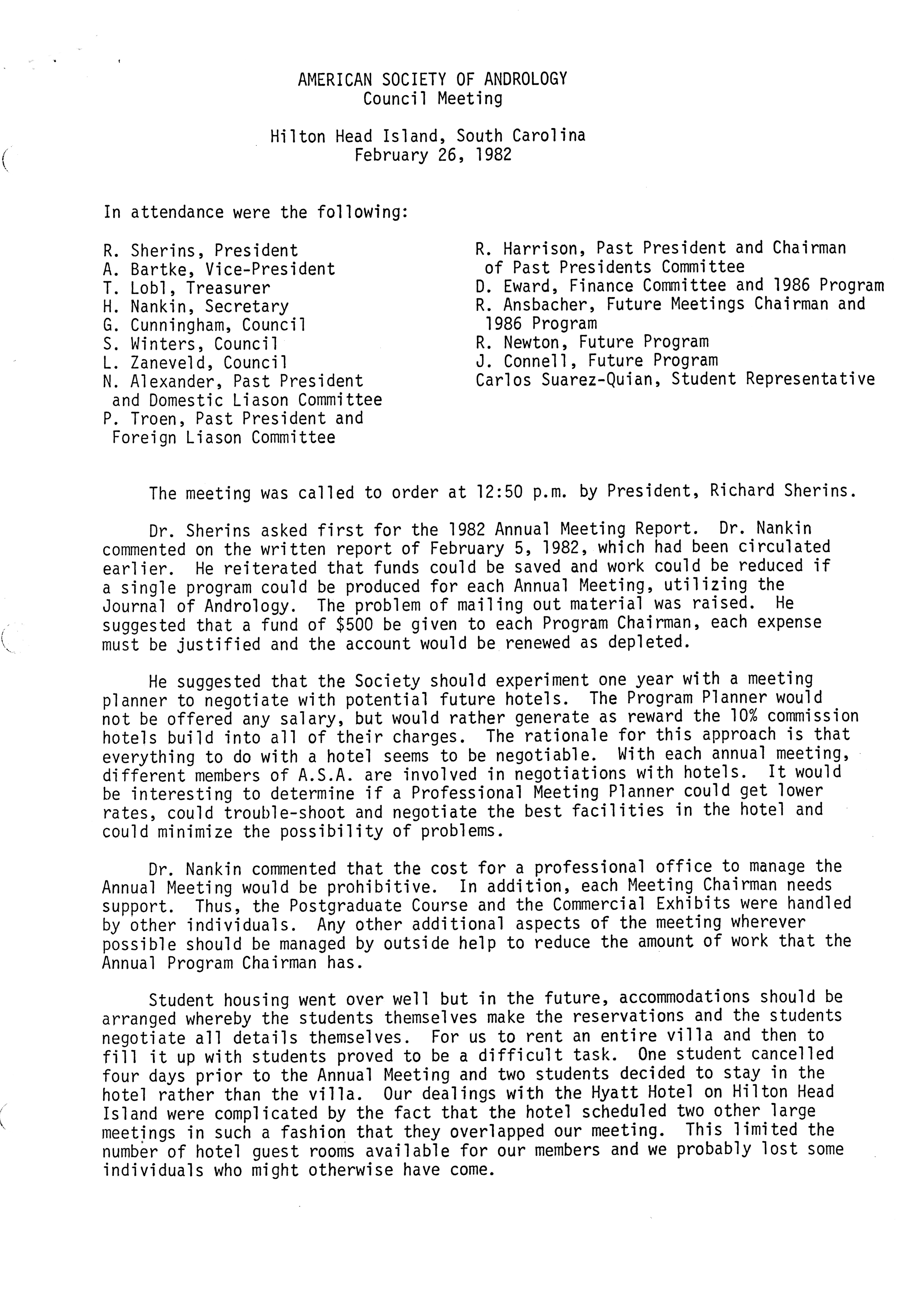 - Executive Council Meetings of the American Society of Andrology, 1982