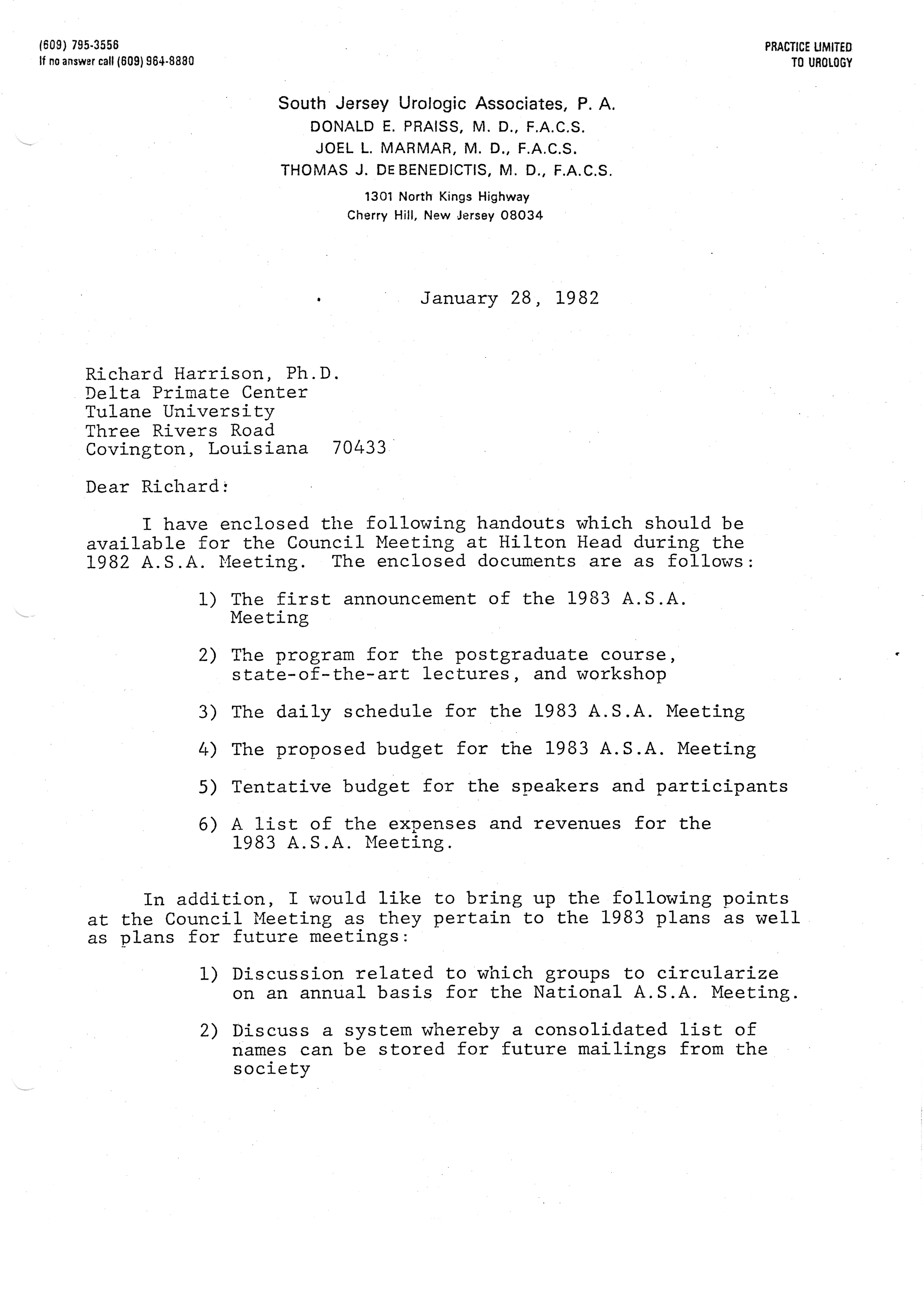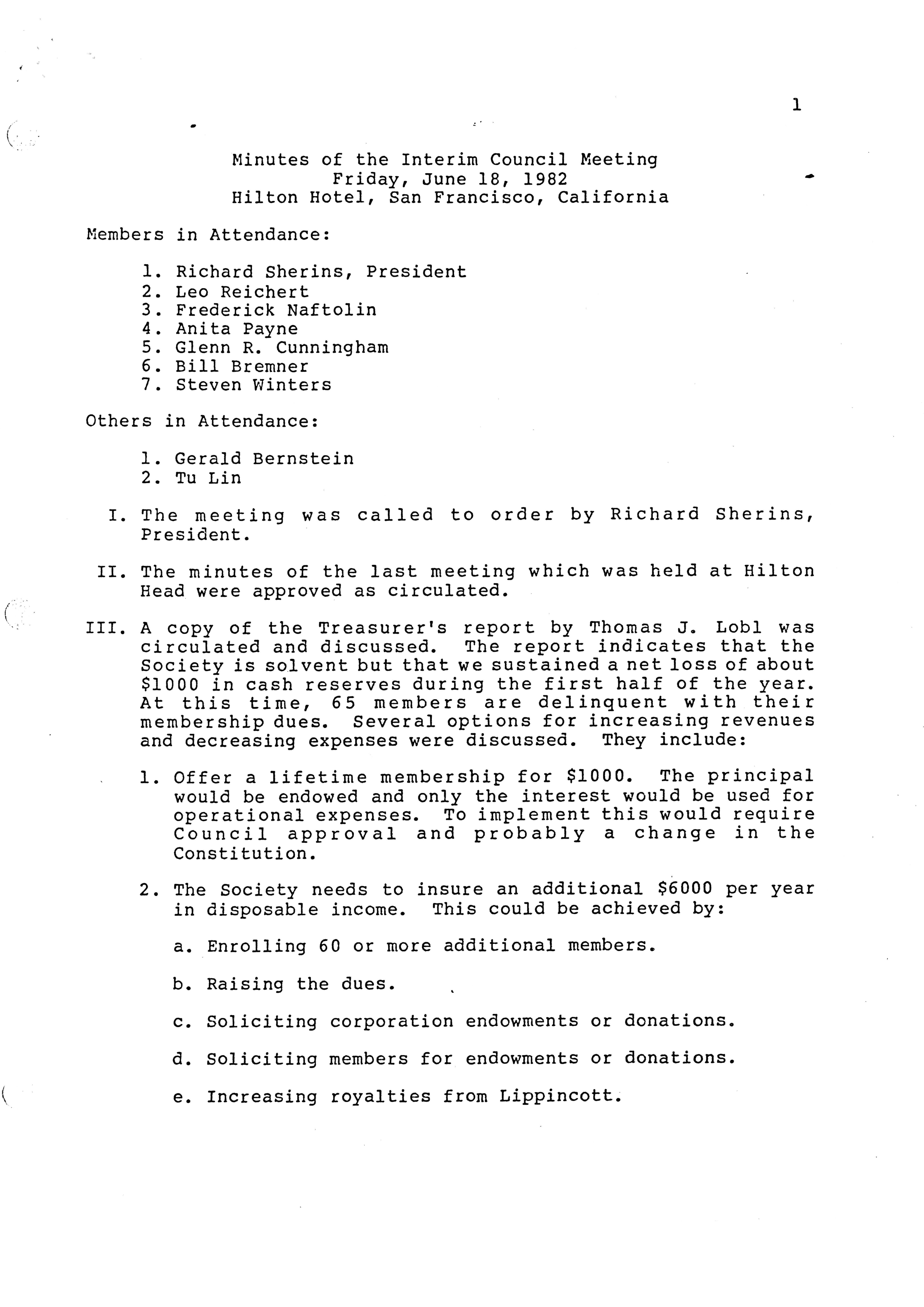 Executive Council Meetings of the American Society of Andrology, 1982 Item Info