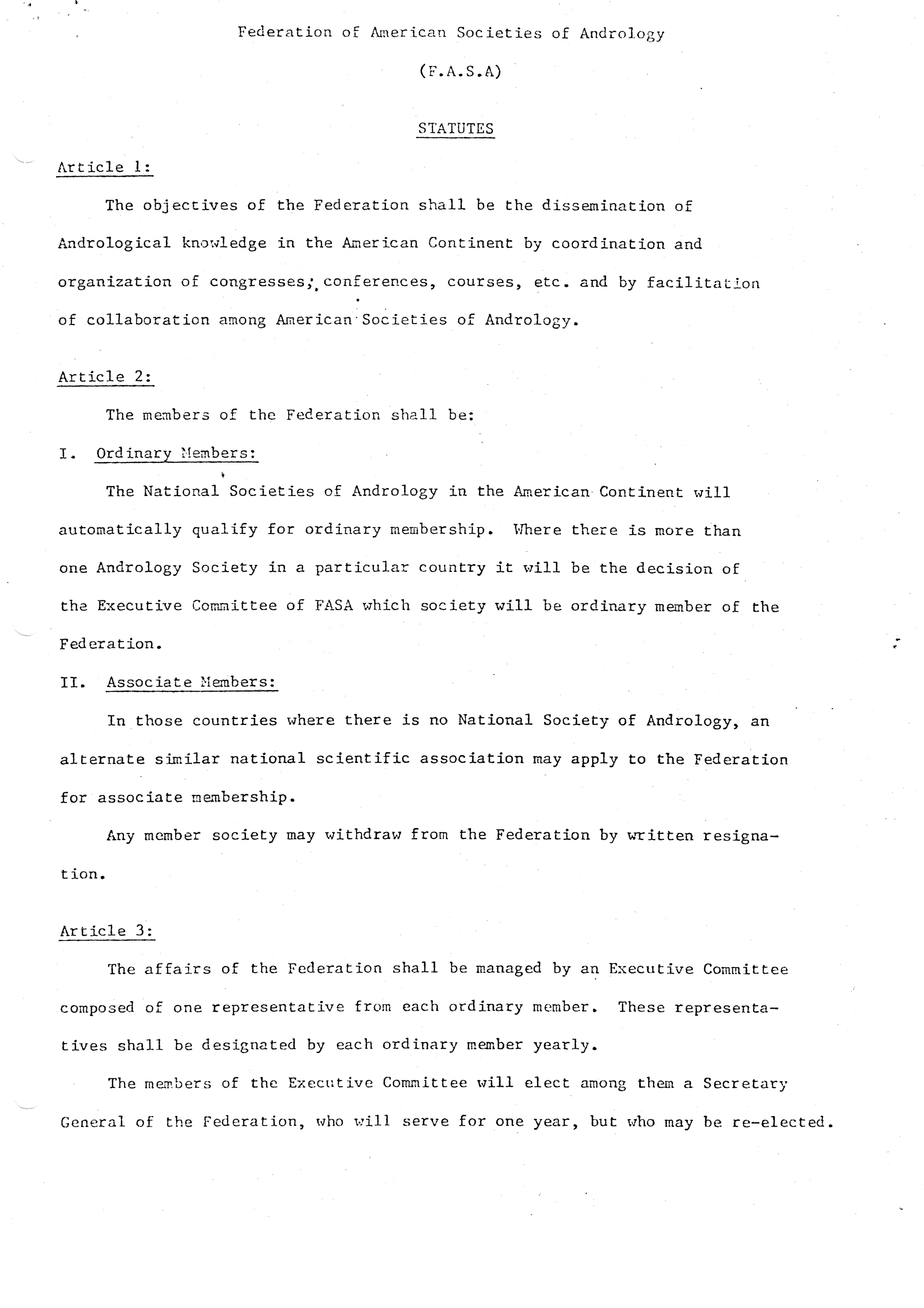 - Contains minutes (annual meeting and executive council), correspondence, officer and committee reports, and constitution of the Federation of American Societies of Andrology.
