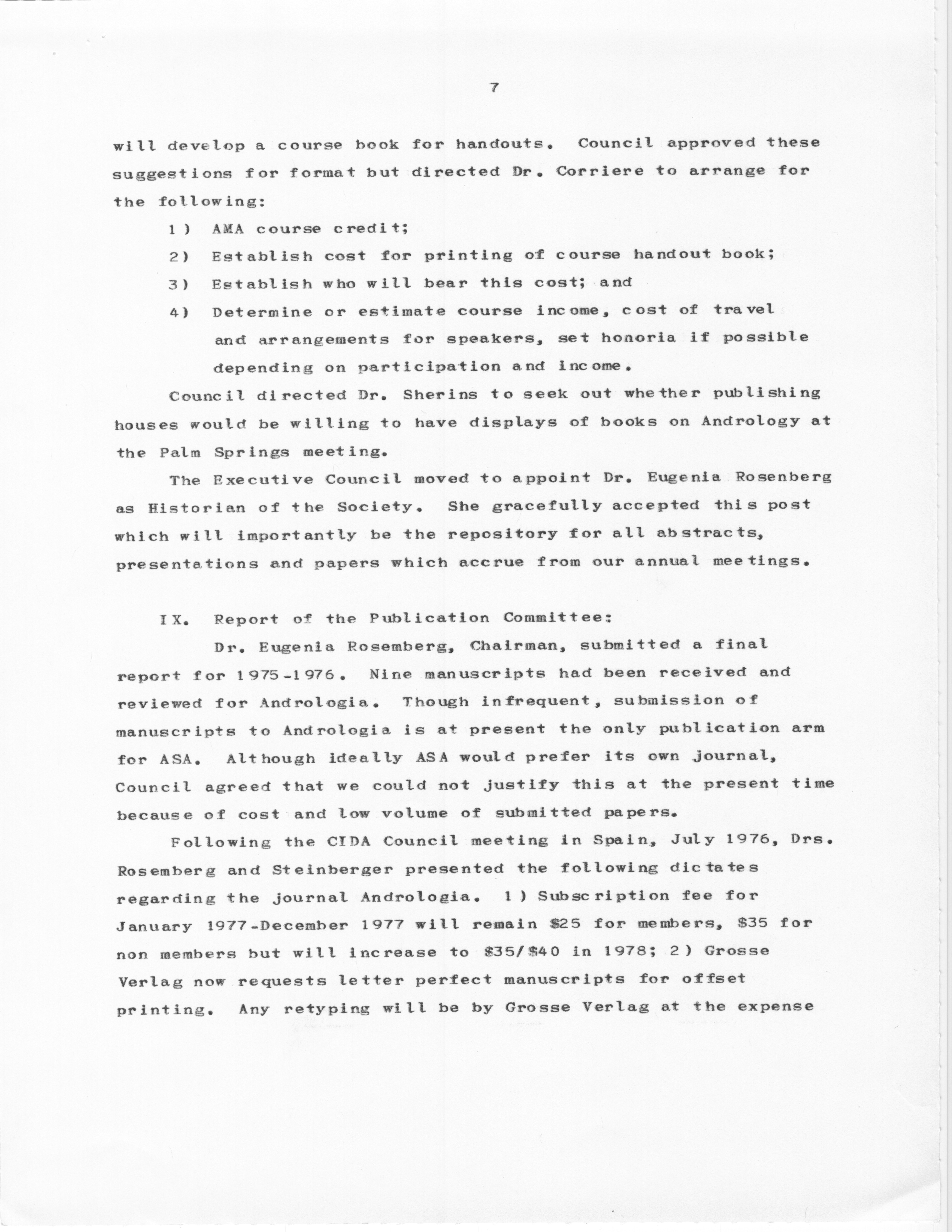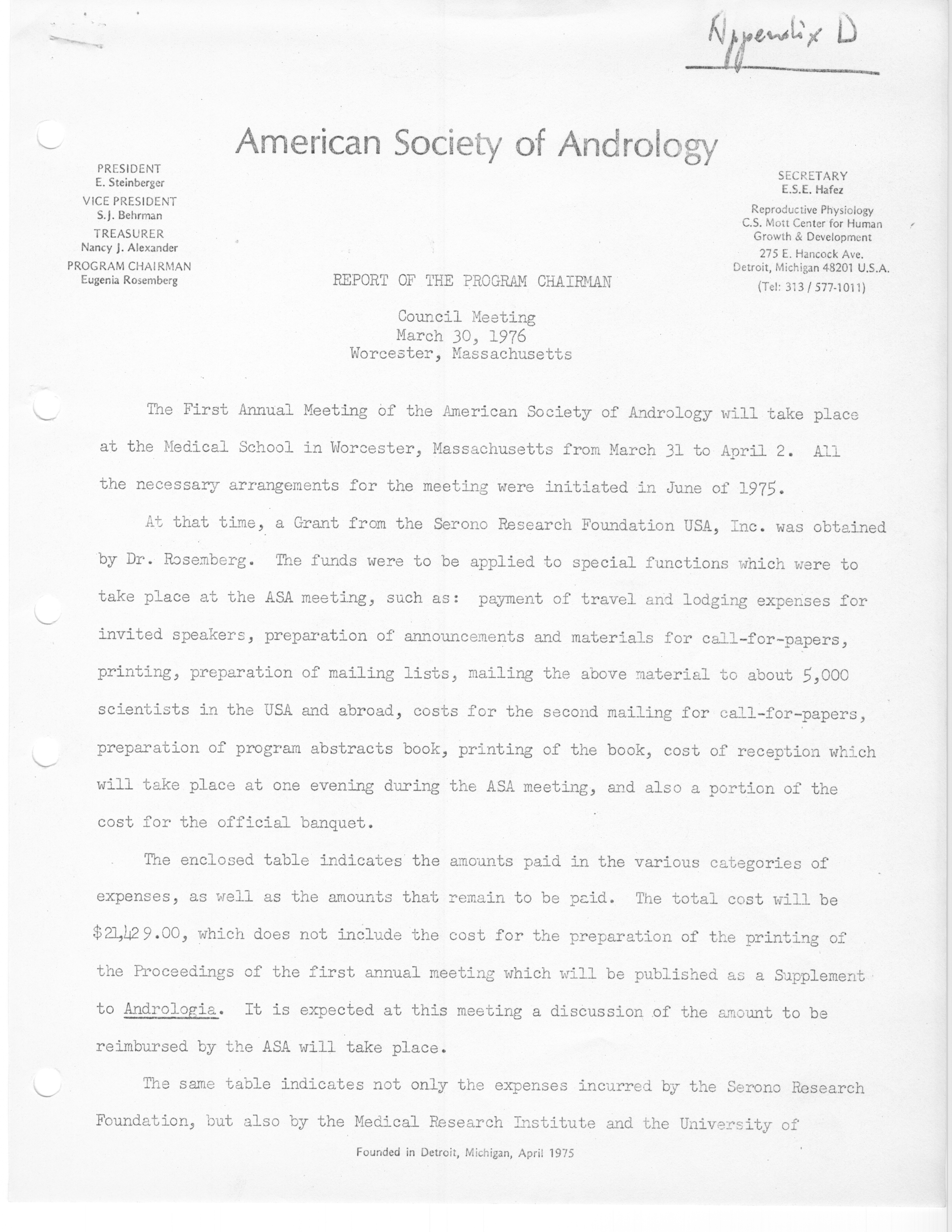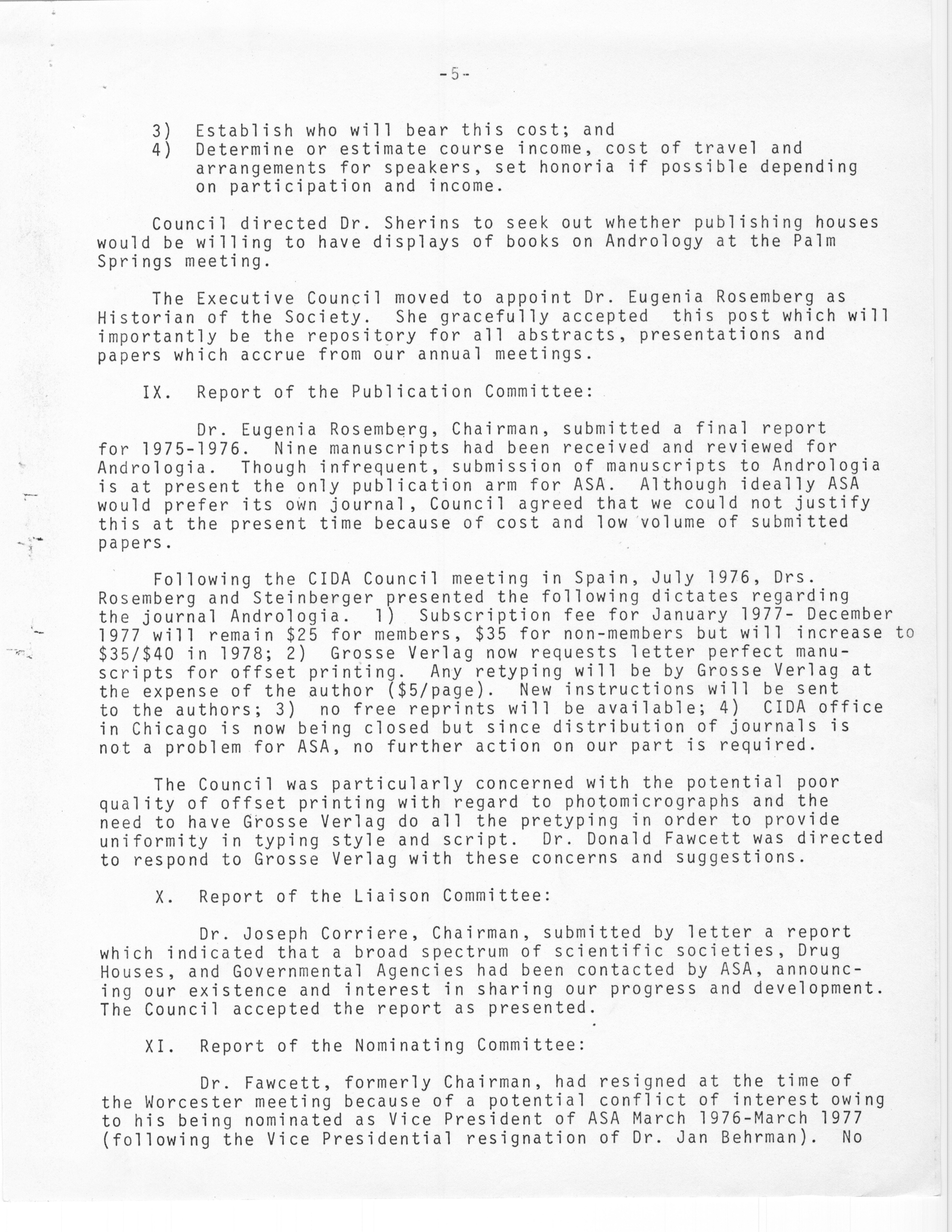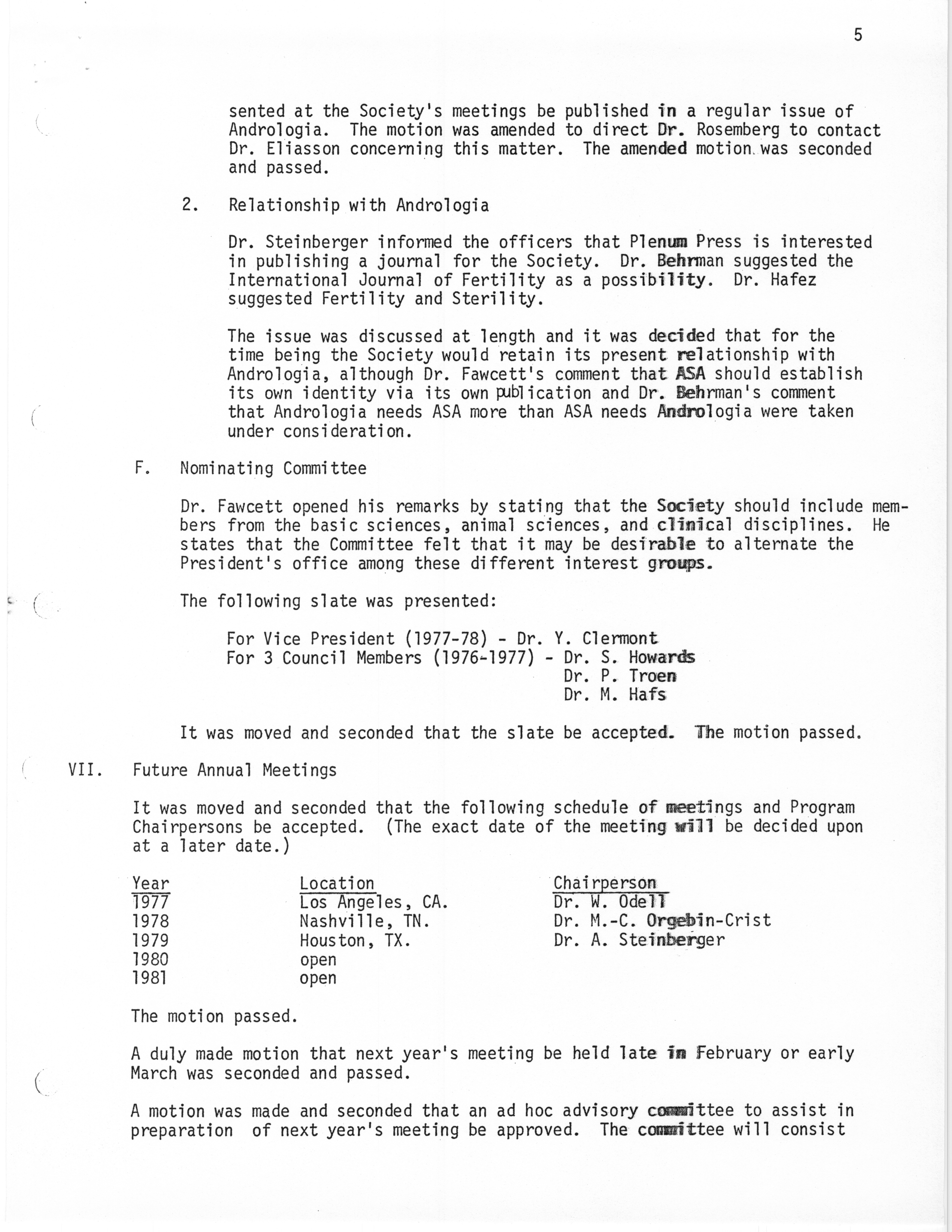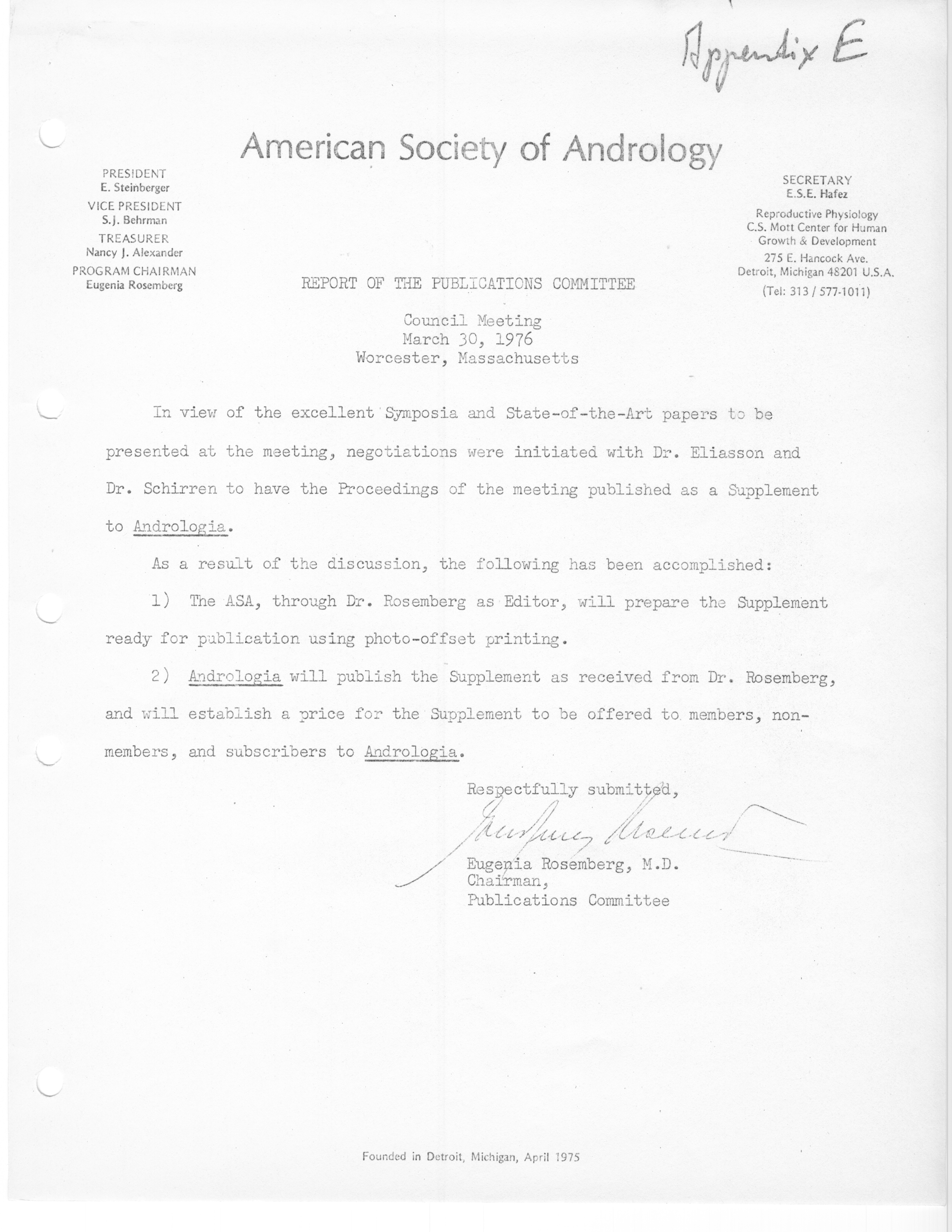 - "Executive Council Meetings of the American Society of Andrology, 1976", American Society of Andrology Collection, Iowa State University Library Digital Collections