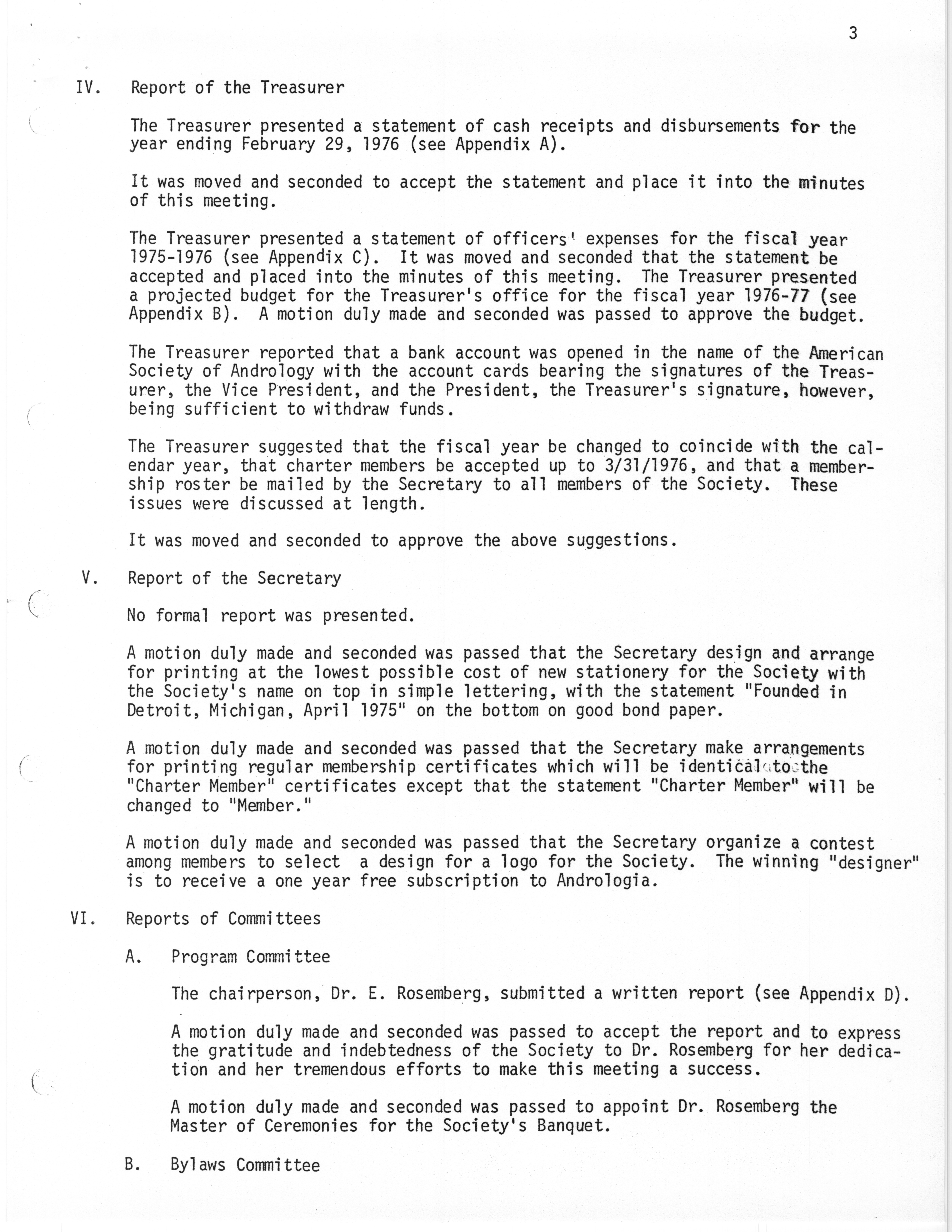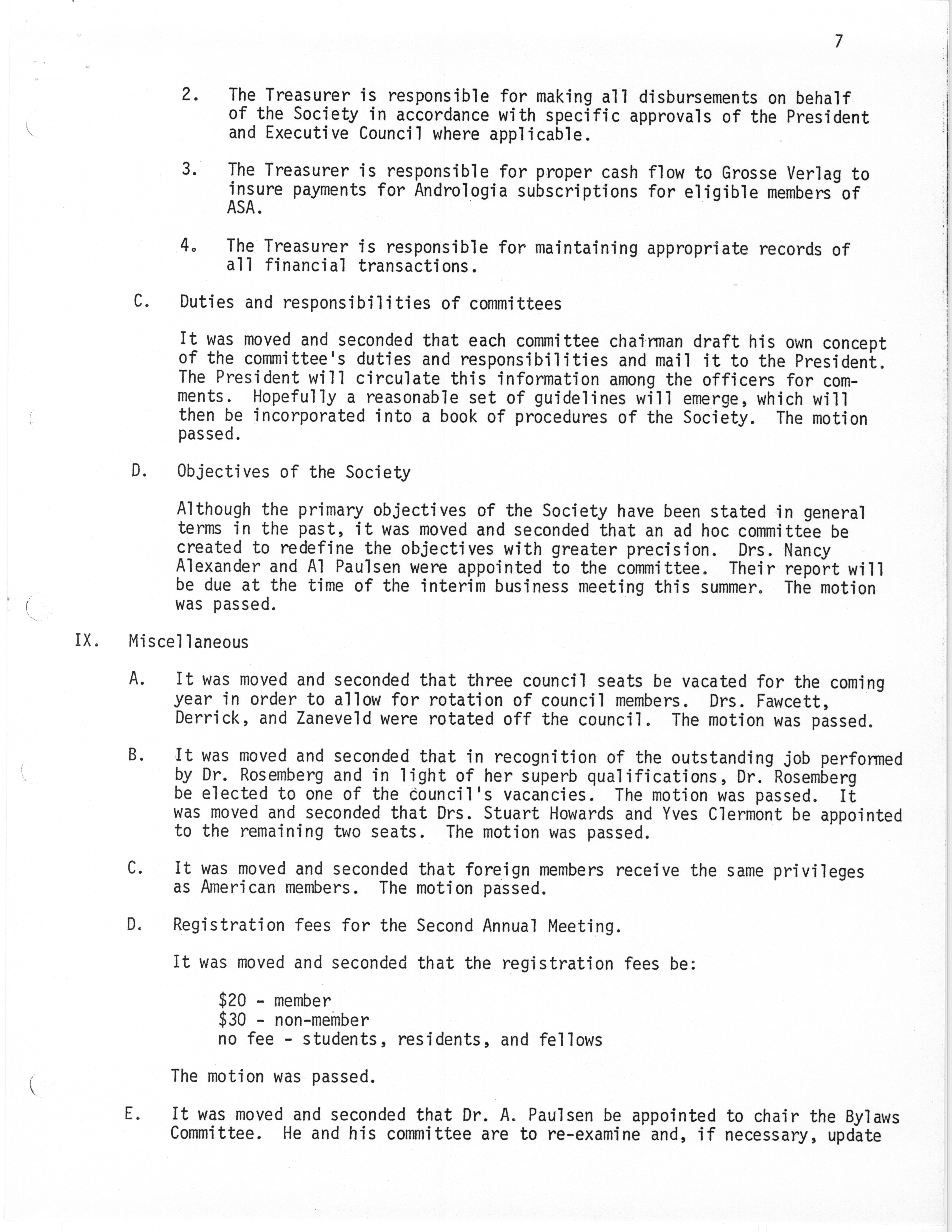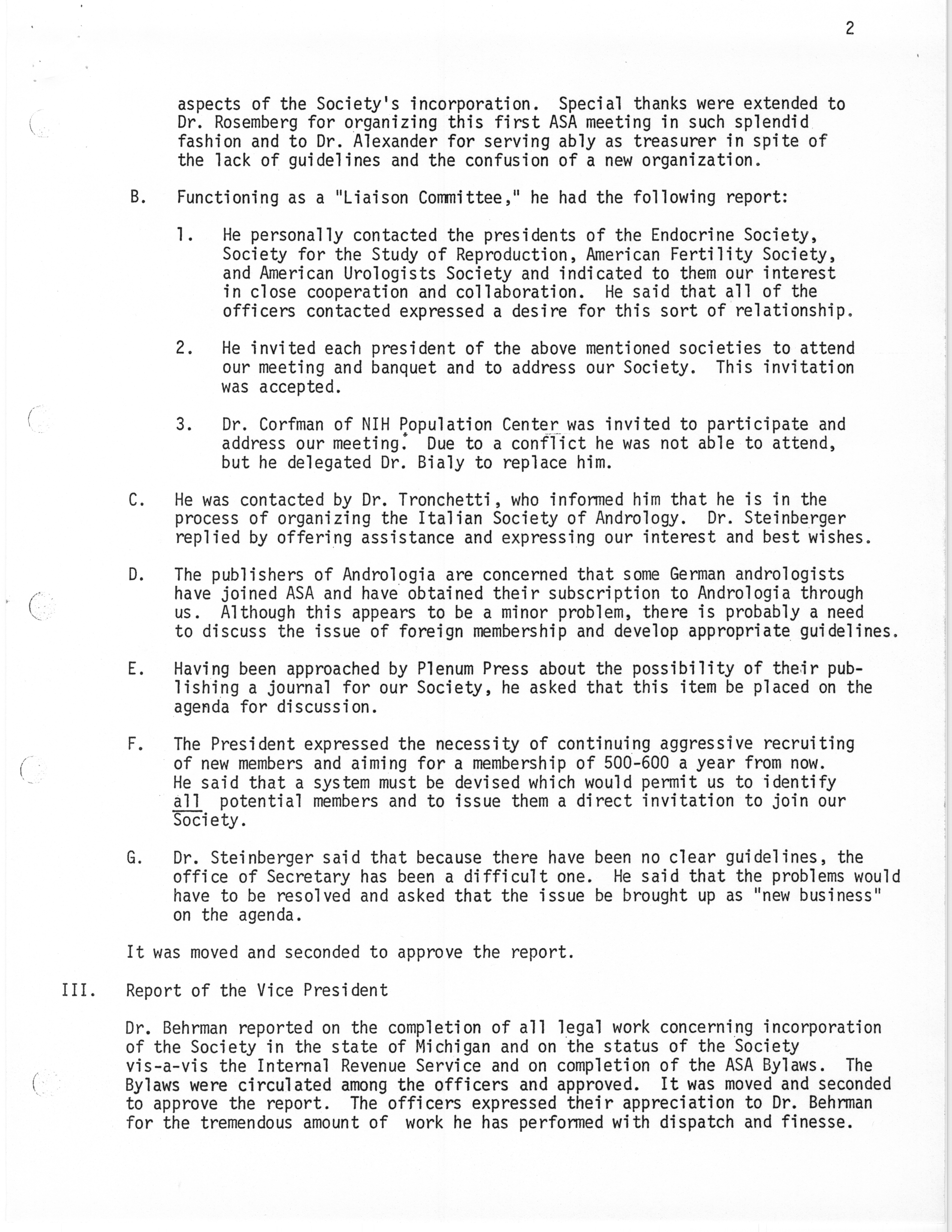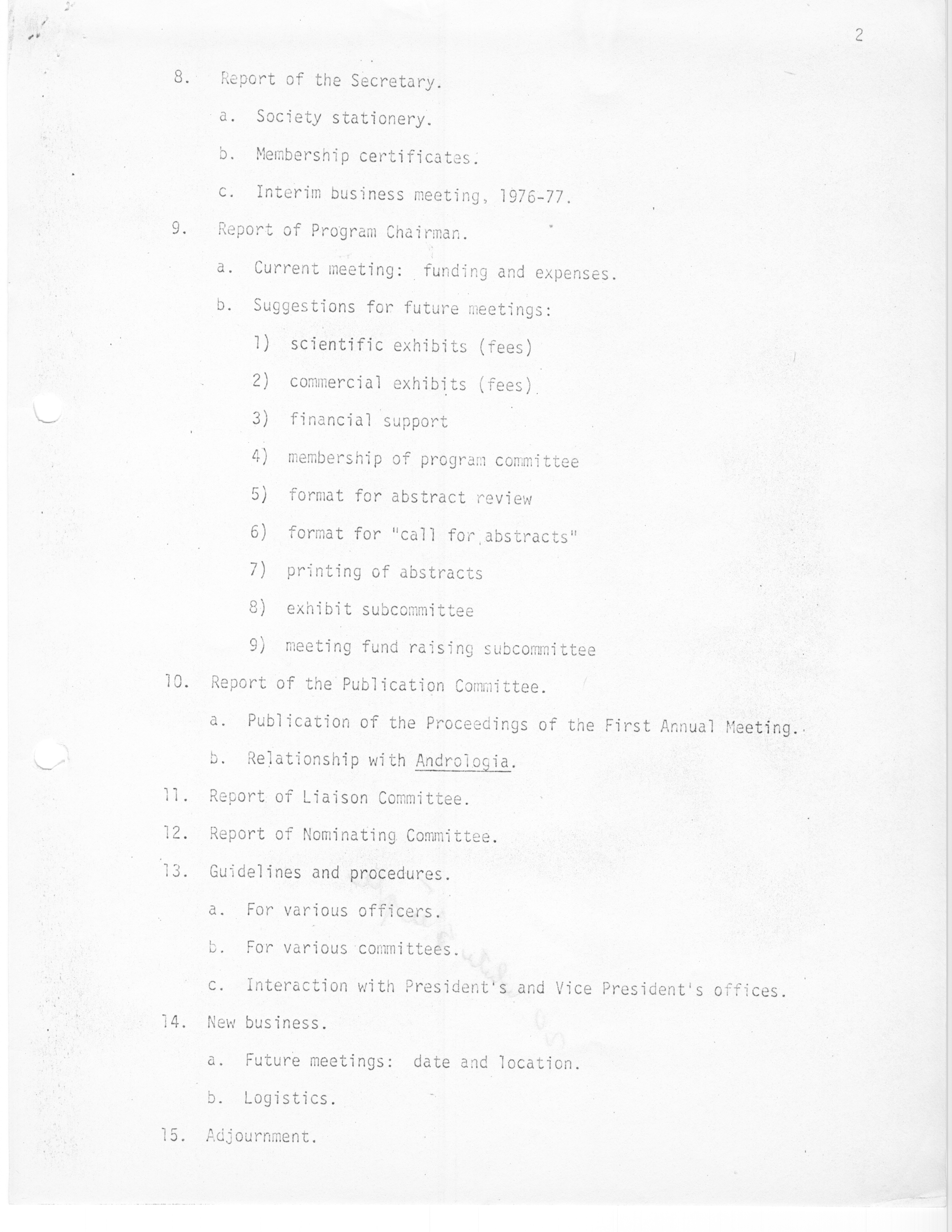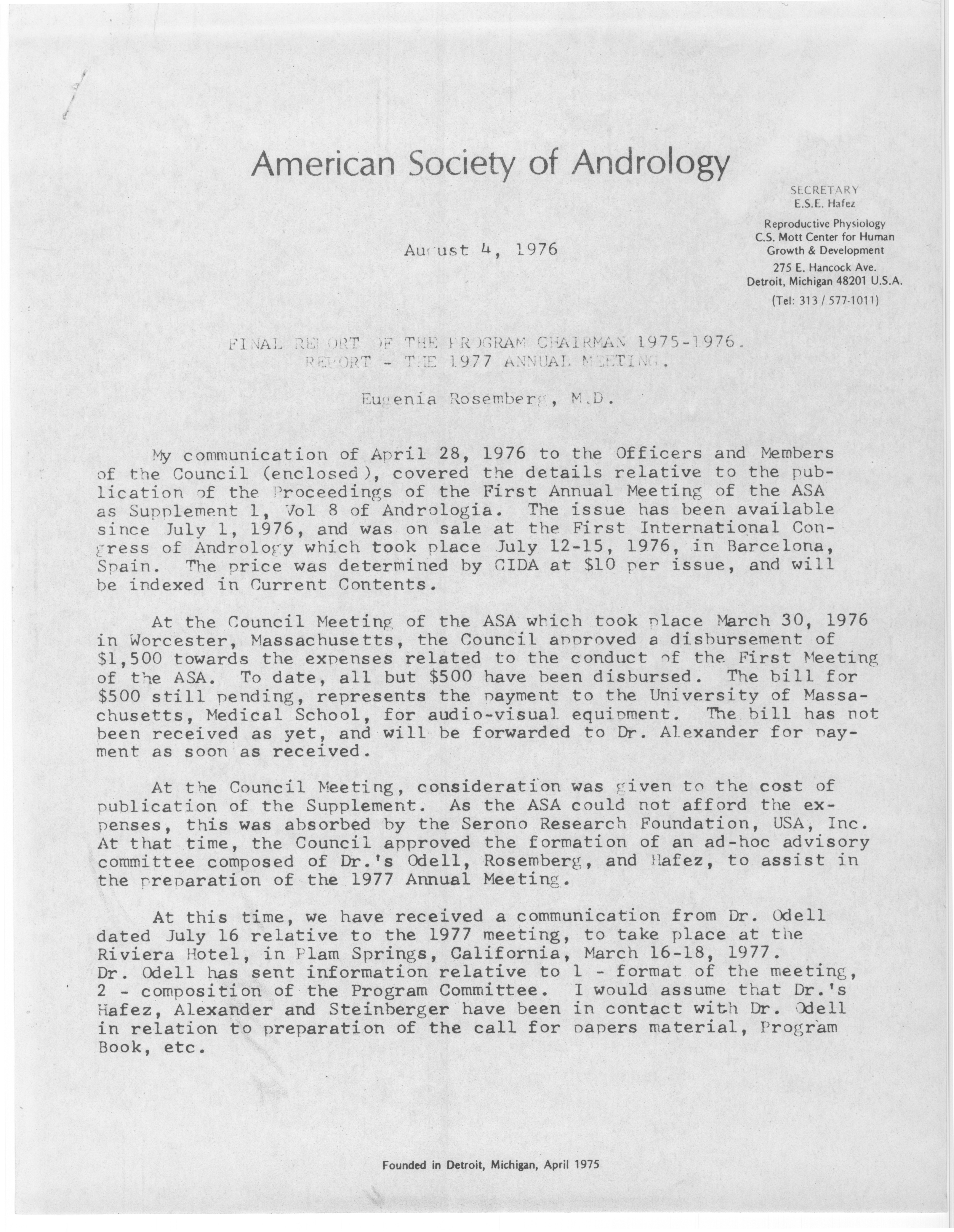 - "Executive Council Meetings of the American Society of Andrology, 1976", American Society of Andrology Collection, Iowa State University Library Digital Collections