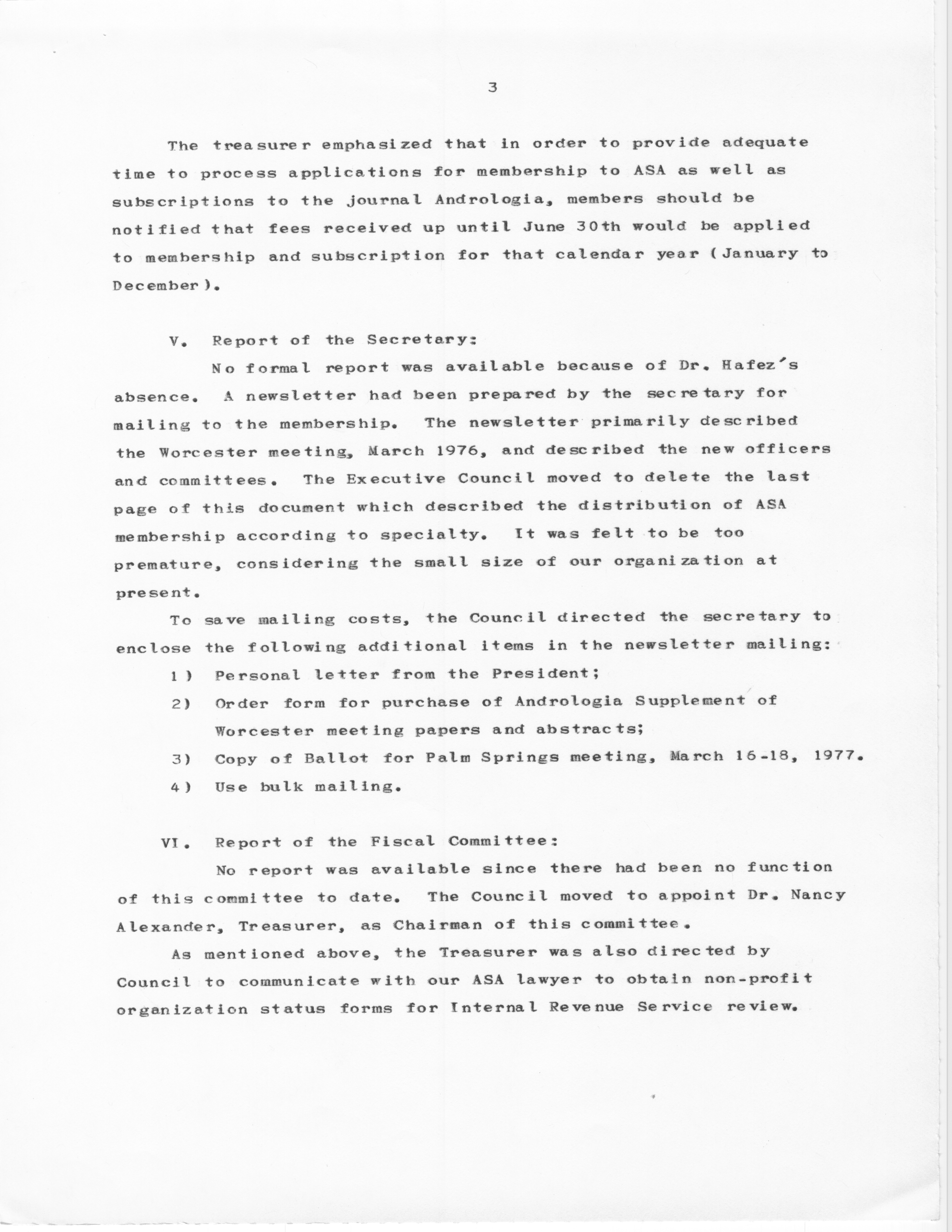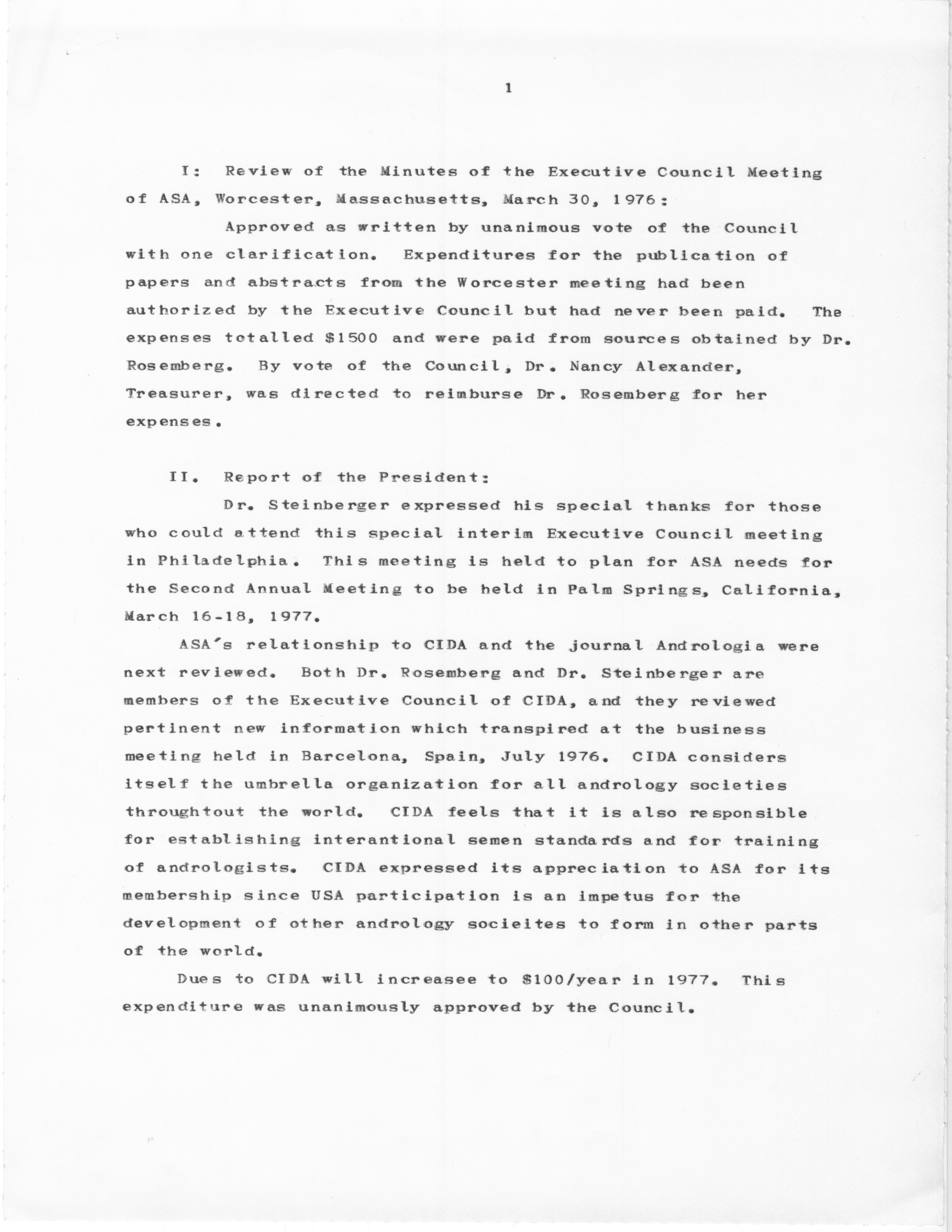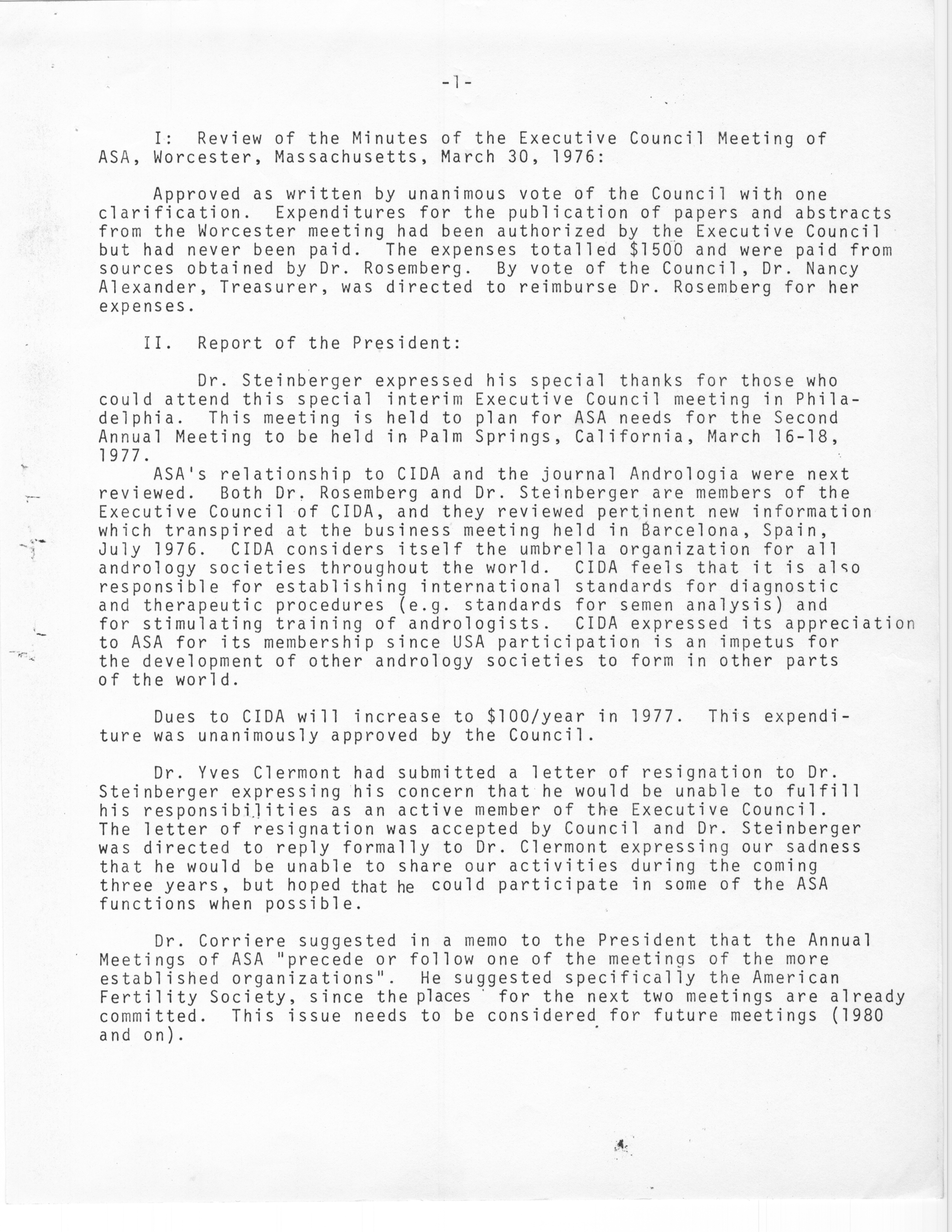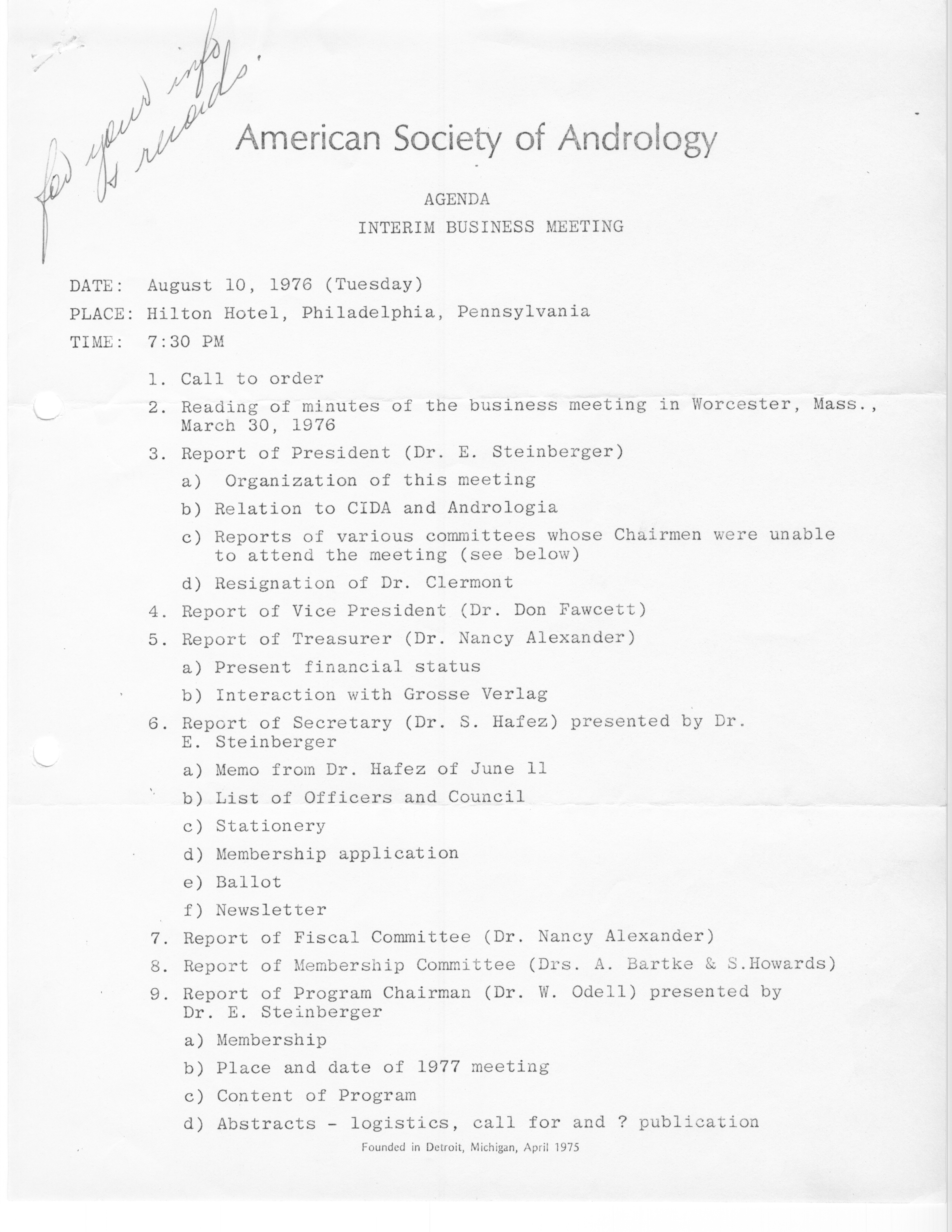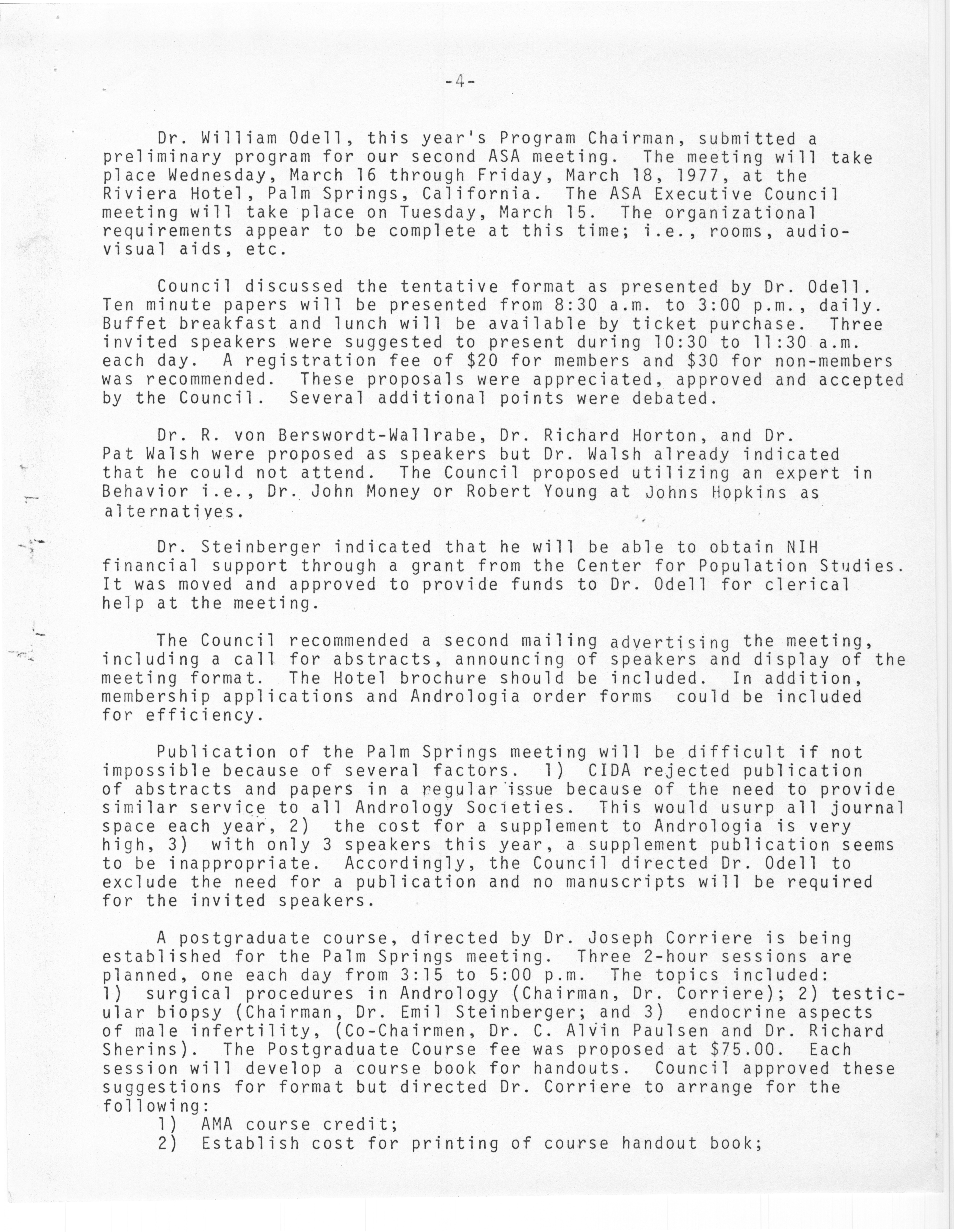 - "Executive Council Meetings of the American Society of Andrology, 1976", American Society of Andrology Collection, Iowa State University Library Digital Collections