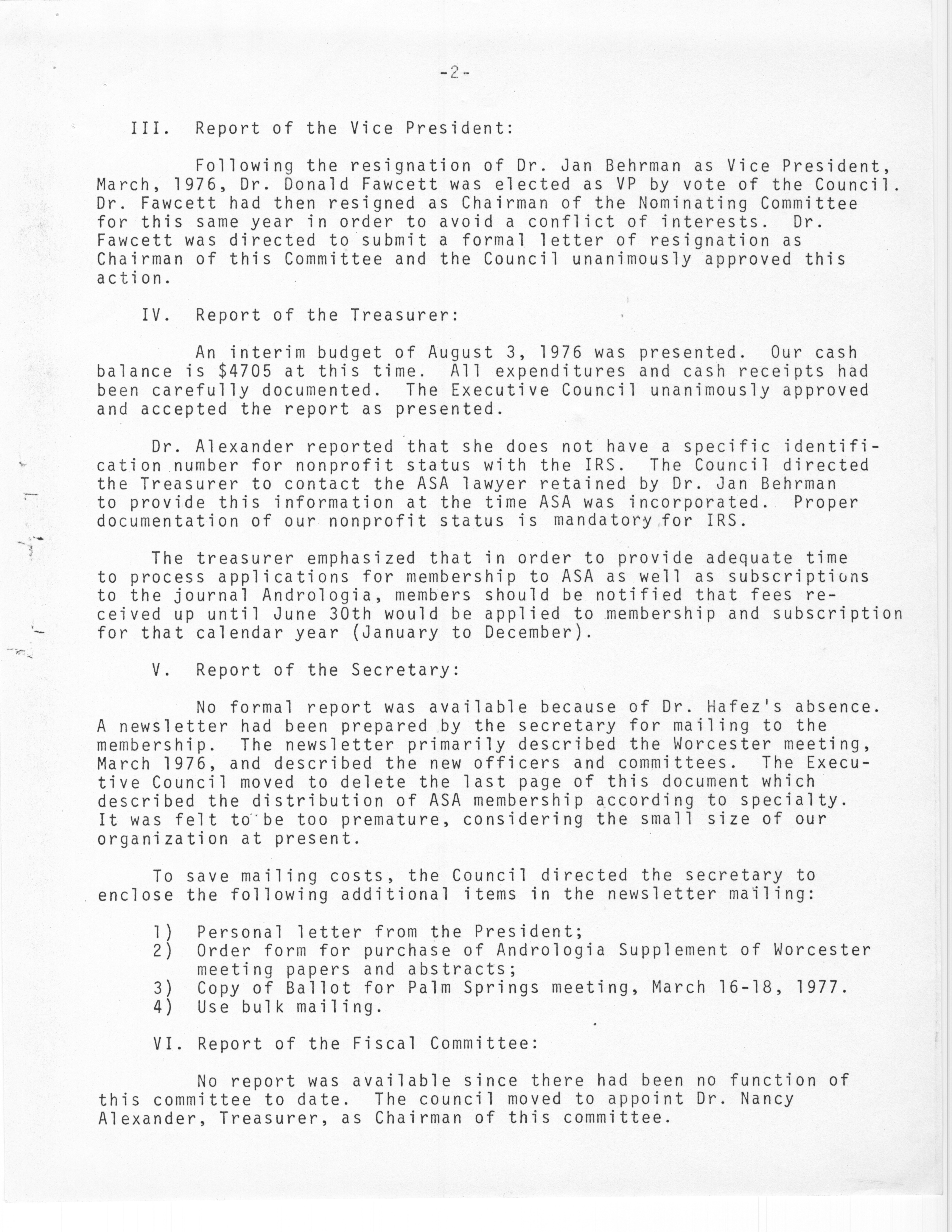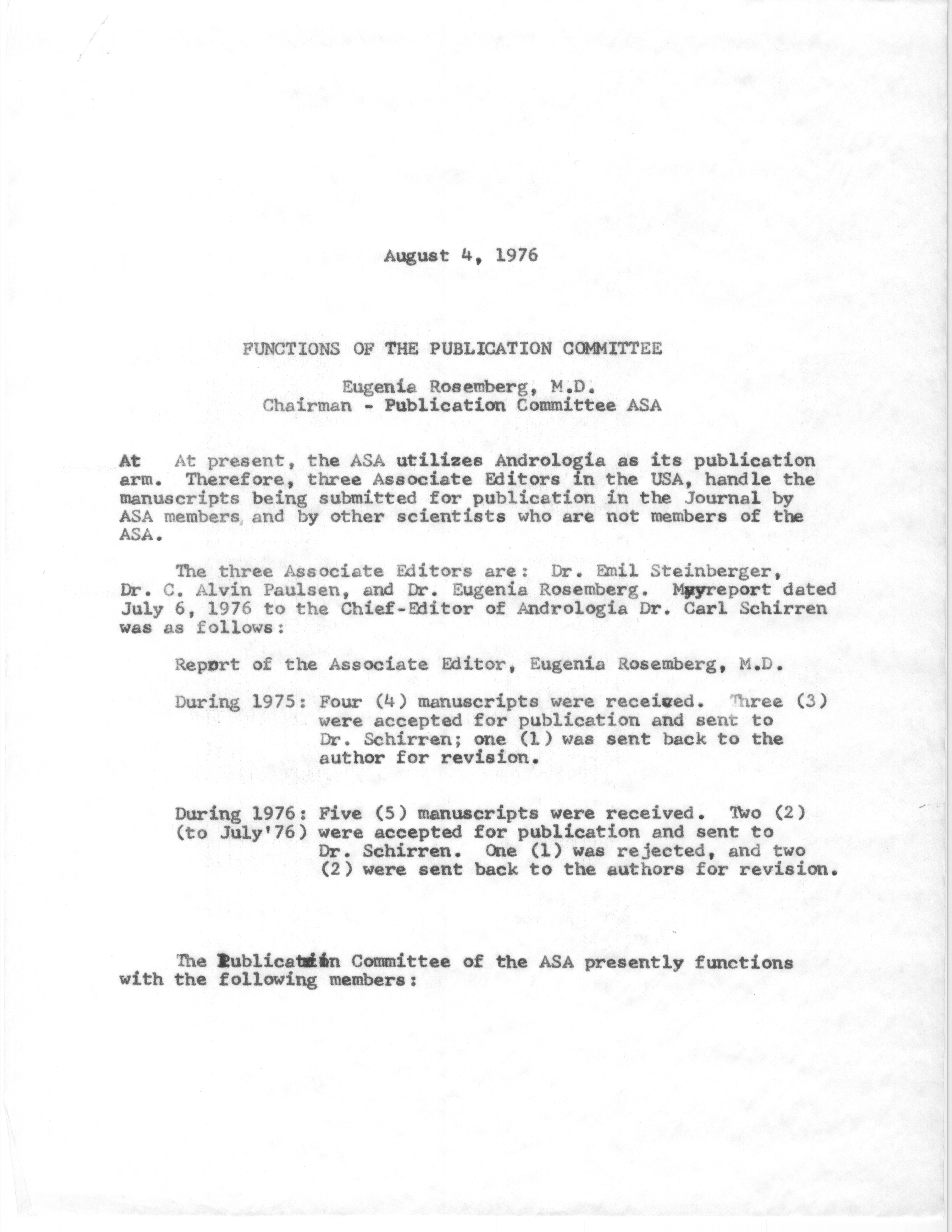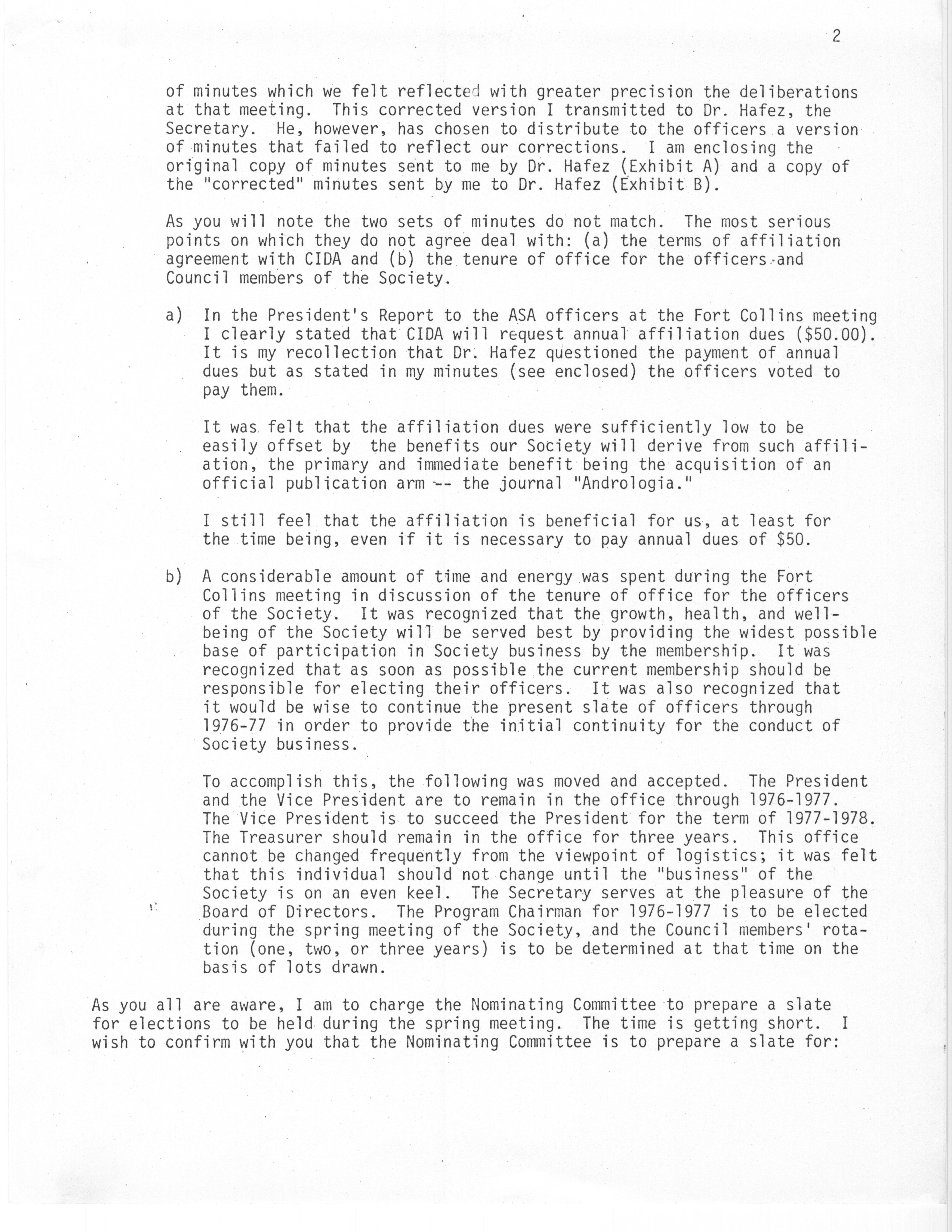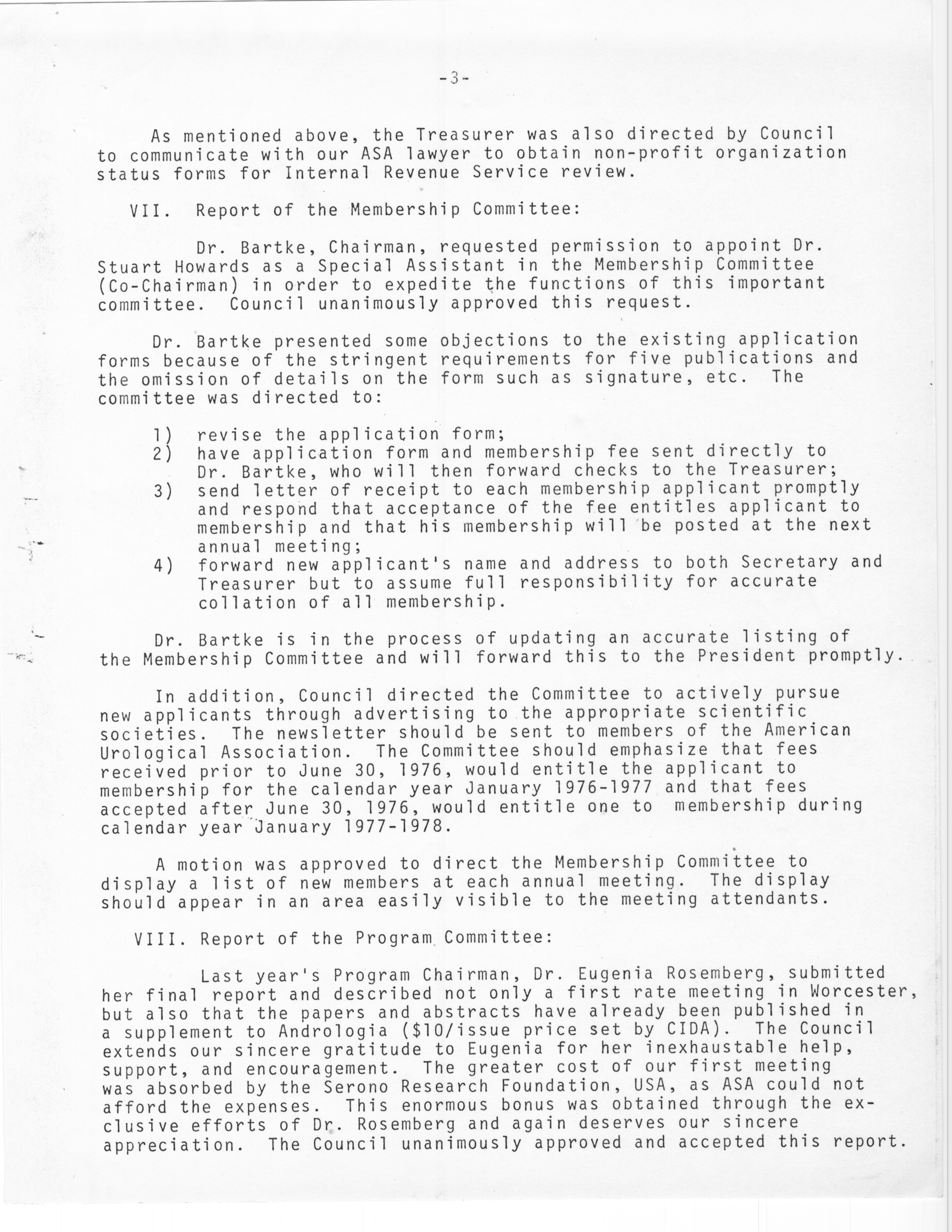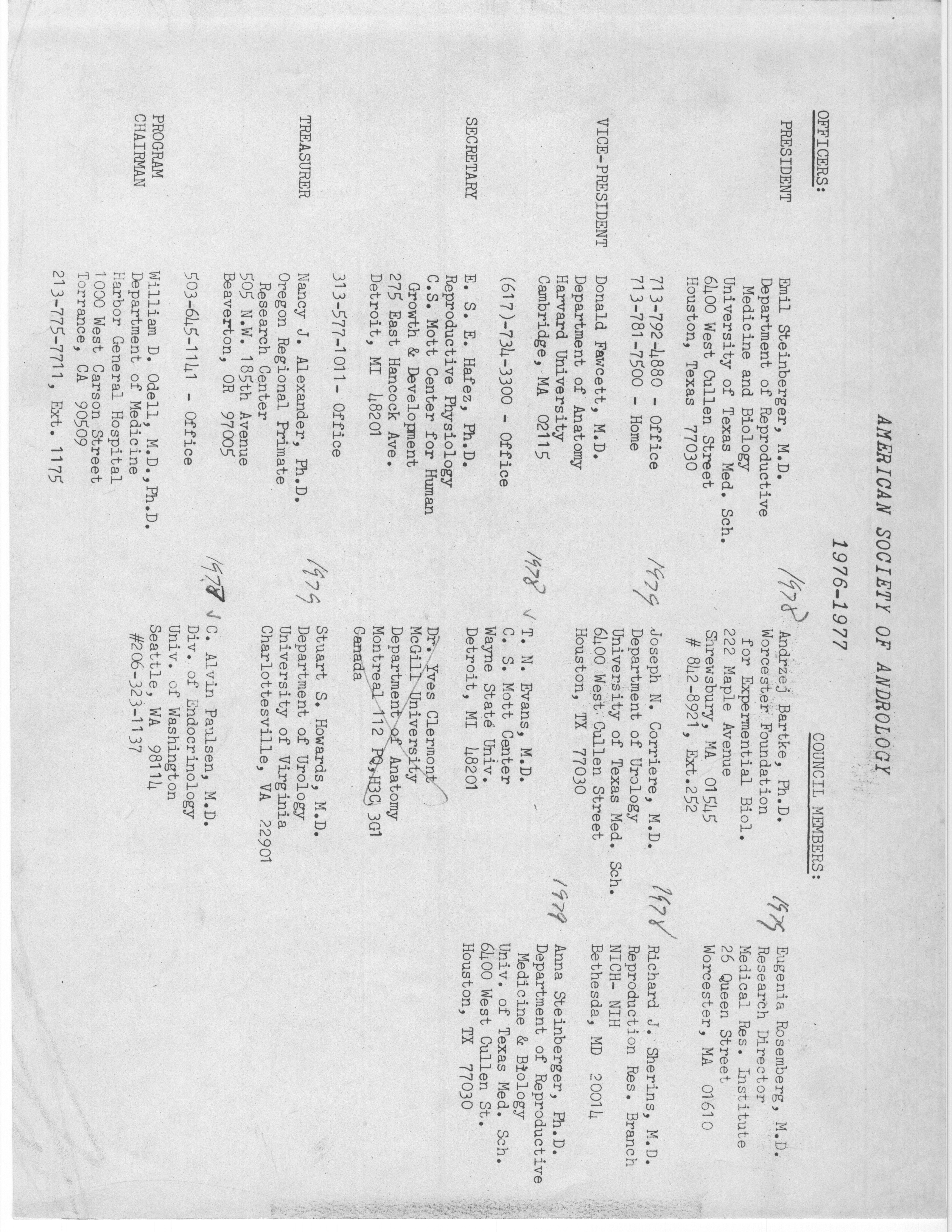 - "Executive Council Meetings of the American Society of Andrology, 1976", American Society of Andrology Collection, Iowa State University Library Digital Collections