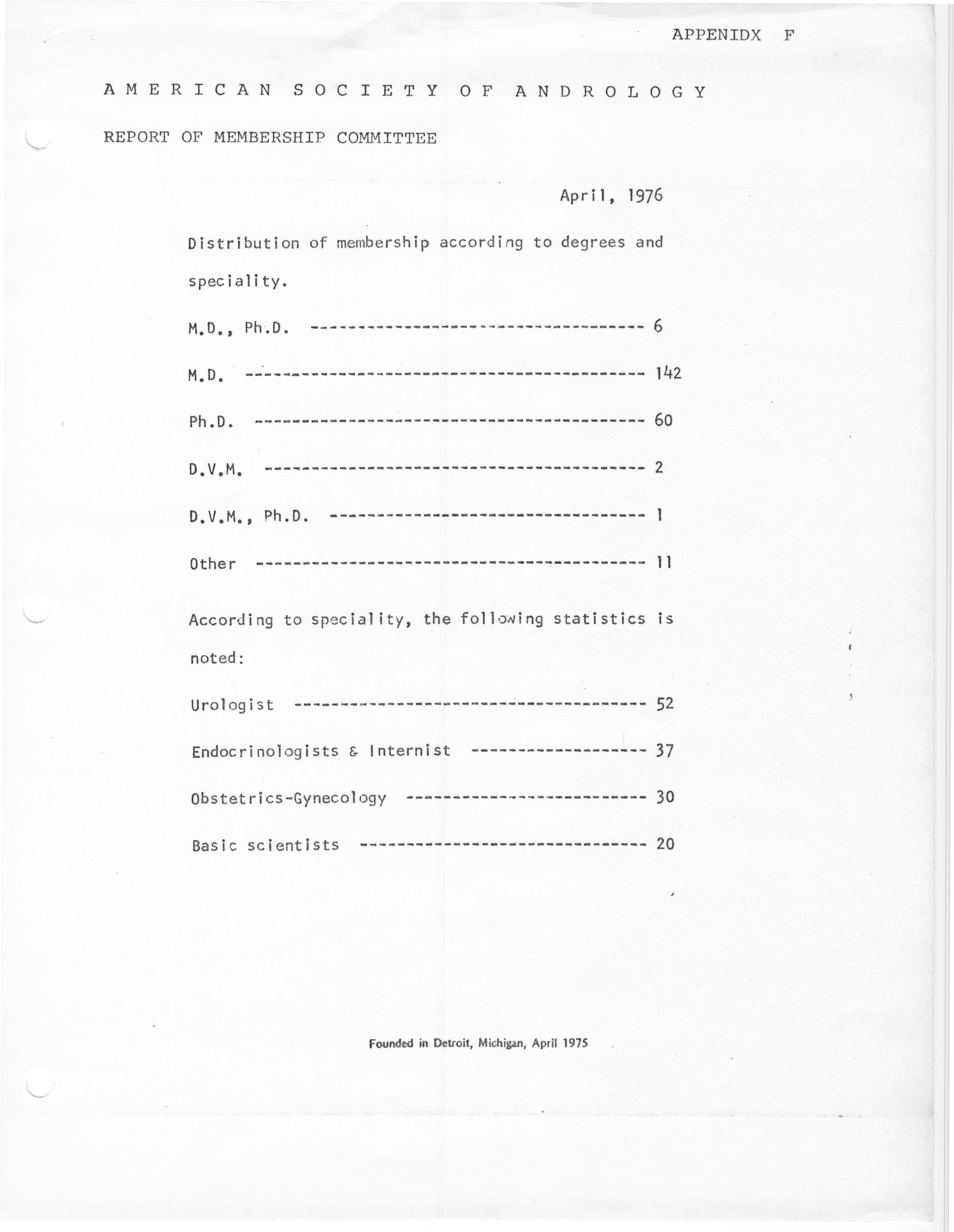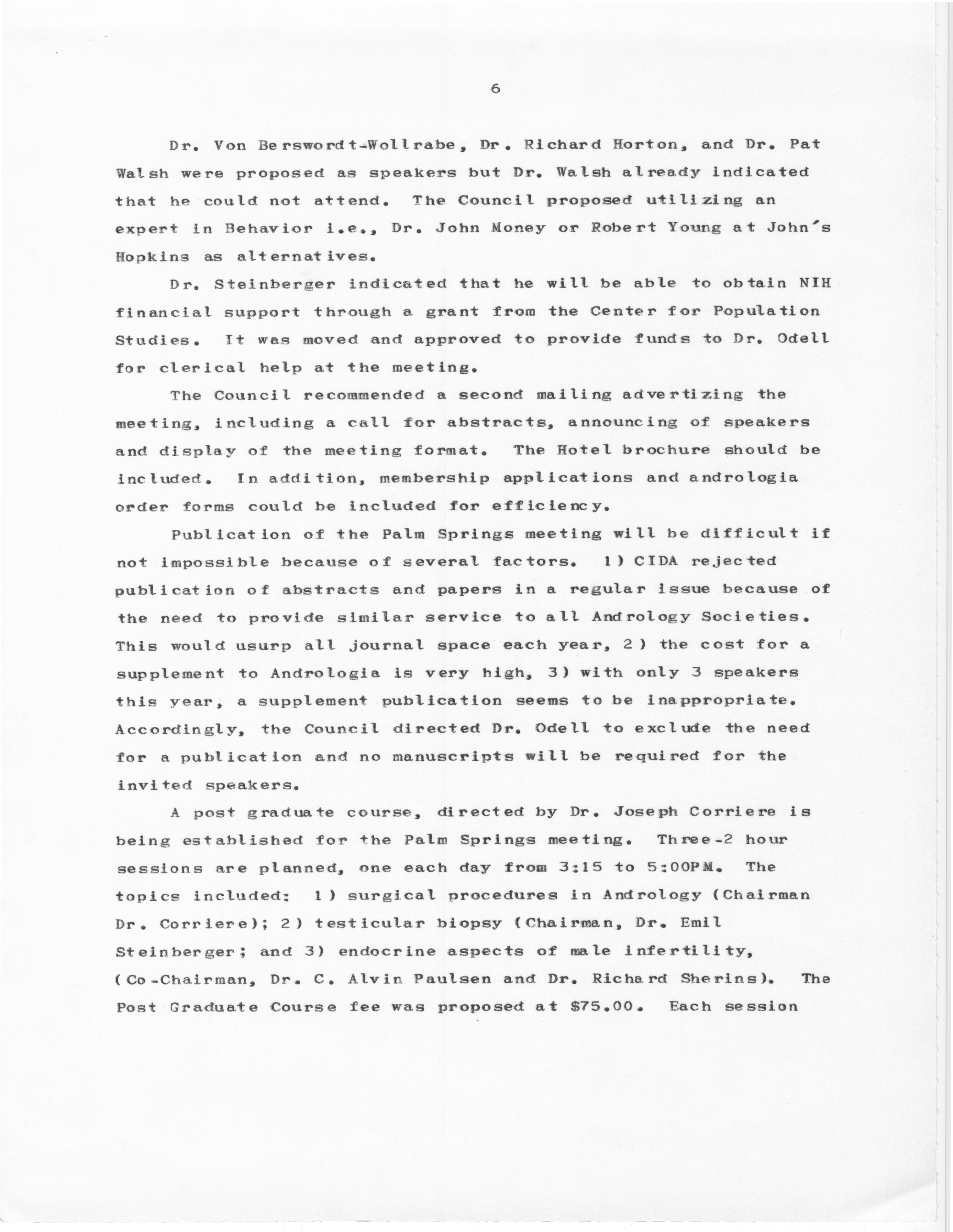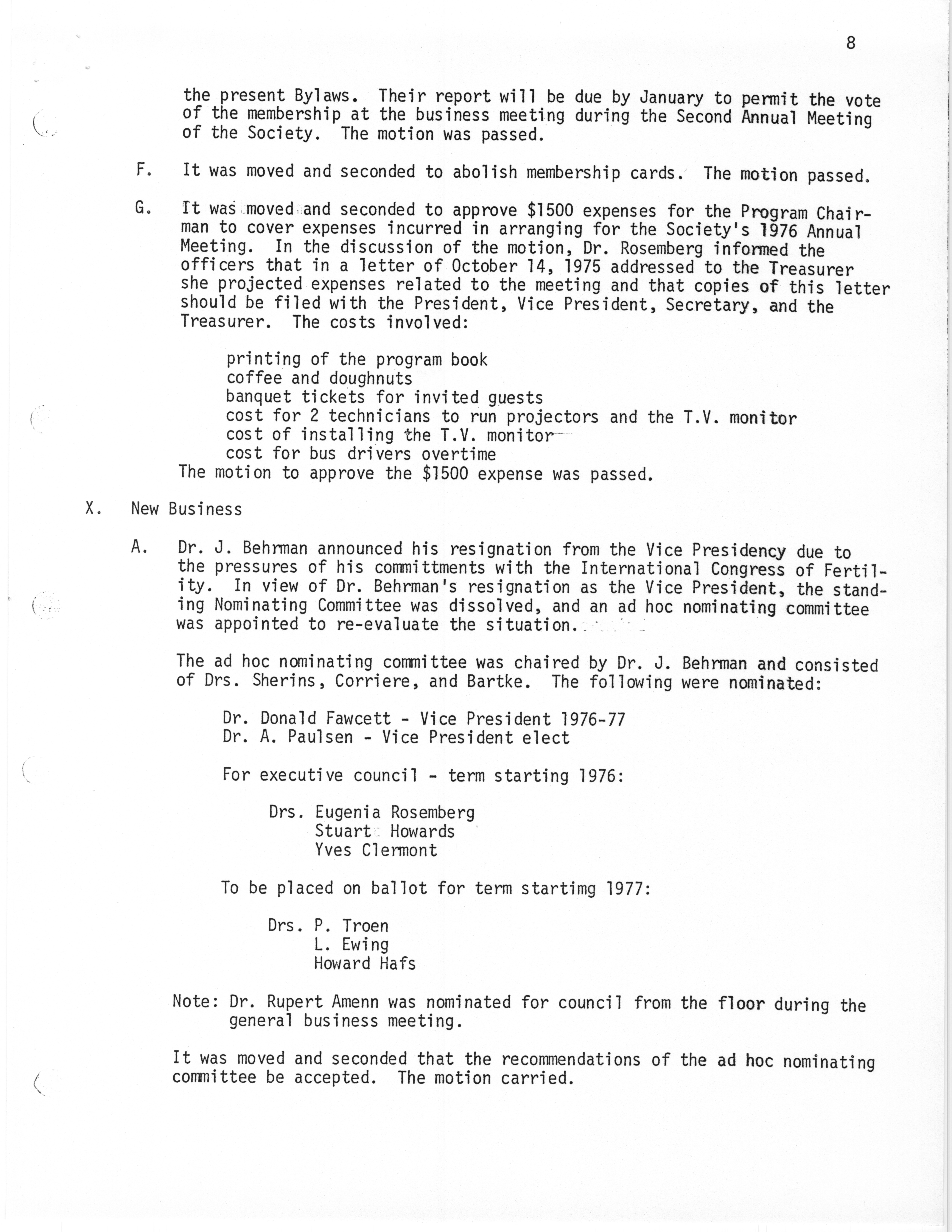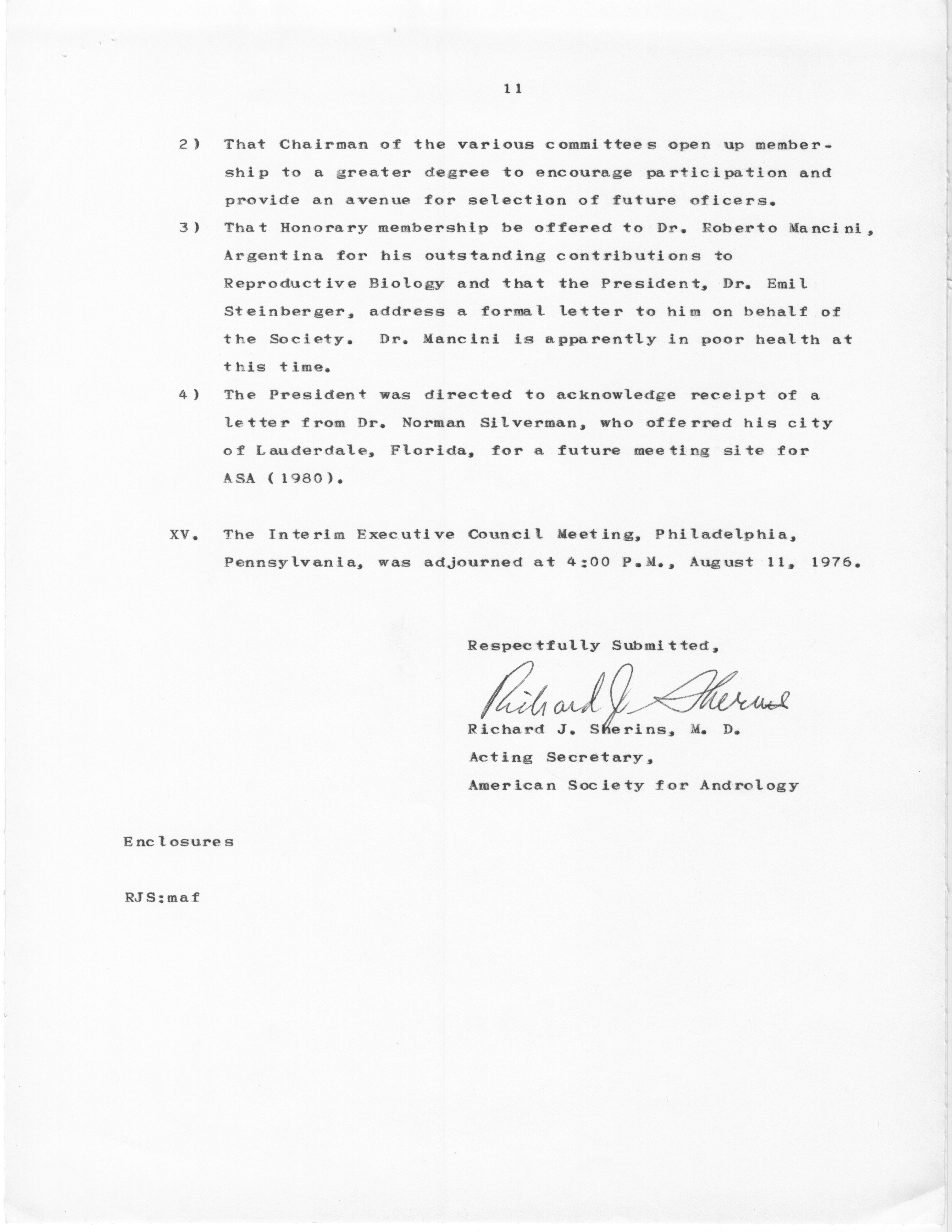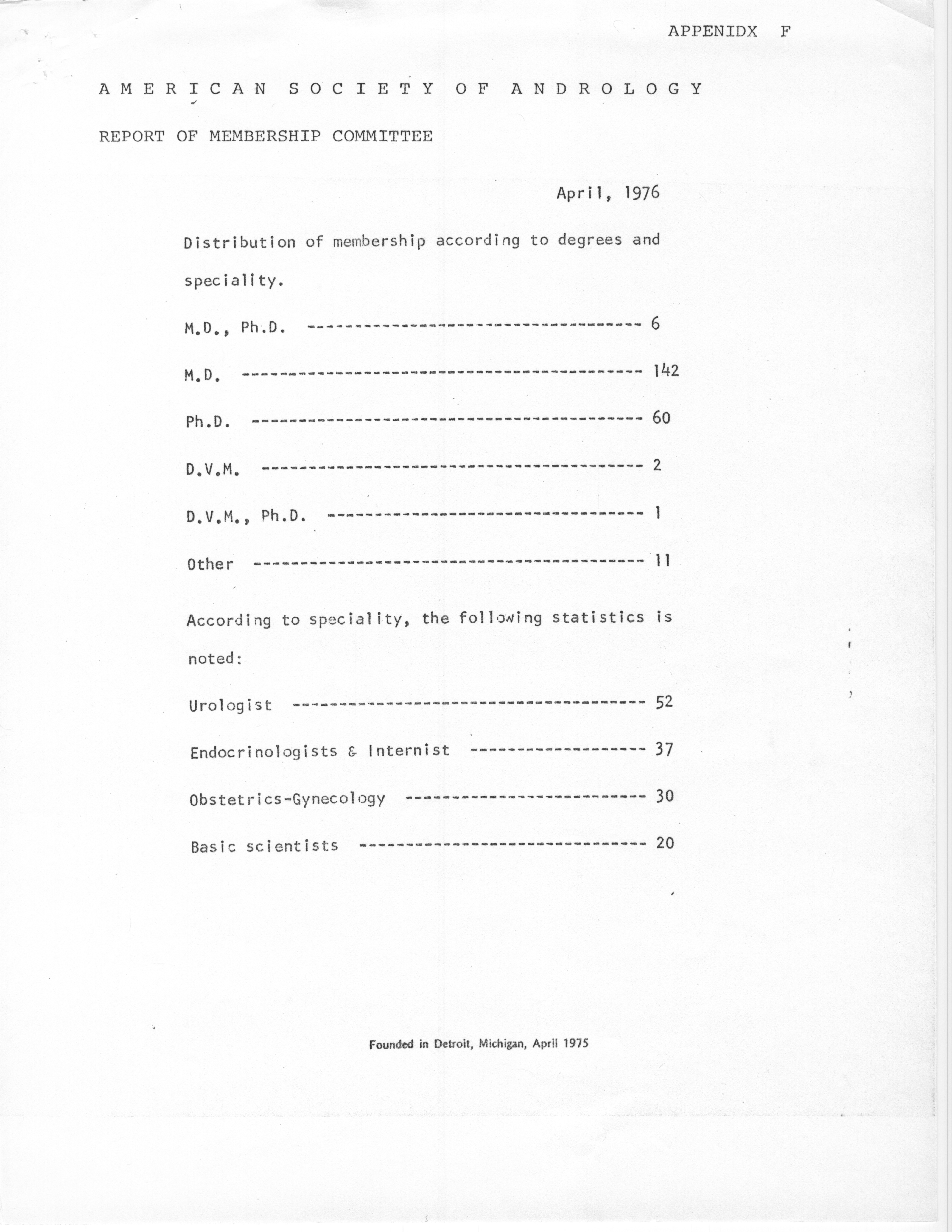 - "Executive Council Meetings of the American Society of Andrology, 1976", American Society of Andrology Collection, Iowa State University Library Digital Collections