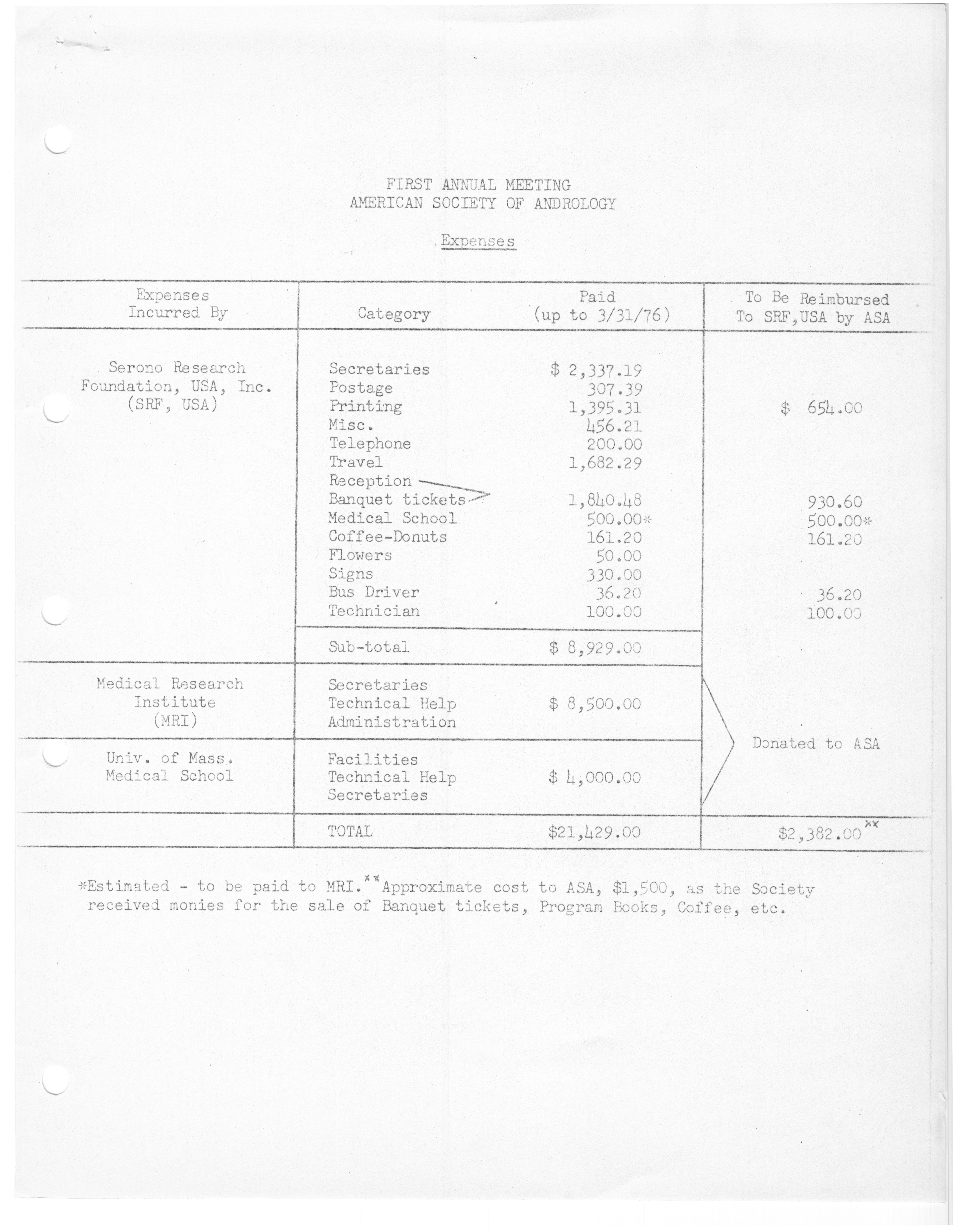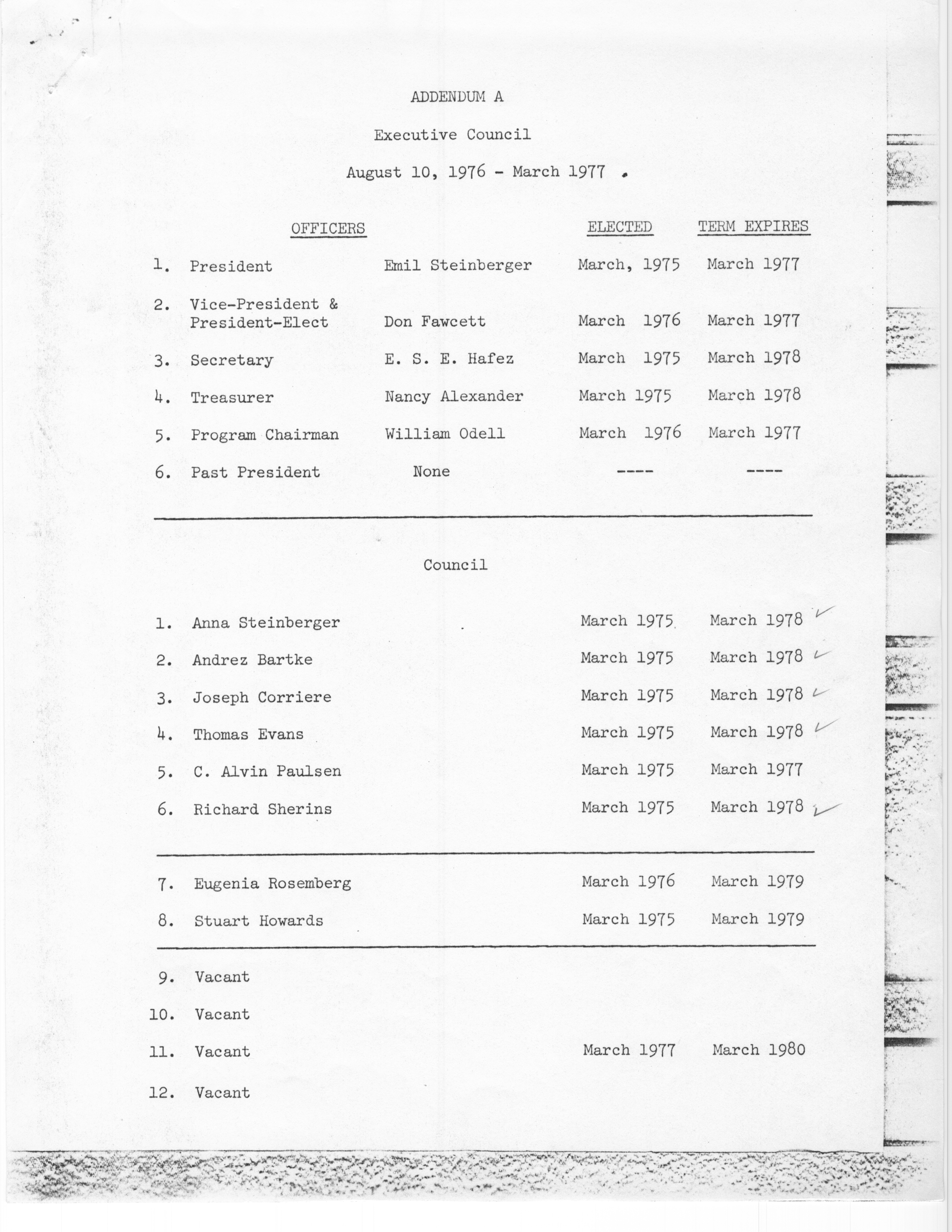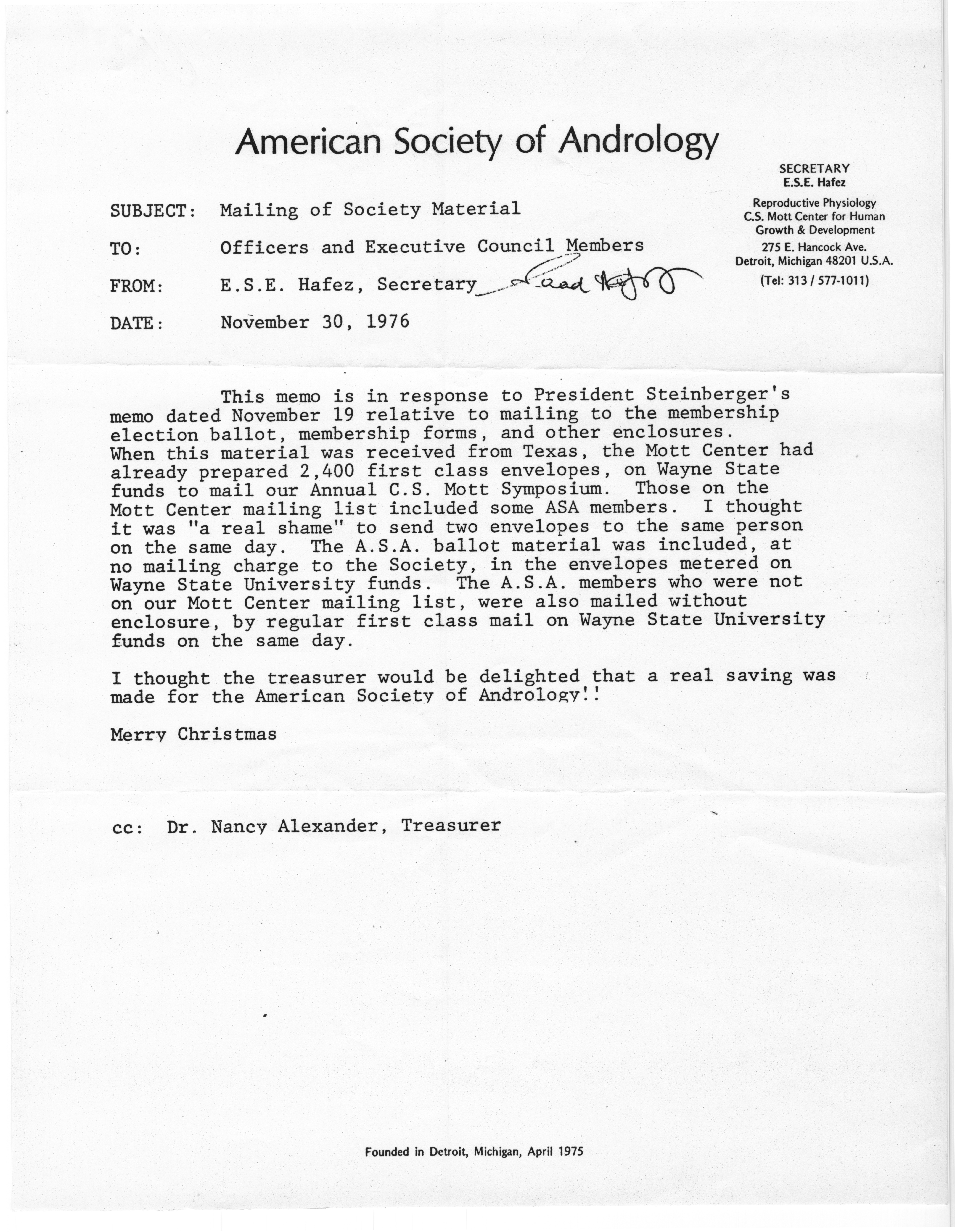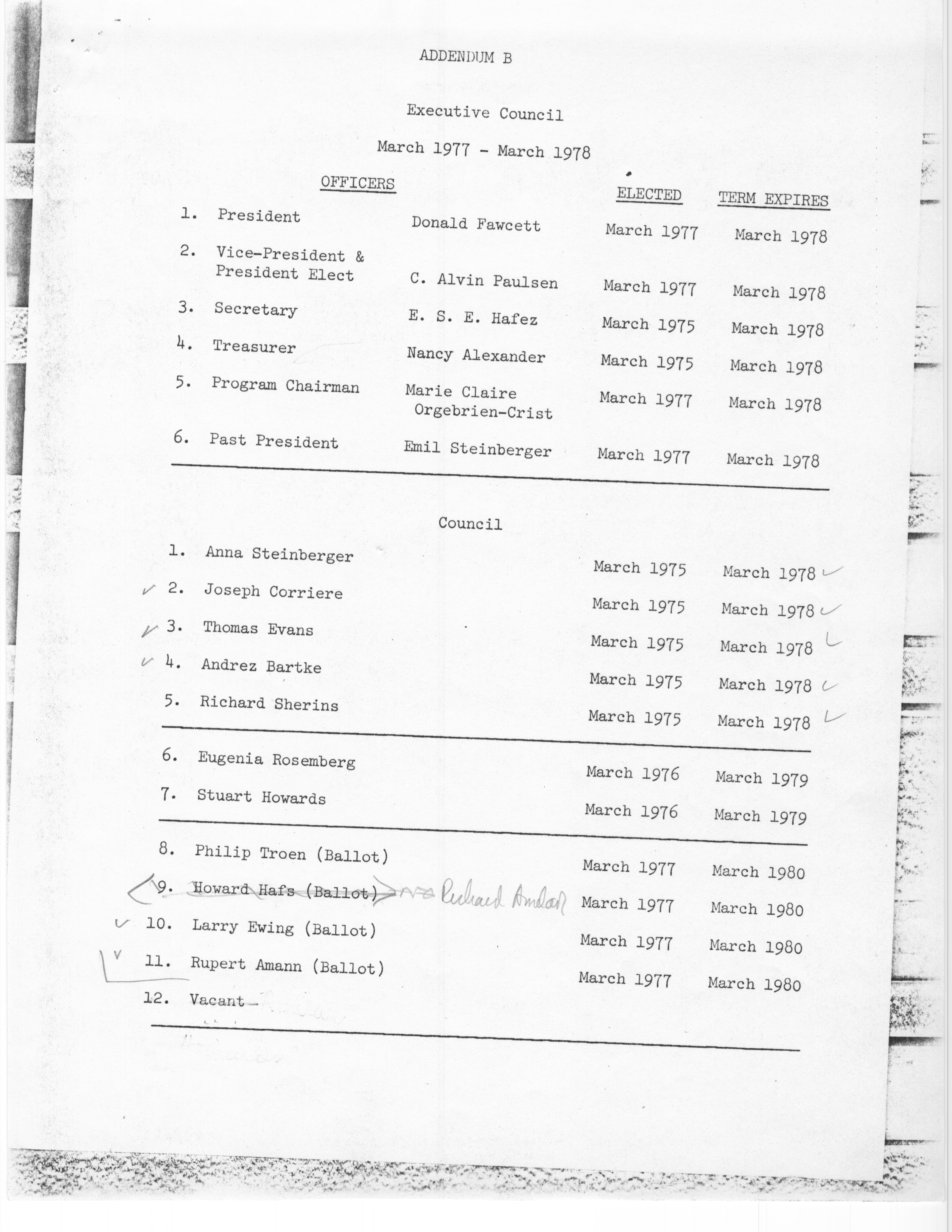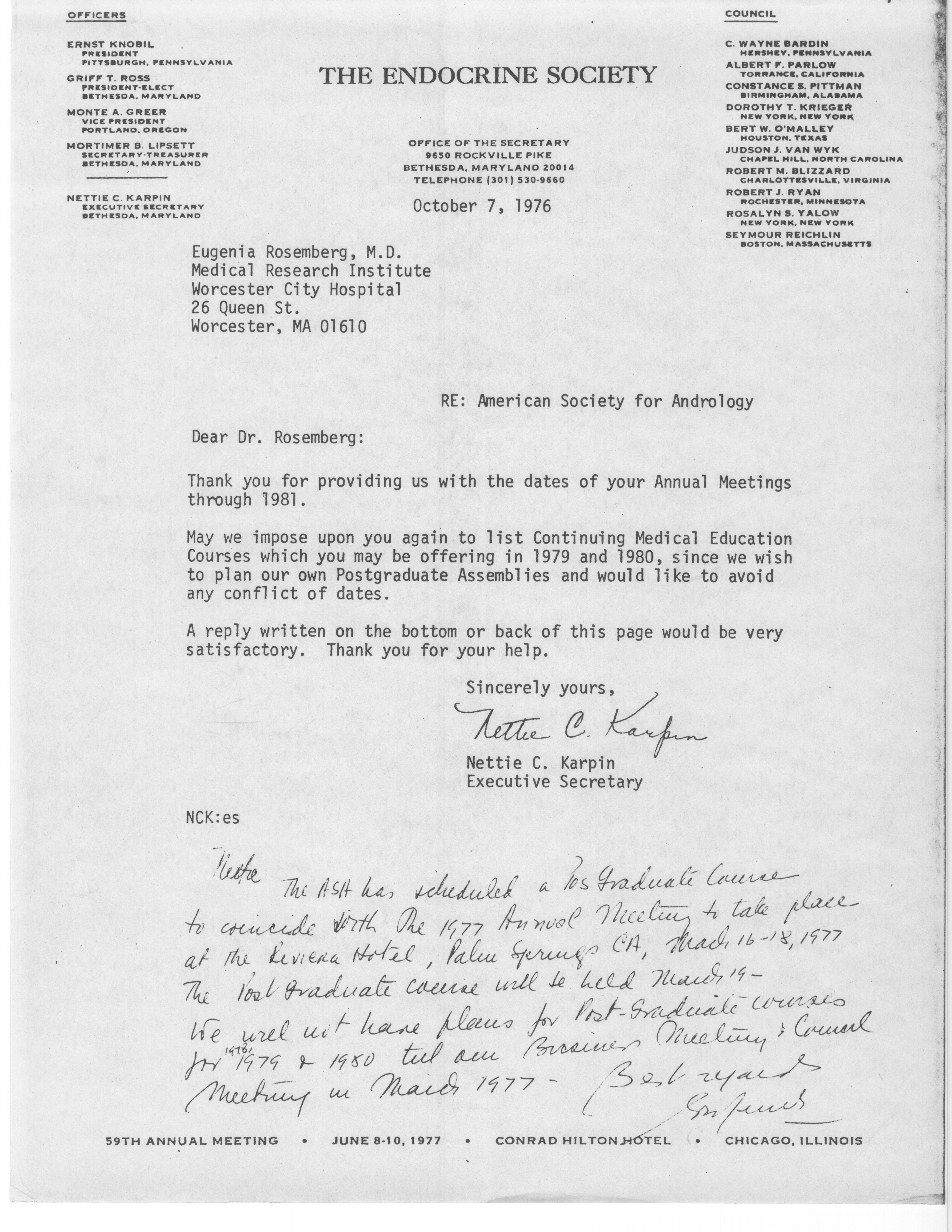 - "Executive Council Meetings of the American Society of Andrology, 1976", American Society of Andrology Collection, Iowa State University Library Digital Collections