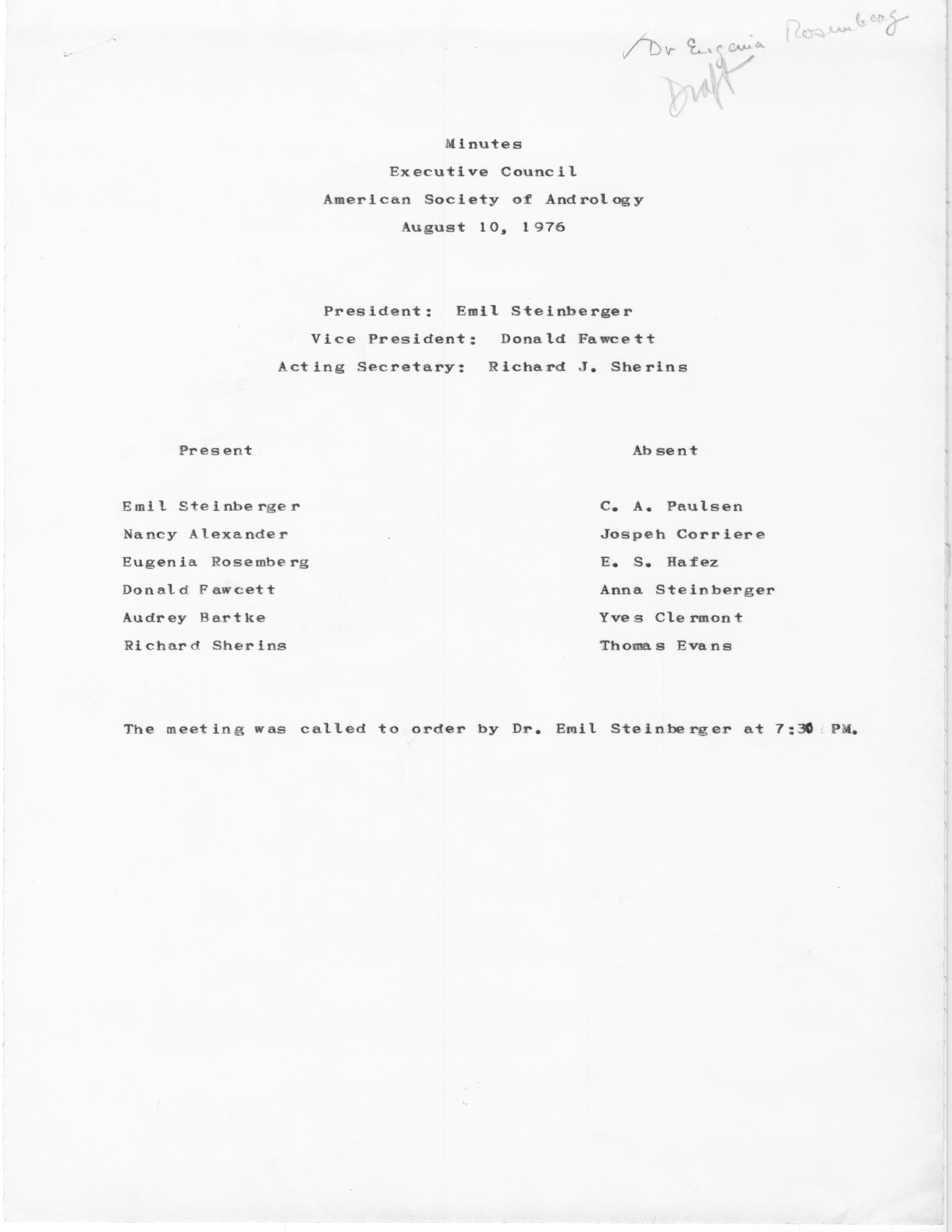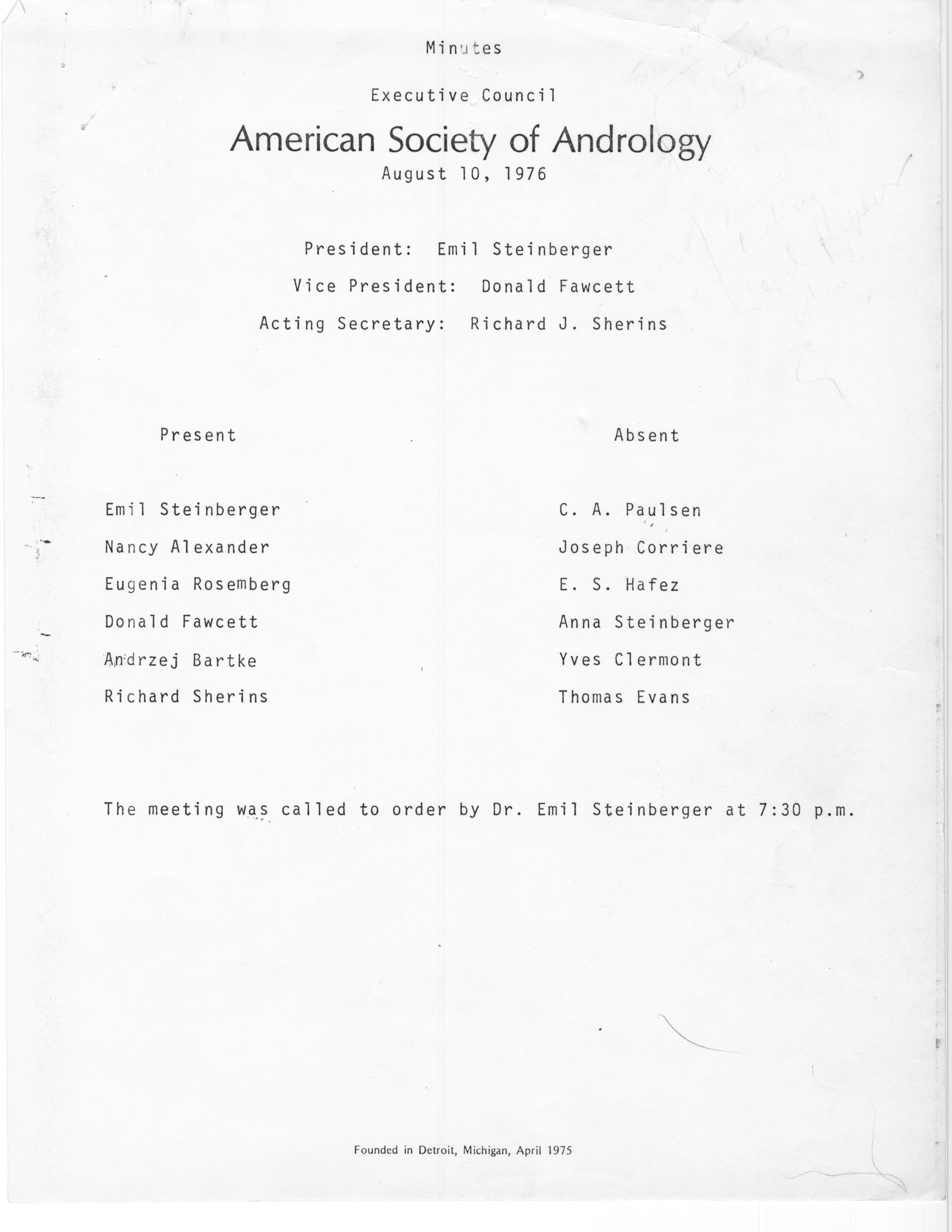 - Executive Council Meetings of the American Society of Andrology, 1976