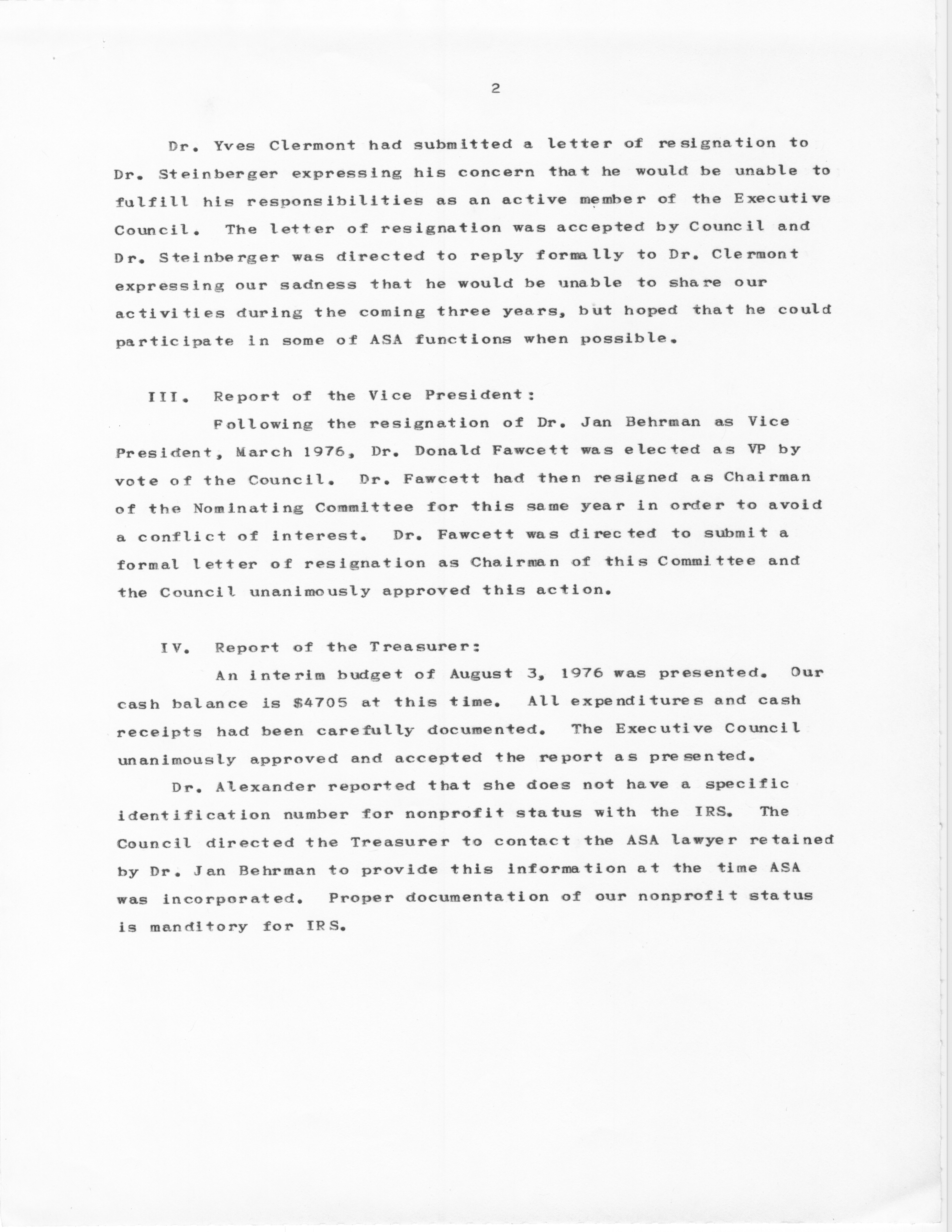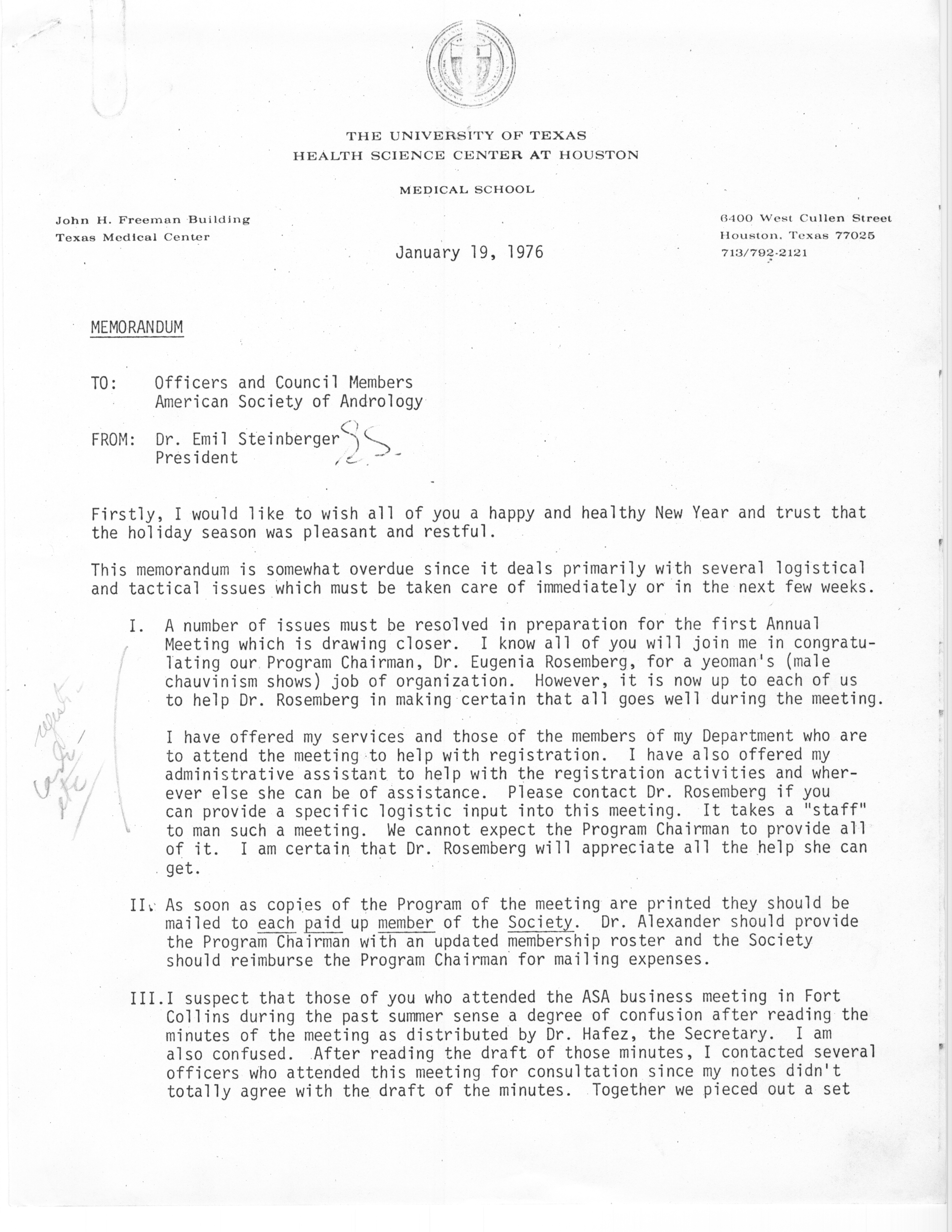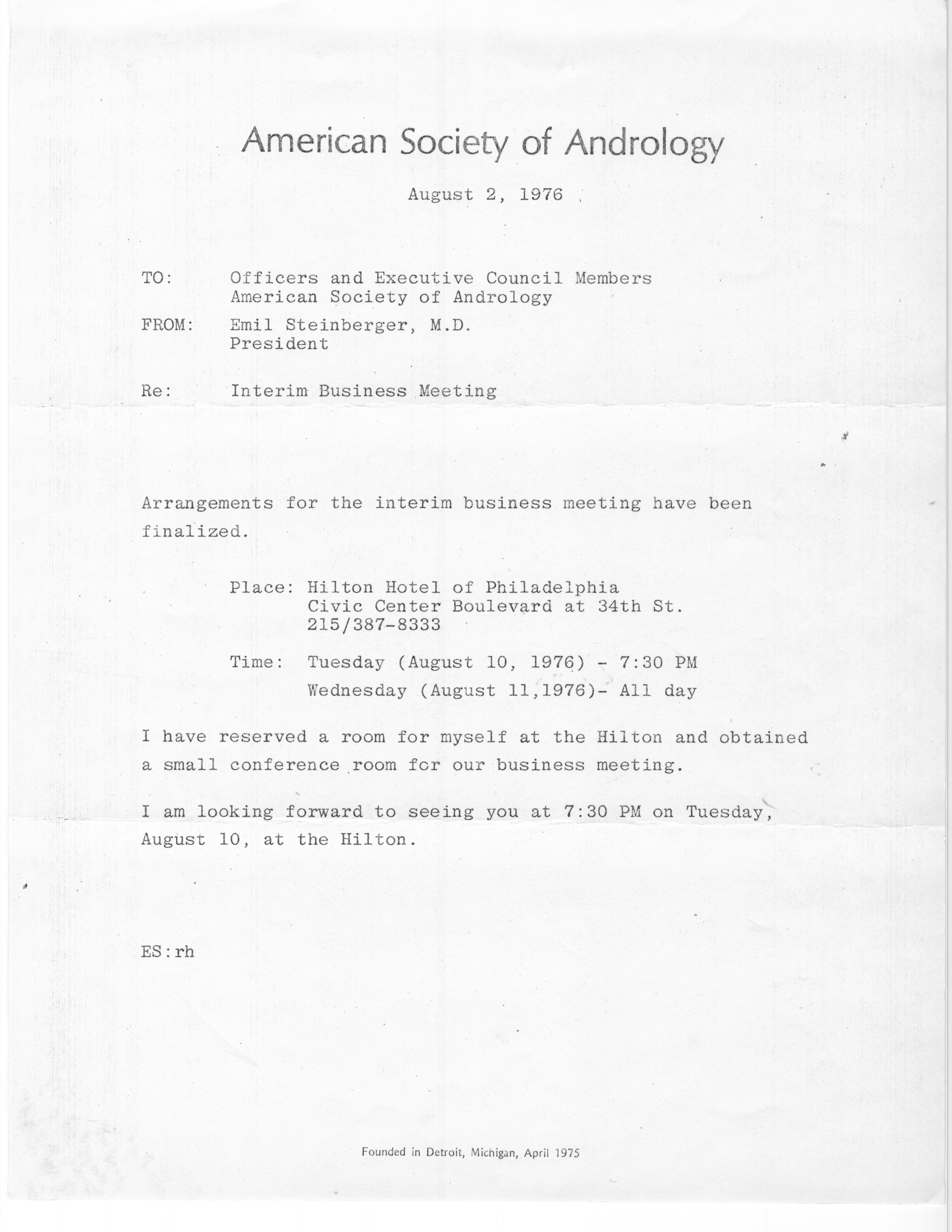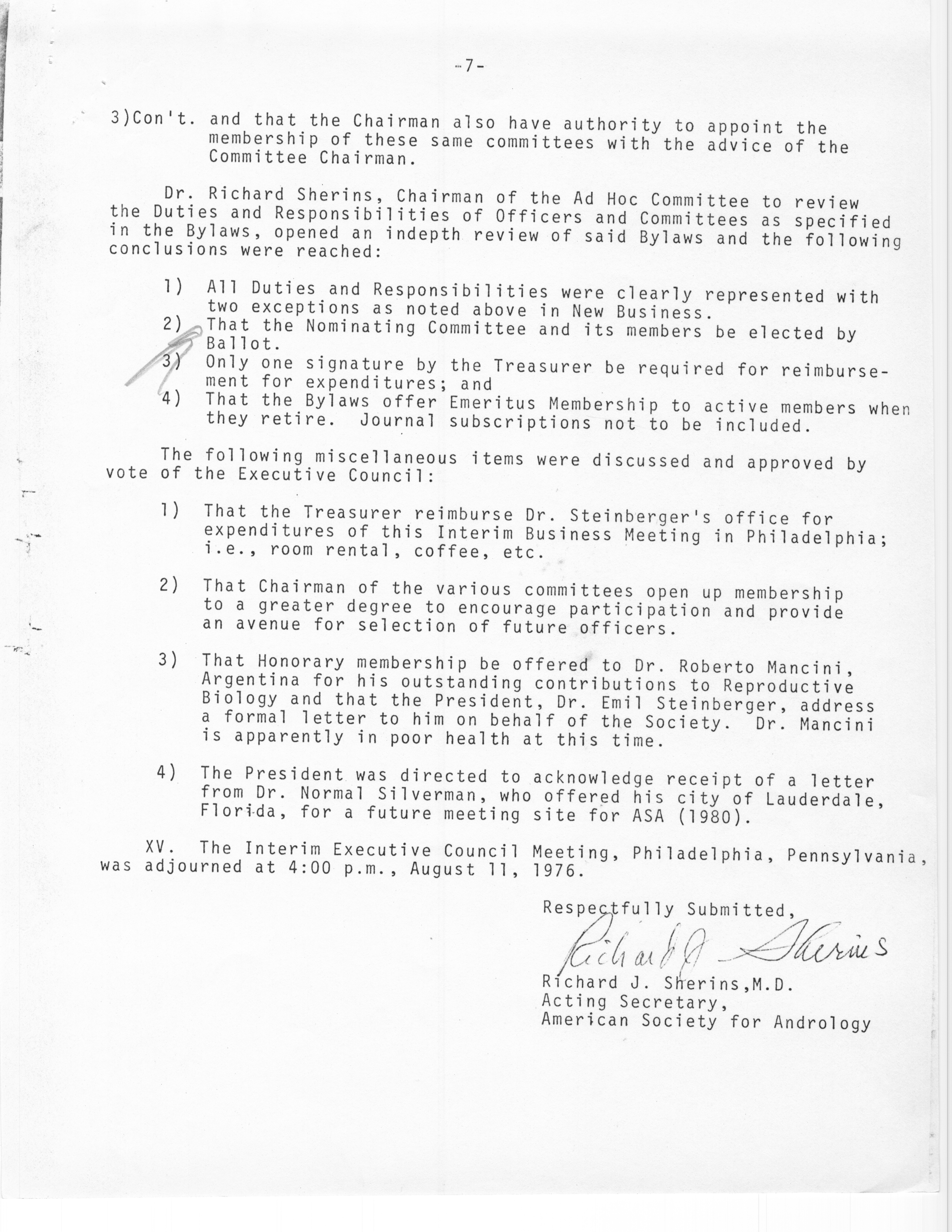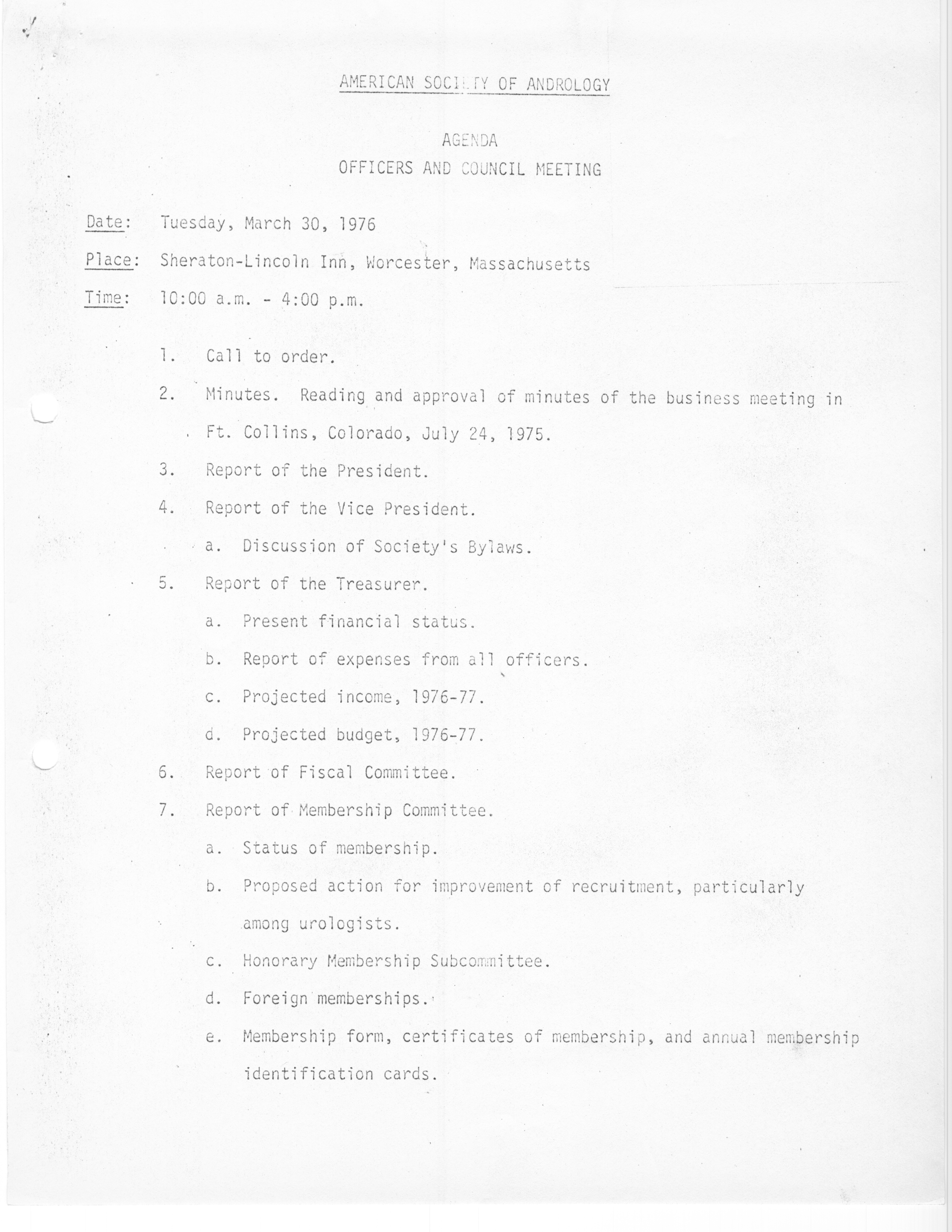 Executive Council Meetings of the American Society of Andrology, 1976 Item Info