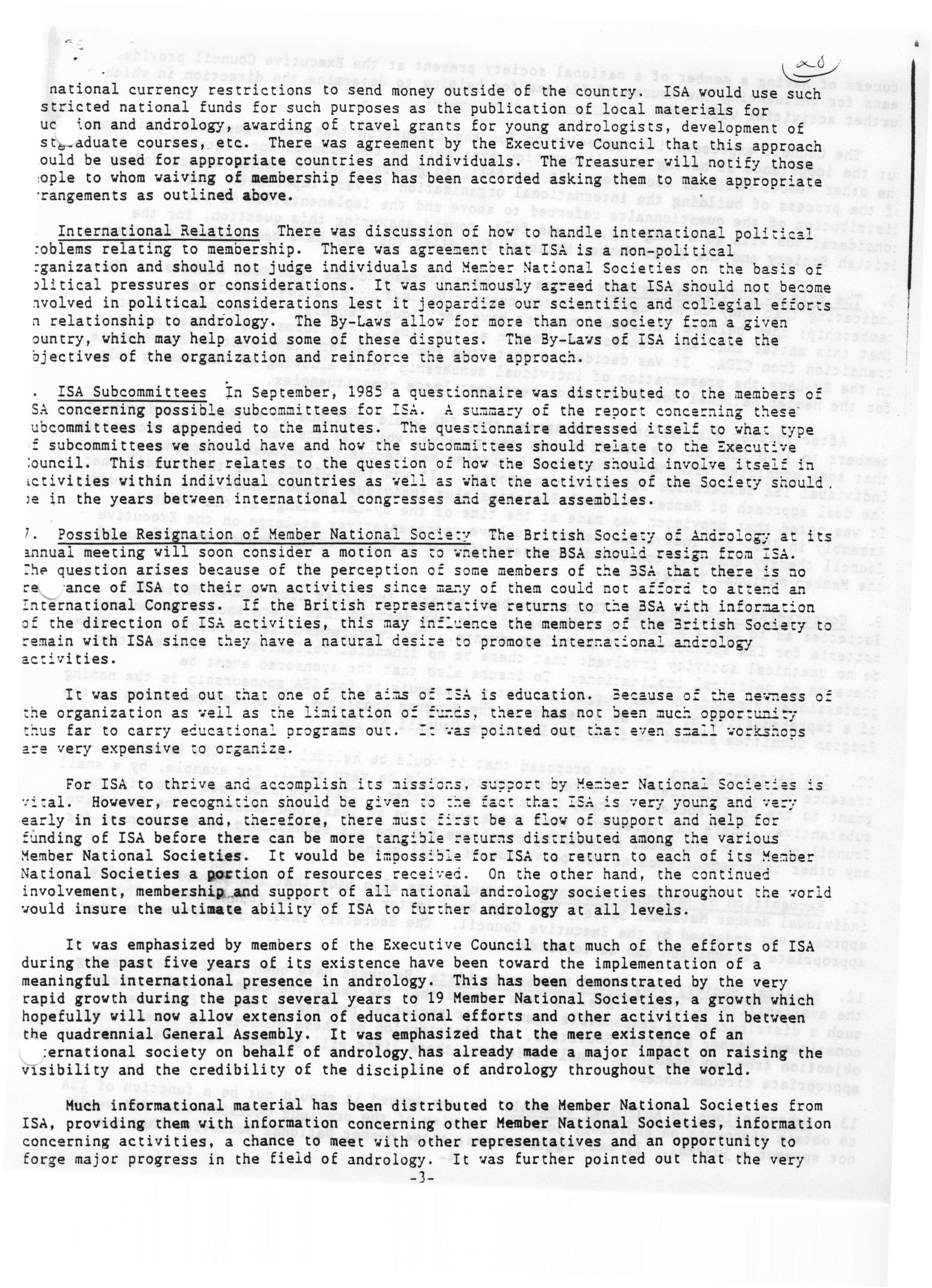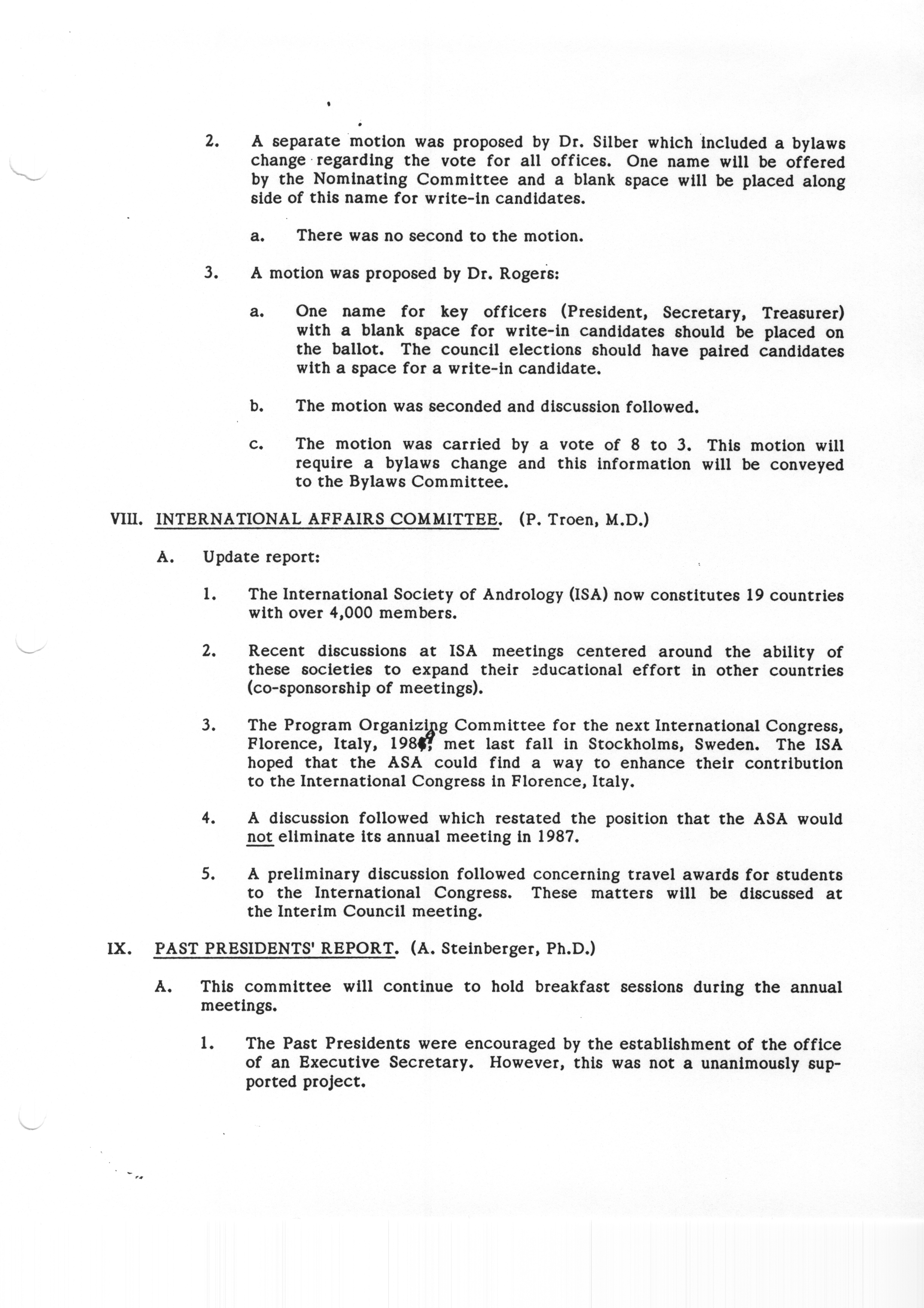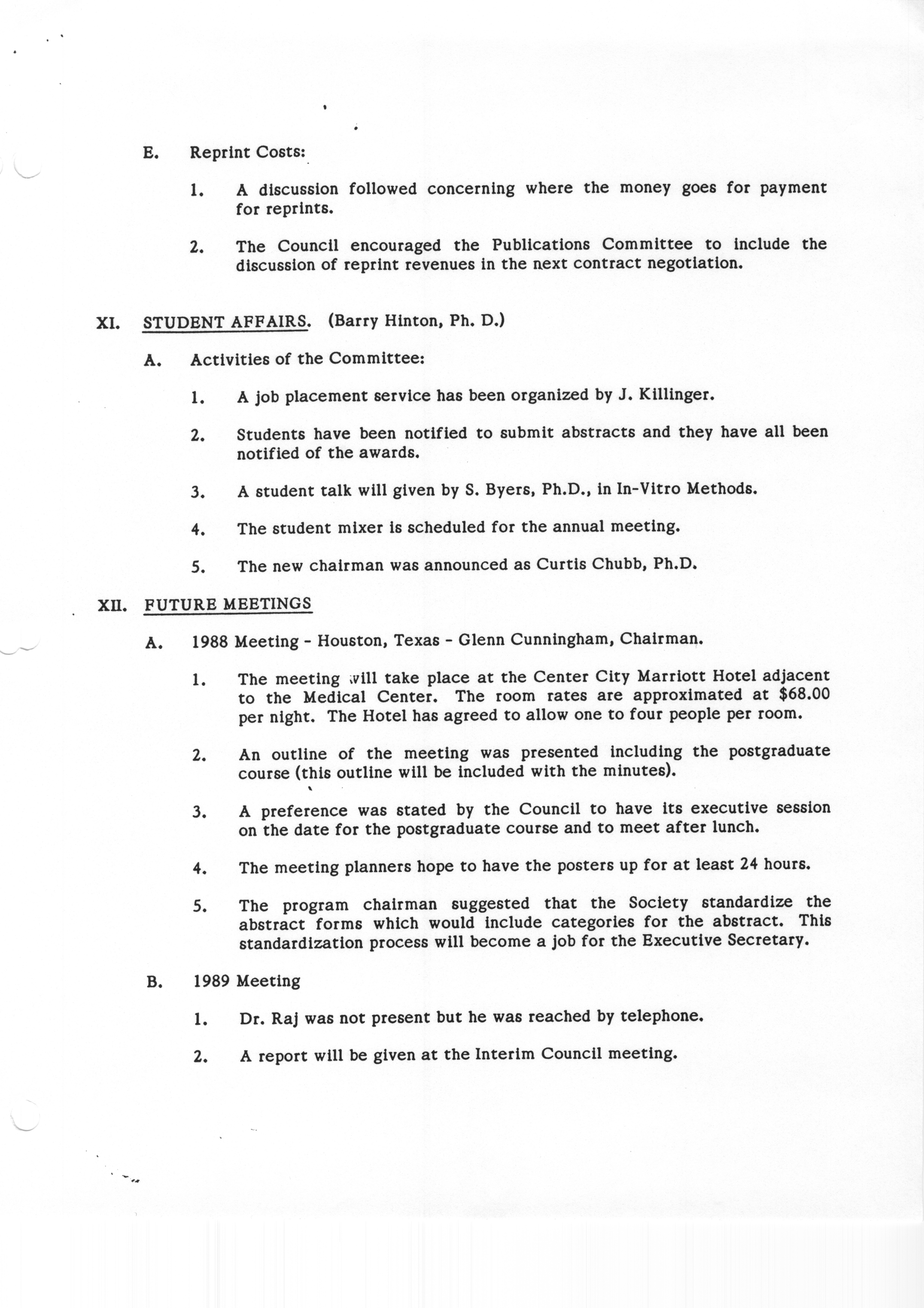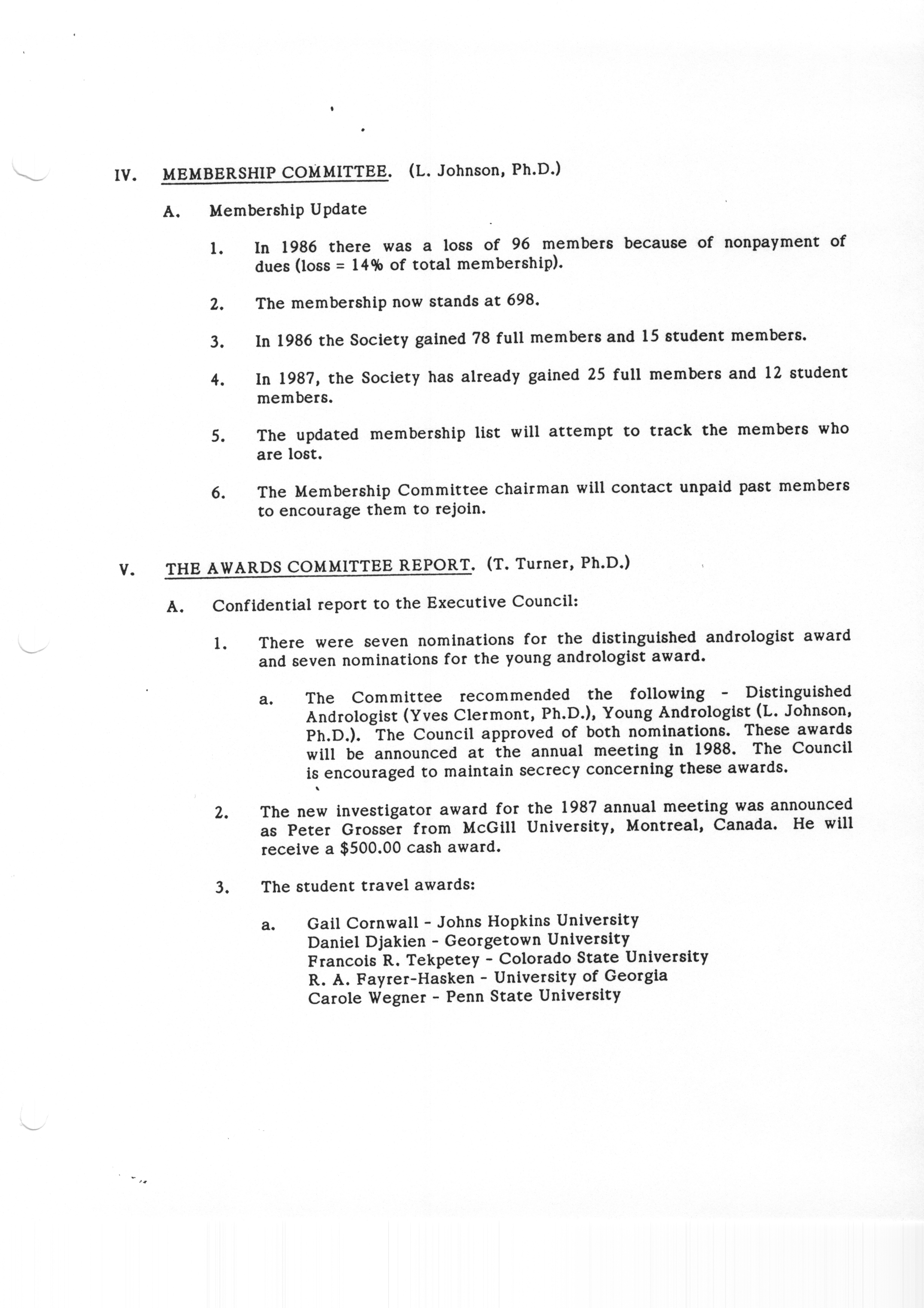 - "Executive Council Meeting of the American Society of Andrology, March 5, 1987", American Society of Andrology Collection, Iowa State University Library Digital Collections
