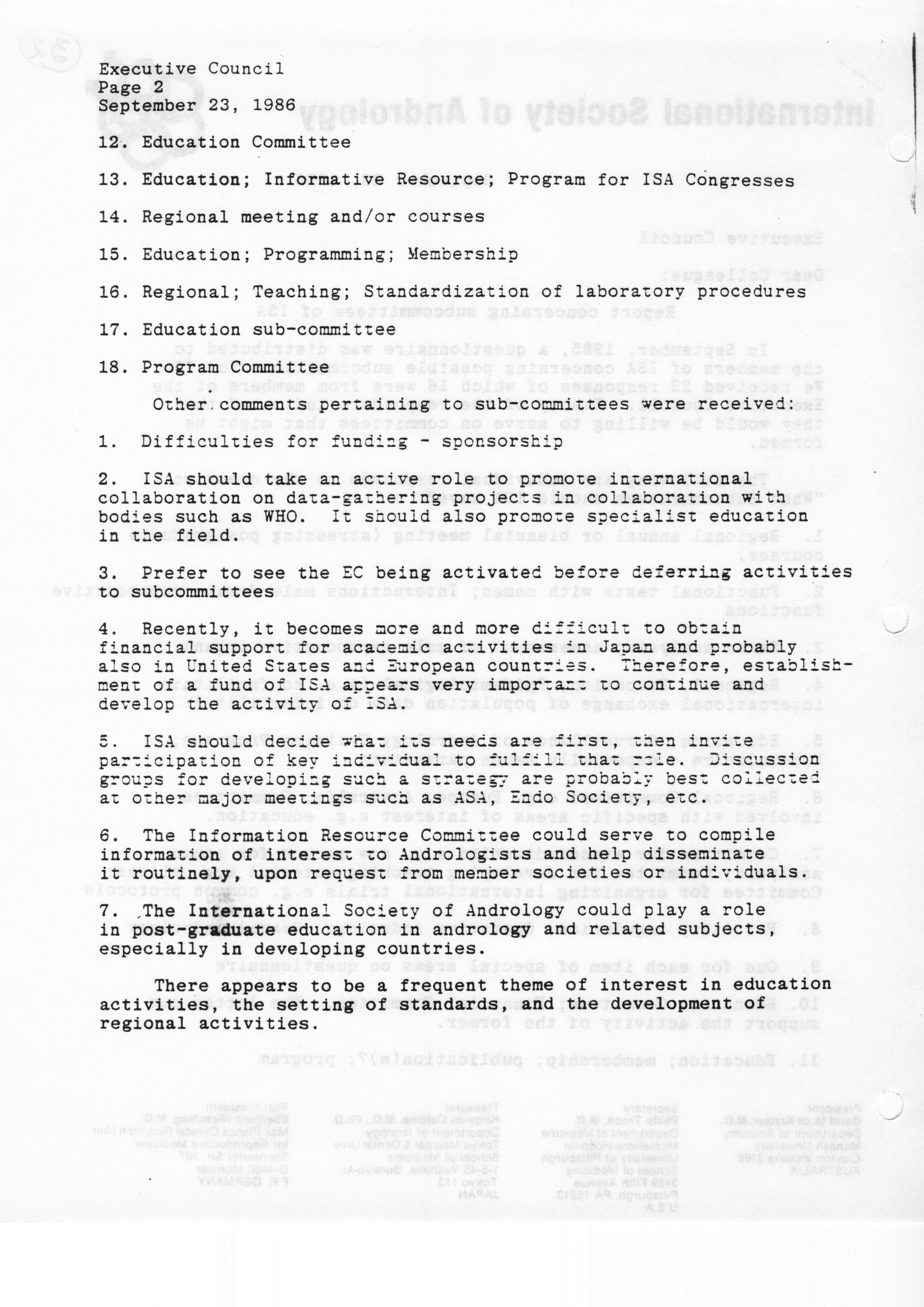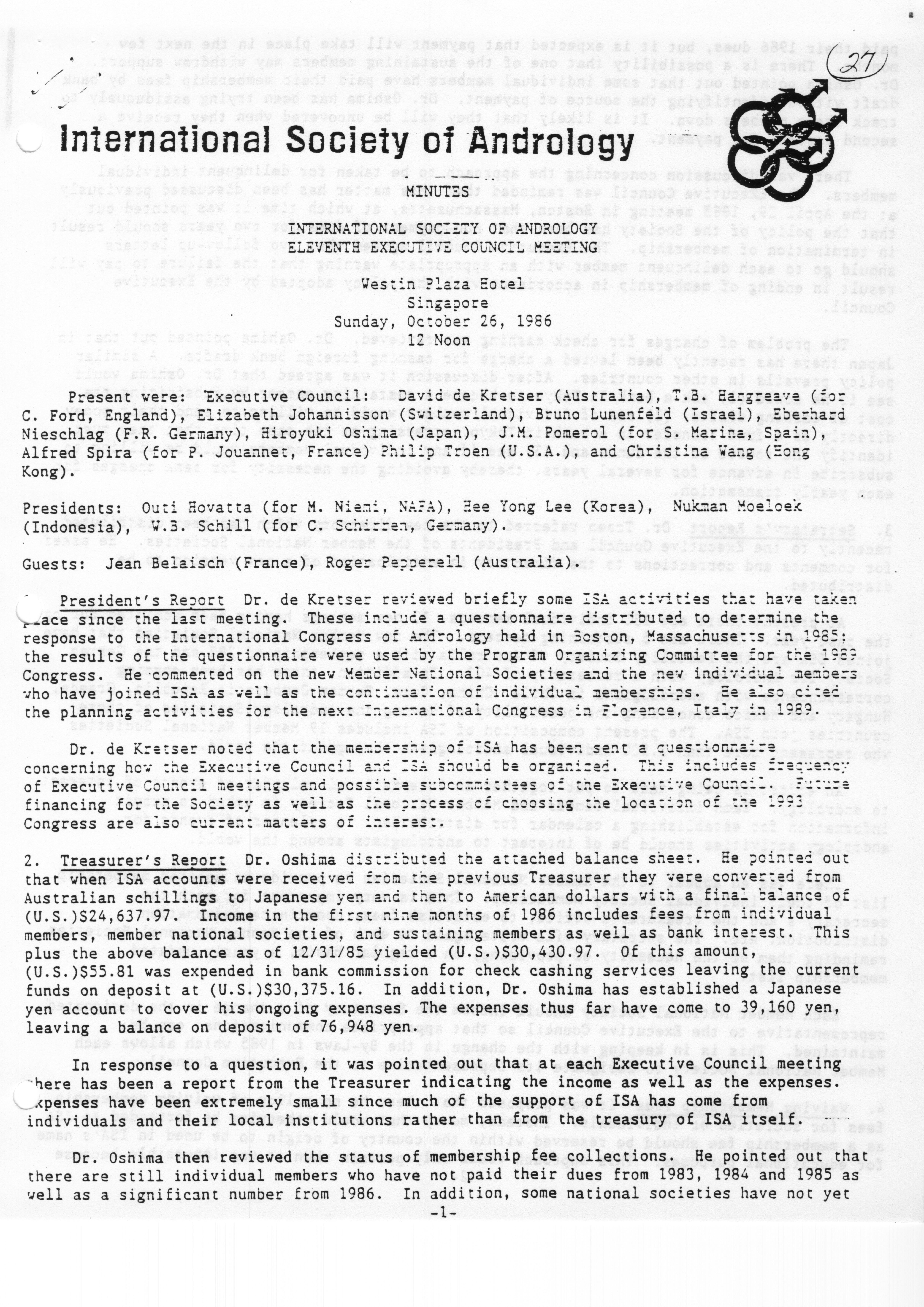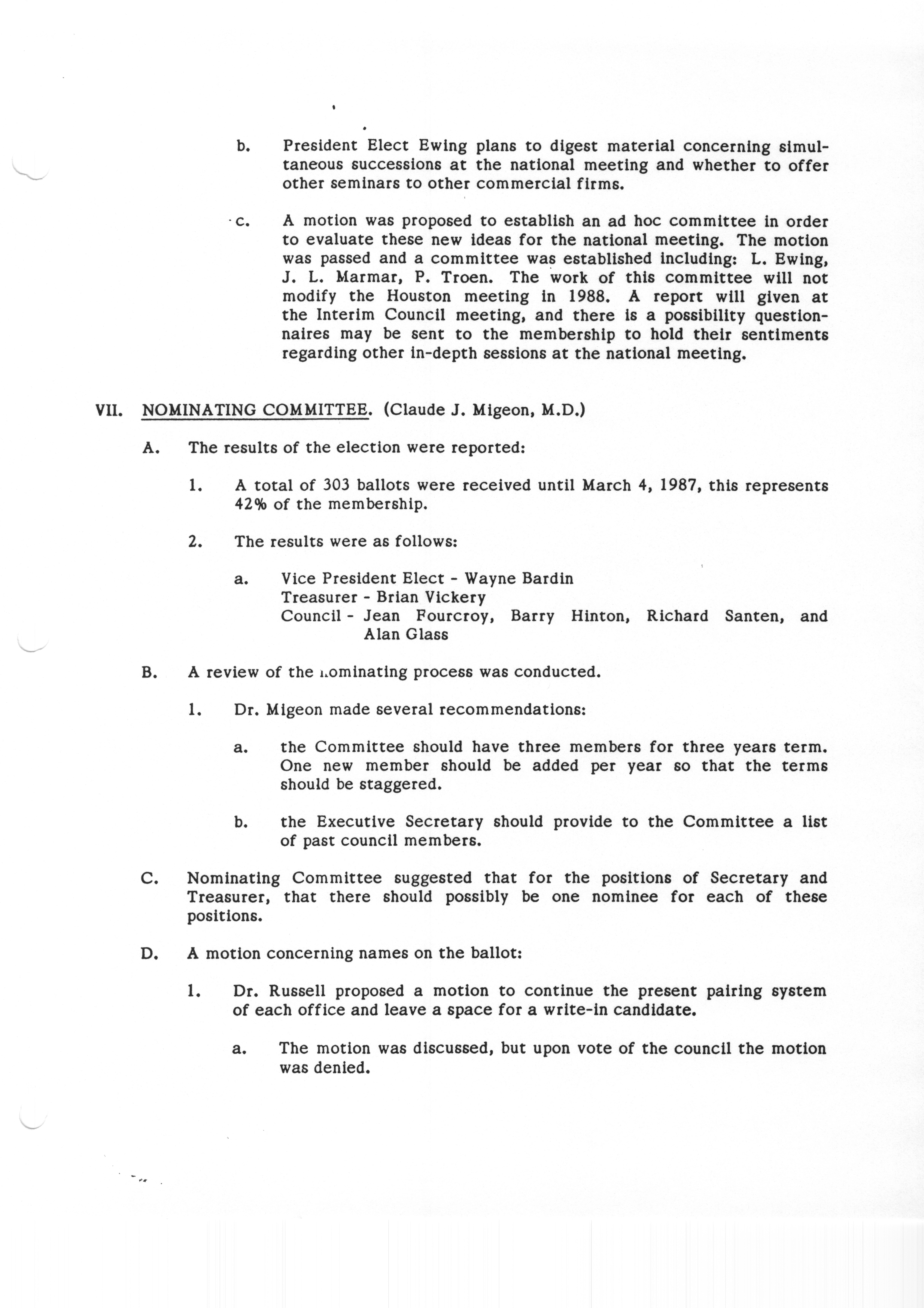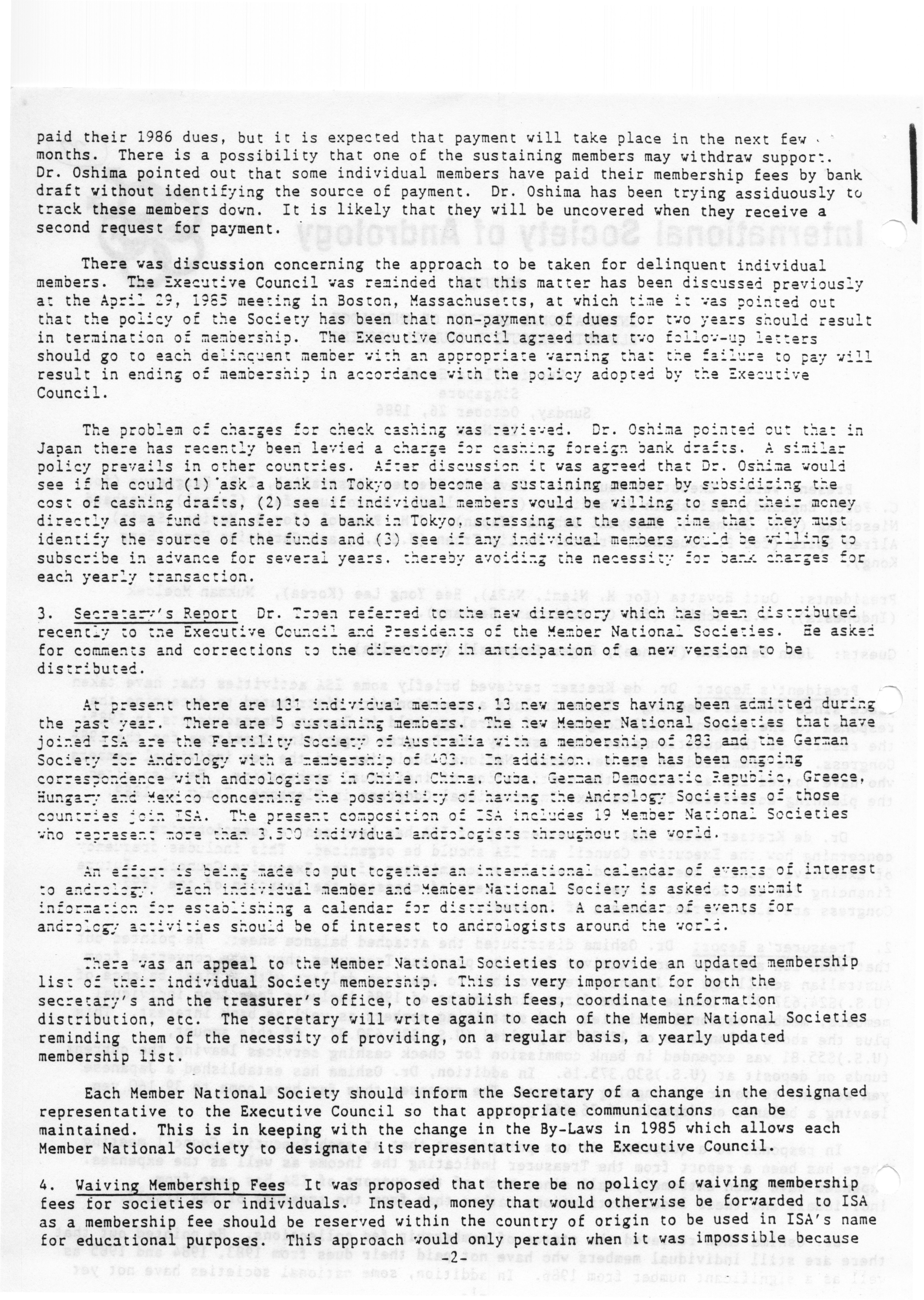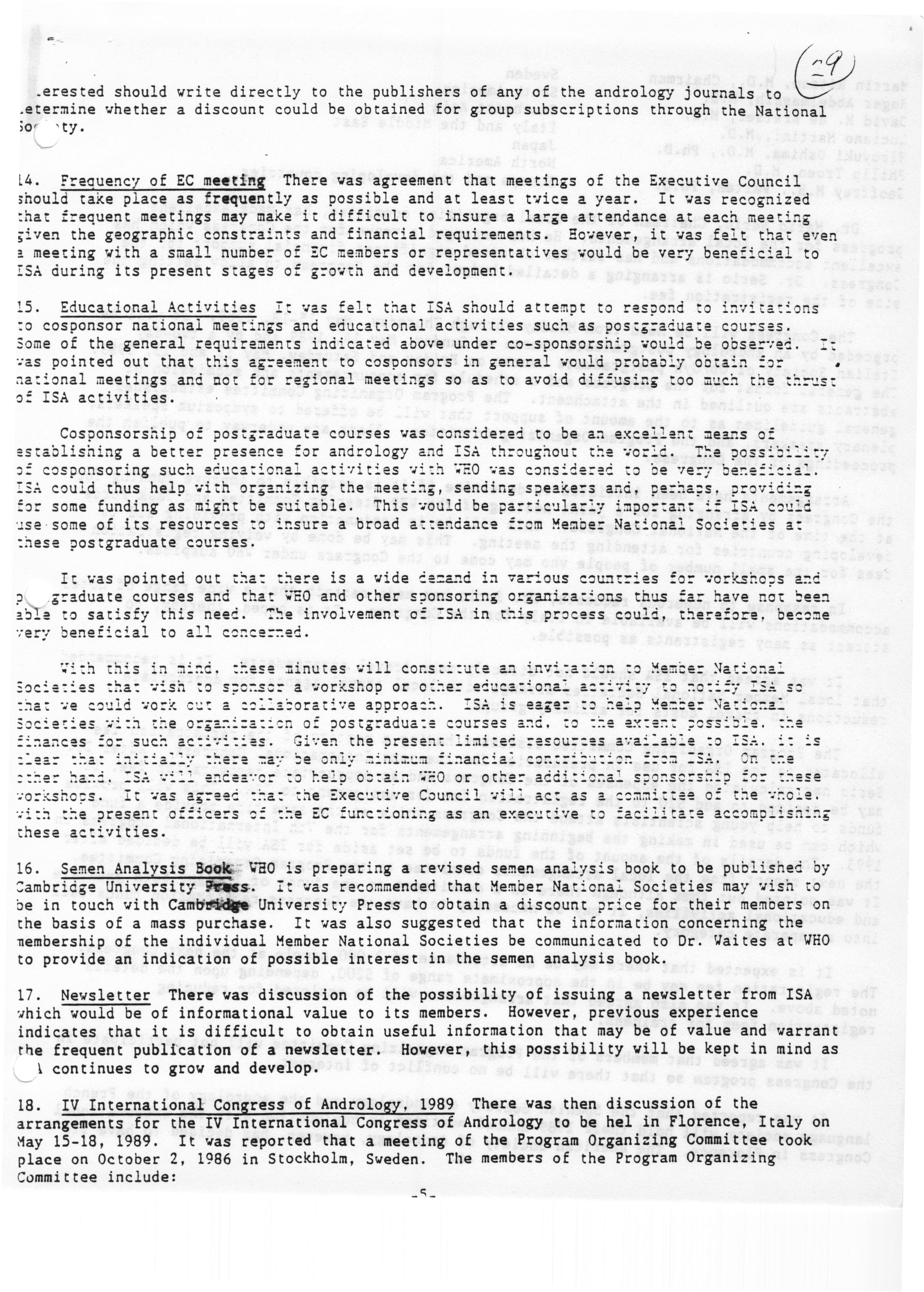 - "Executive Council Meeting of the American Society of Andrology, March 5, 1987", American Society of Andrology Collection, Iowa State University Library Digital Collections