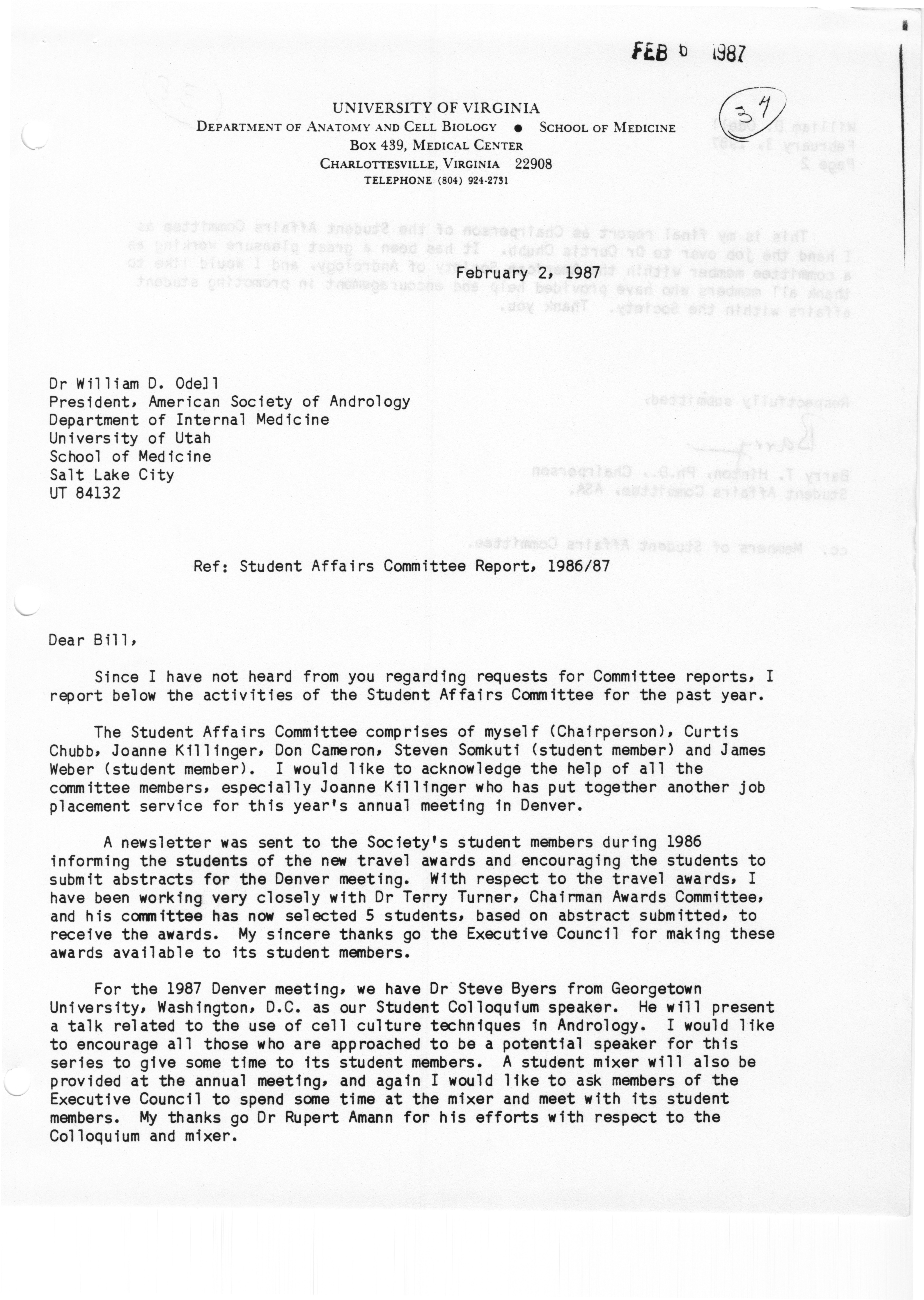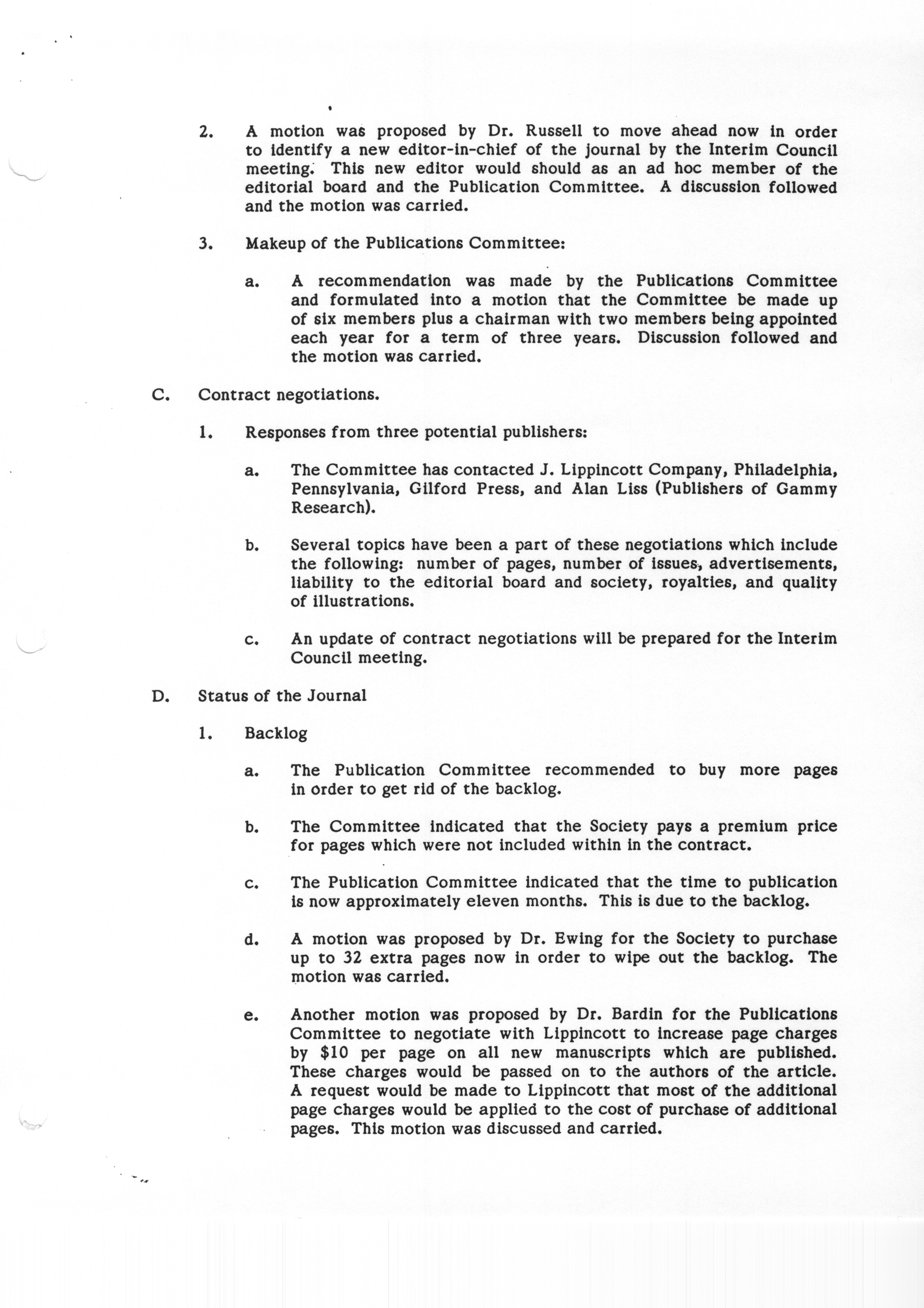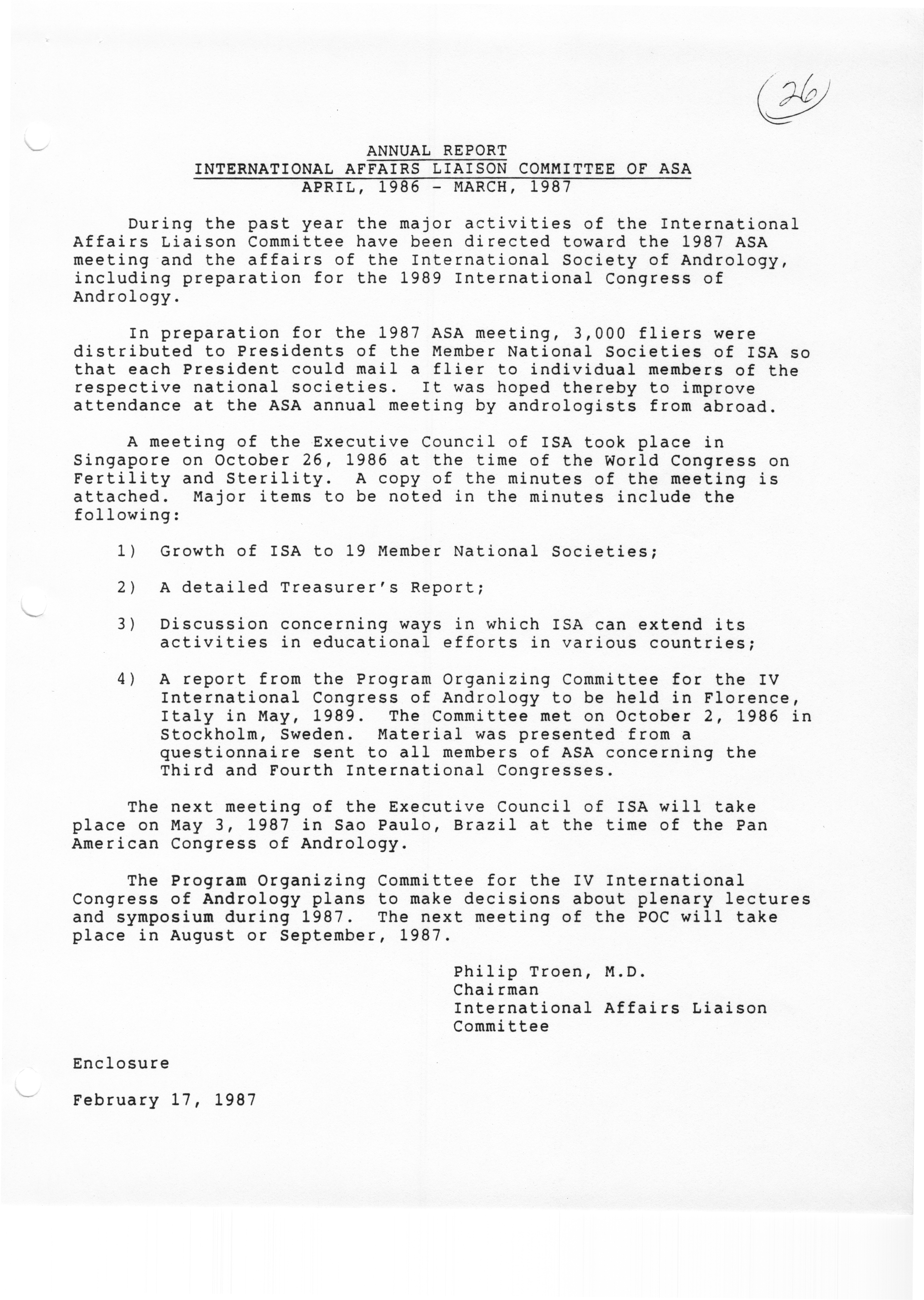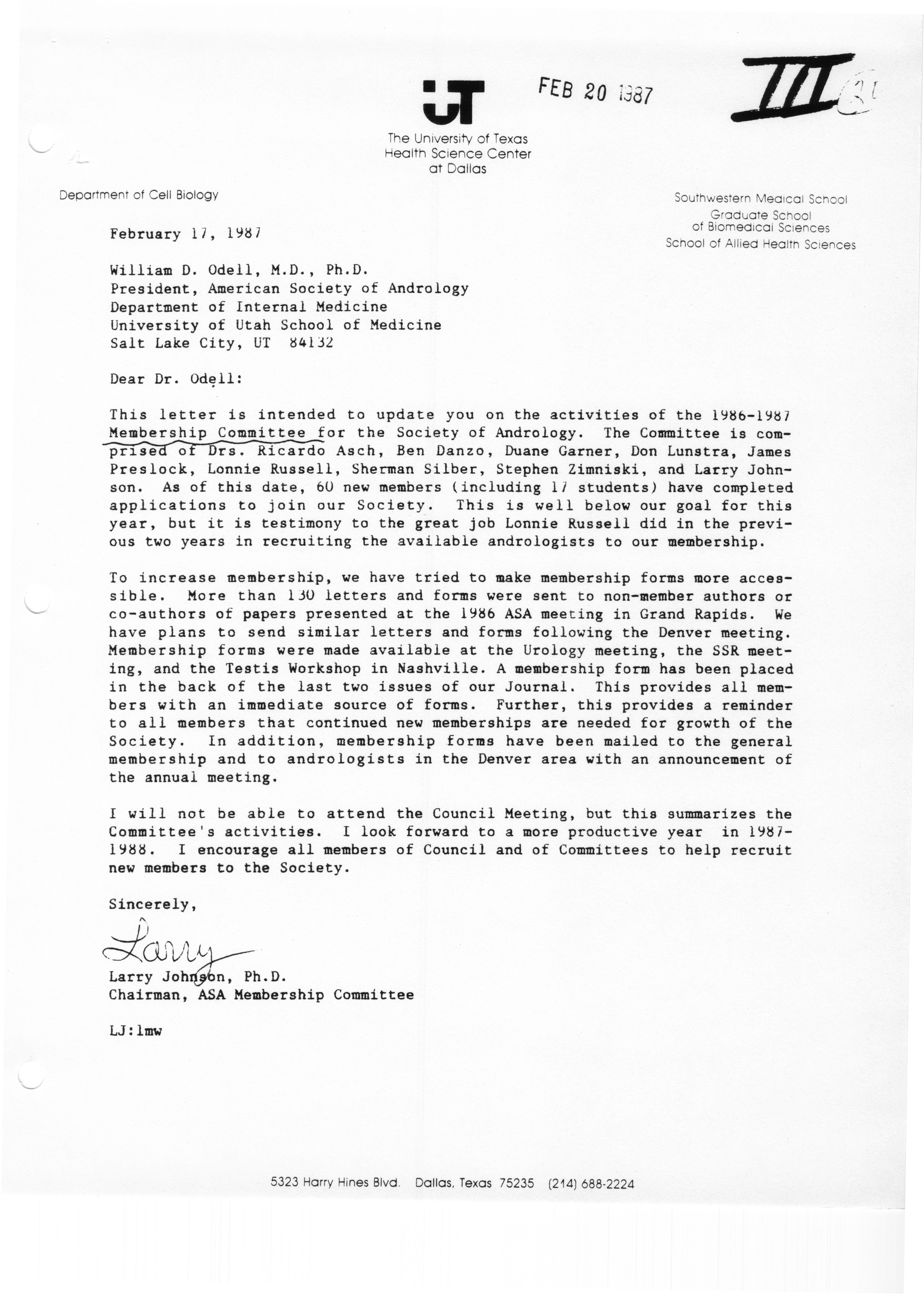 - "Executive Council Meeting of the American Society of Andrology, March 5, 1987", American Society of Andrology Collection, Iowa State University Library Digital Collections