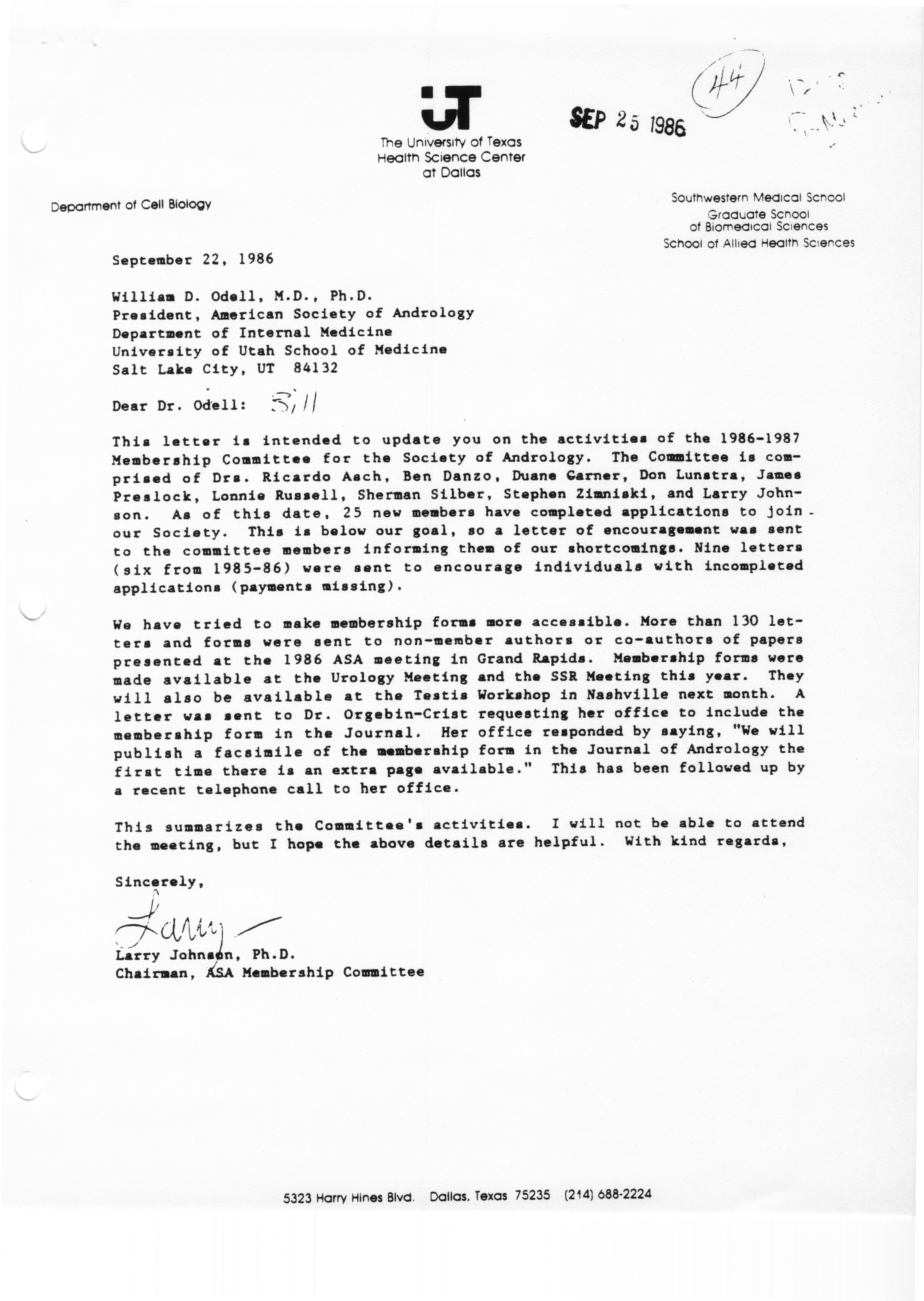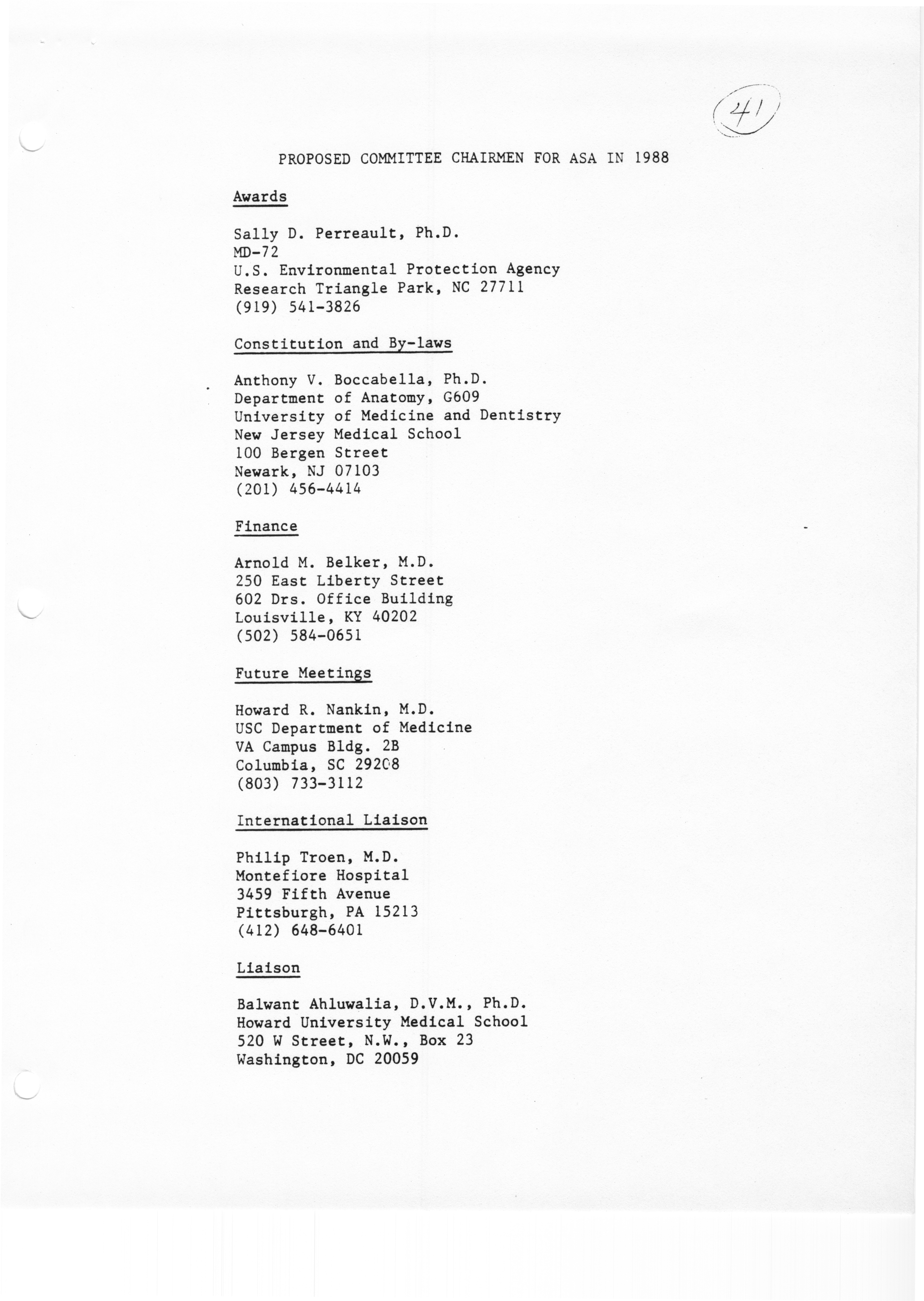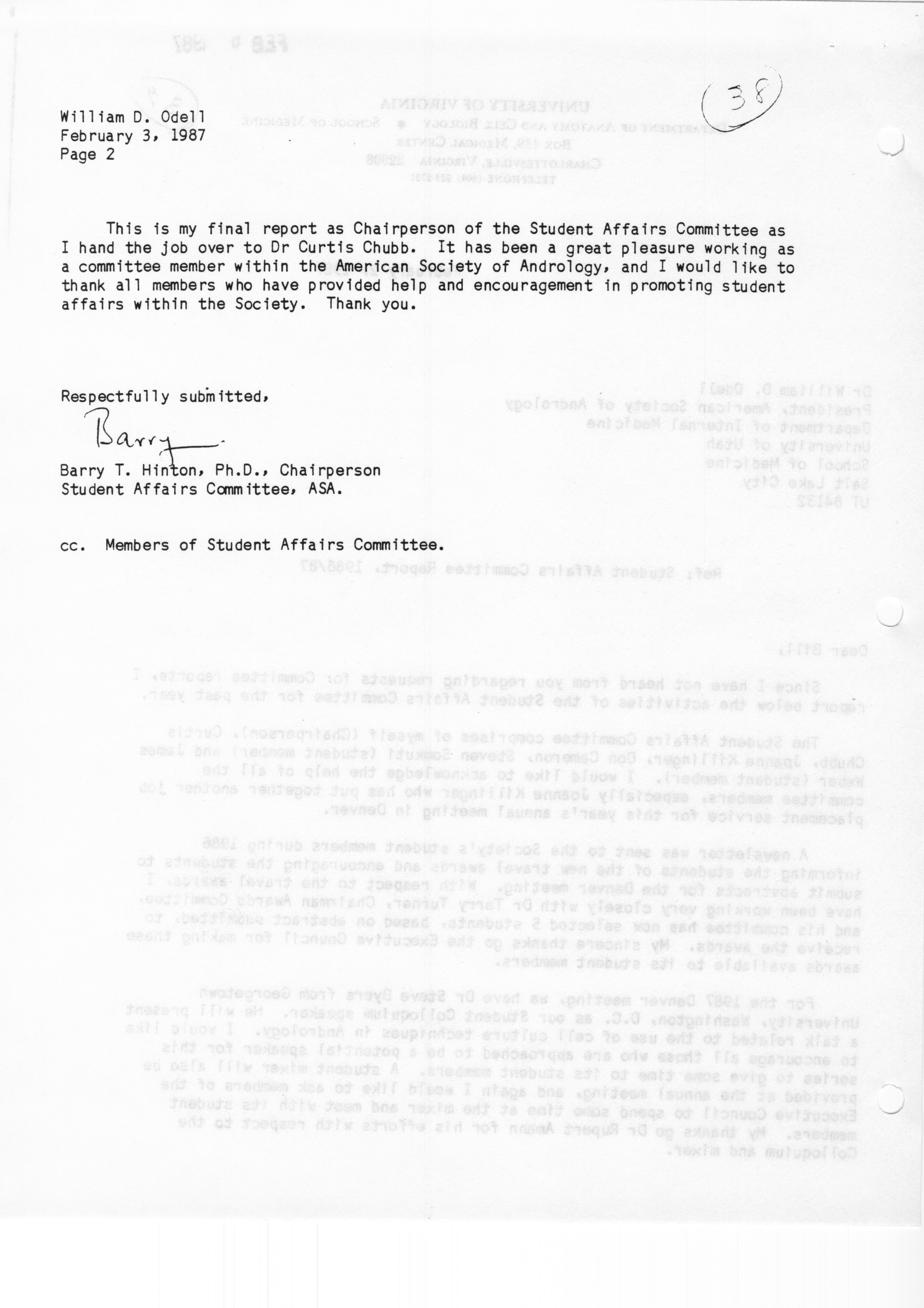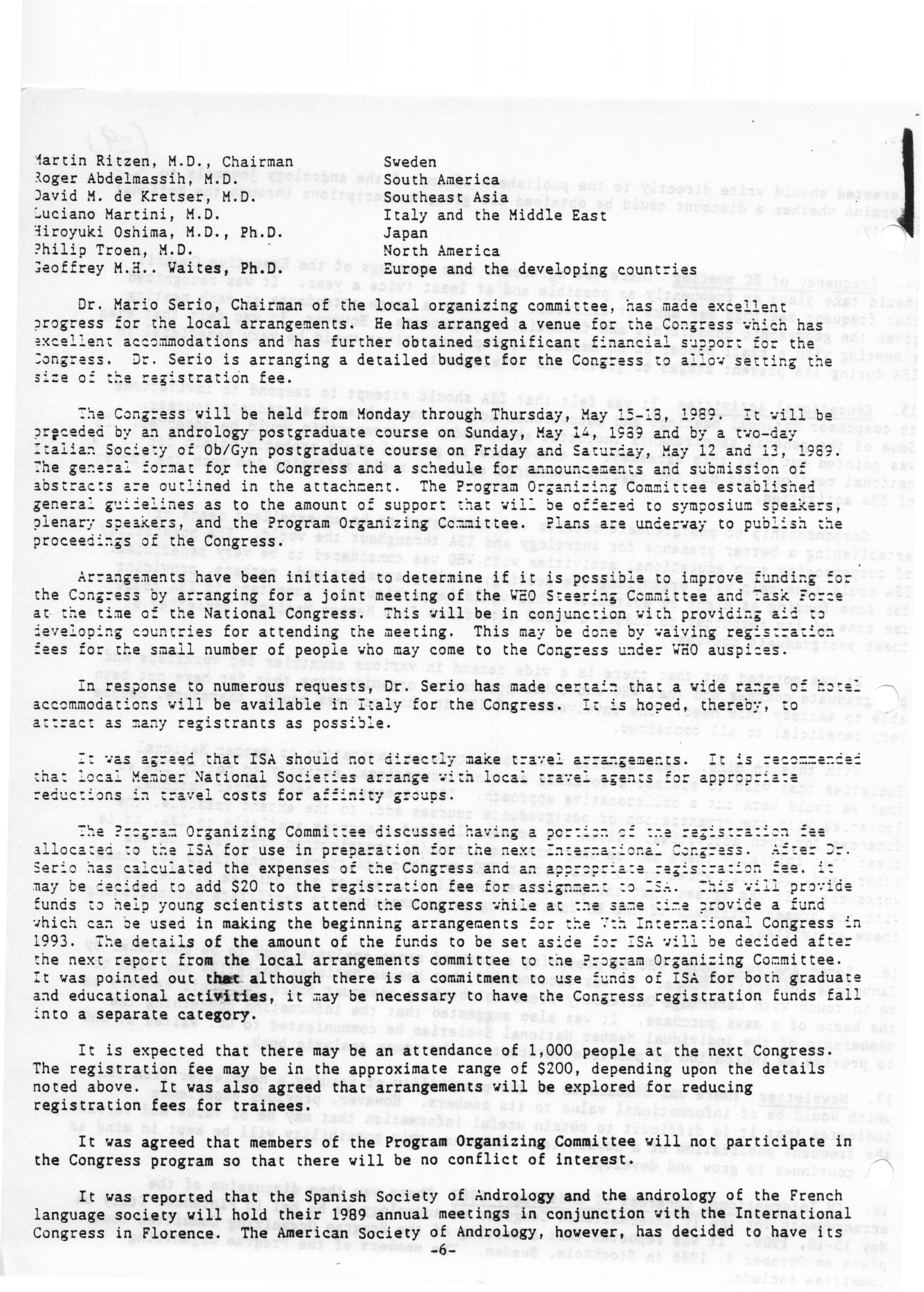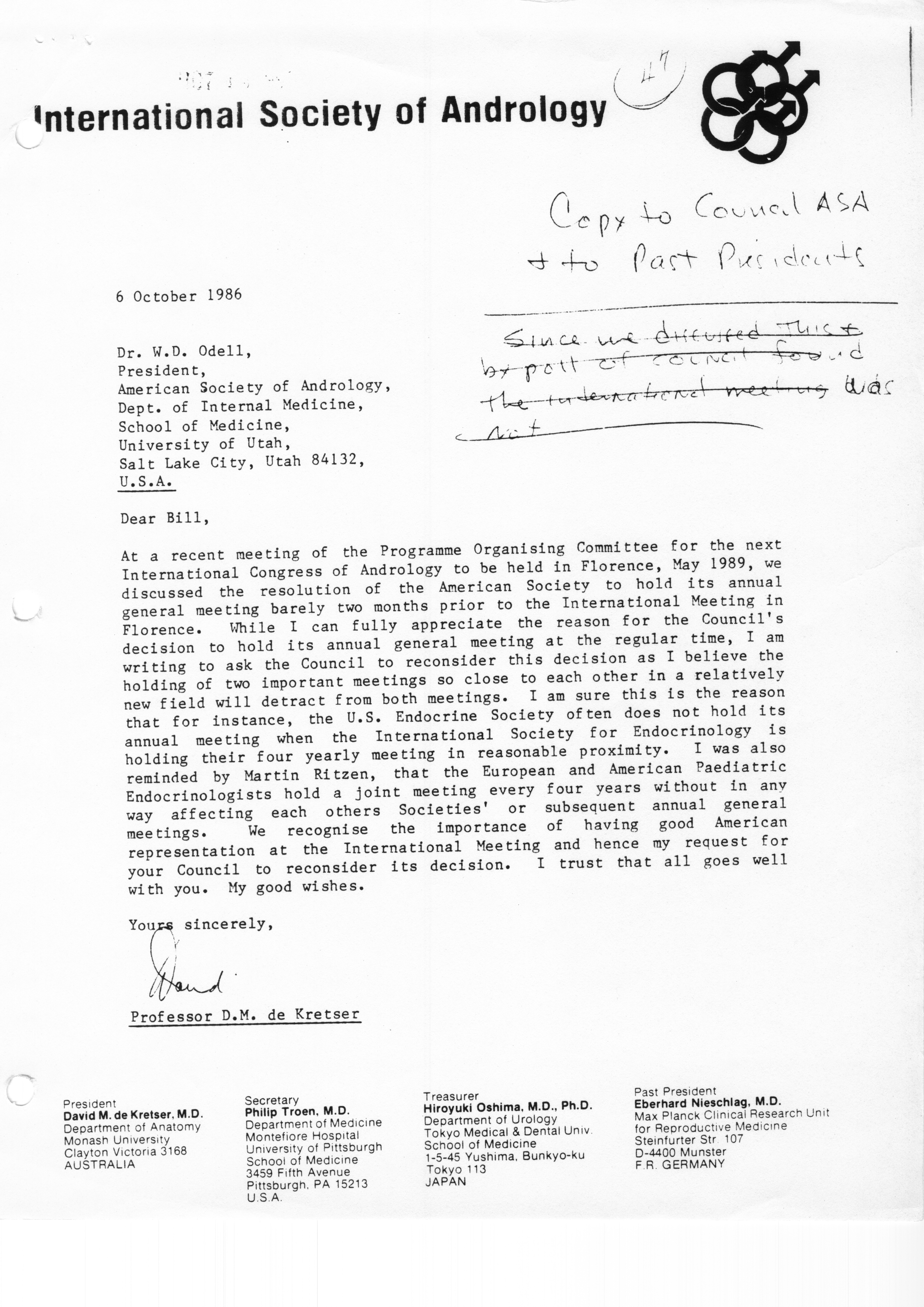 - "Executive Council Meeting of the American Society of Andrology, March 5, 1987", American Society of Andrology Collection, Iowa State University Library Digital Collections