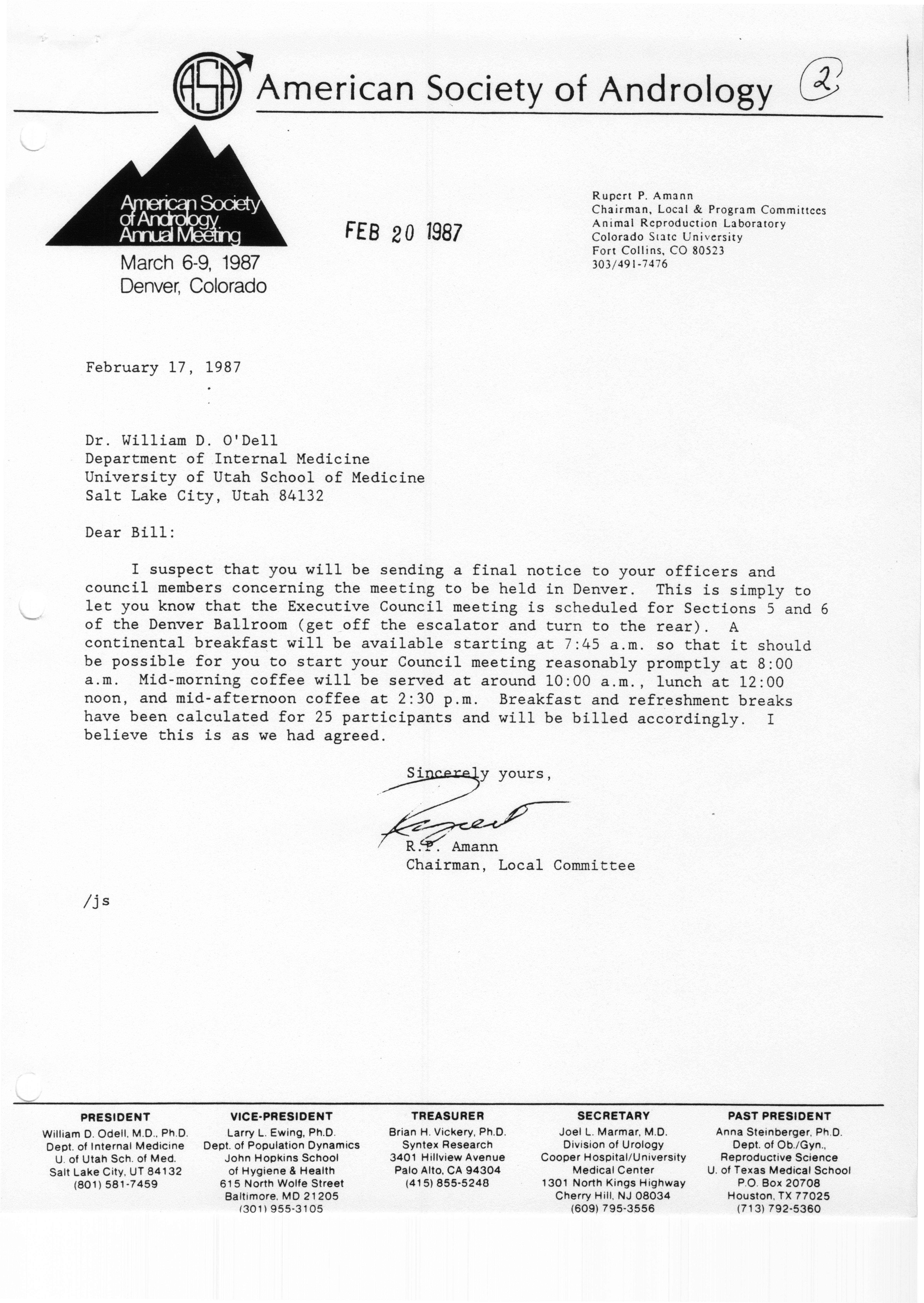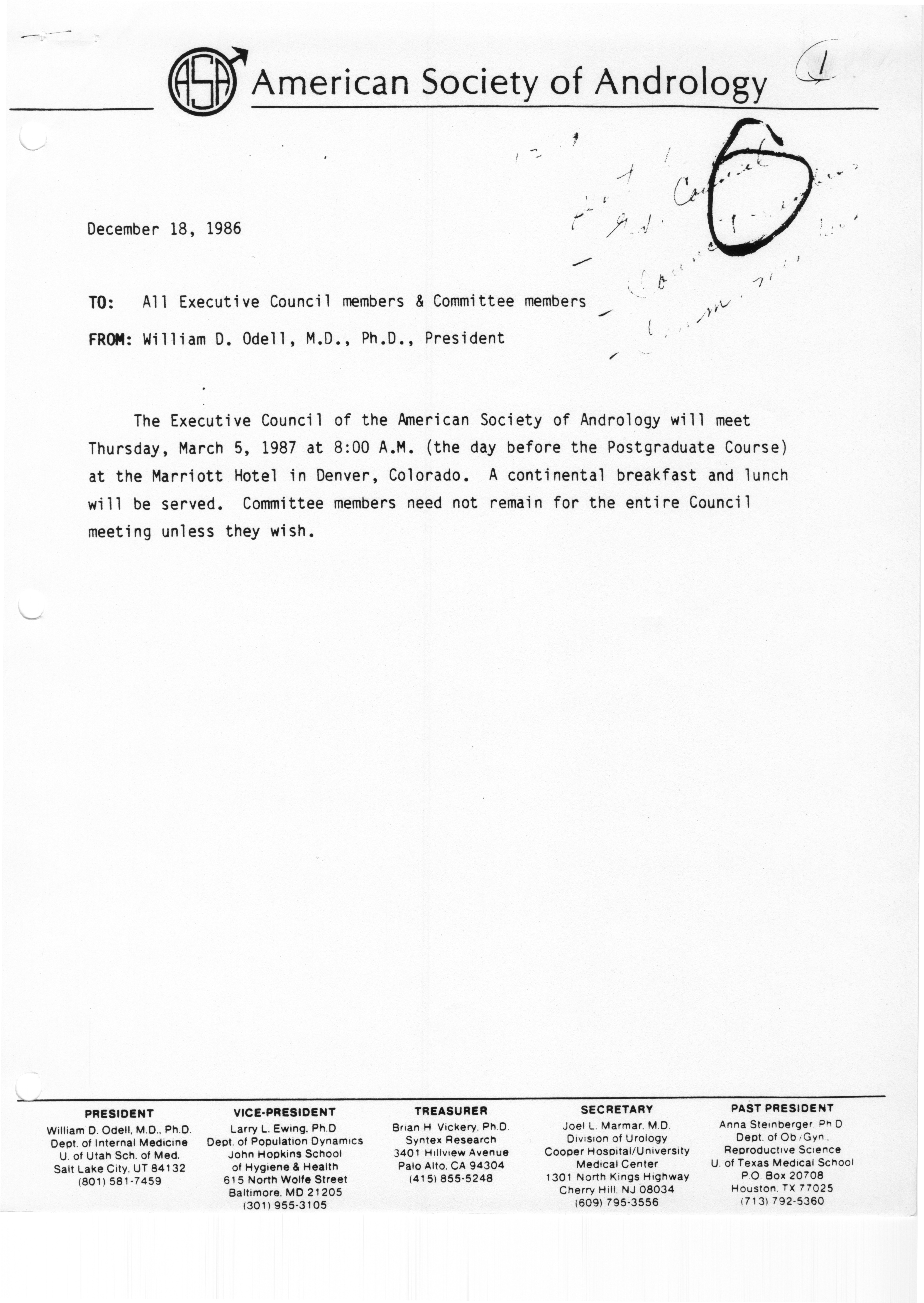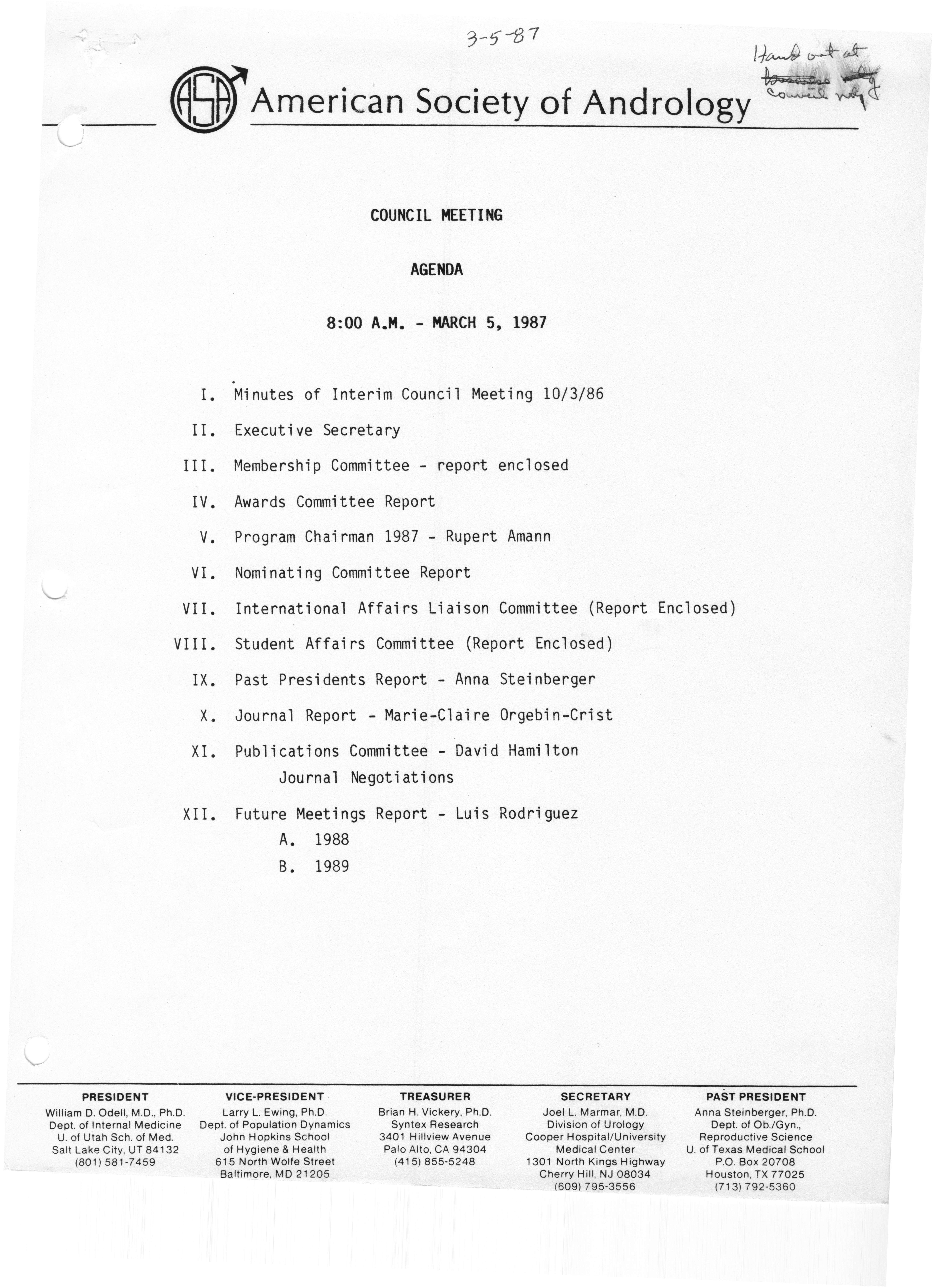 - Executive Council Meeting of the American Society of Andrology, March 5, 1987