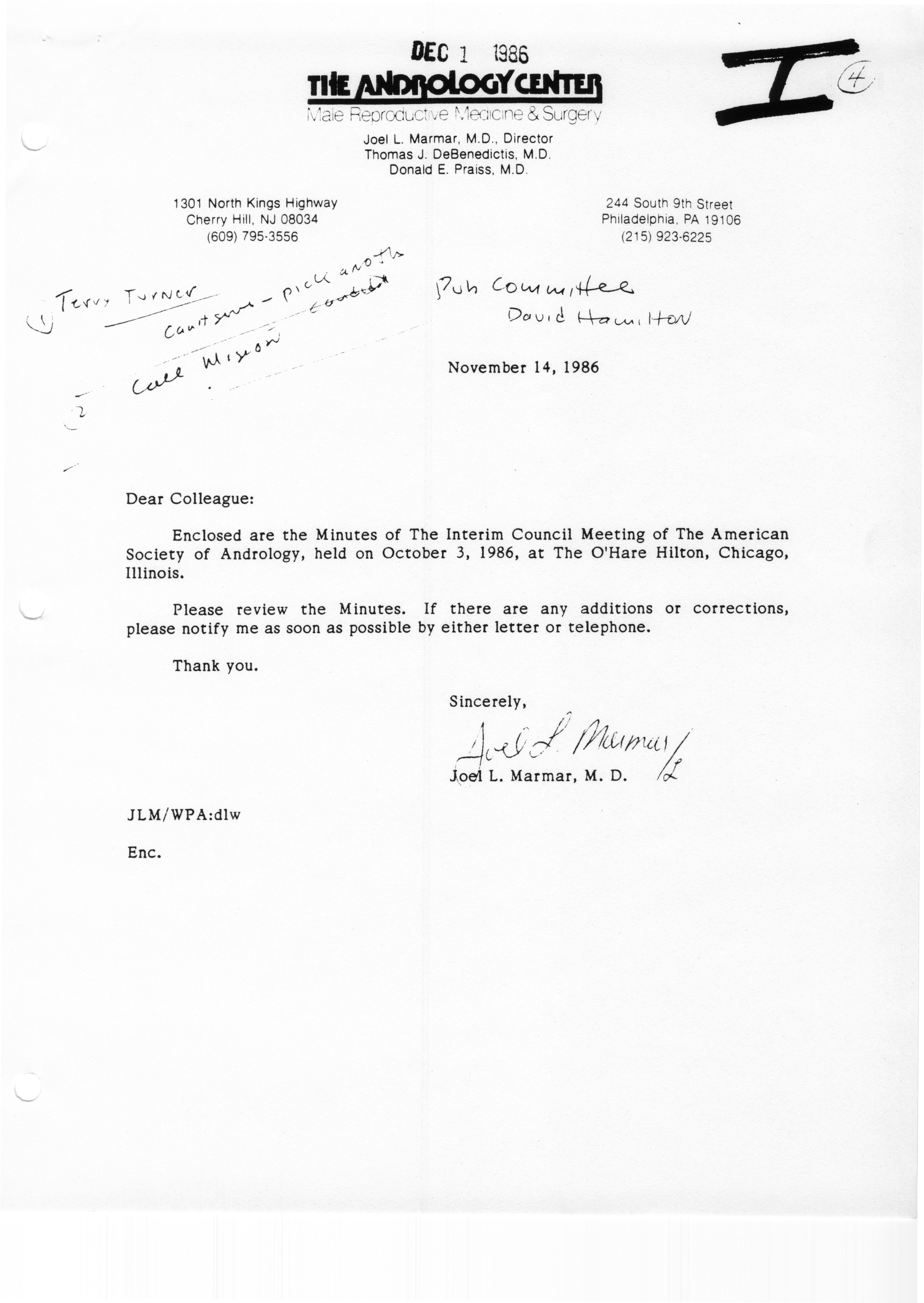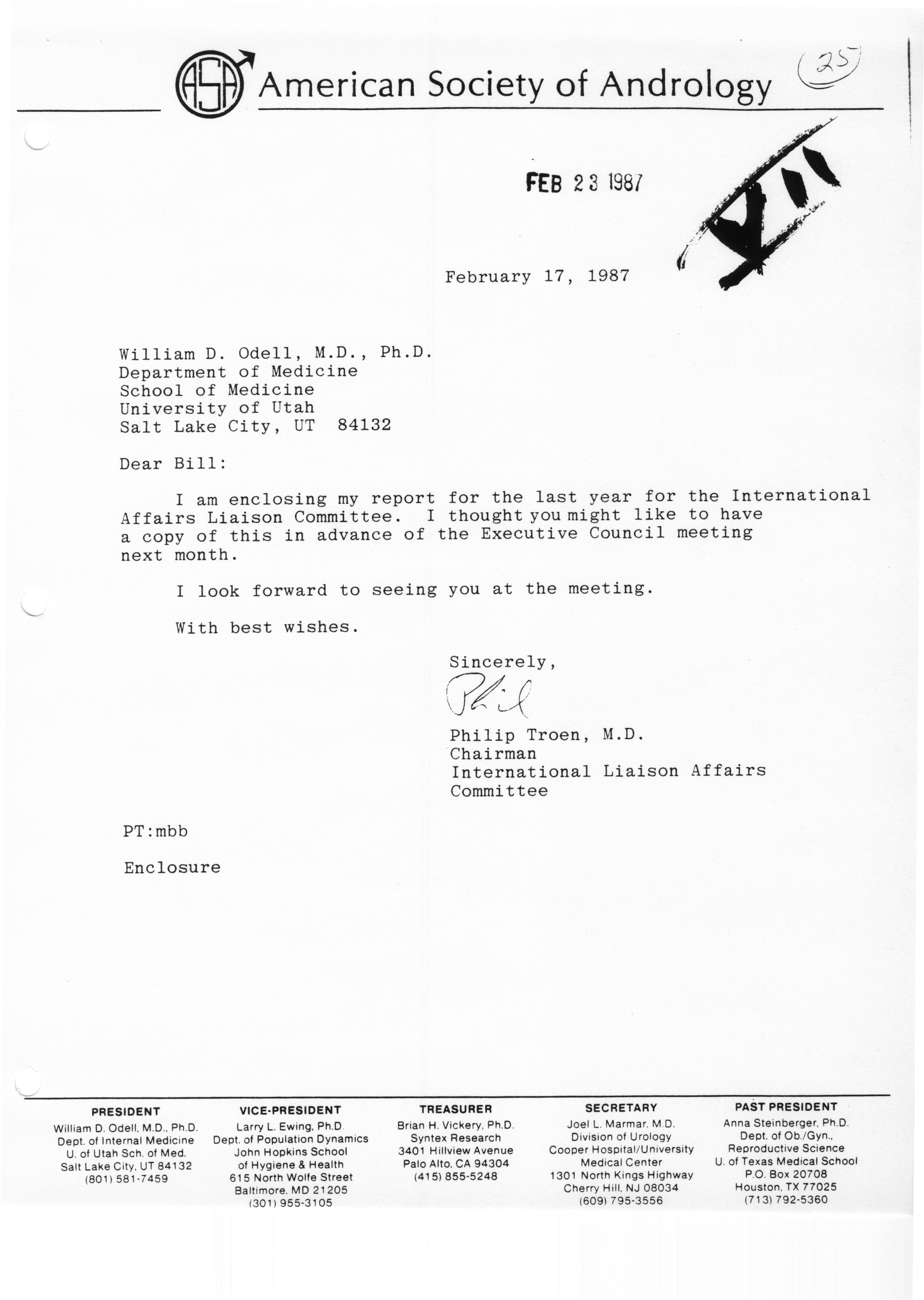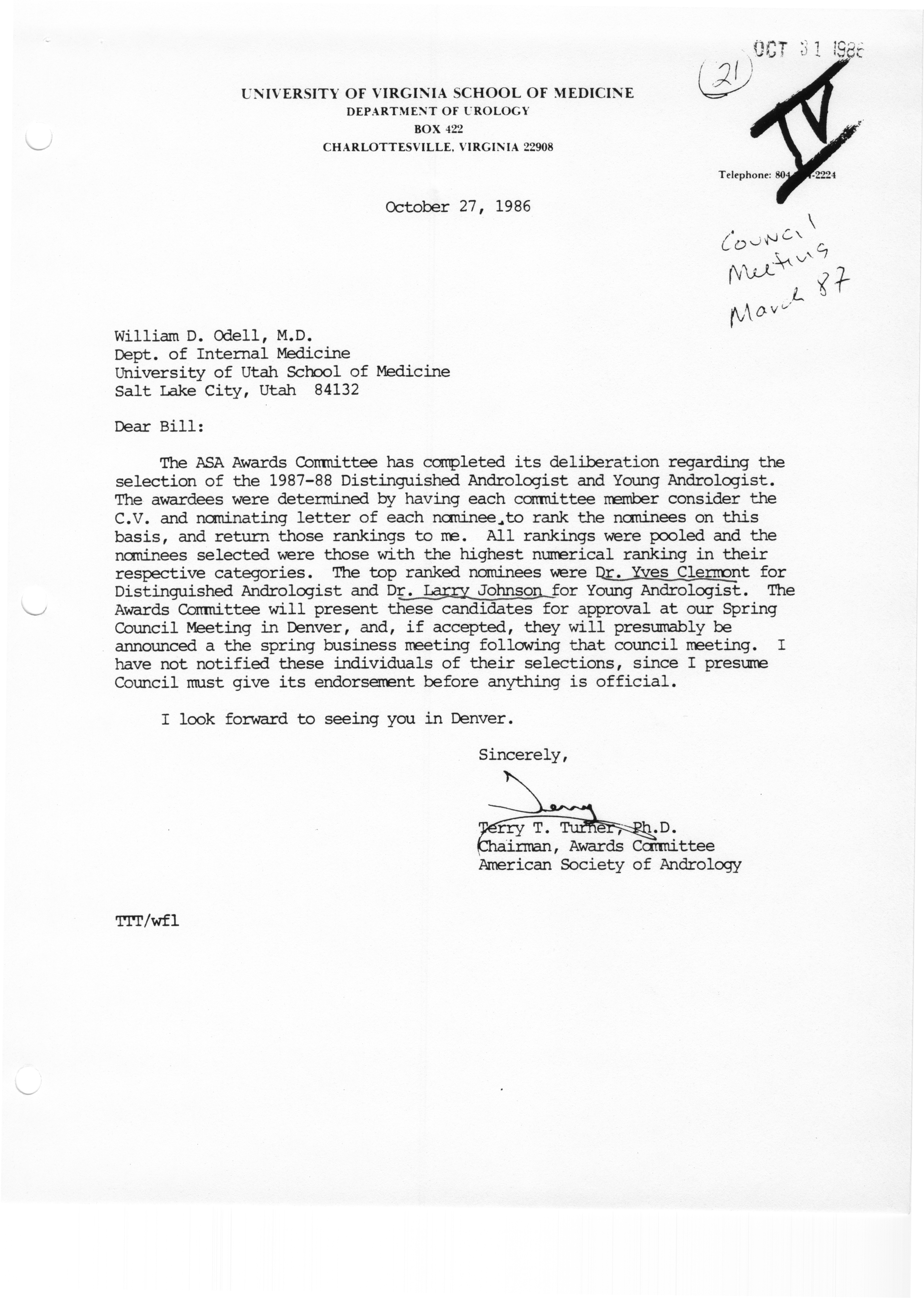 - Executive Council Meeting of the American Society of Andrology, March 5, 1987