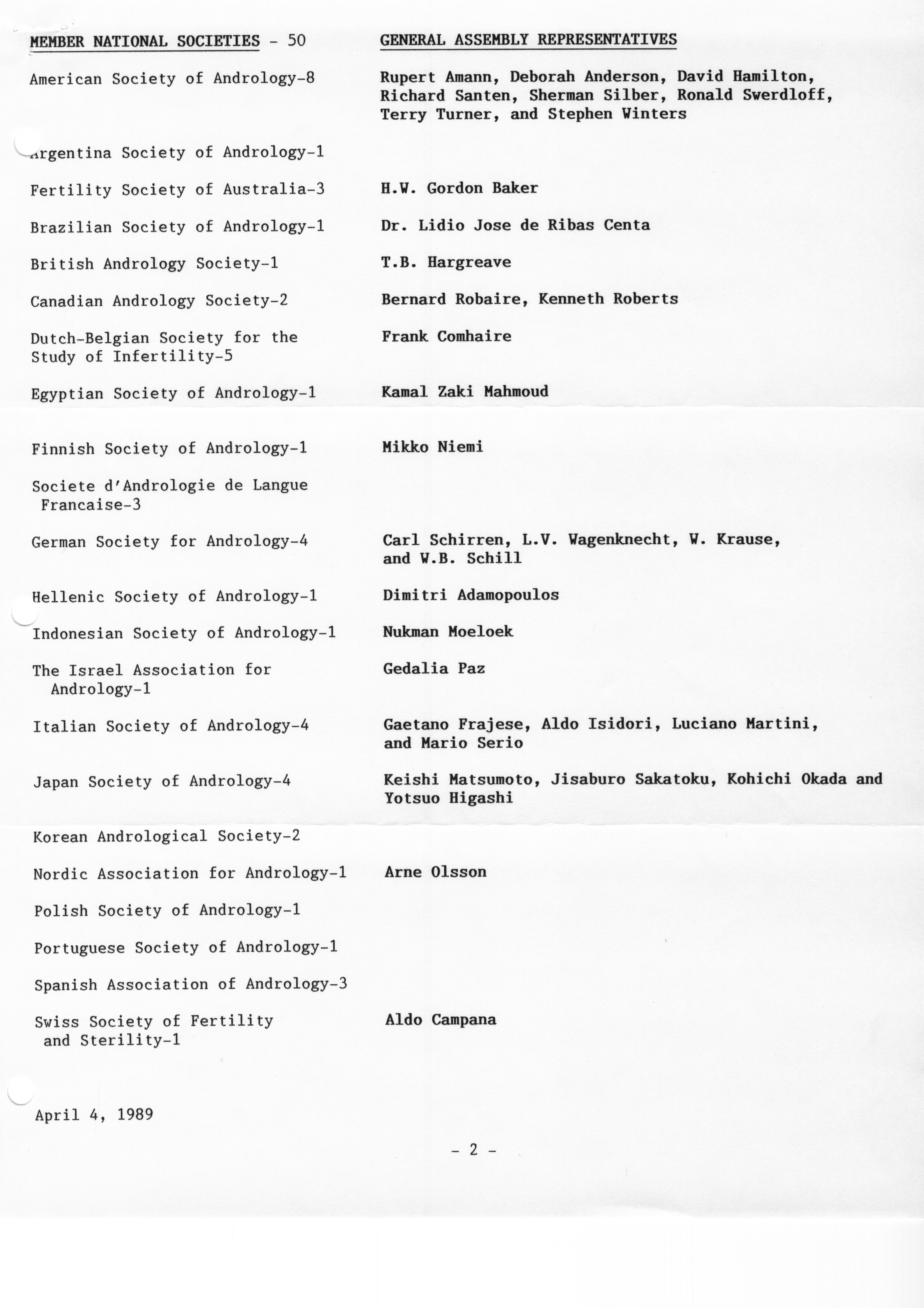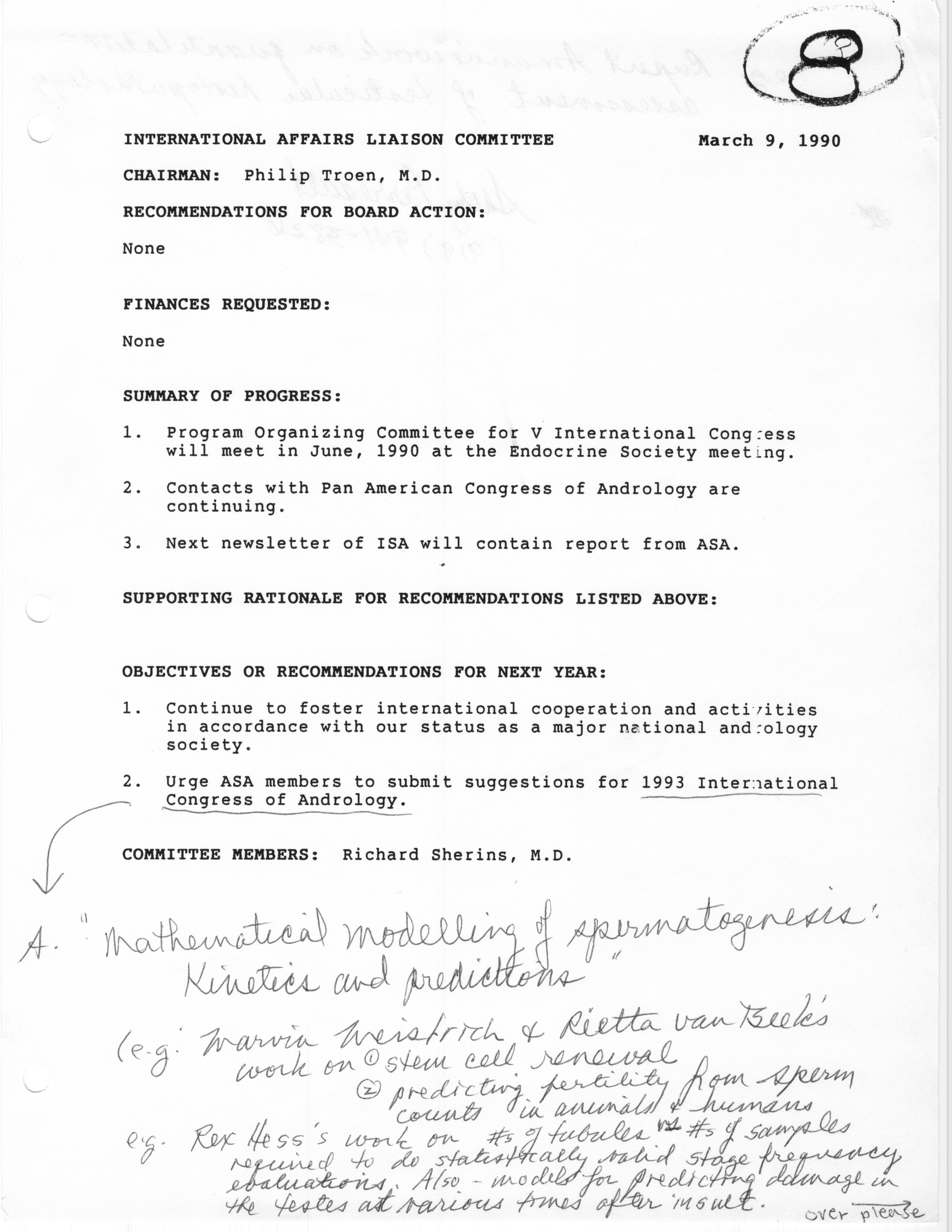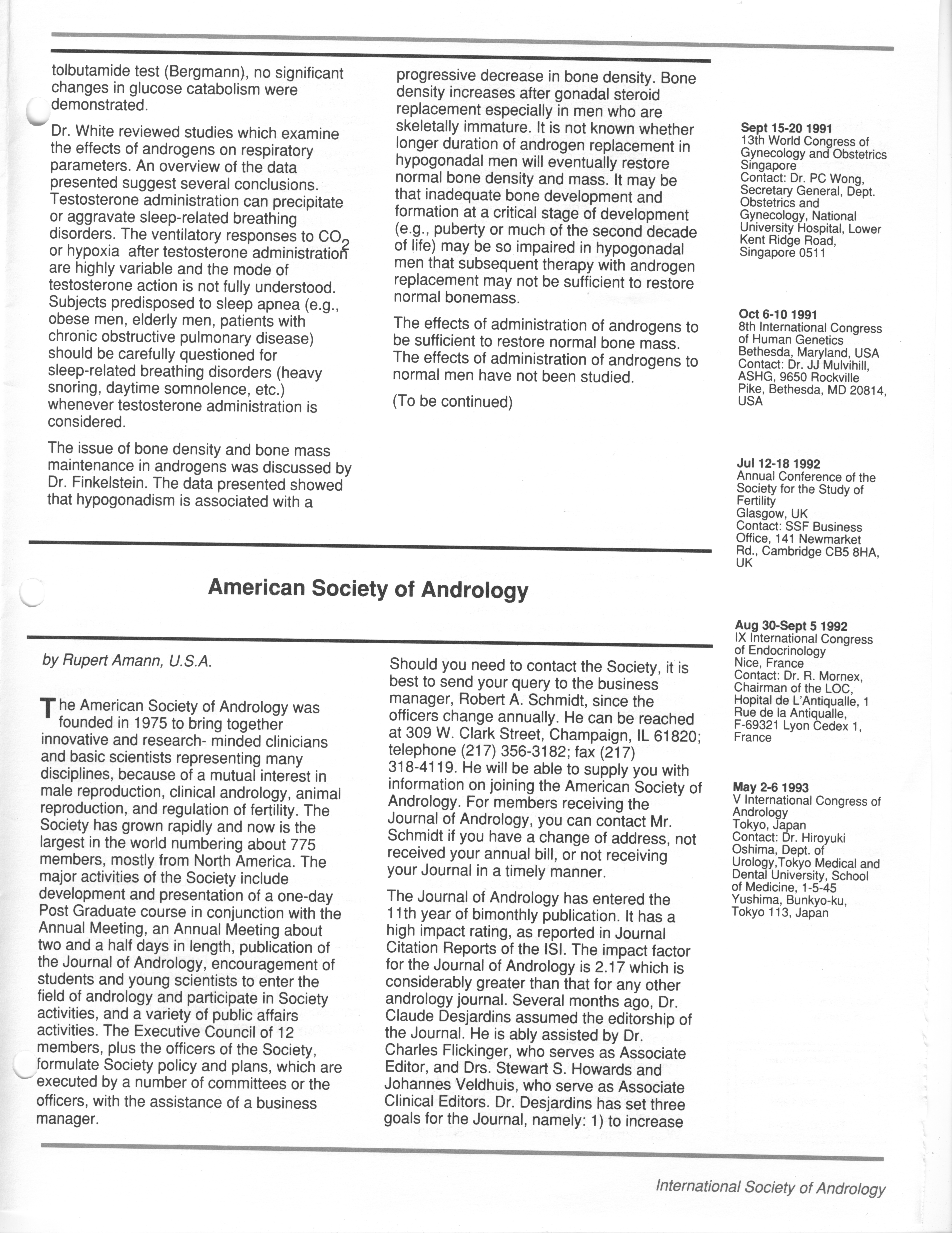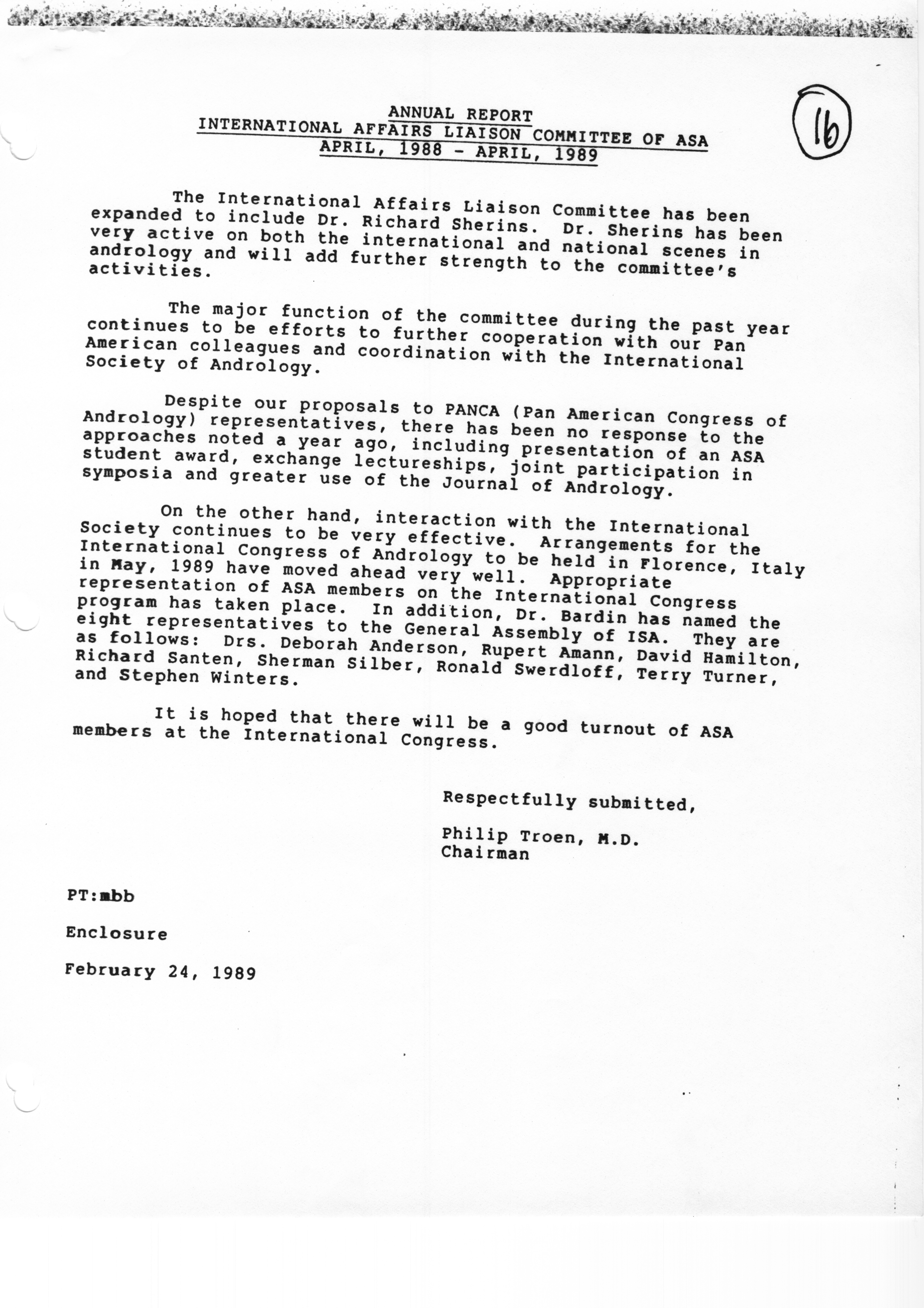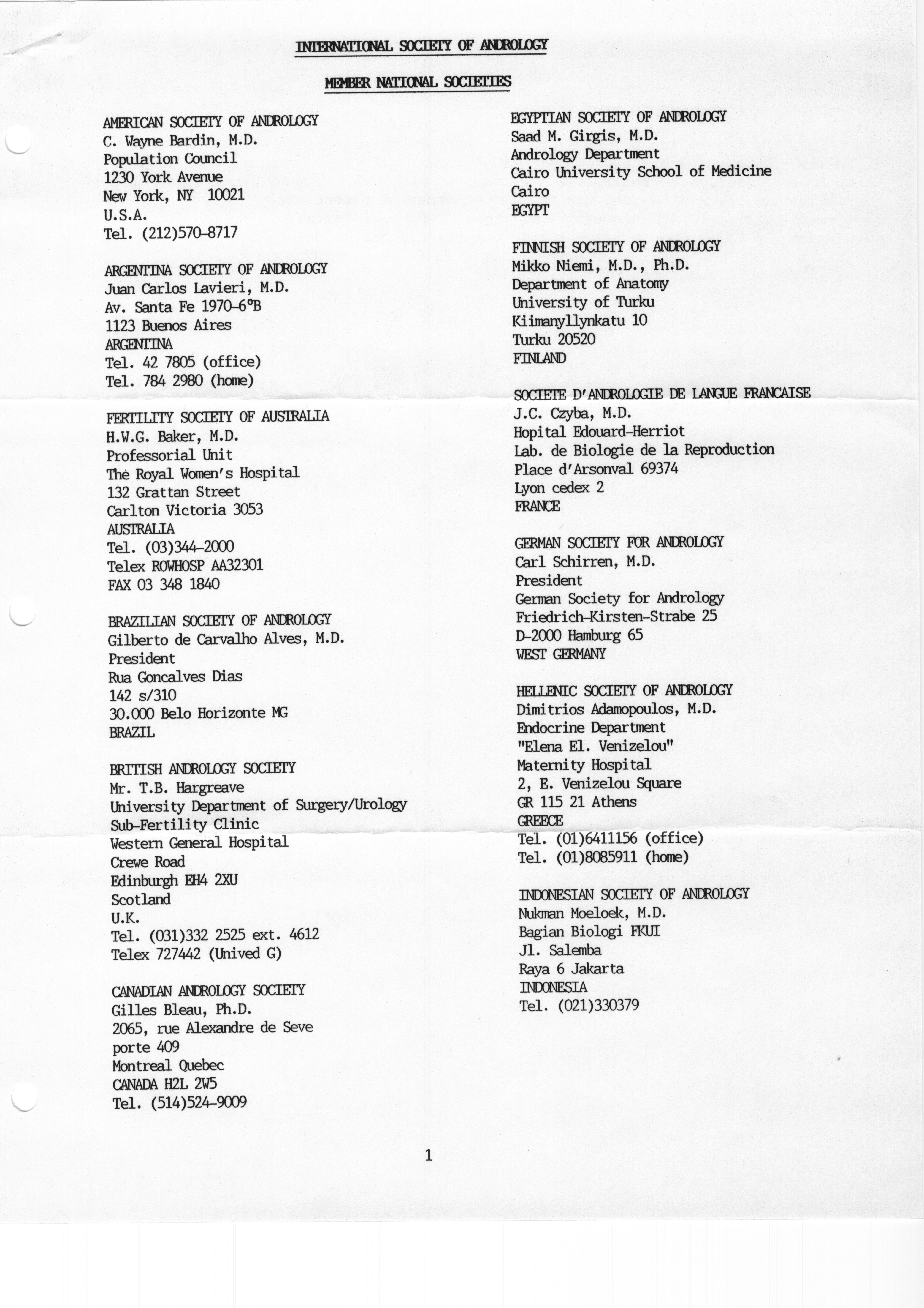 - "International Liaison Committee of the American Society of Andrology, 1985-90", American Society of Andrology Collection, Iowa State University Library Digital Collections