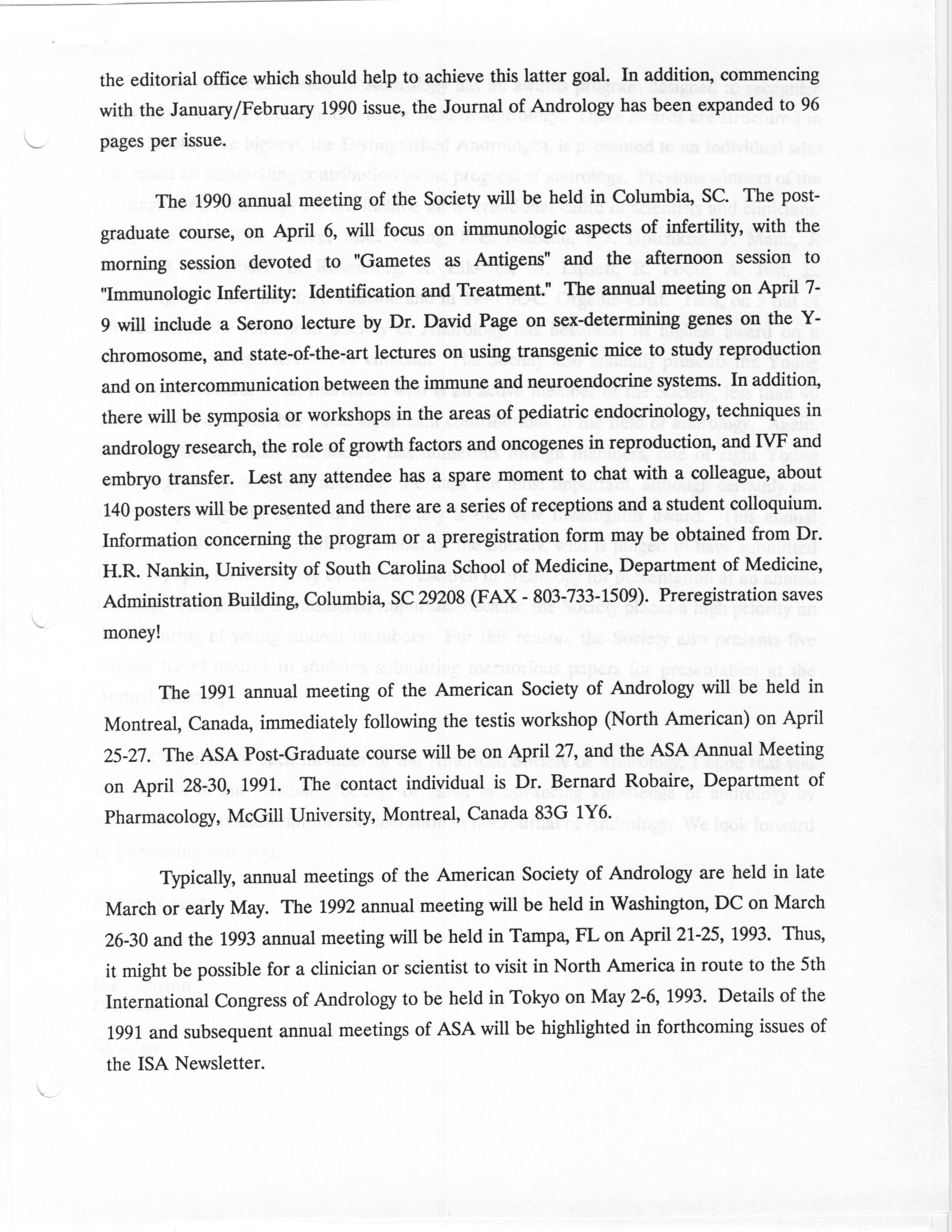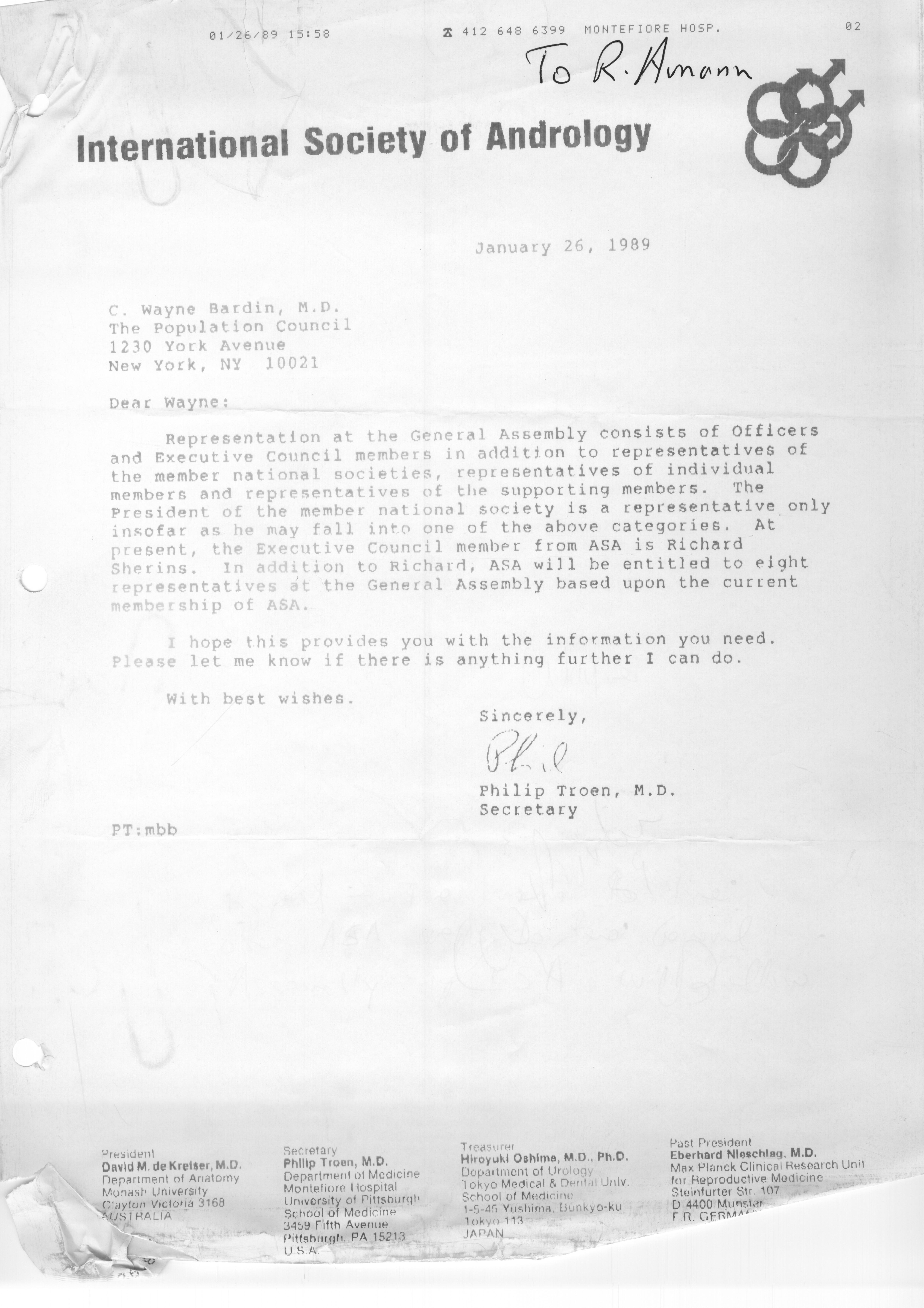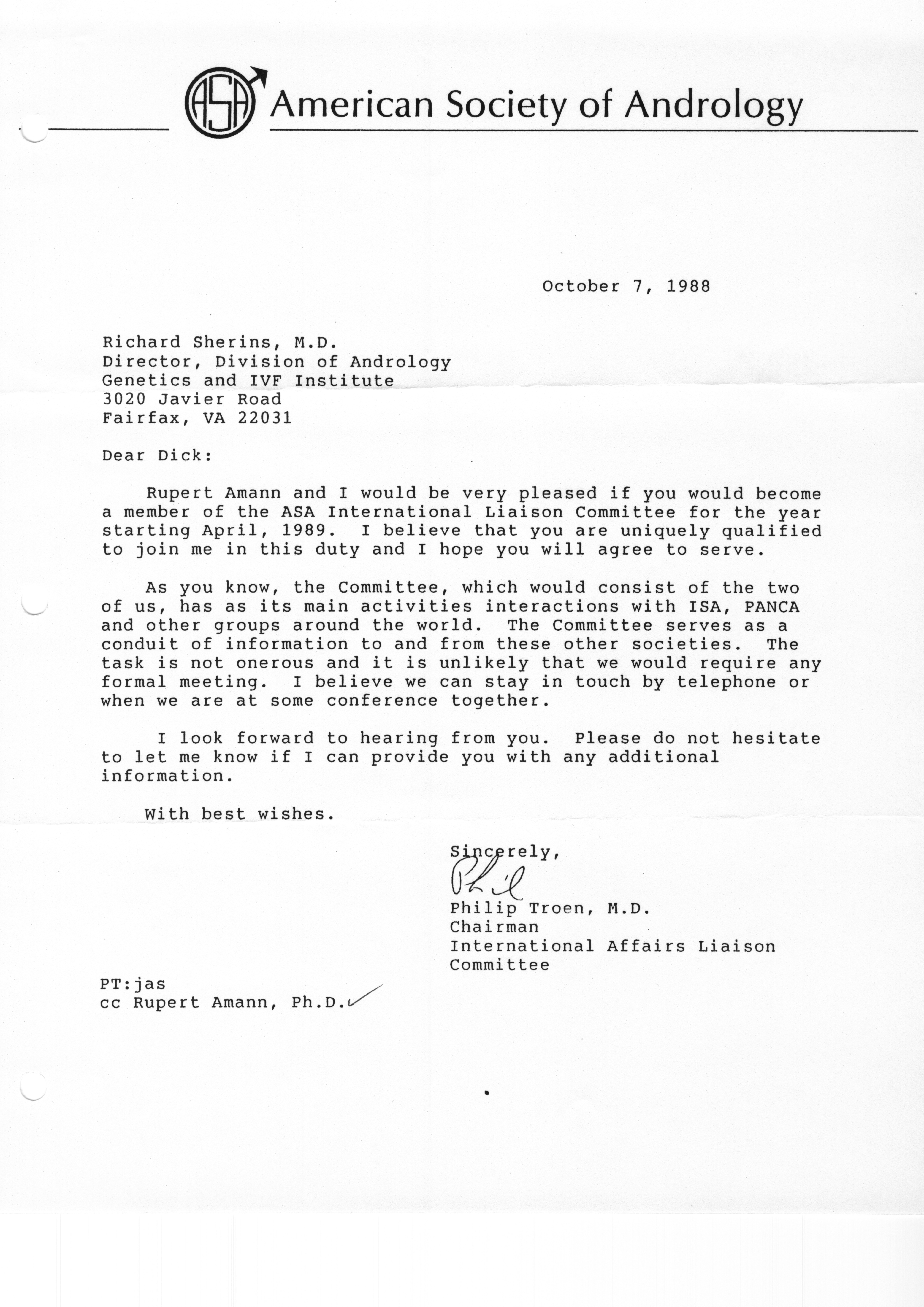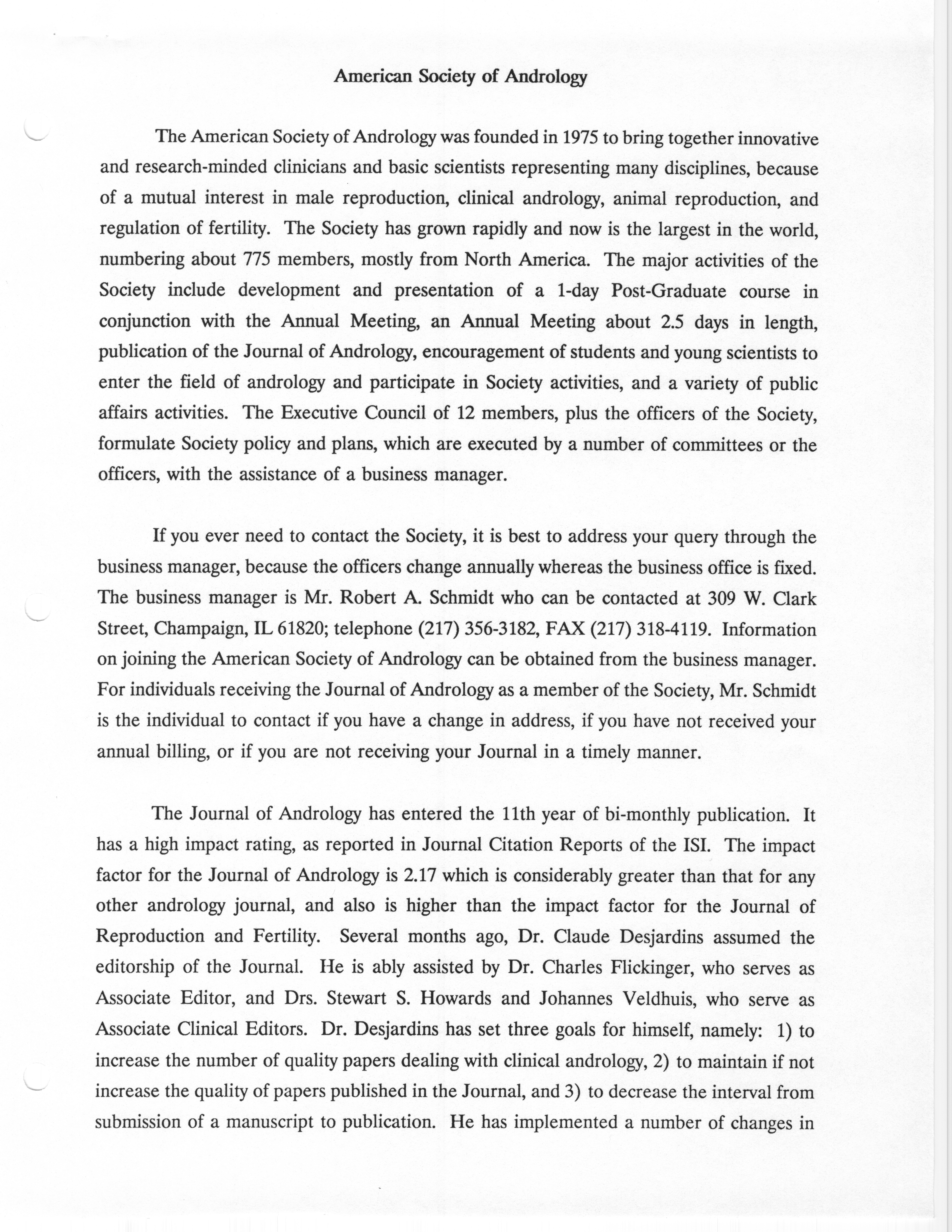 - "International Liaison Committee of the American Society of Andrology, 1985-90", American Society of Andrology Collection, Iowa State University Library Digital Collections