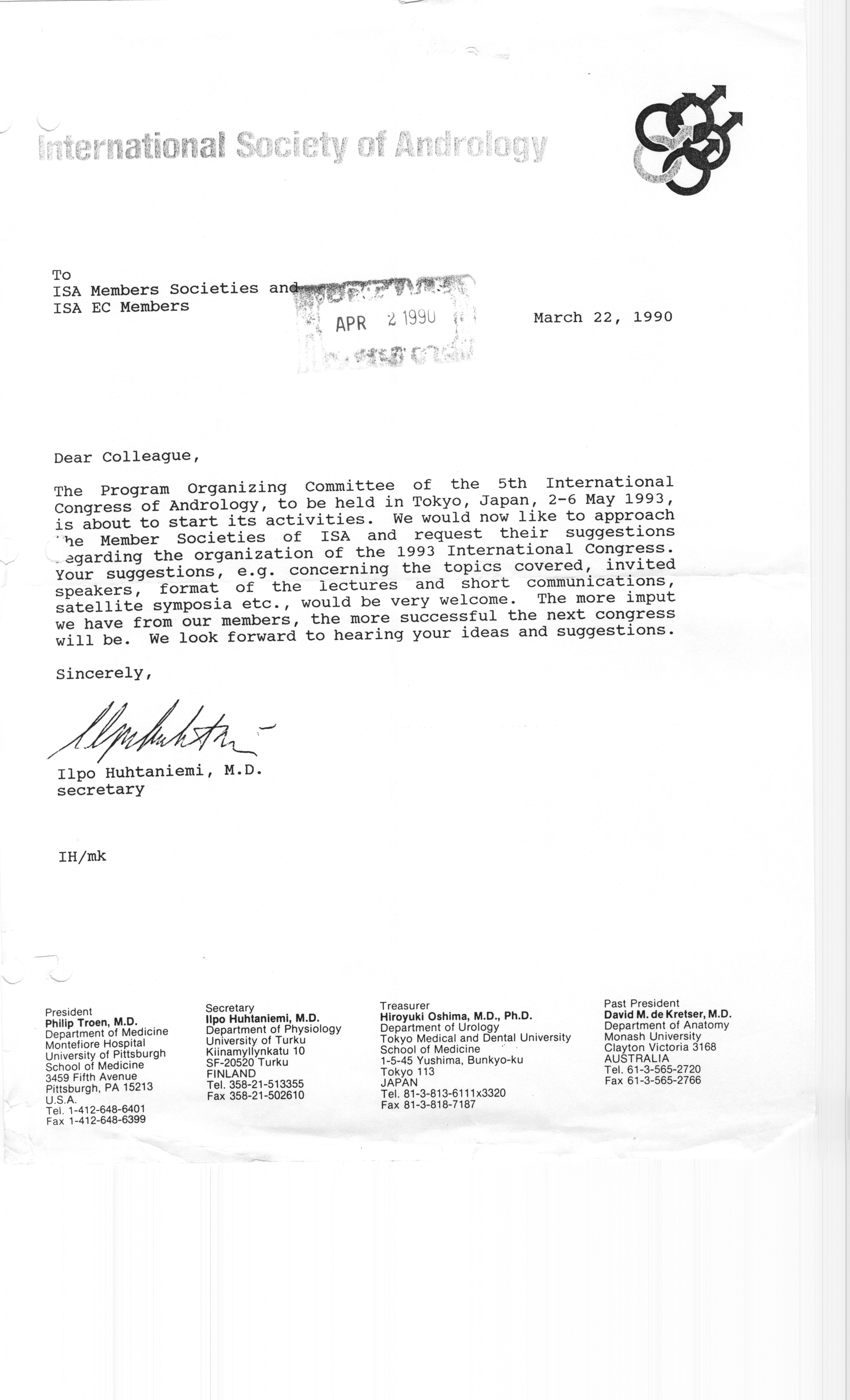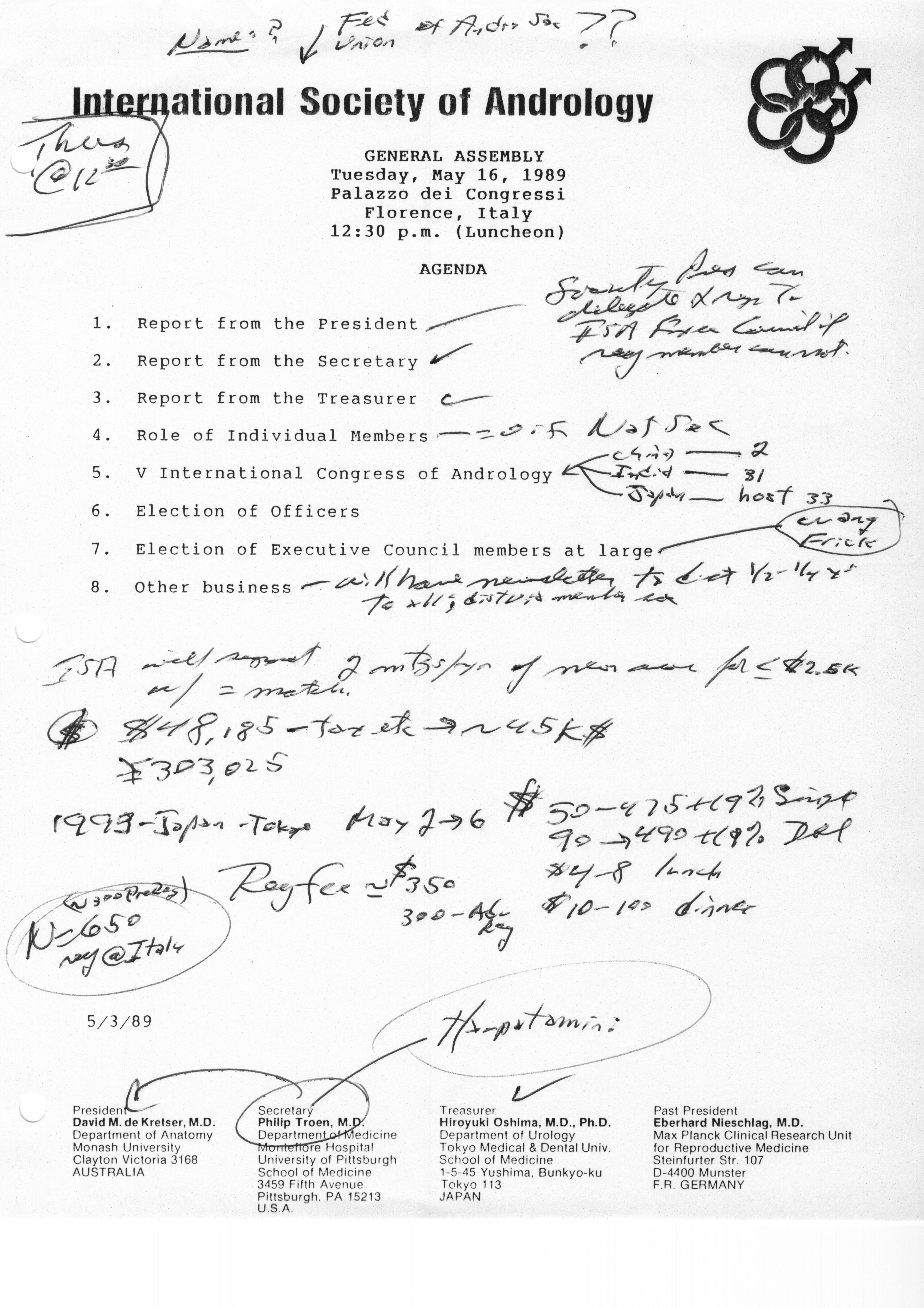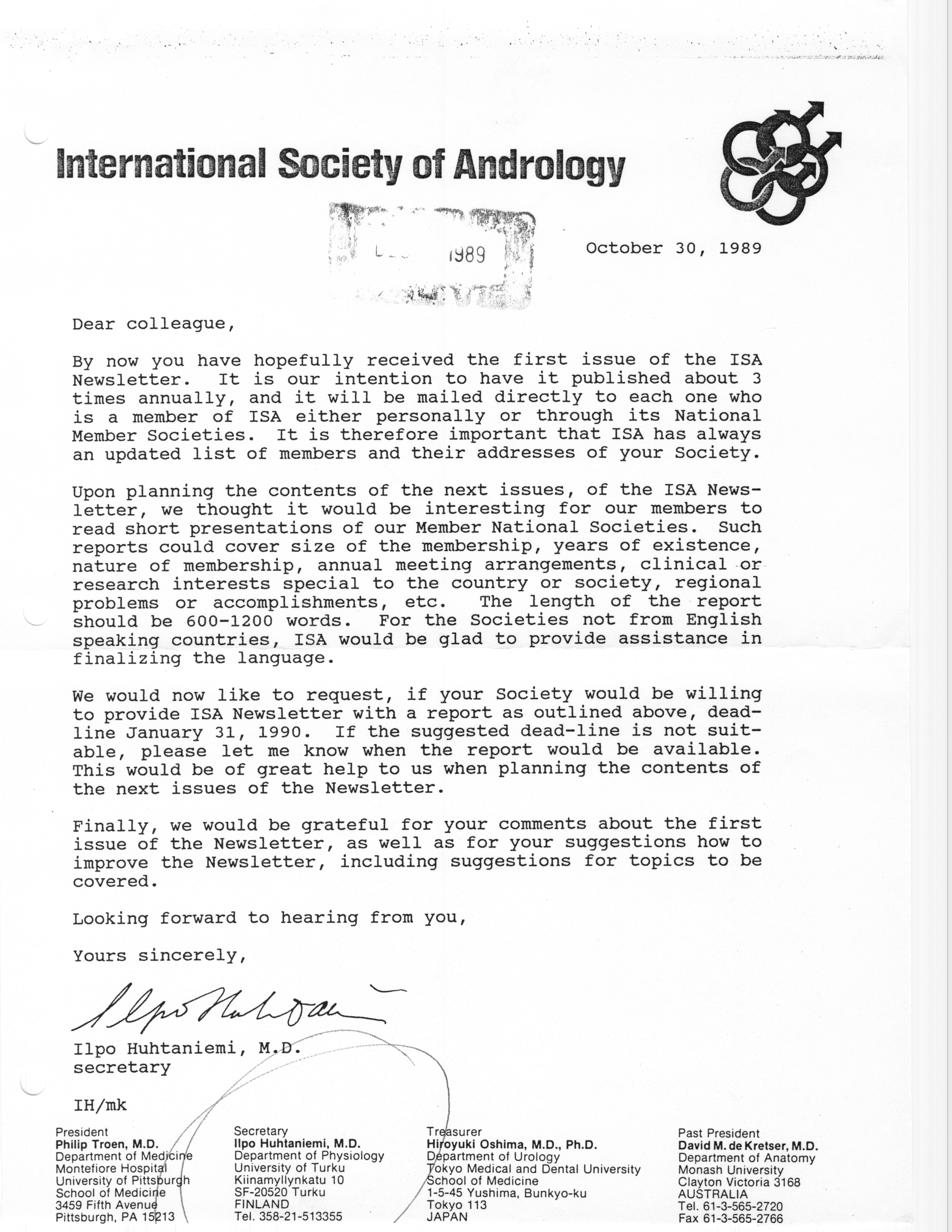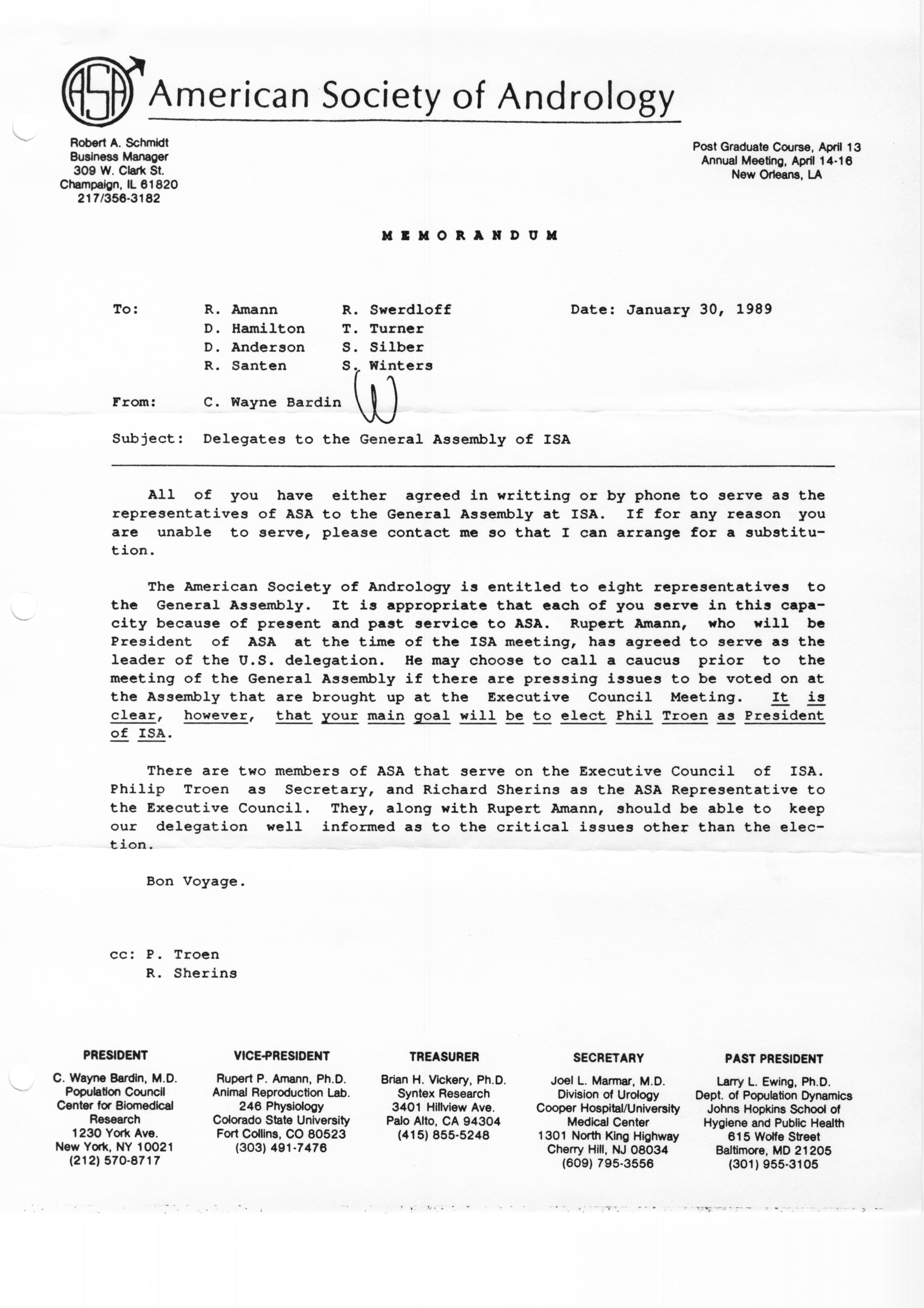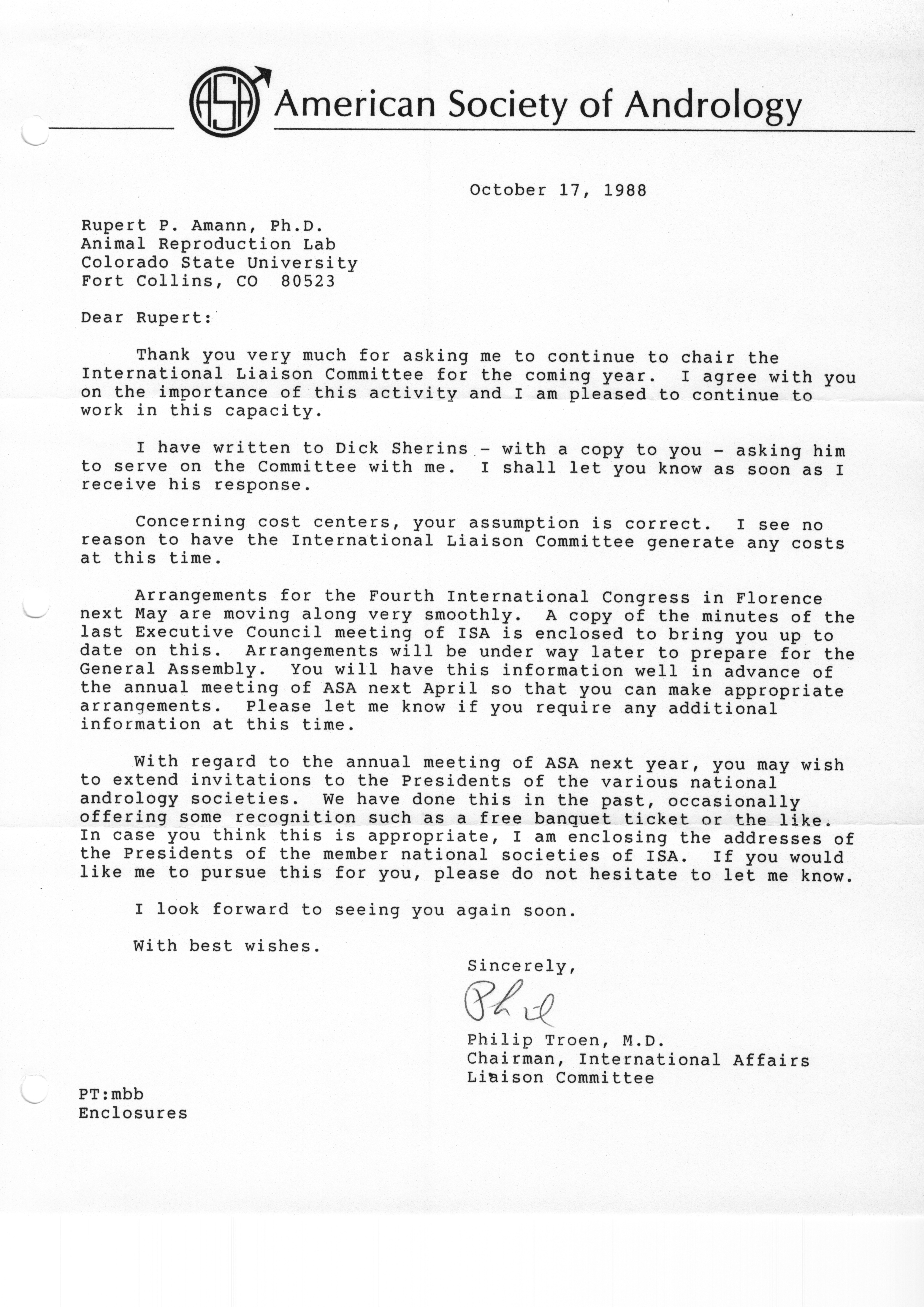 - "International Liaison Committee of the American Society of Andrology, 1985-90", American Society of Andrology Collection, Iowa State University Library Digital Collections