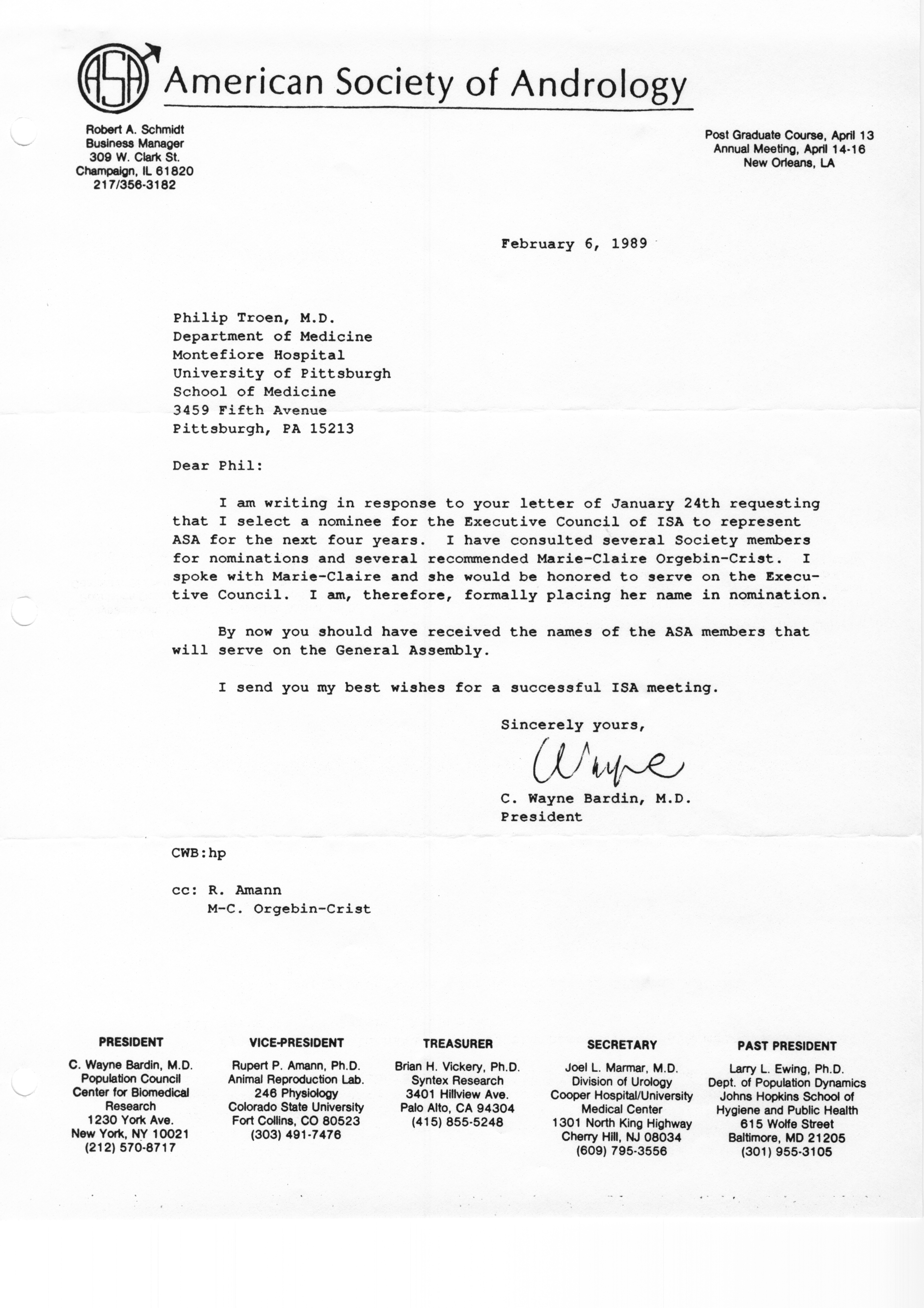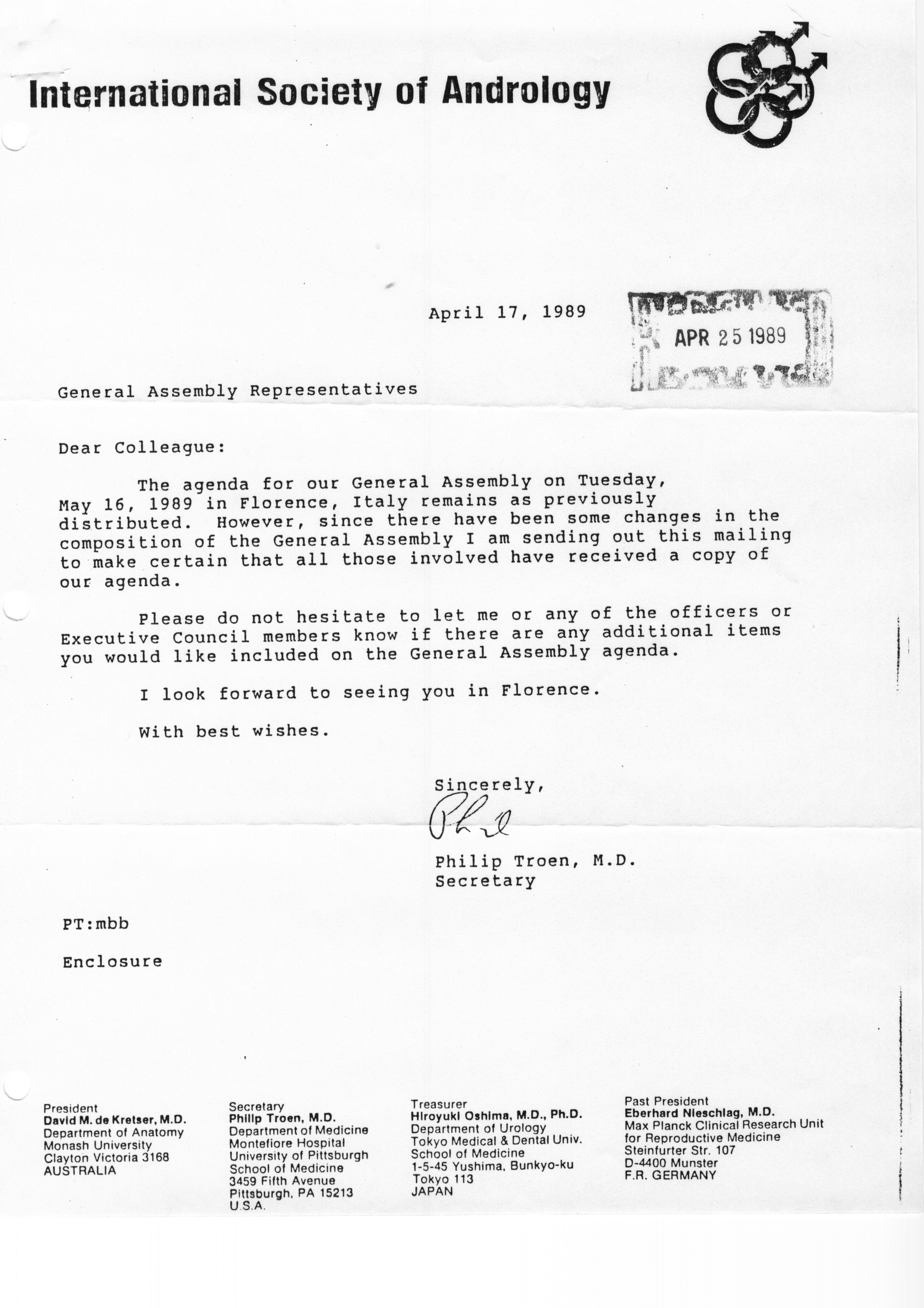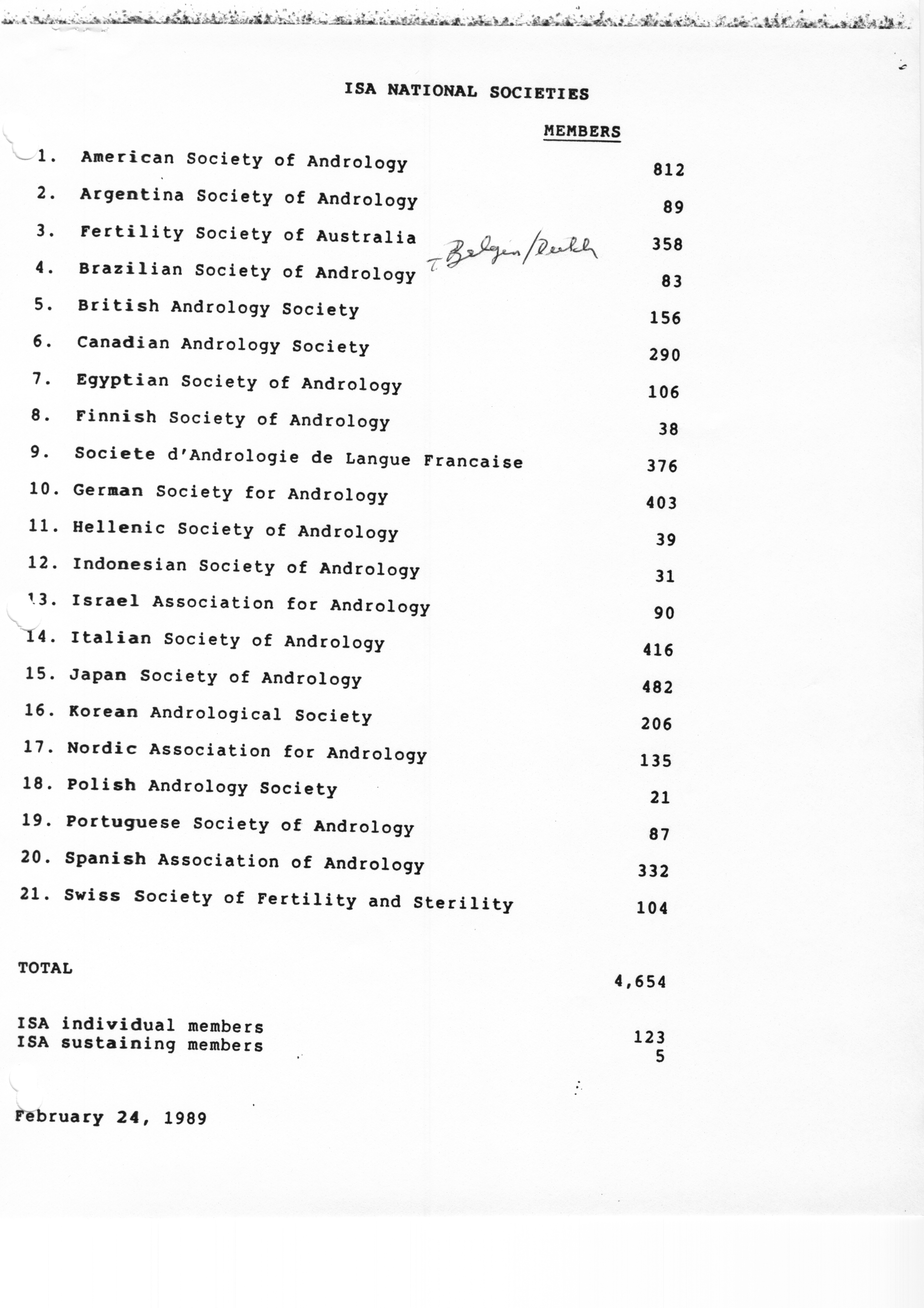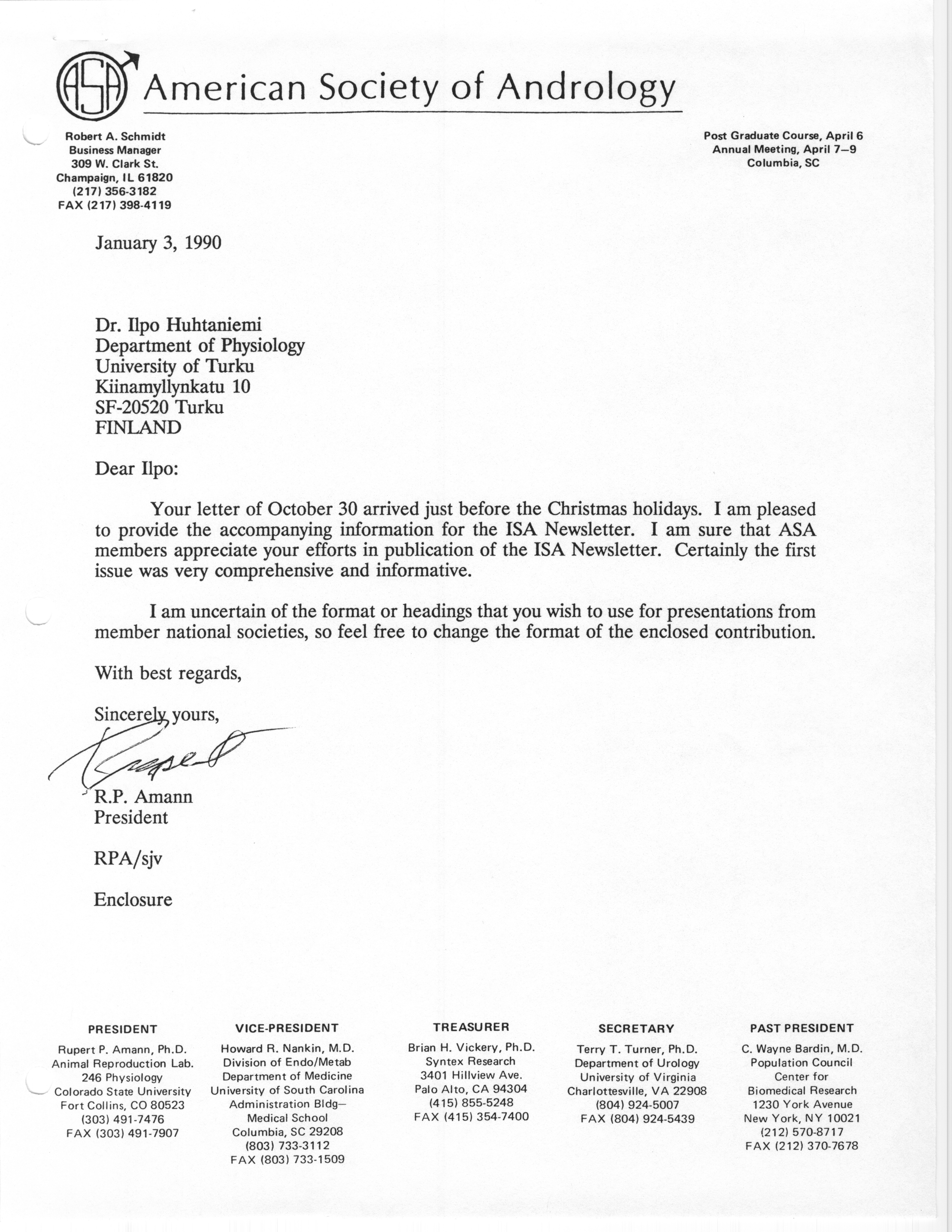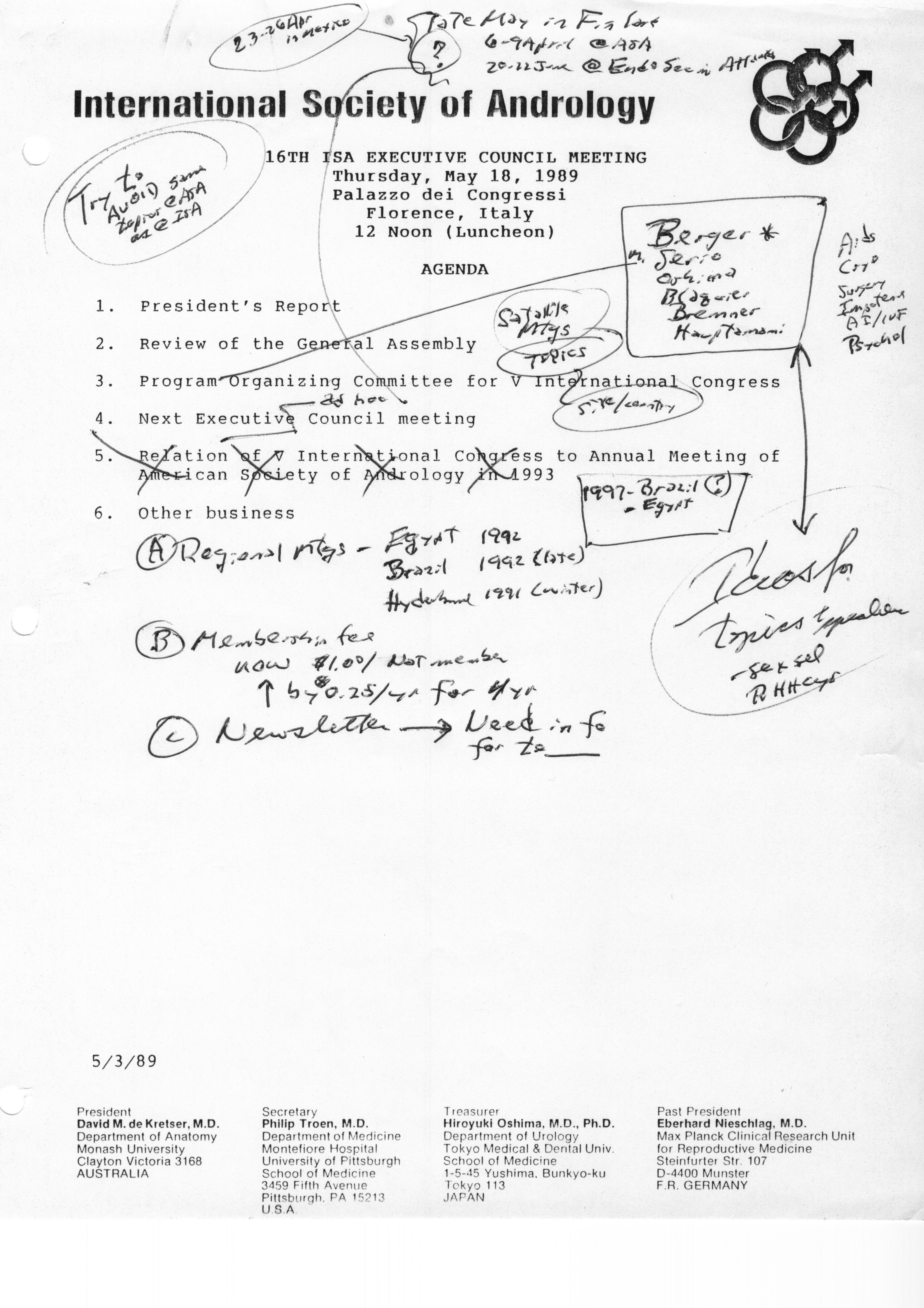 - "International Liaison Committee of the American Society of Andrology, 1985-90", American Society of Andrology Collection, Iowa State University Library Digital Collections