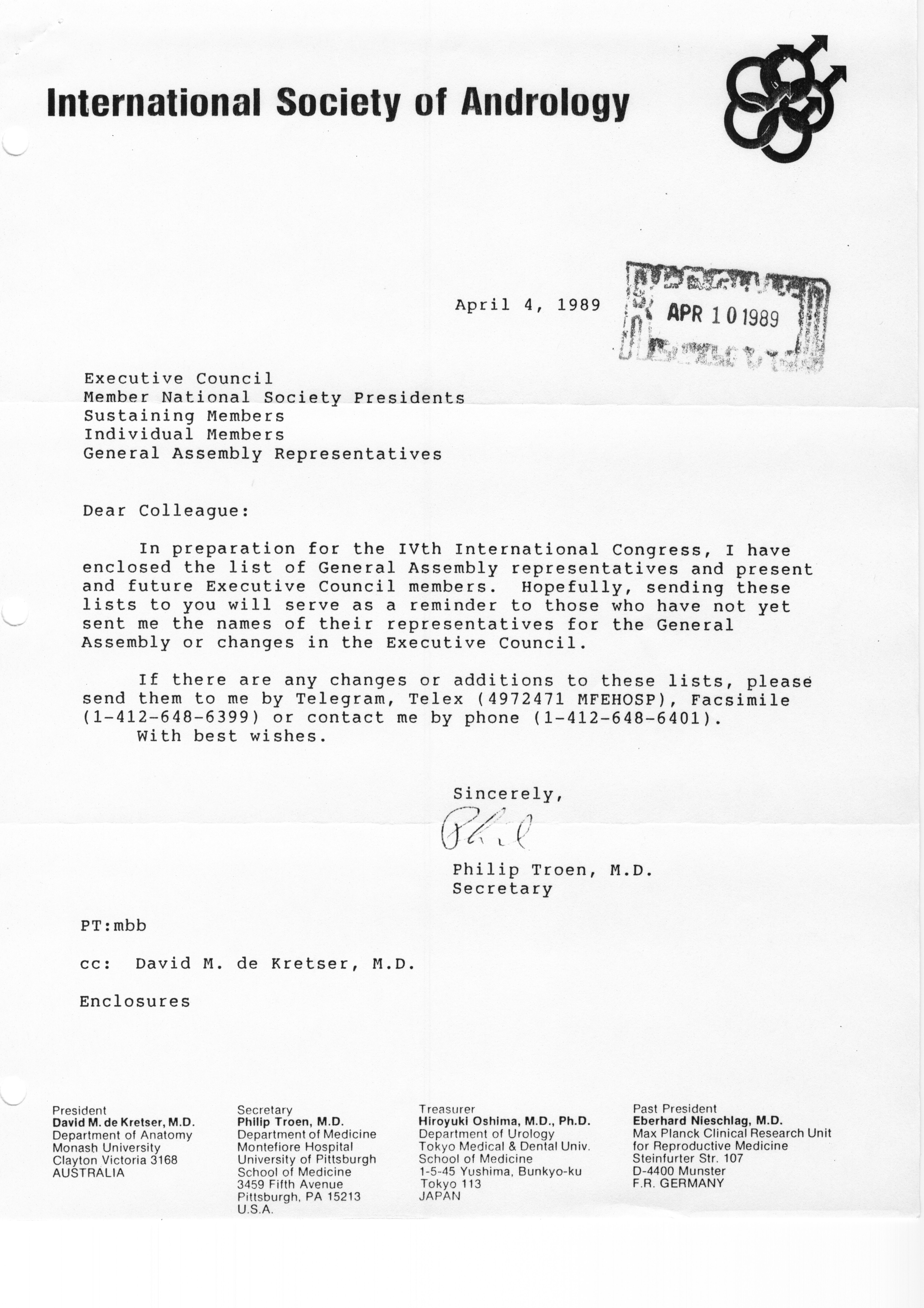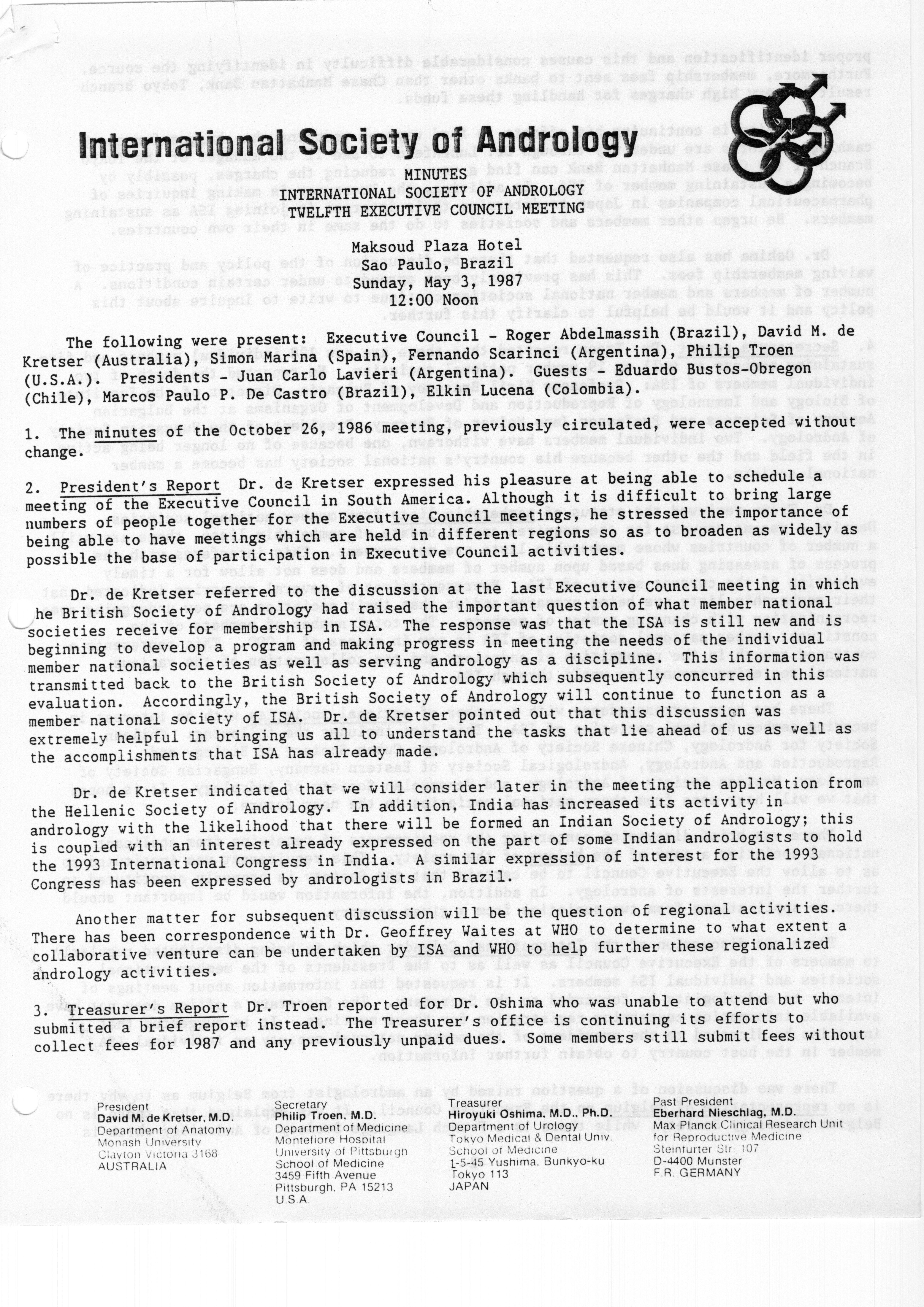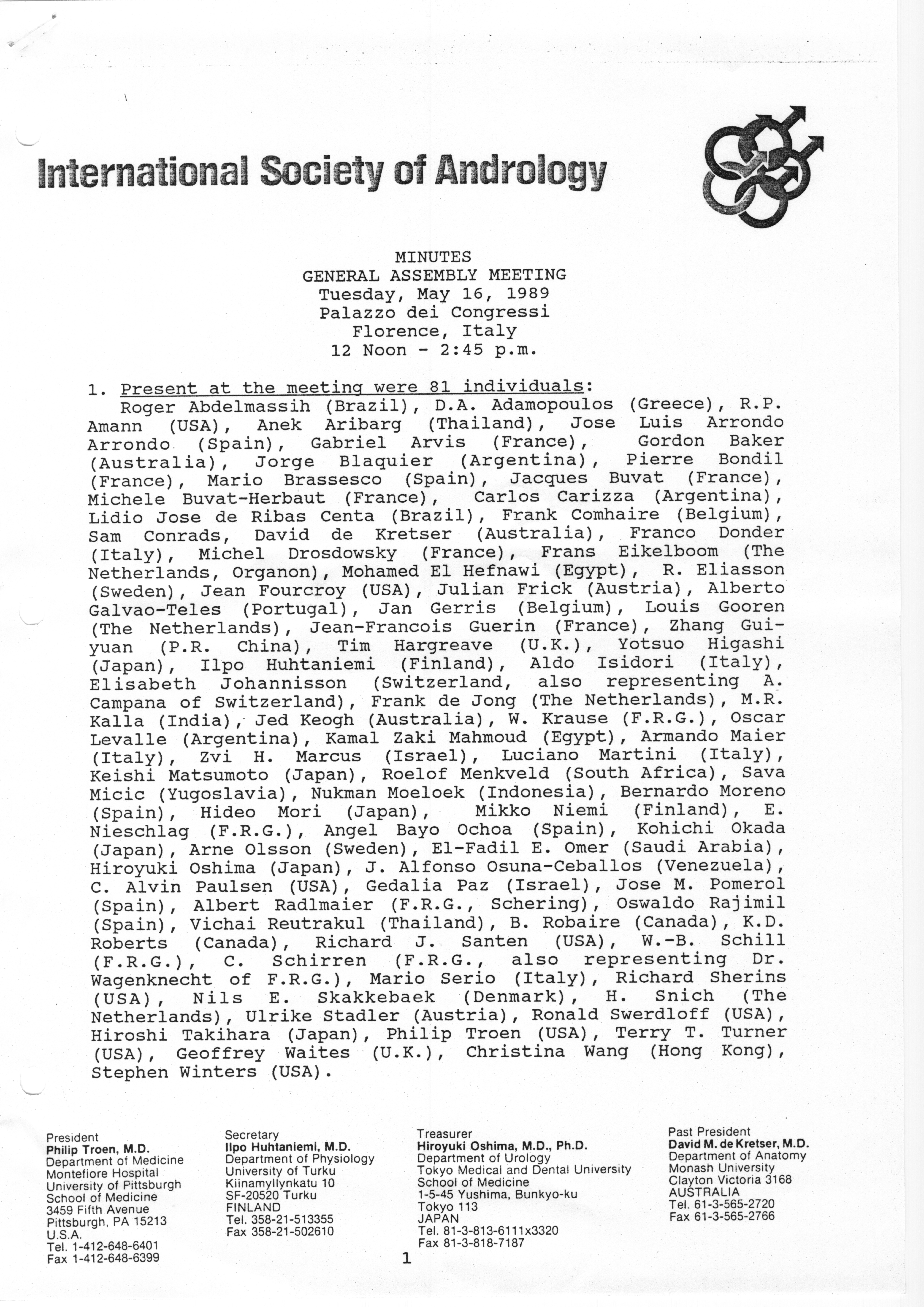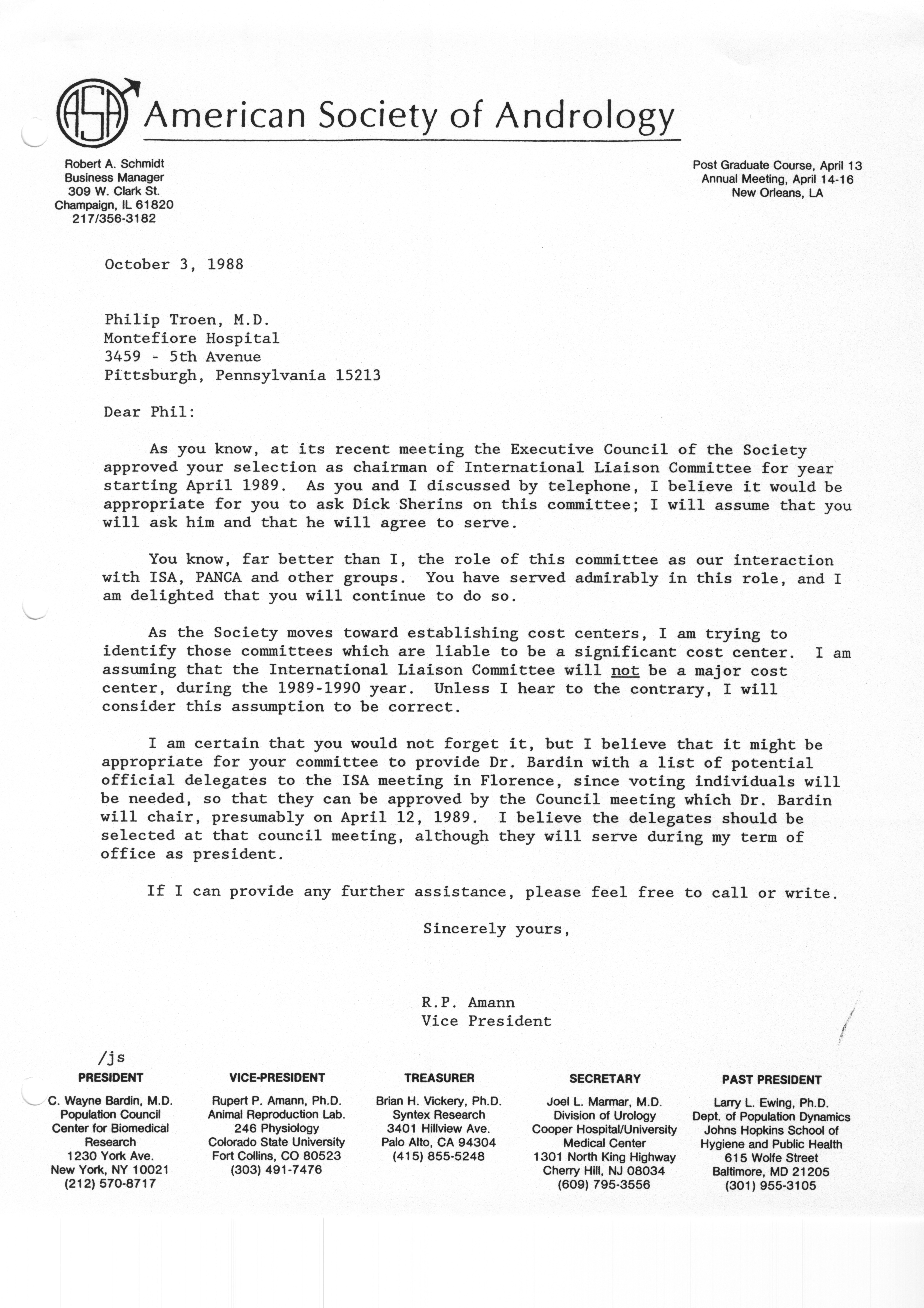 - "International Liaison Committee of the American Society of Andrology, 1985-90", American Society of Andrology Collection, Iowa State University Library Digital Collections