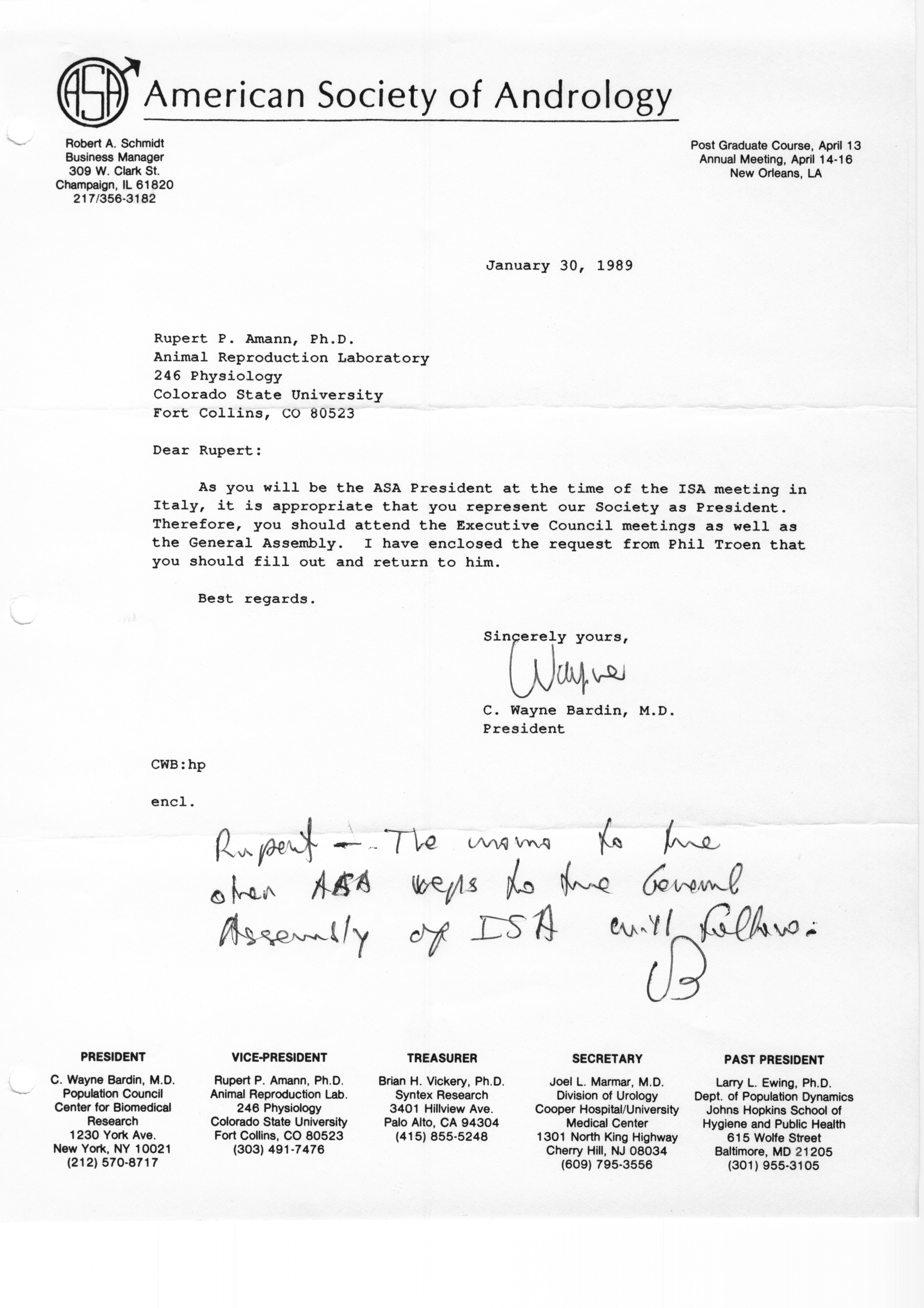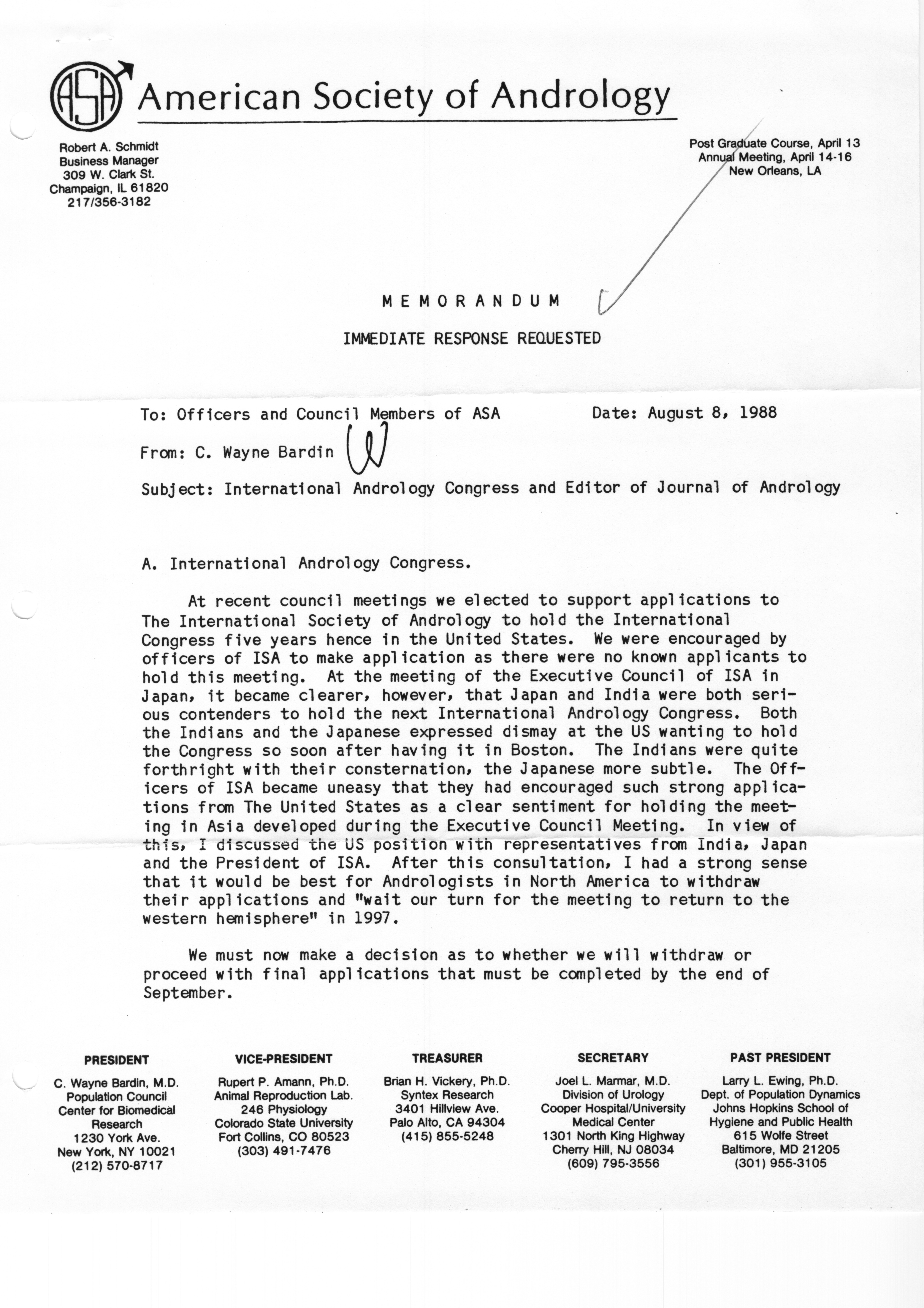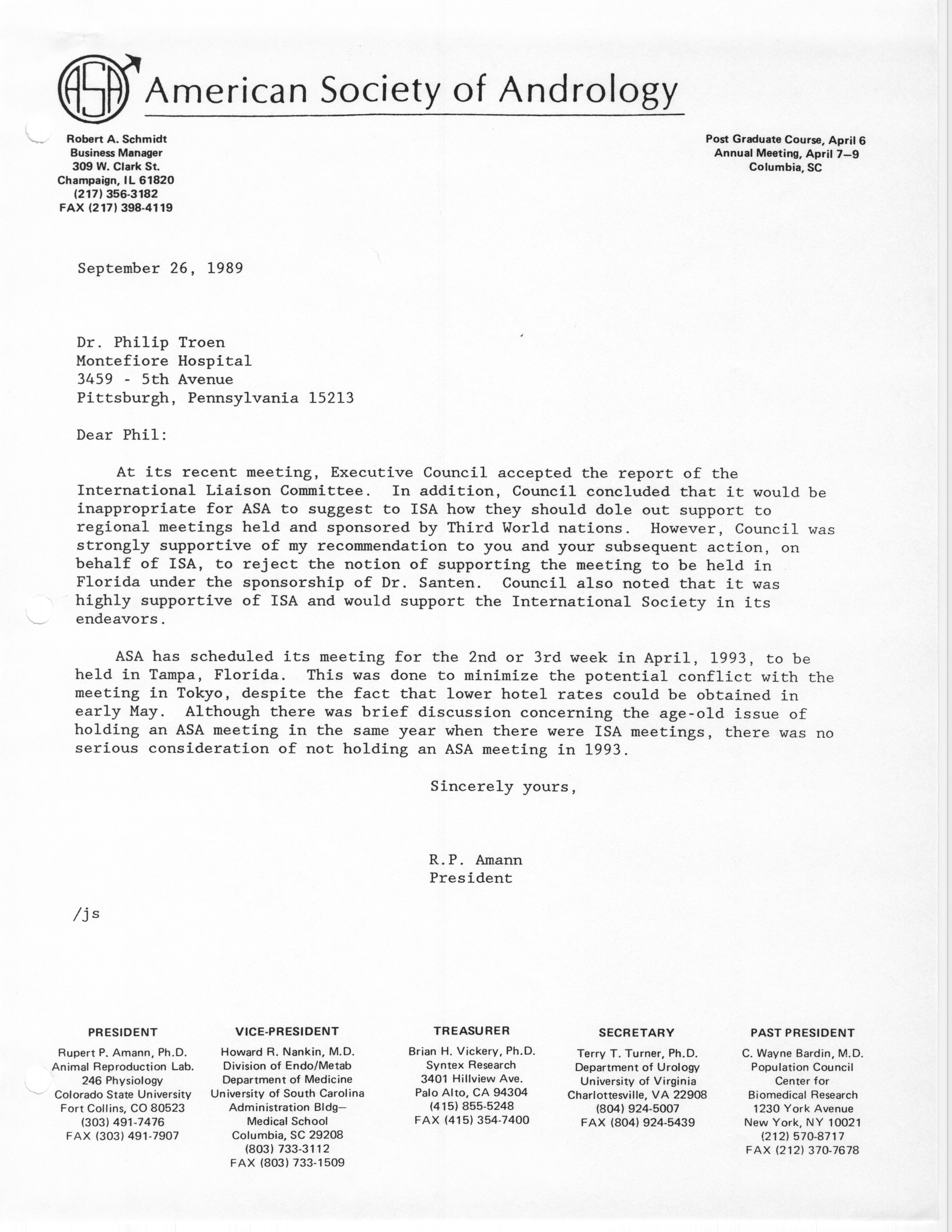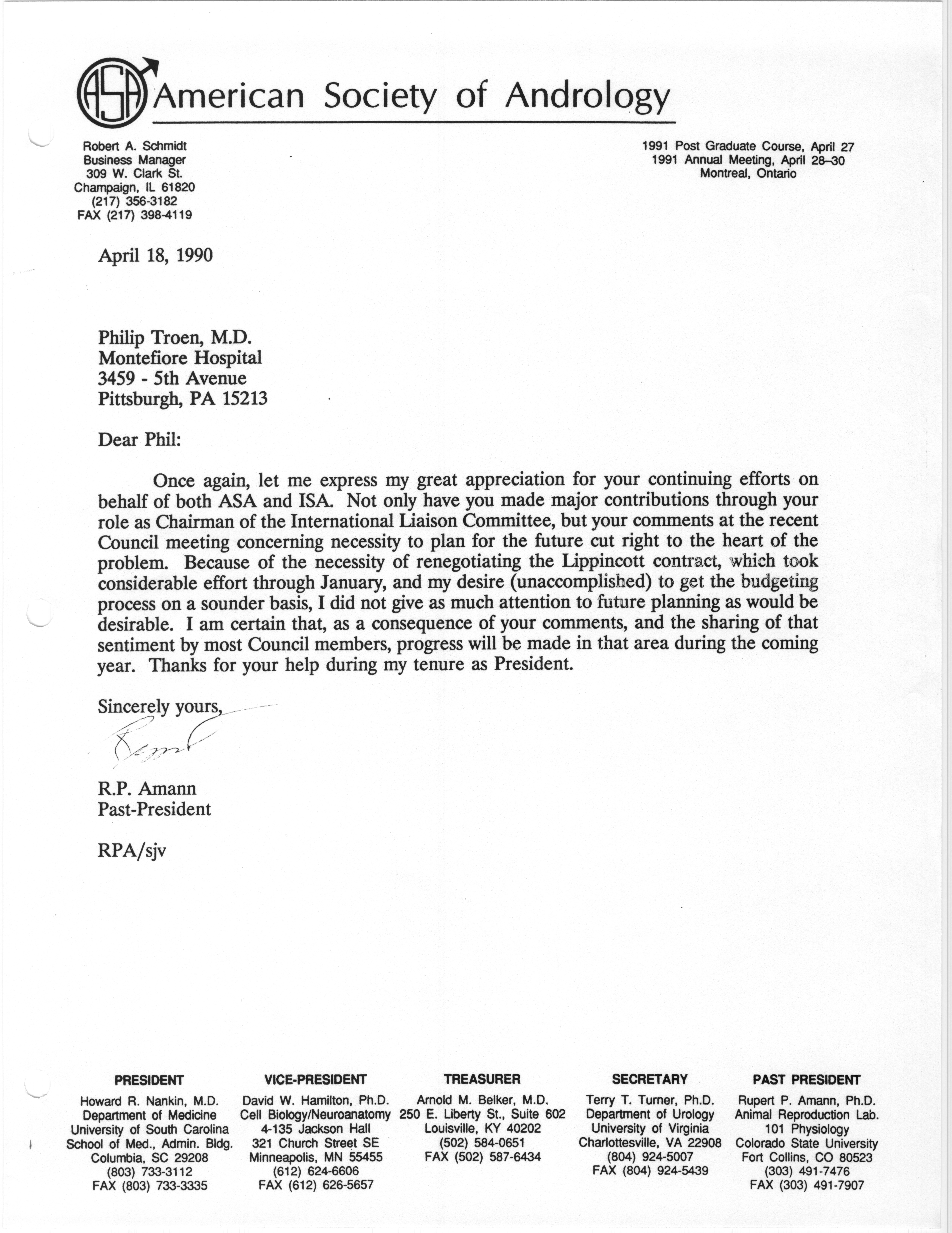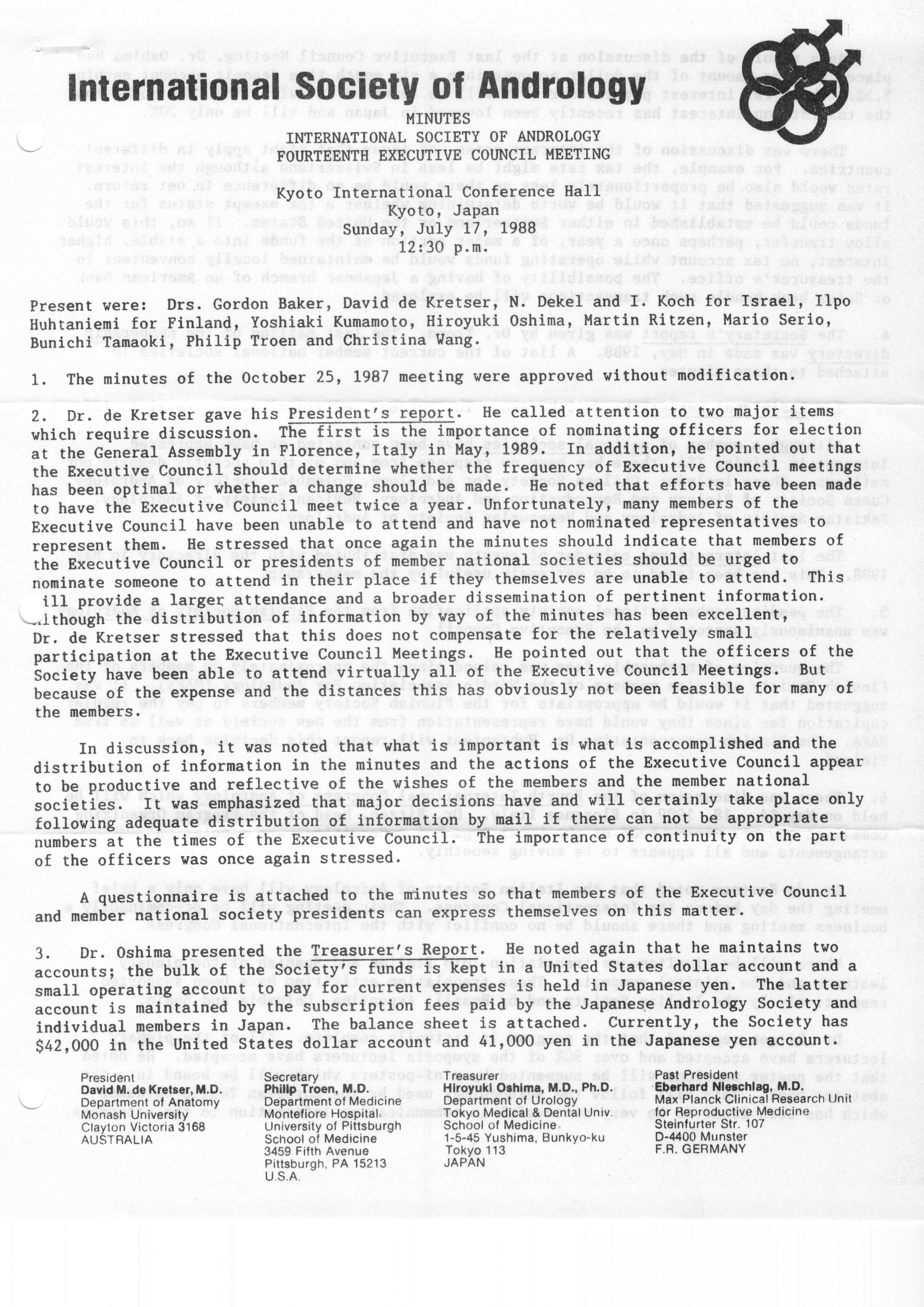 - "International Liaison Committee of the American Society of Andrology, 1985-90", American Society of Andrology Collection, Iowa State University Library Digital Collections