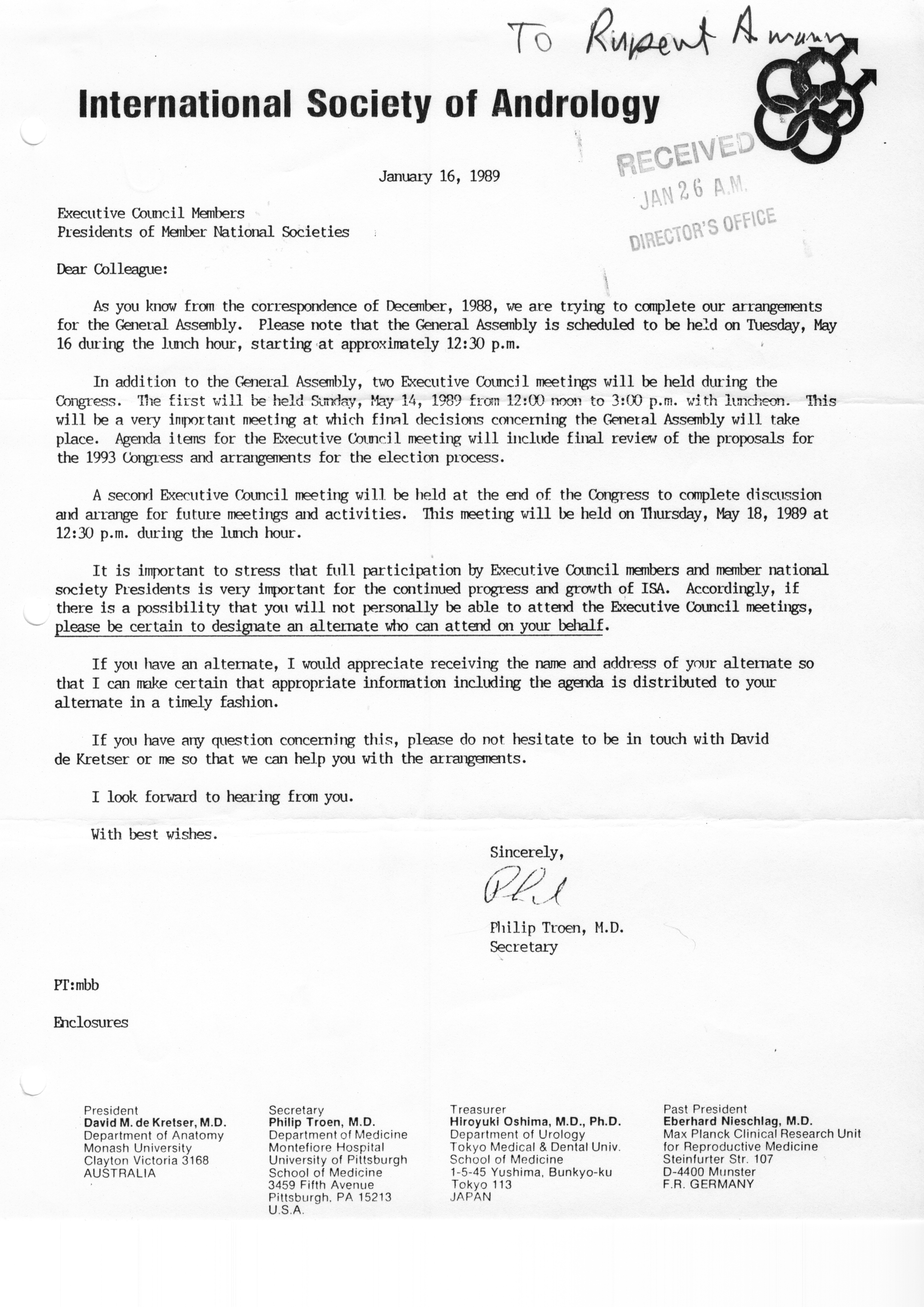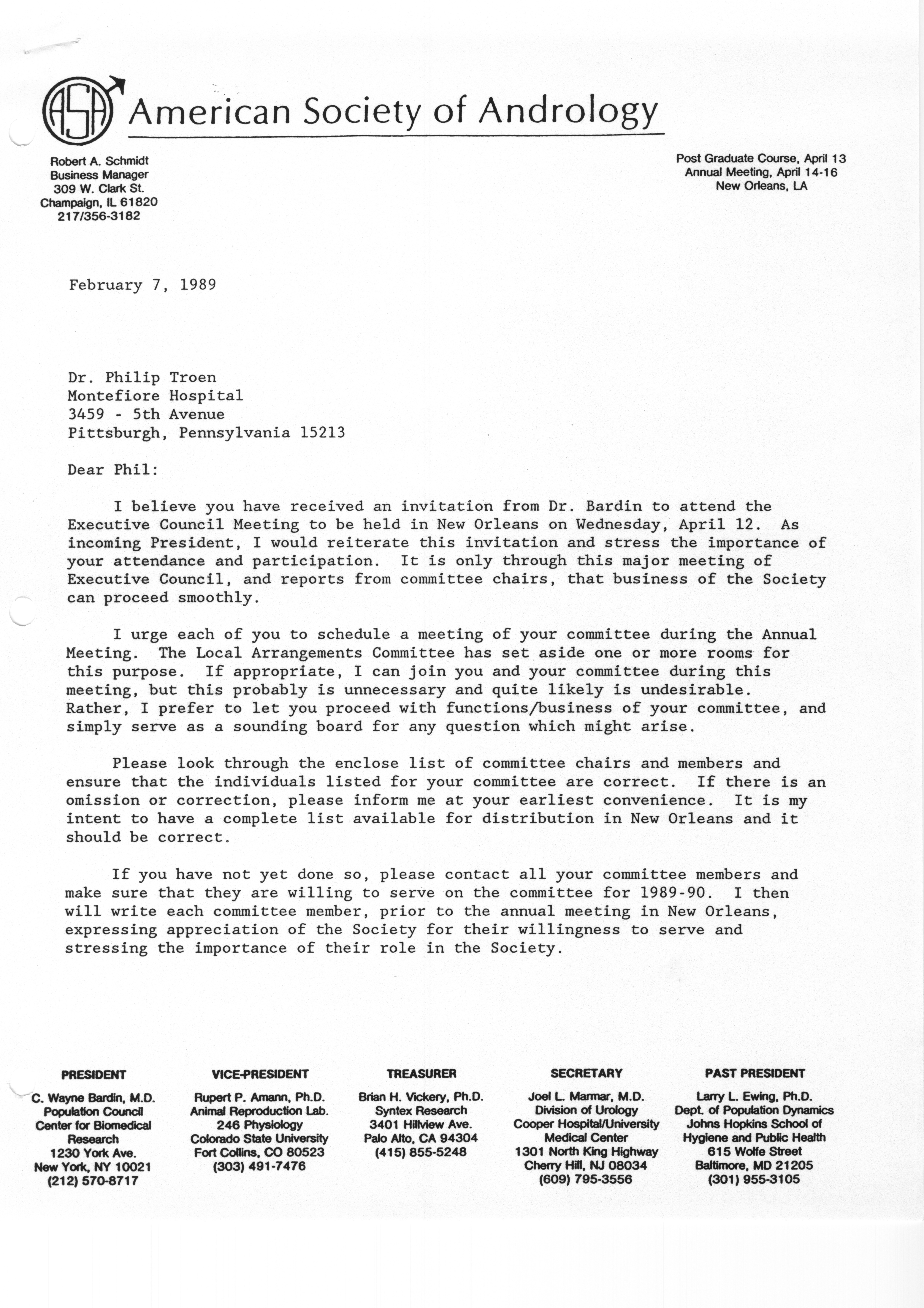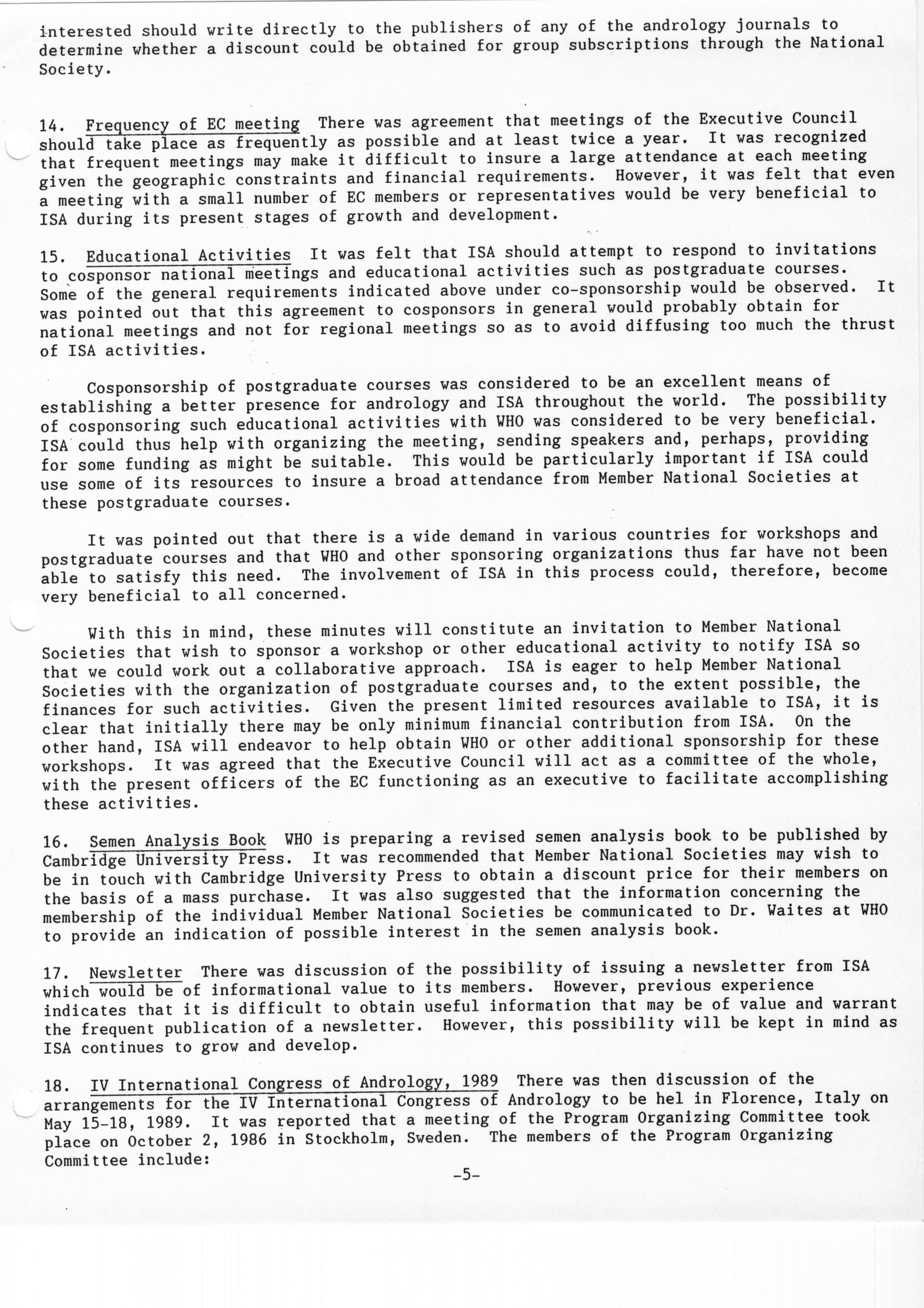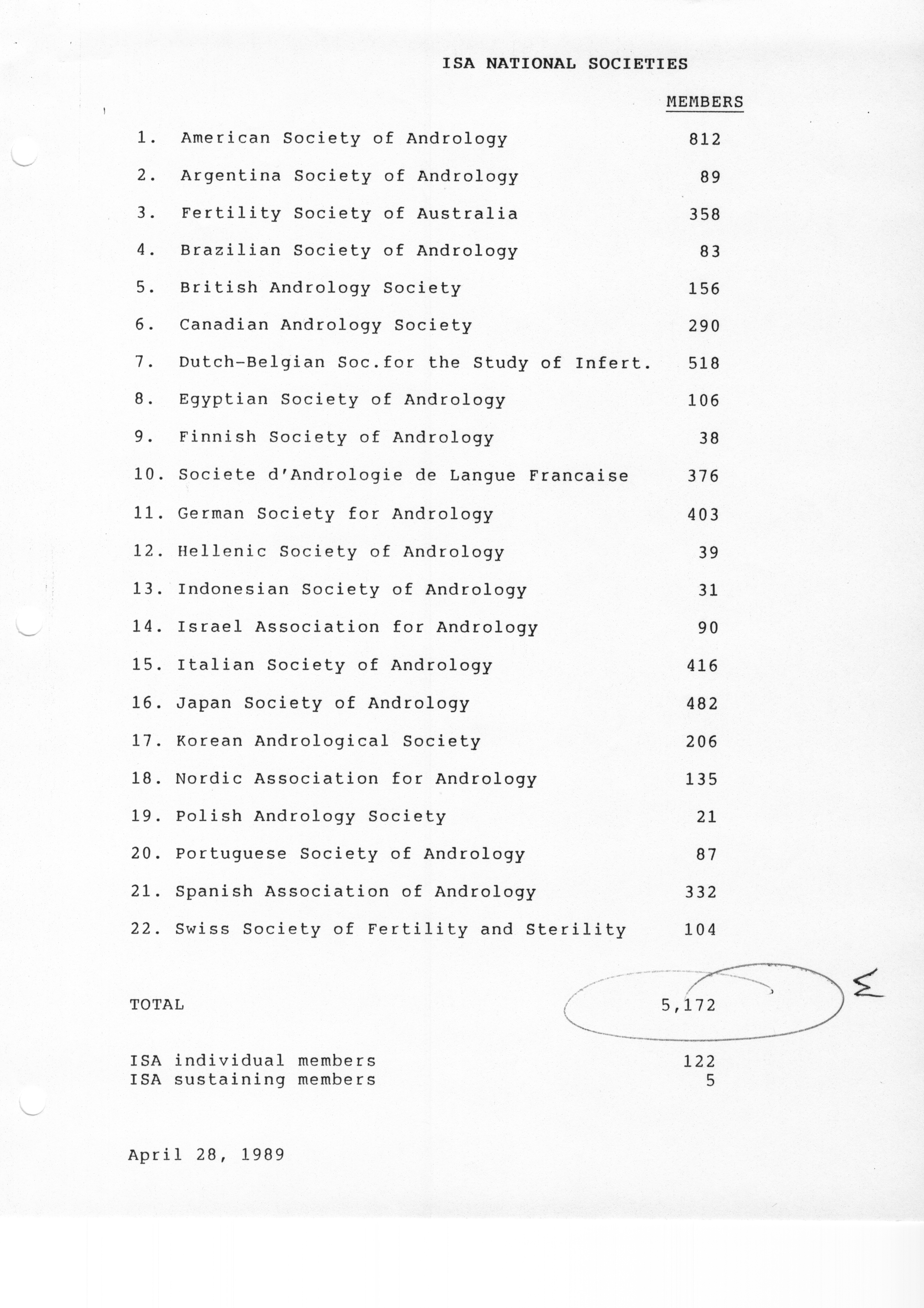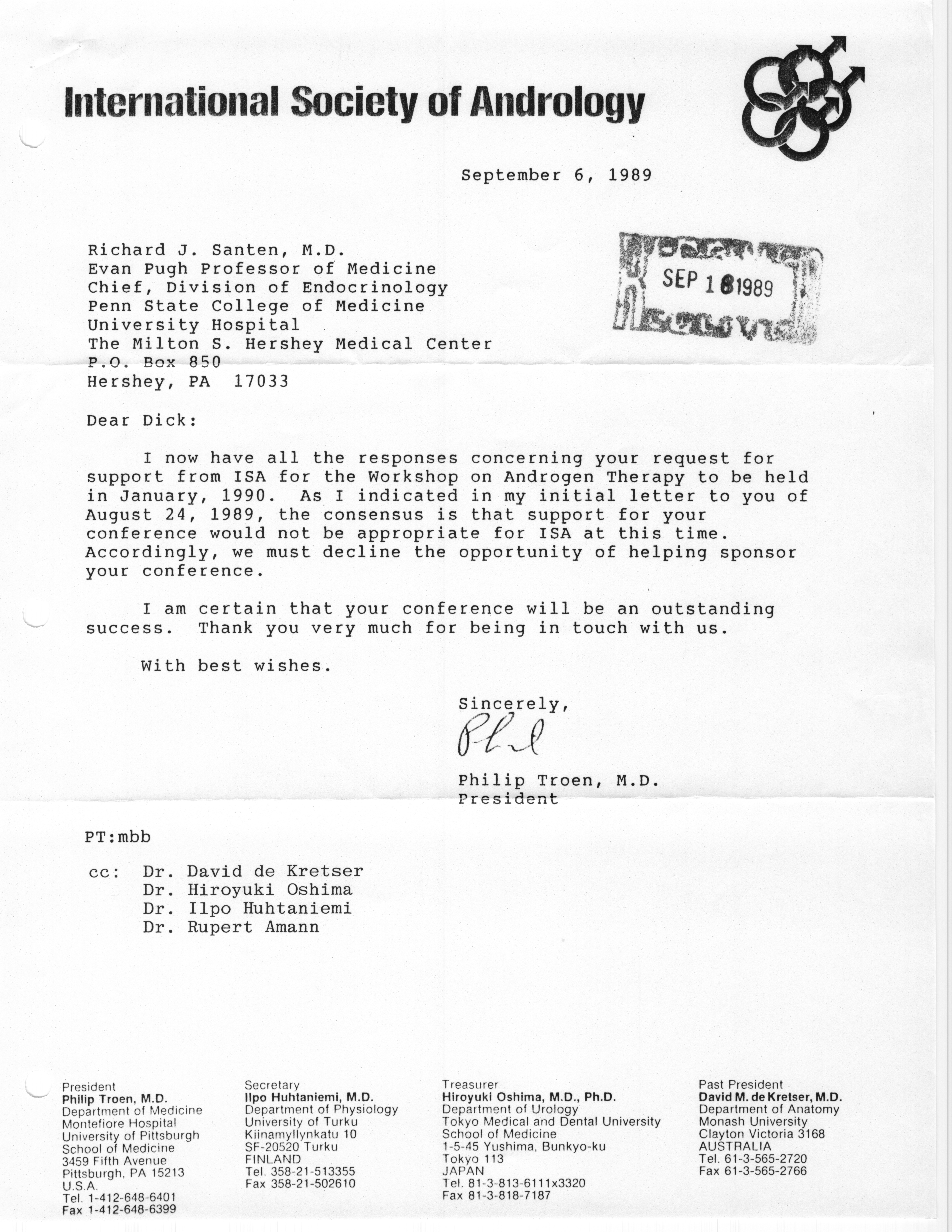 - "International Liaison Committee of the American Society of Andrology, 1985-90", American Society of Andrology Collection, Iowa State University Library Digital Collections