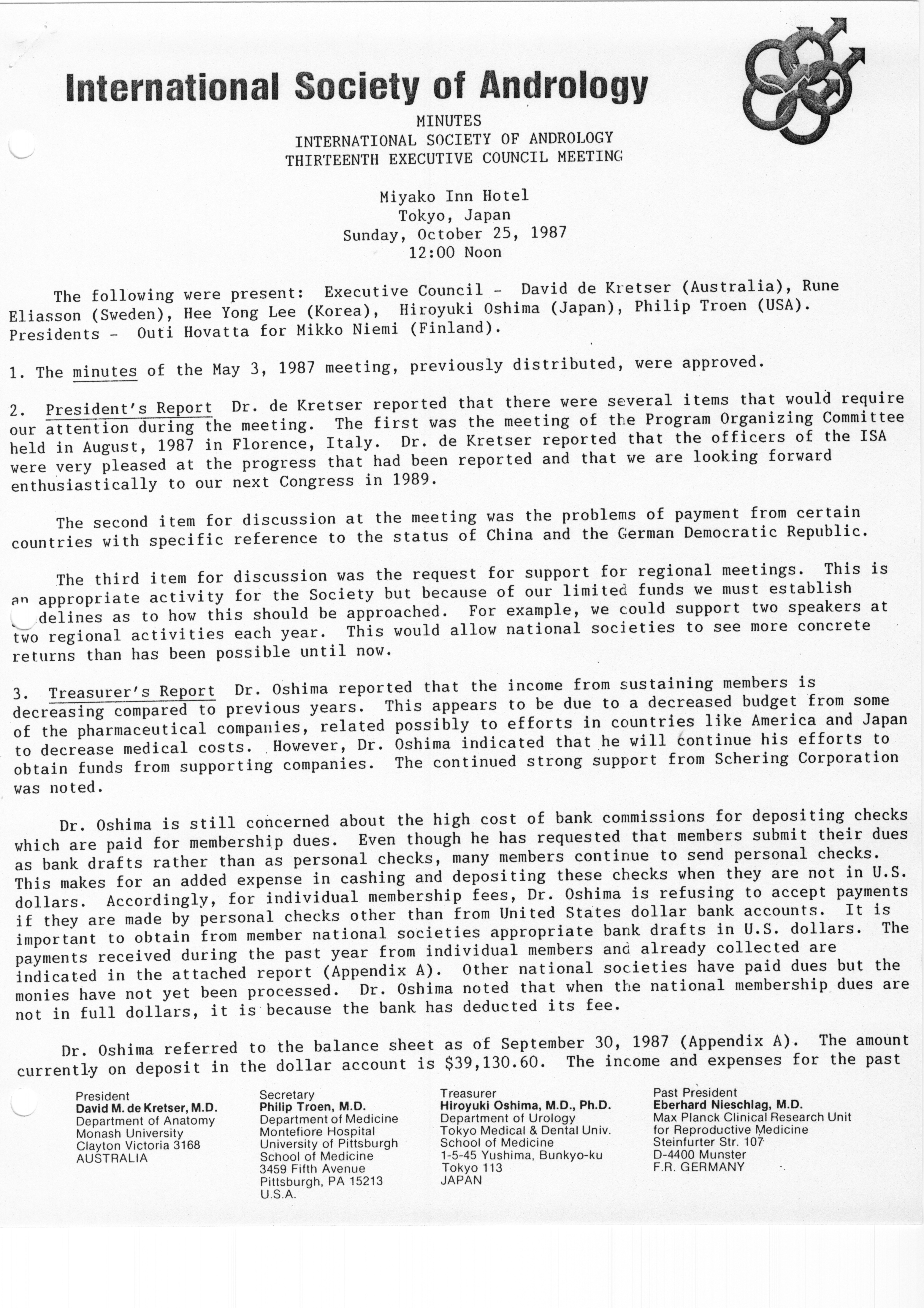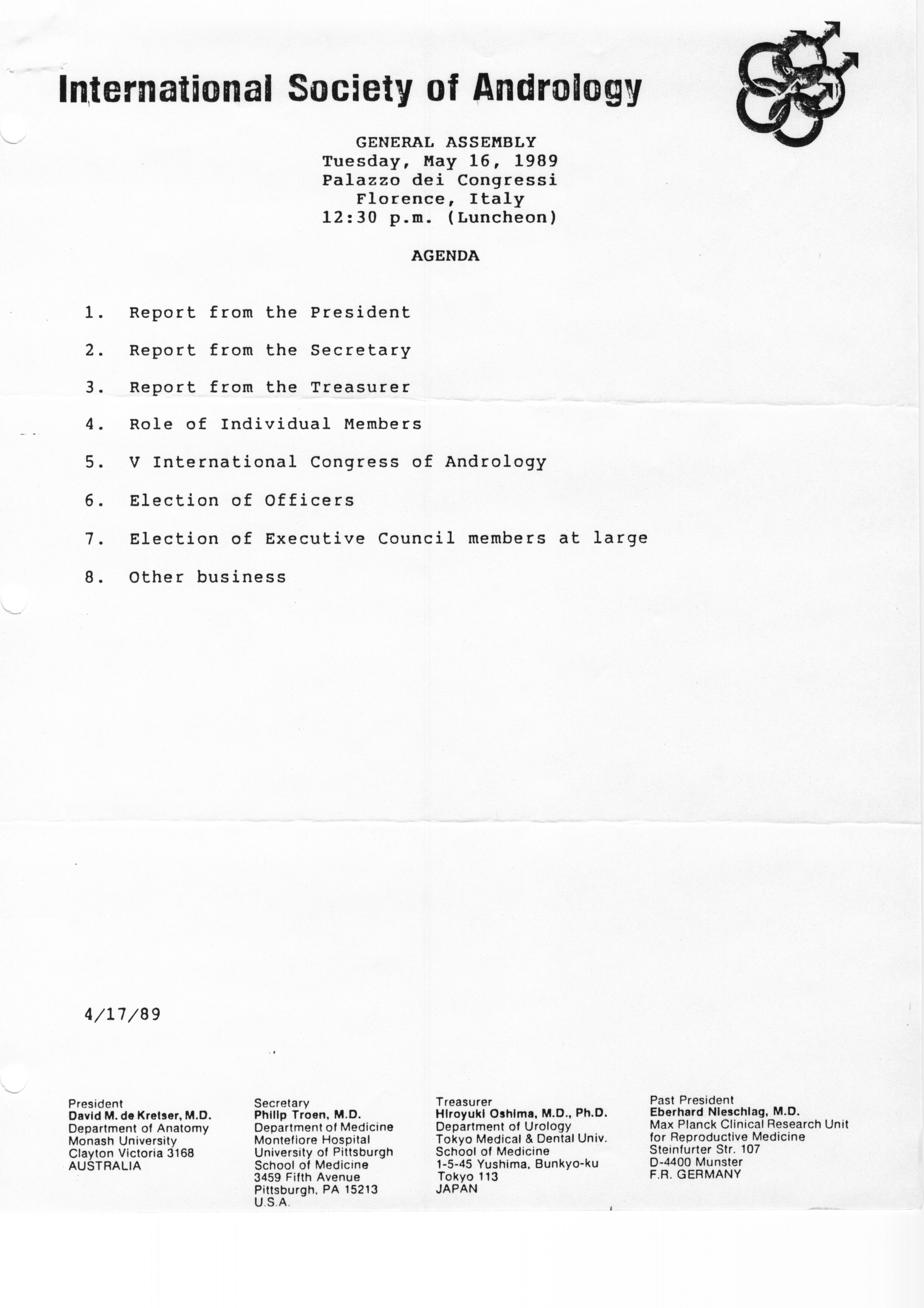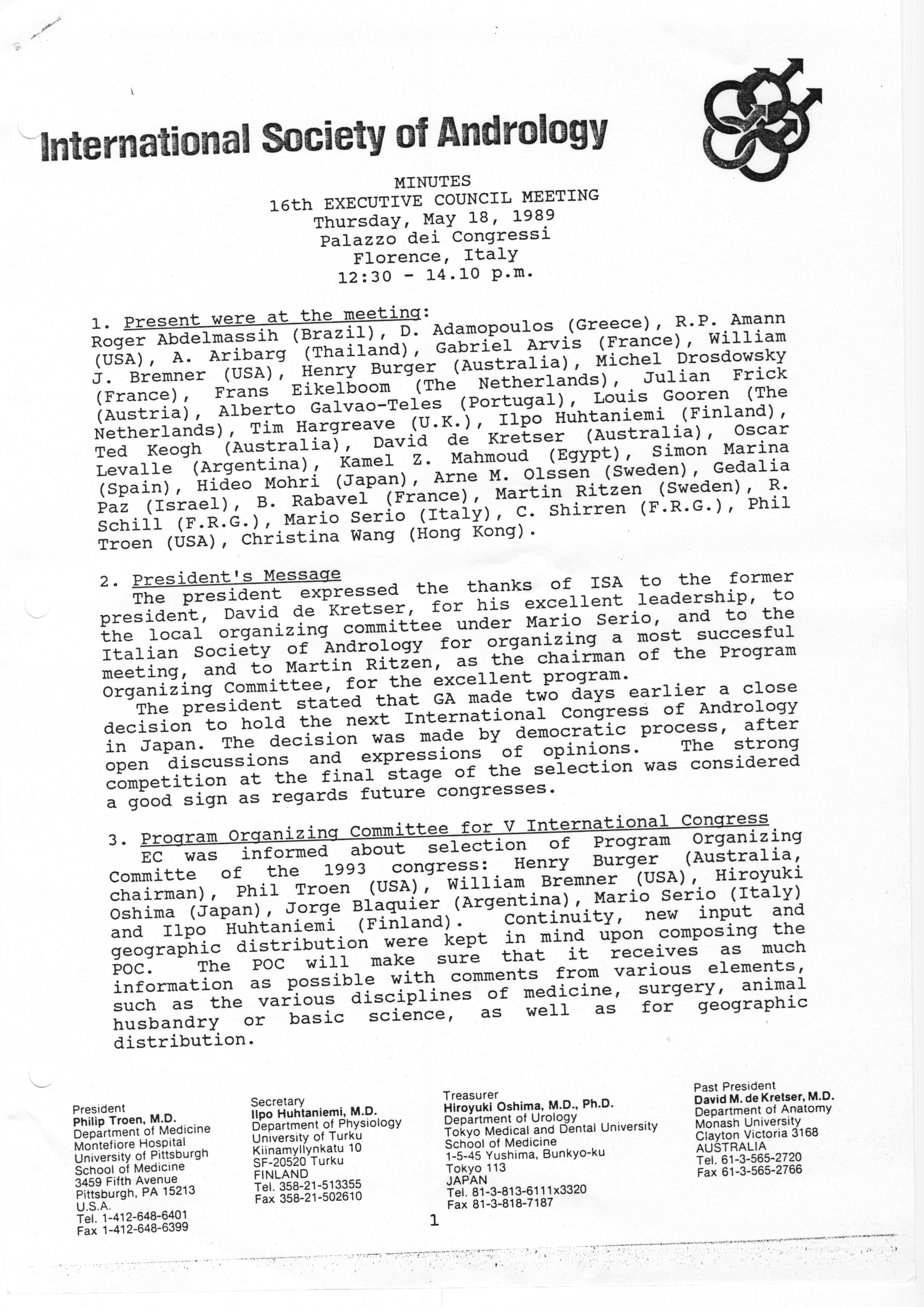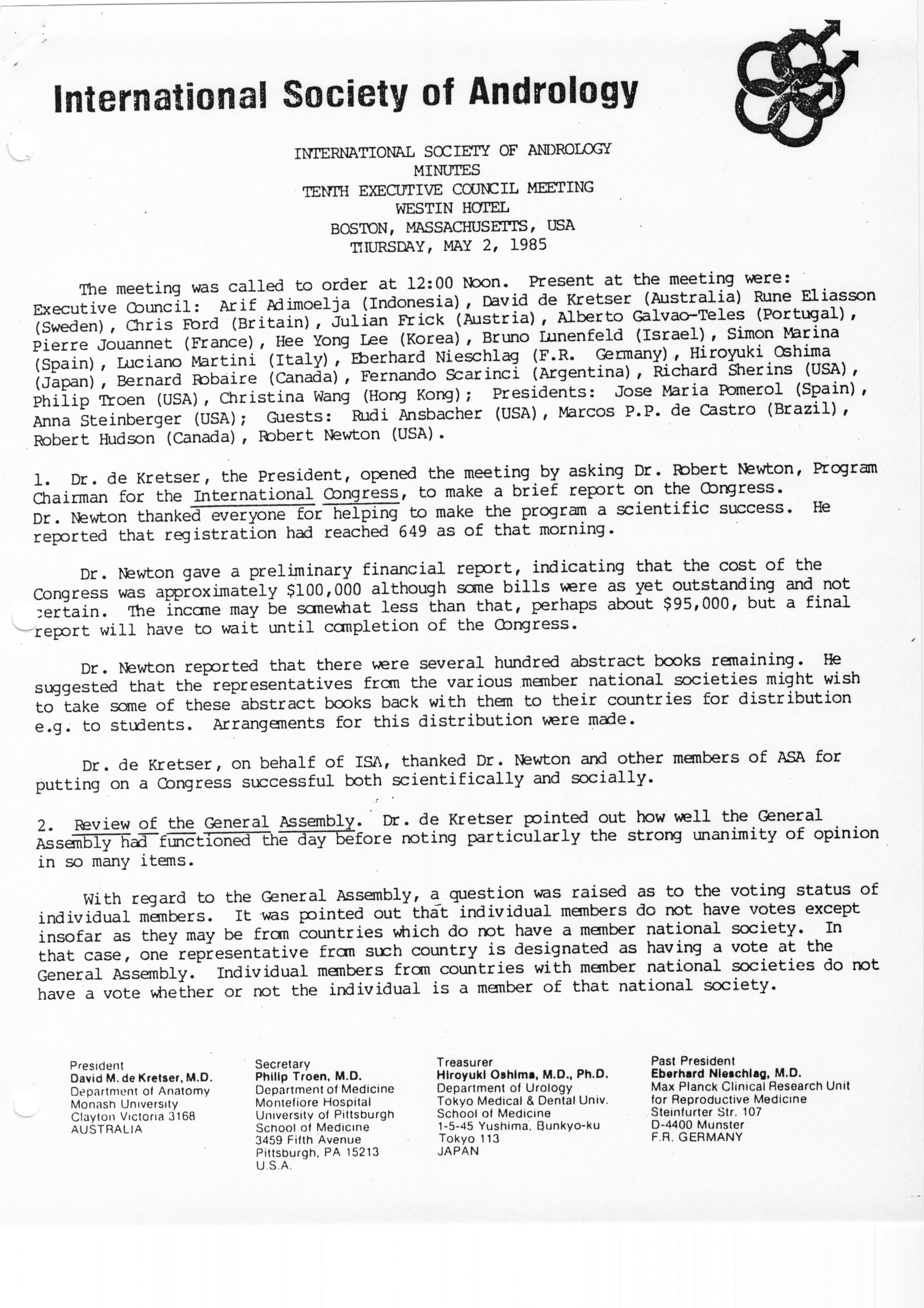 - "International Liaison Committee of the American Society of Andrology, 1985-90", American Society of Andrology Collection, Iowa State University Library Digital Collections