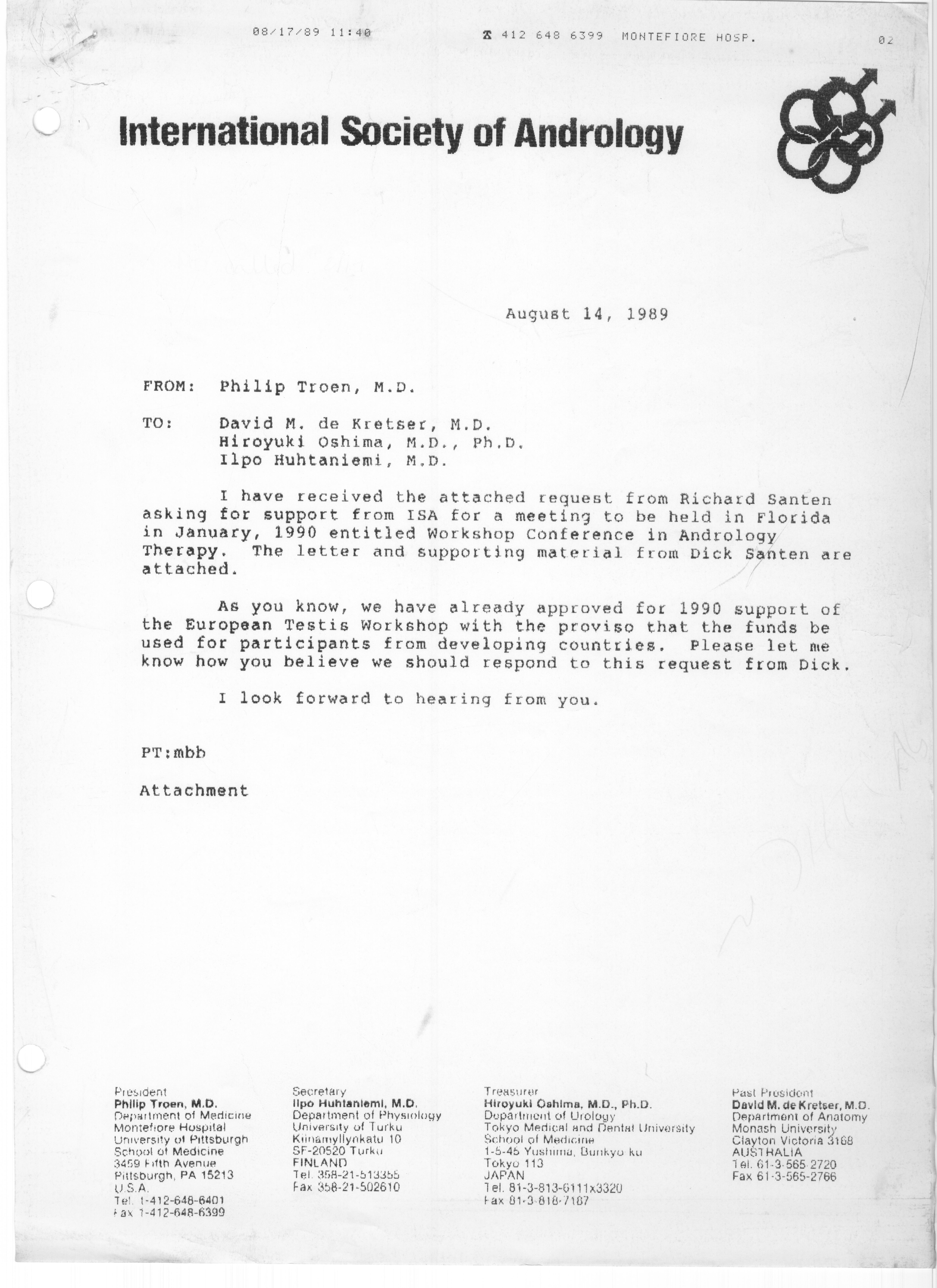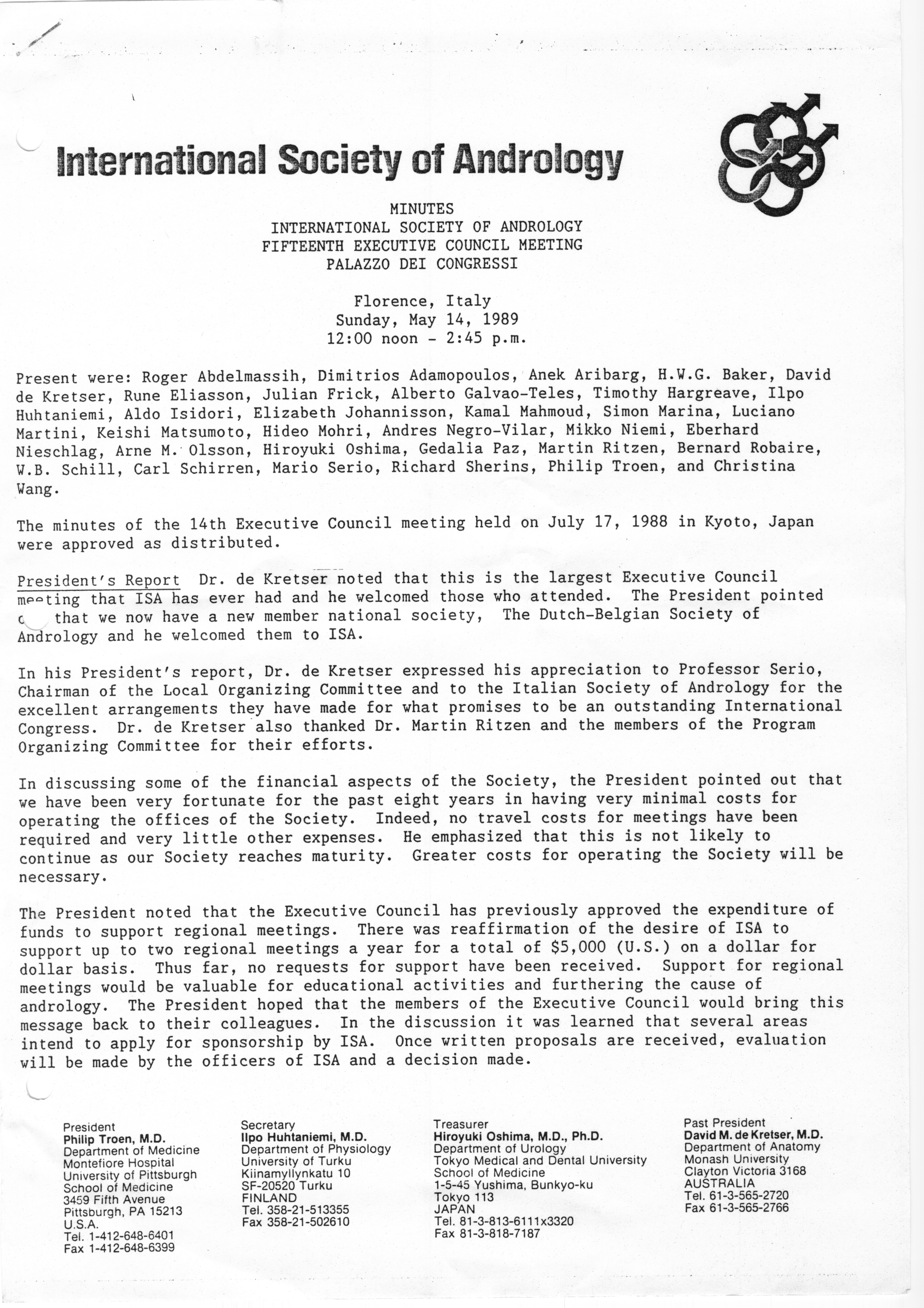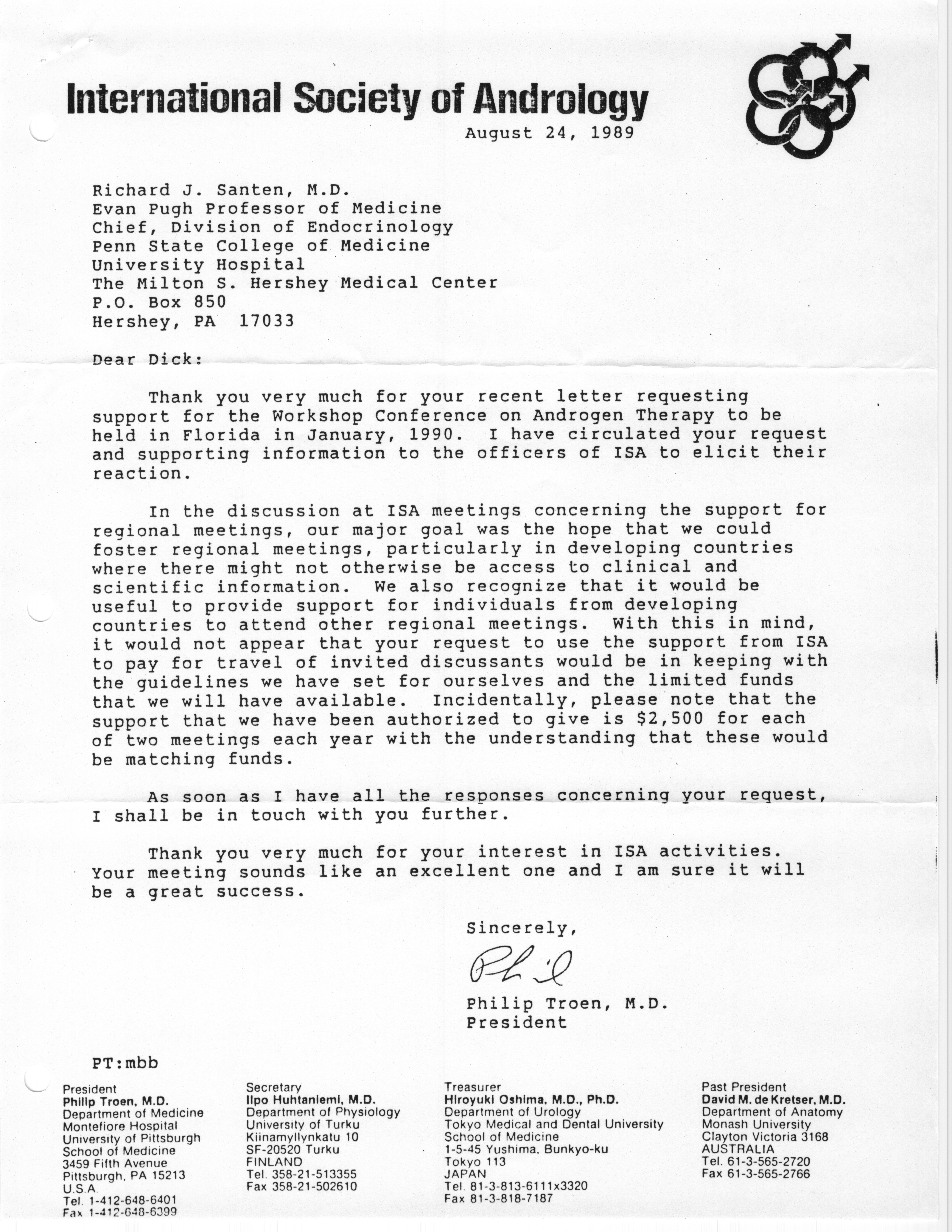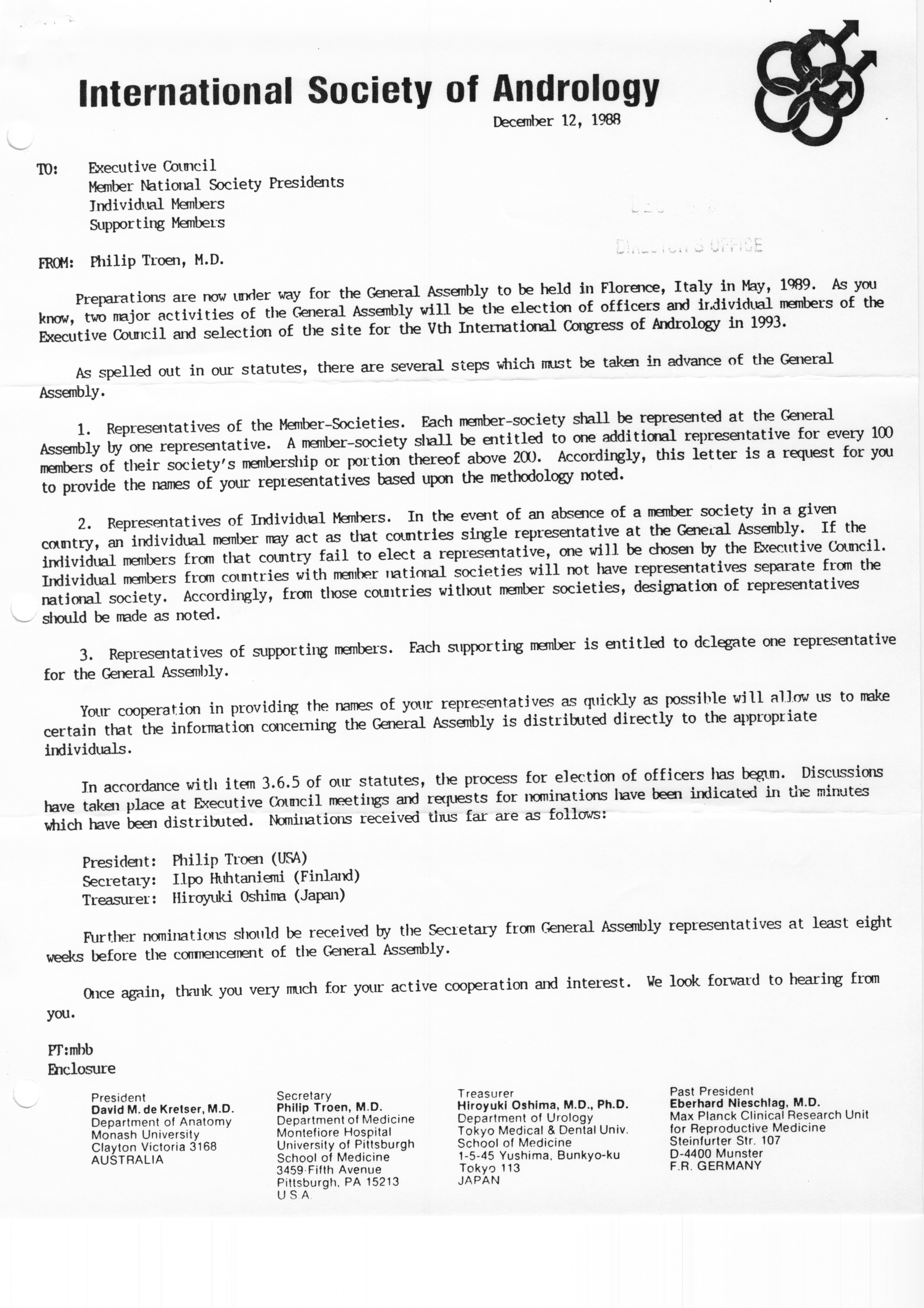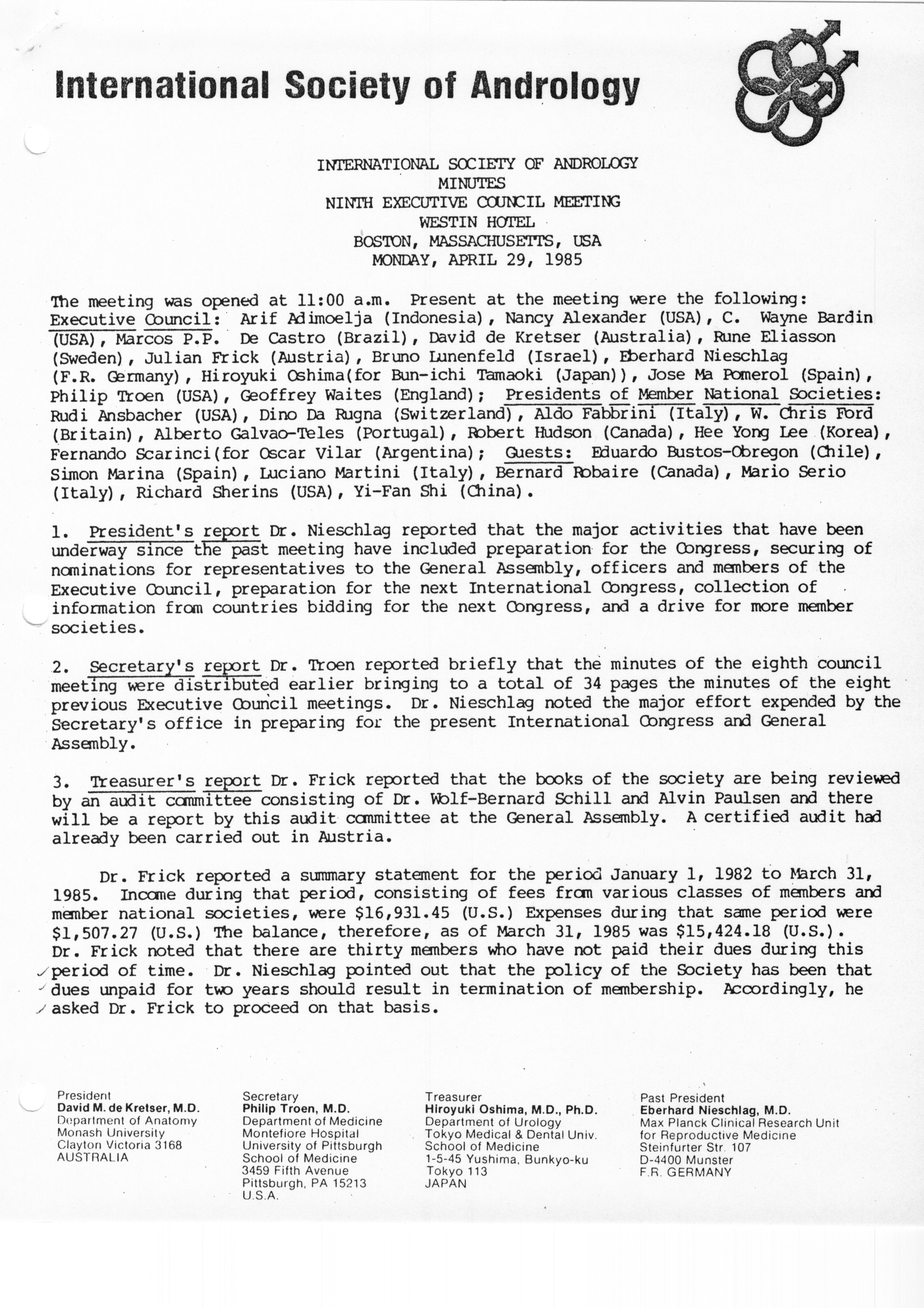 - "International Liaison Committee of the American Society of Andrology, 1985-90", American Society of Andrology Collection, Iowa State University Library Digital Collections