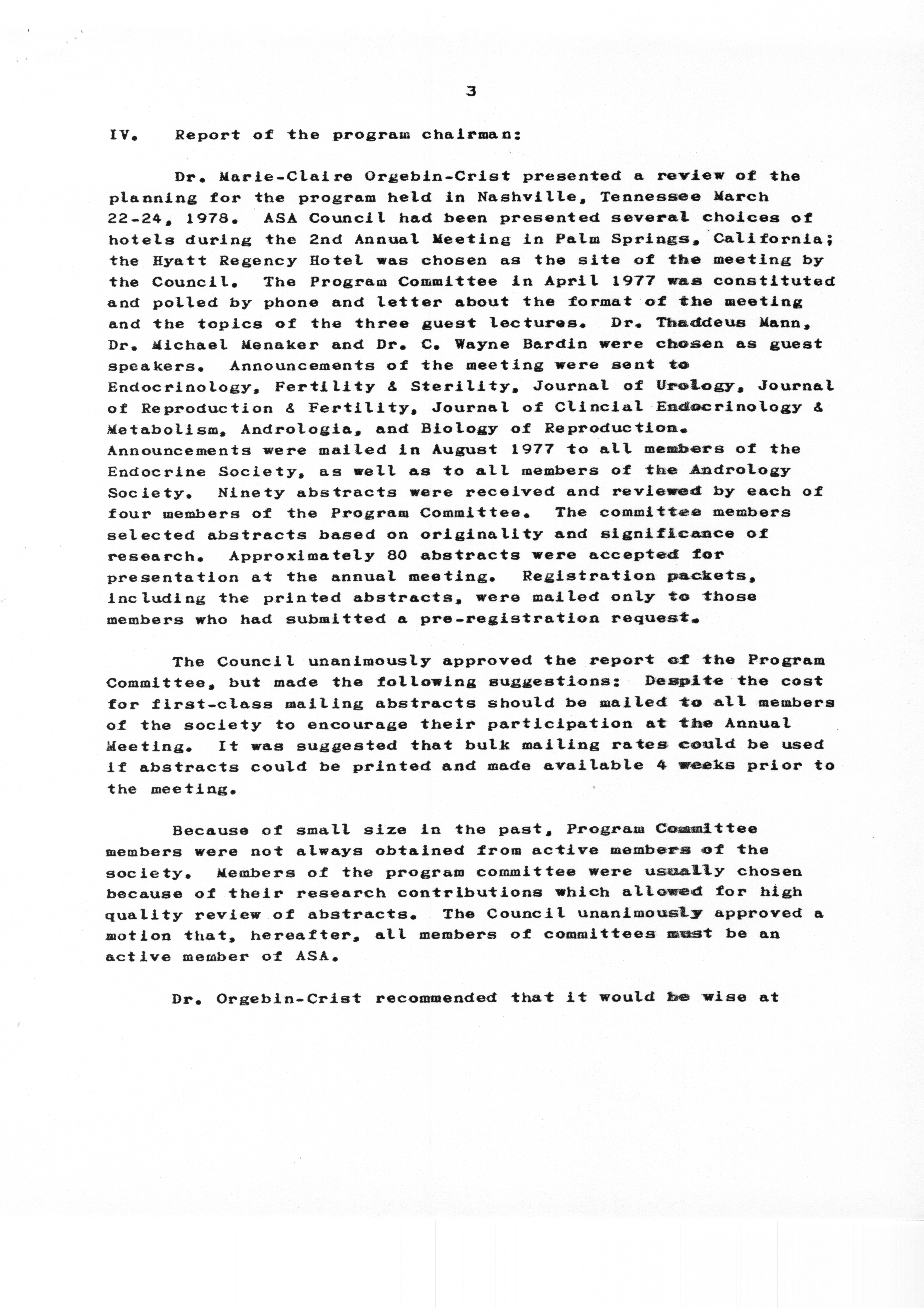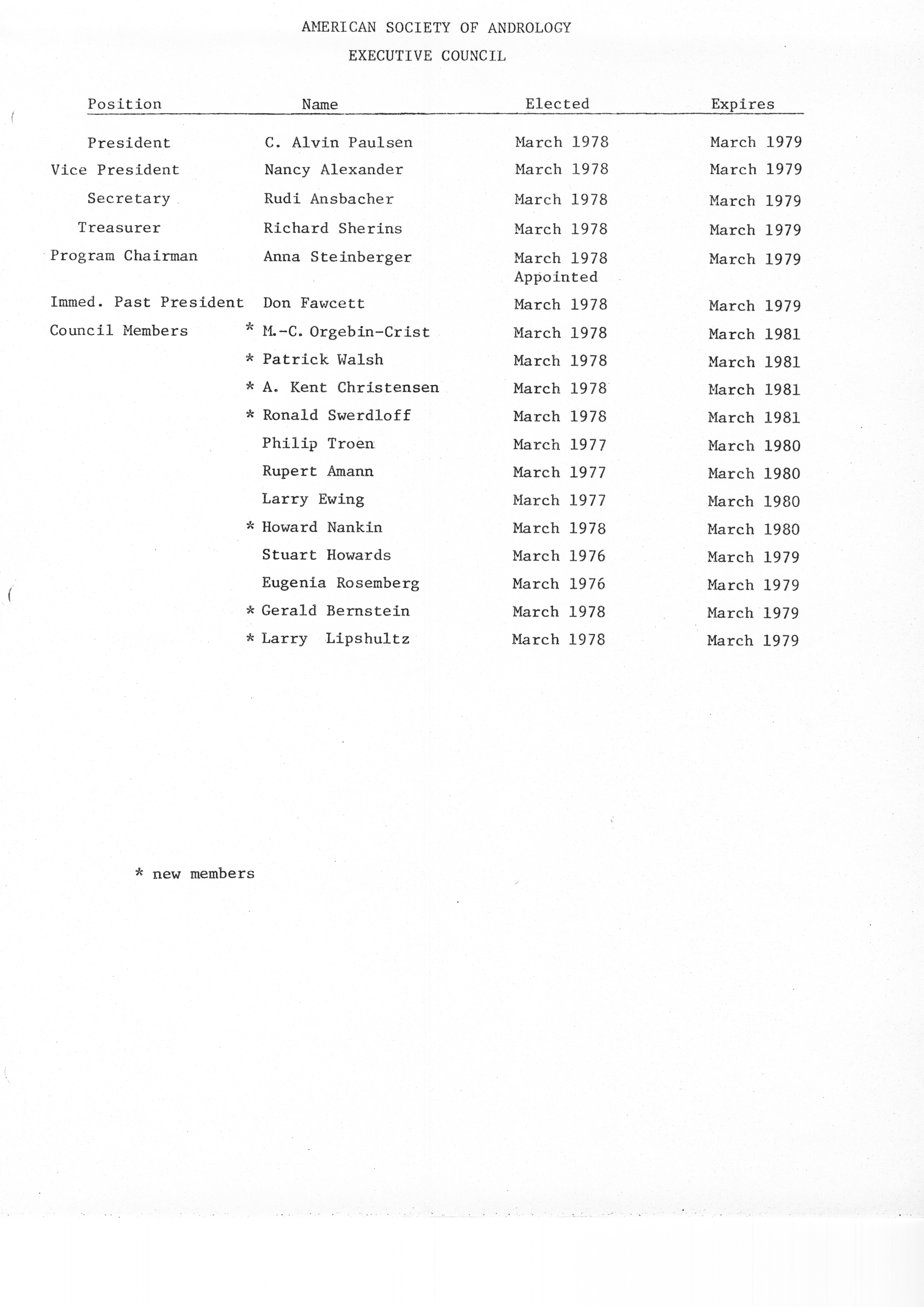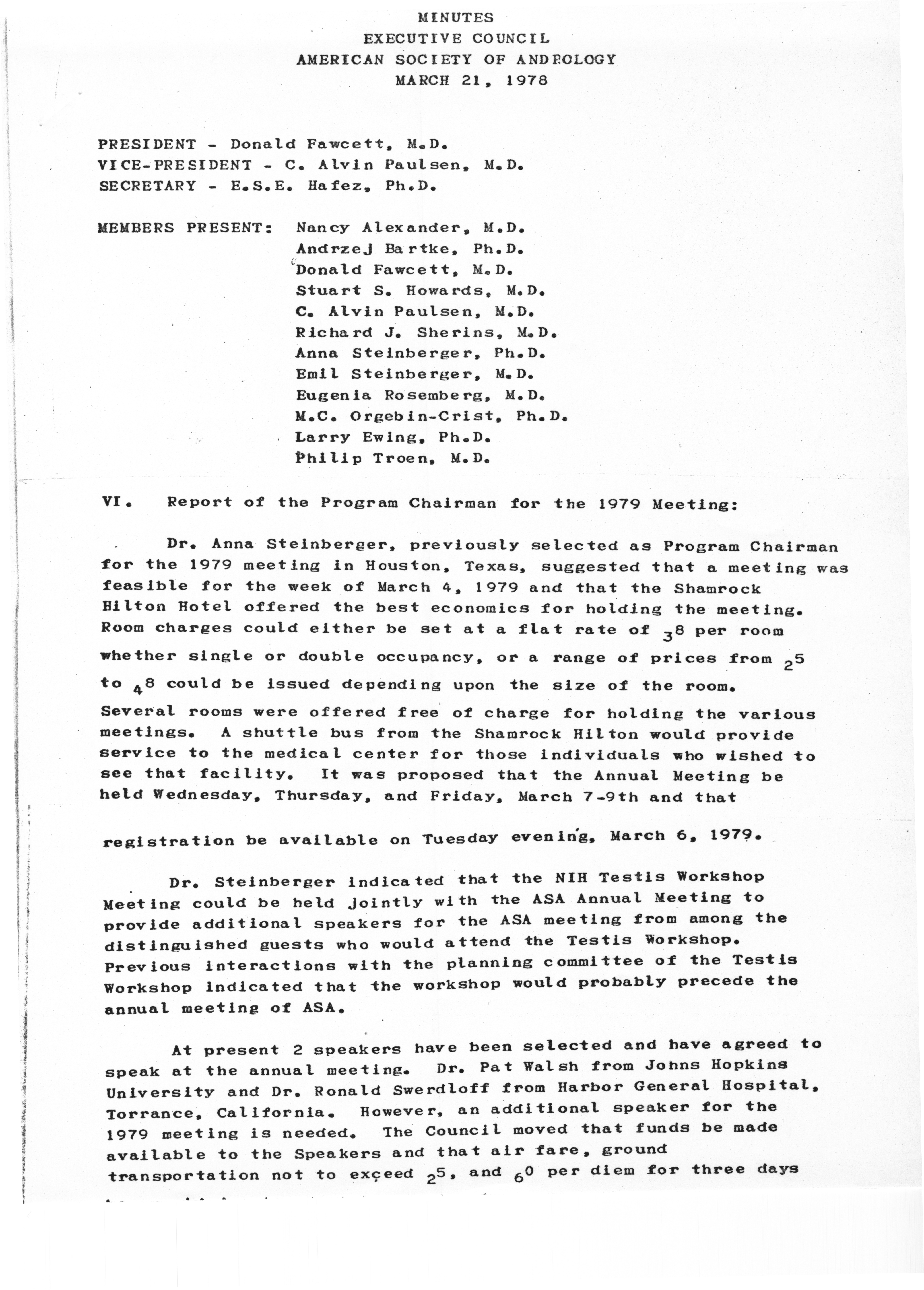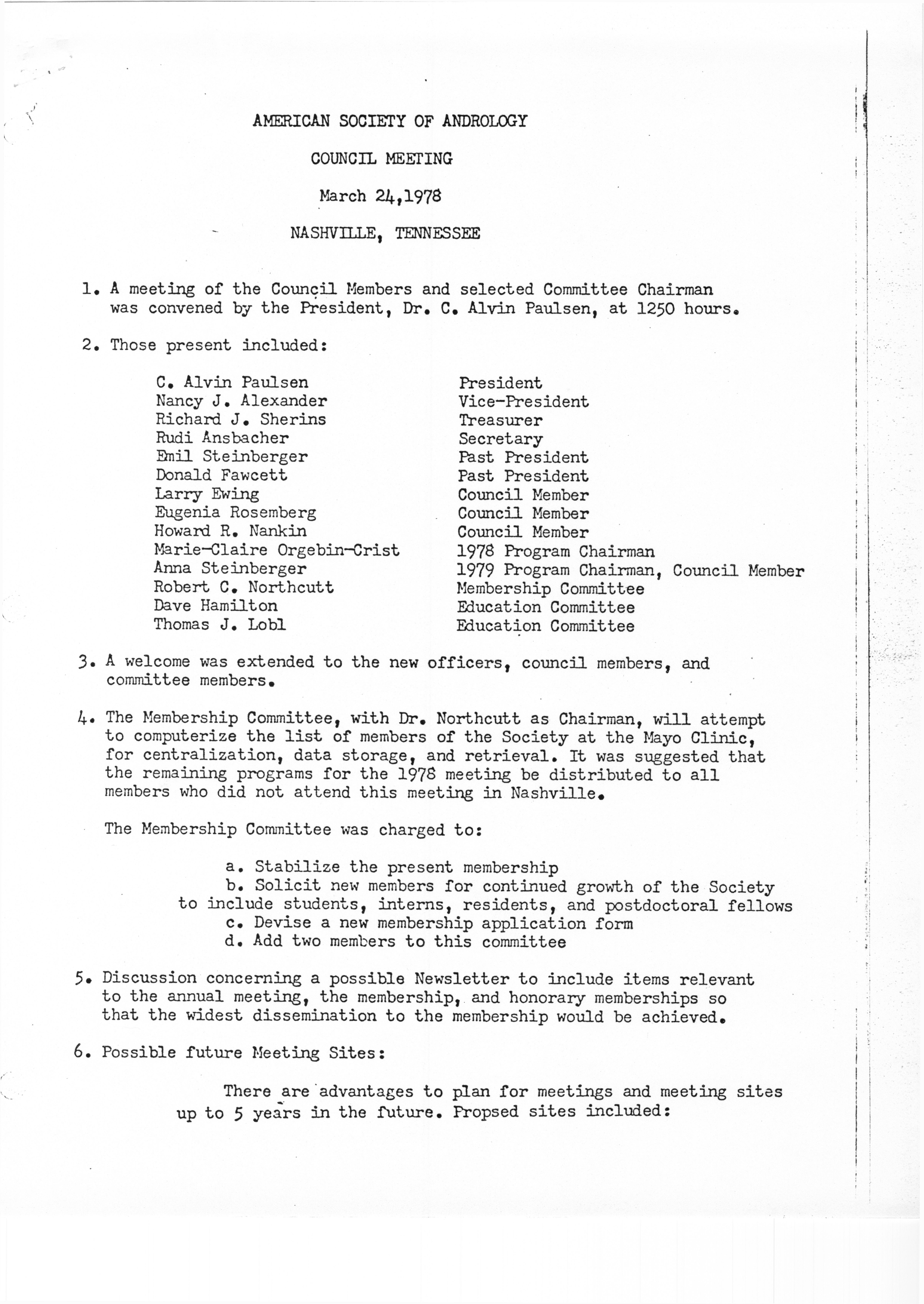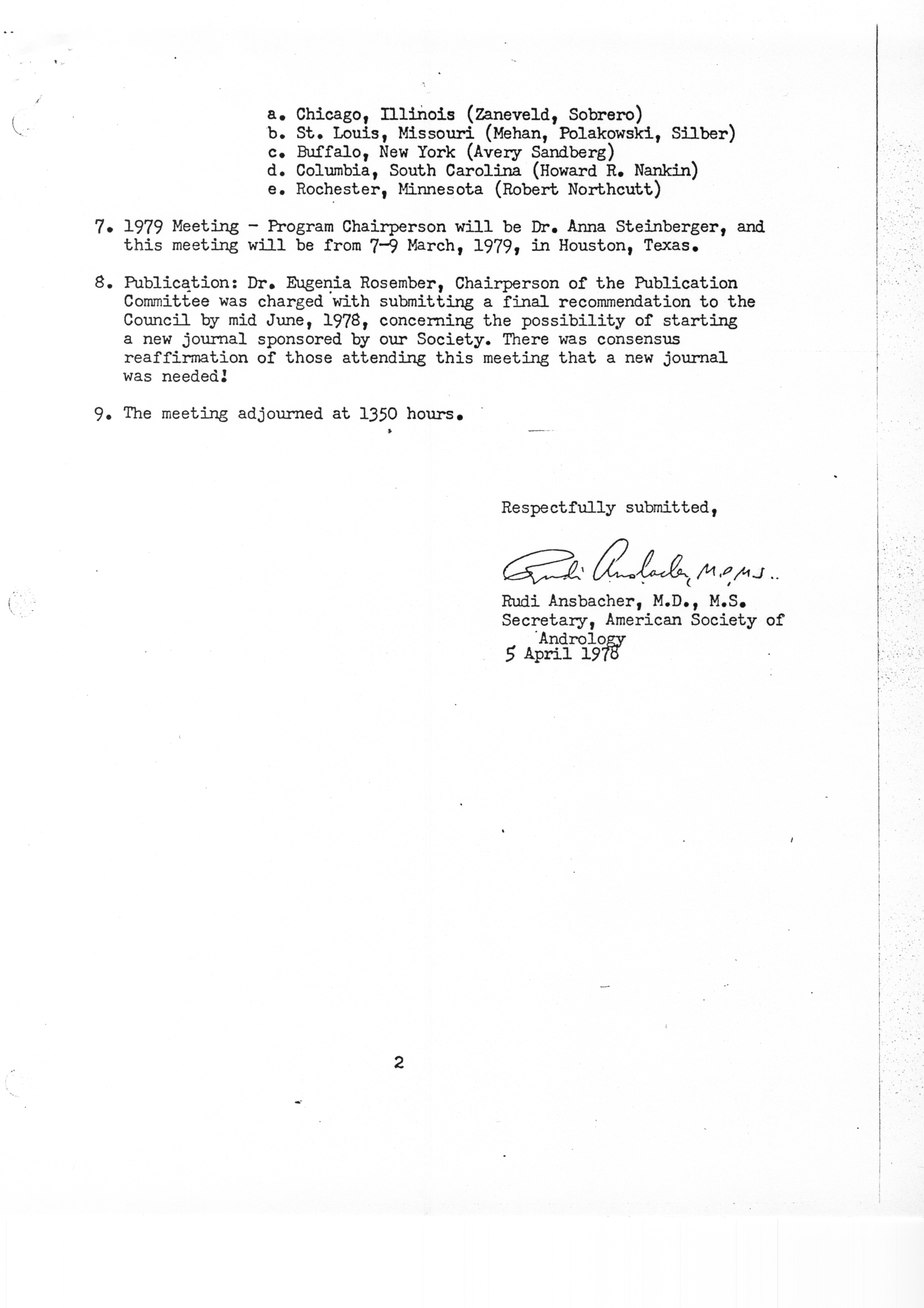 - "Executive Council Meetings of the American Society of Andrology, 1978", American Society of Andrology Collection, Iowa State University Library Digital Collections