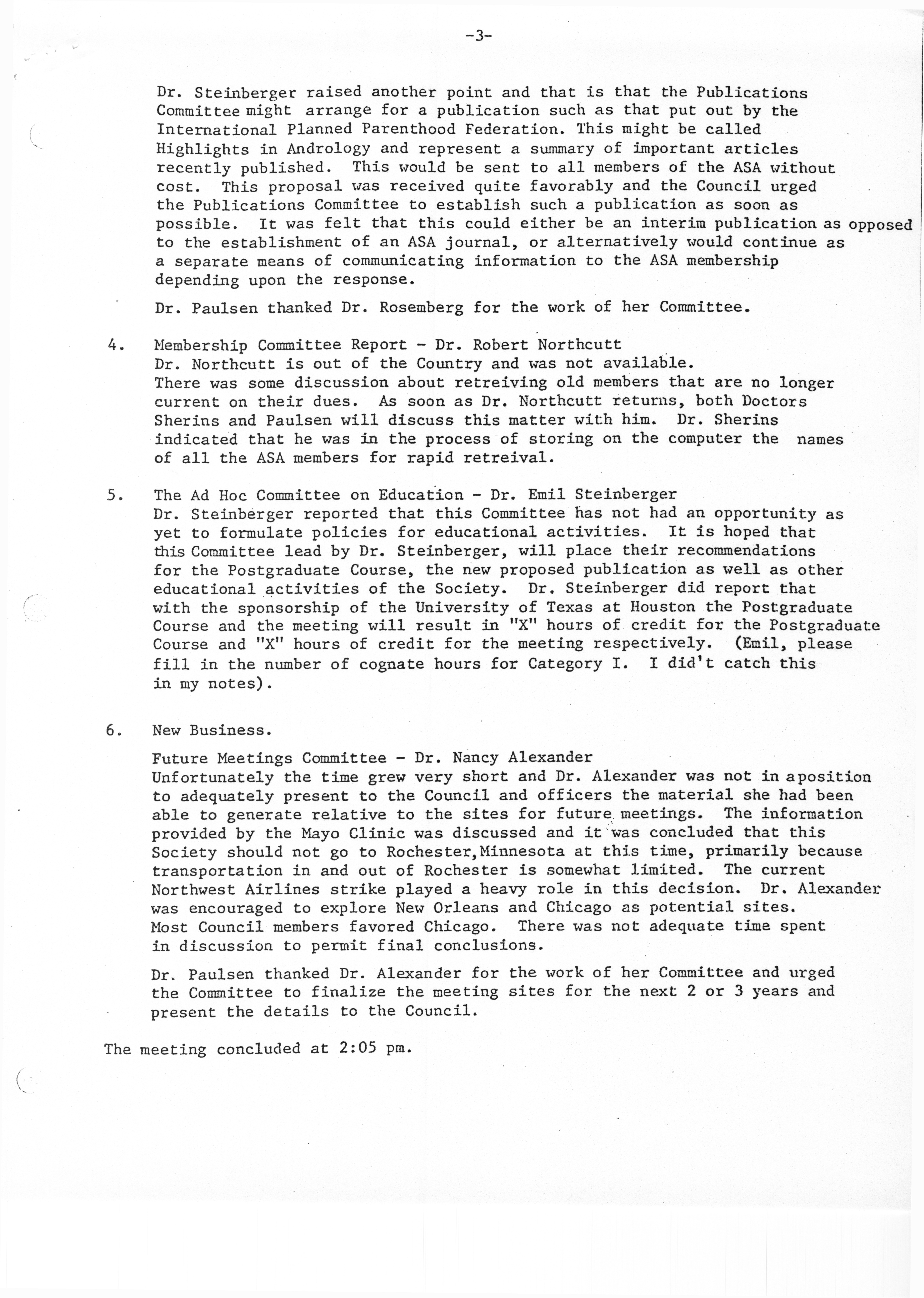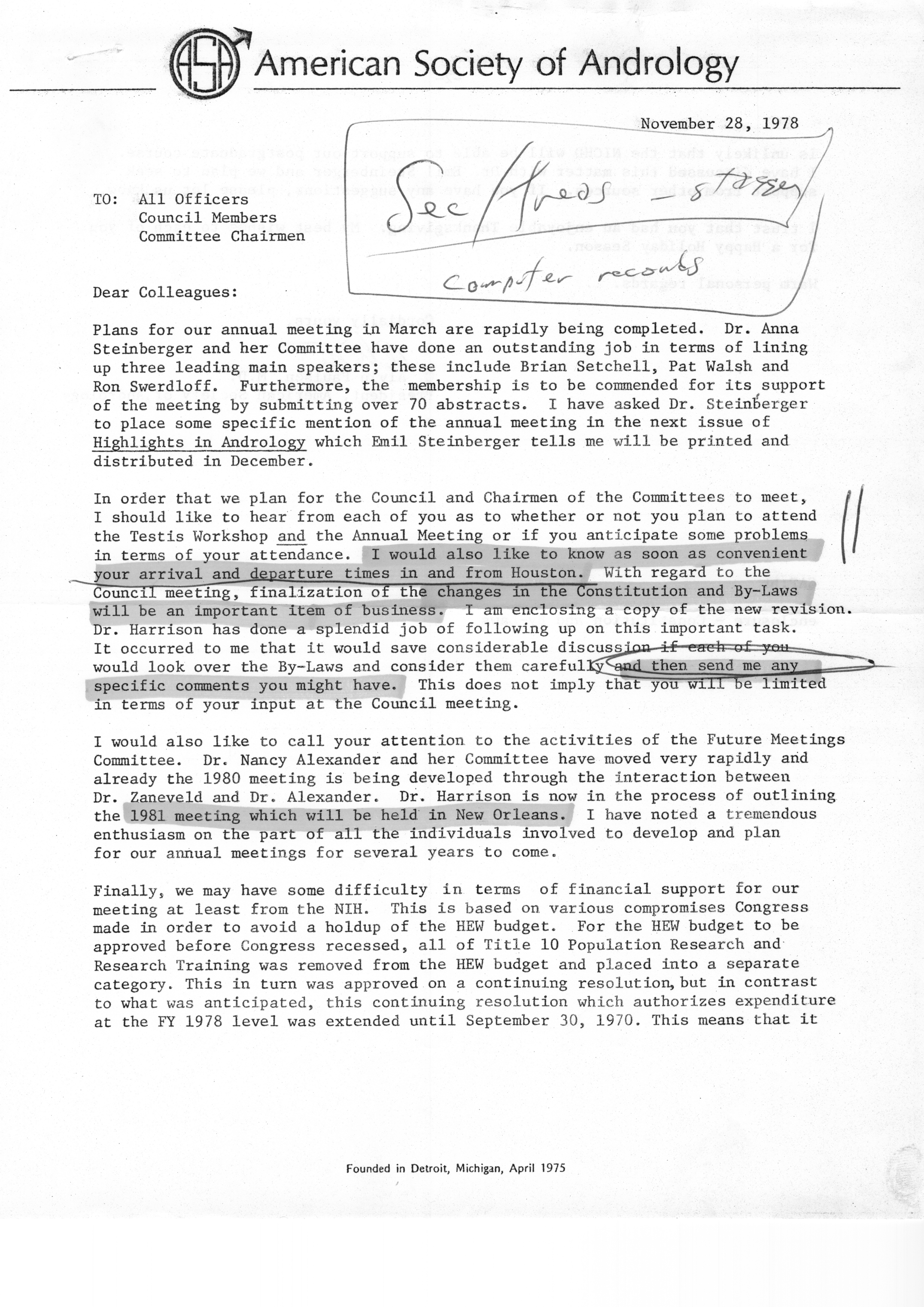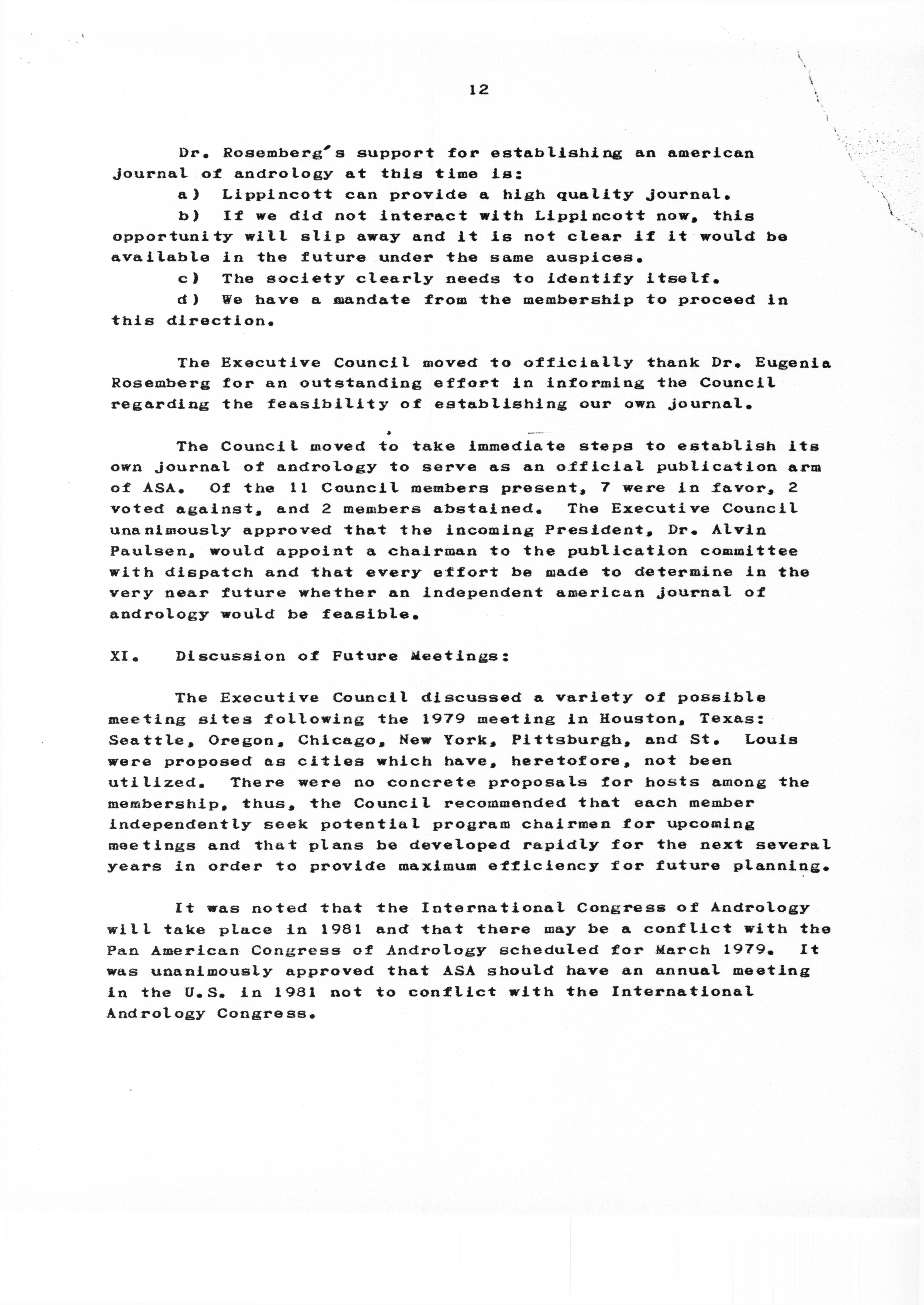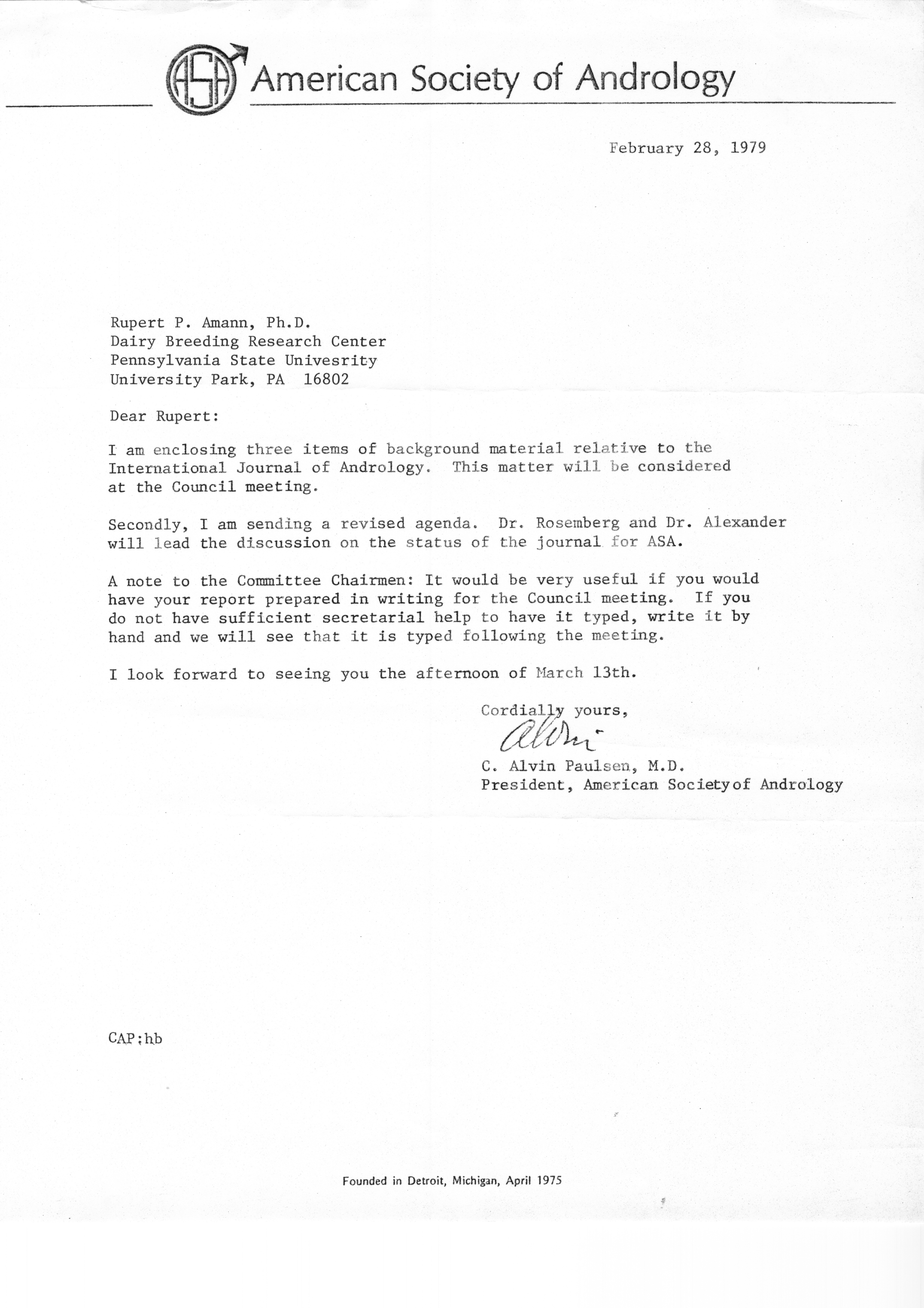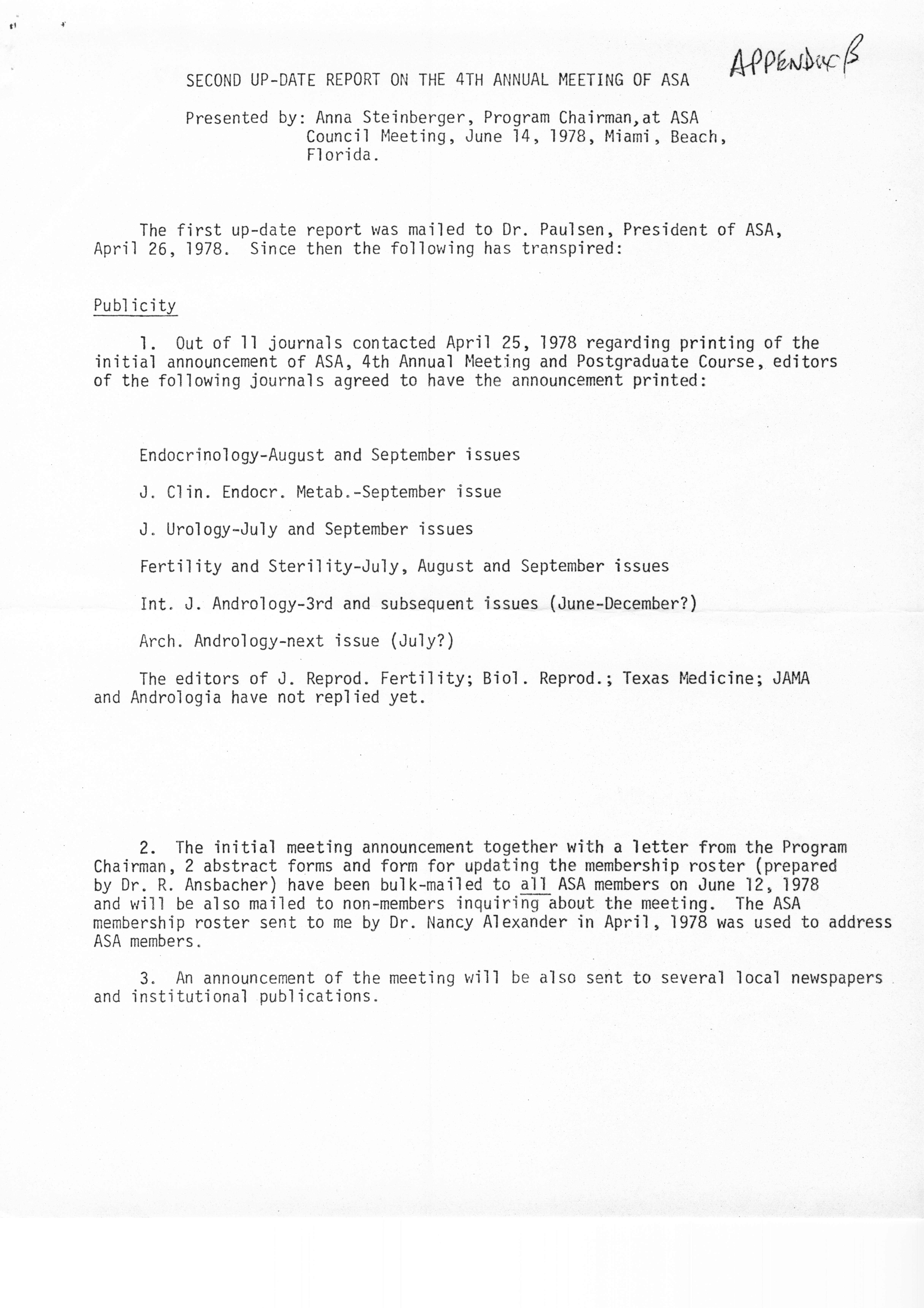 - "Executive Council Meetings of the American Society of Andrology, 1978", American Society of Andrology Collection, Iowa State University Library Digital Collections