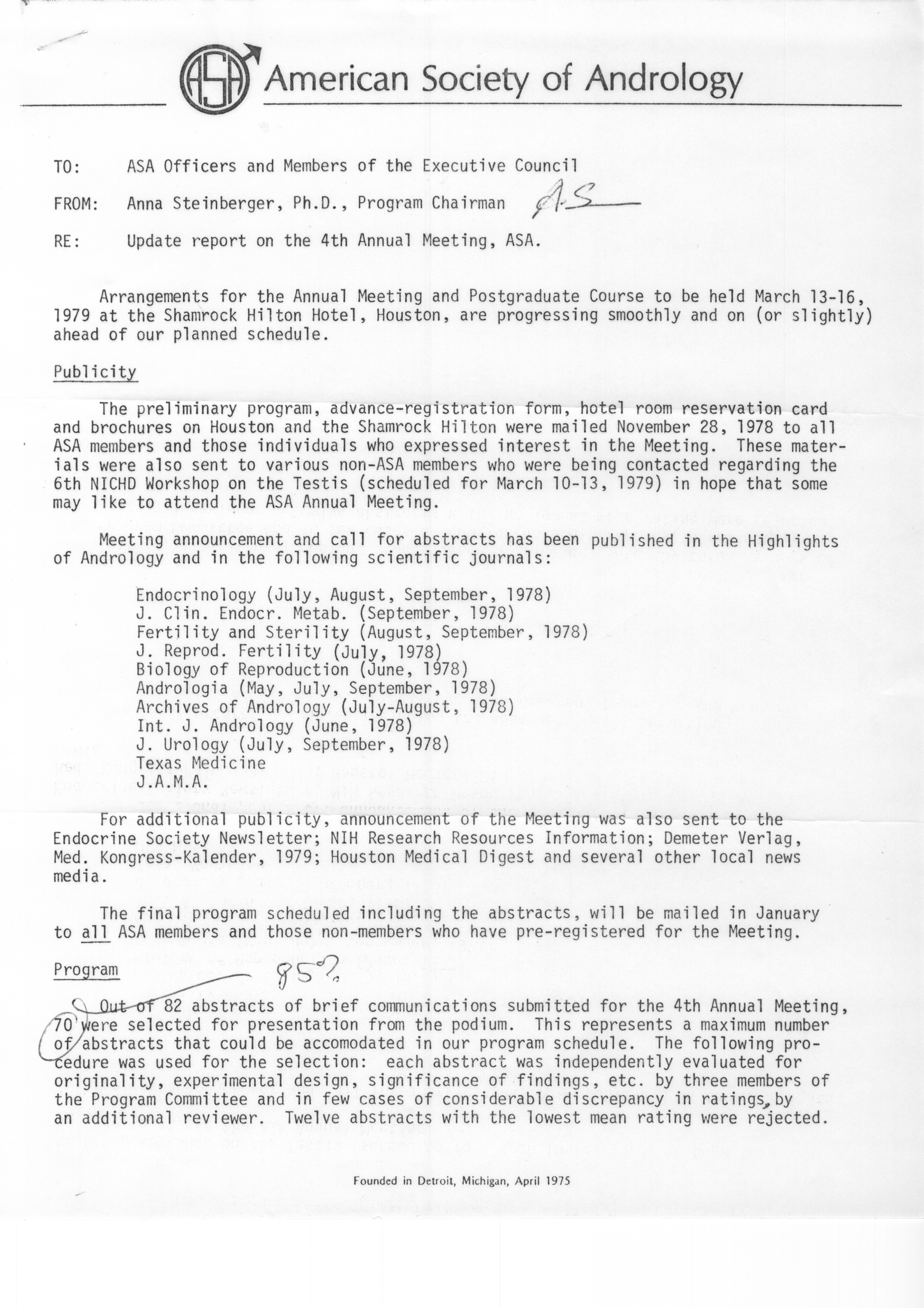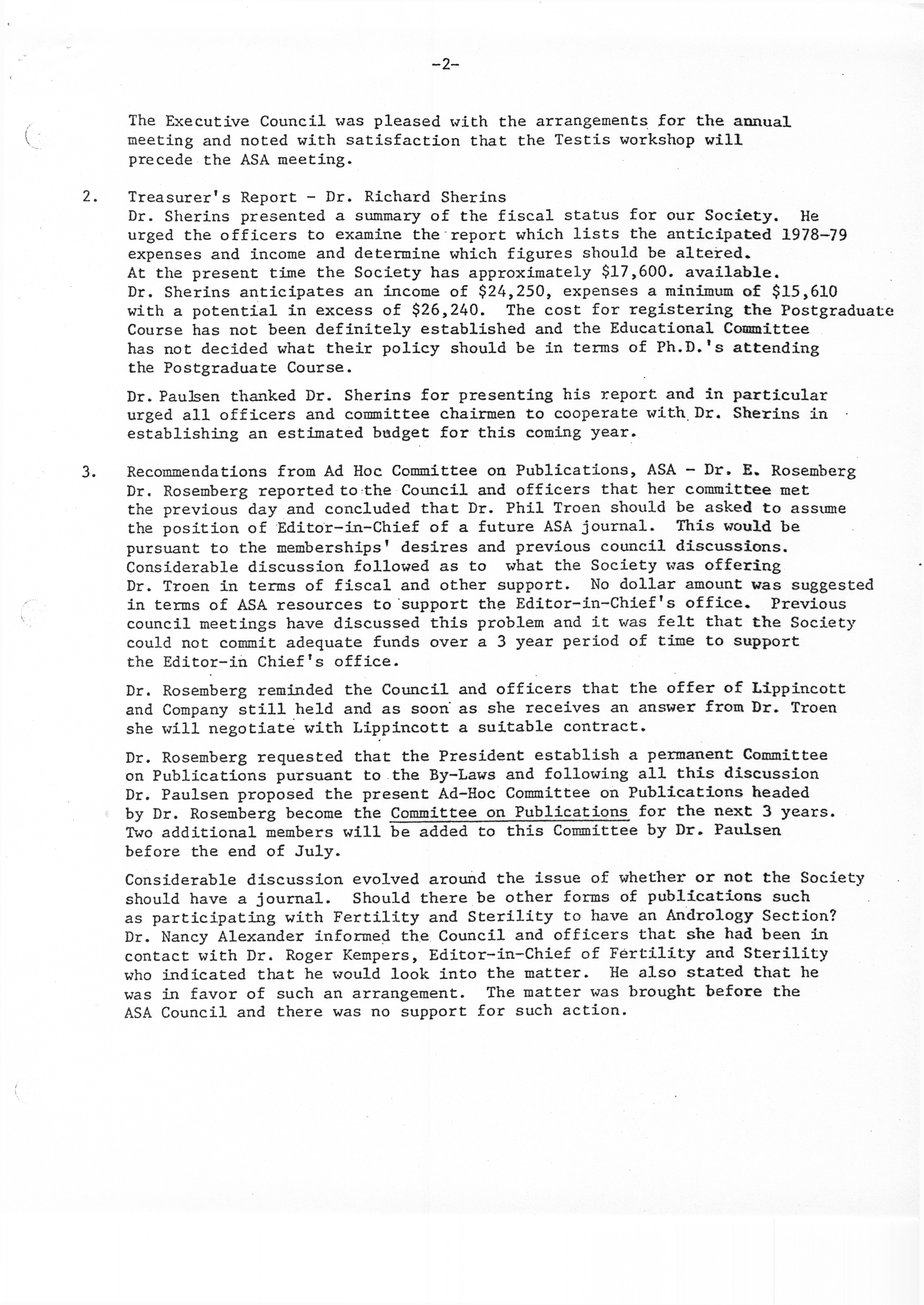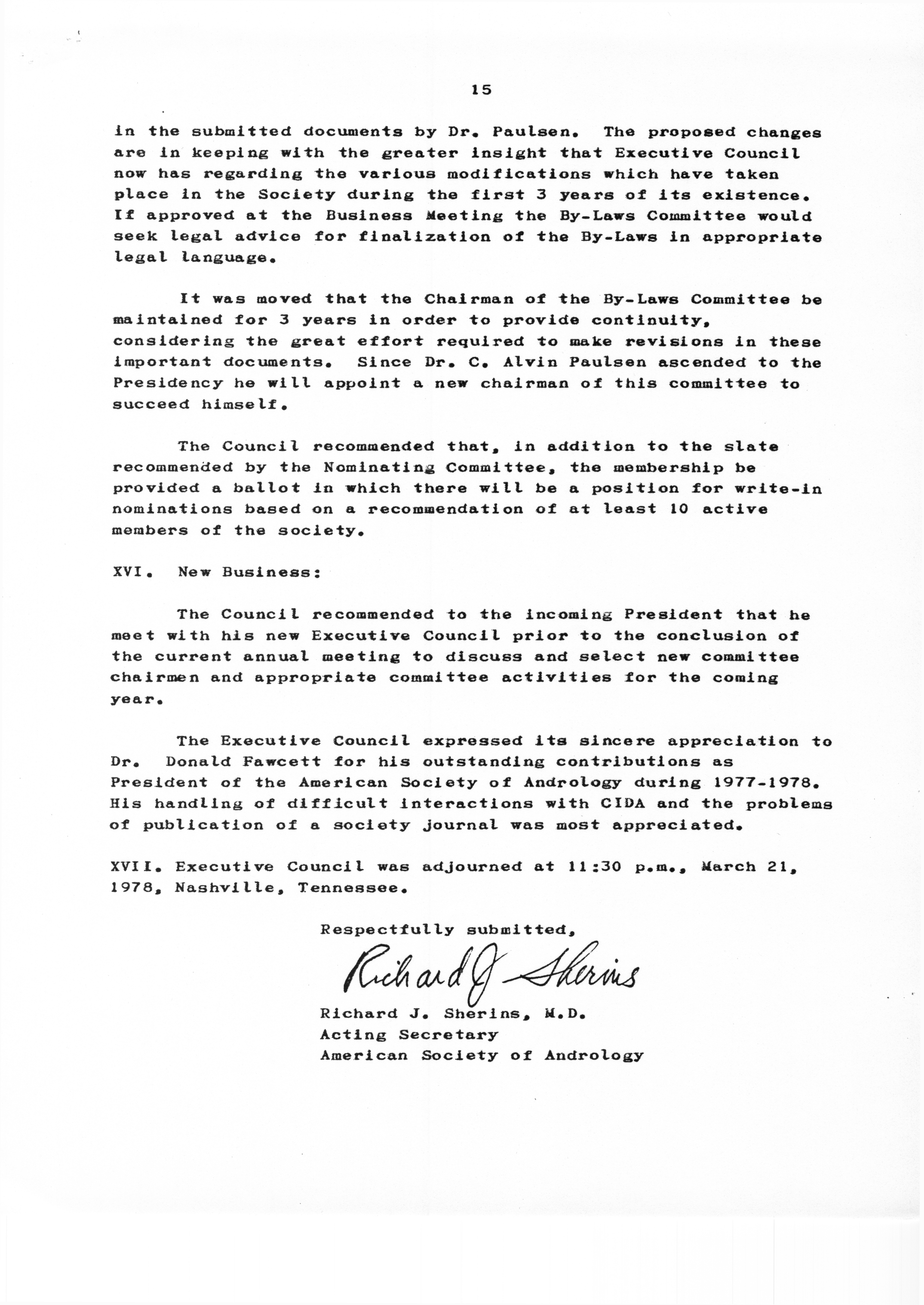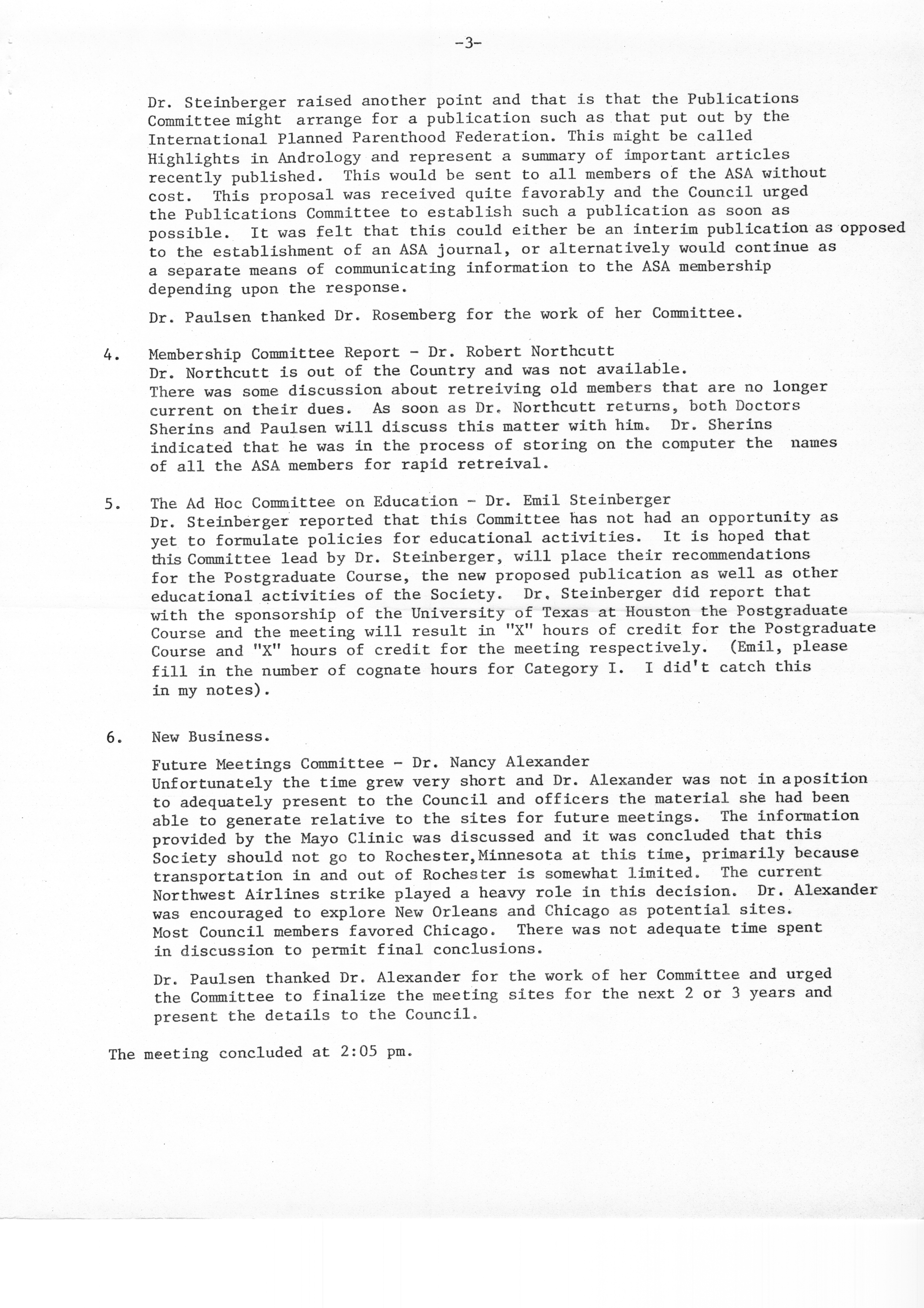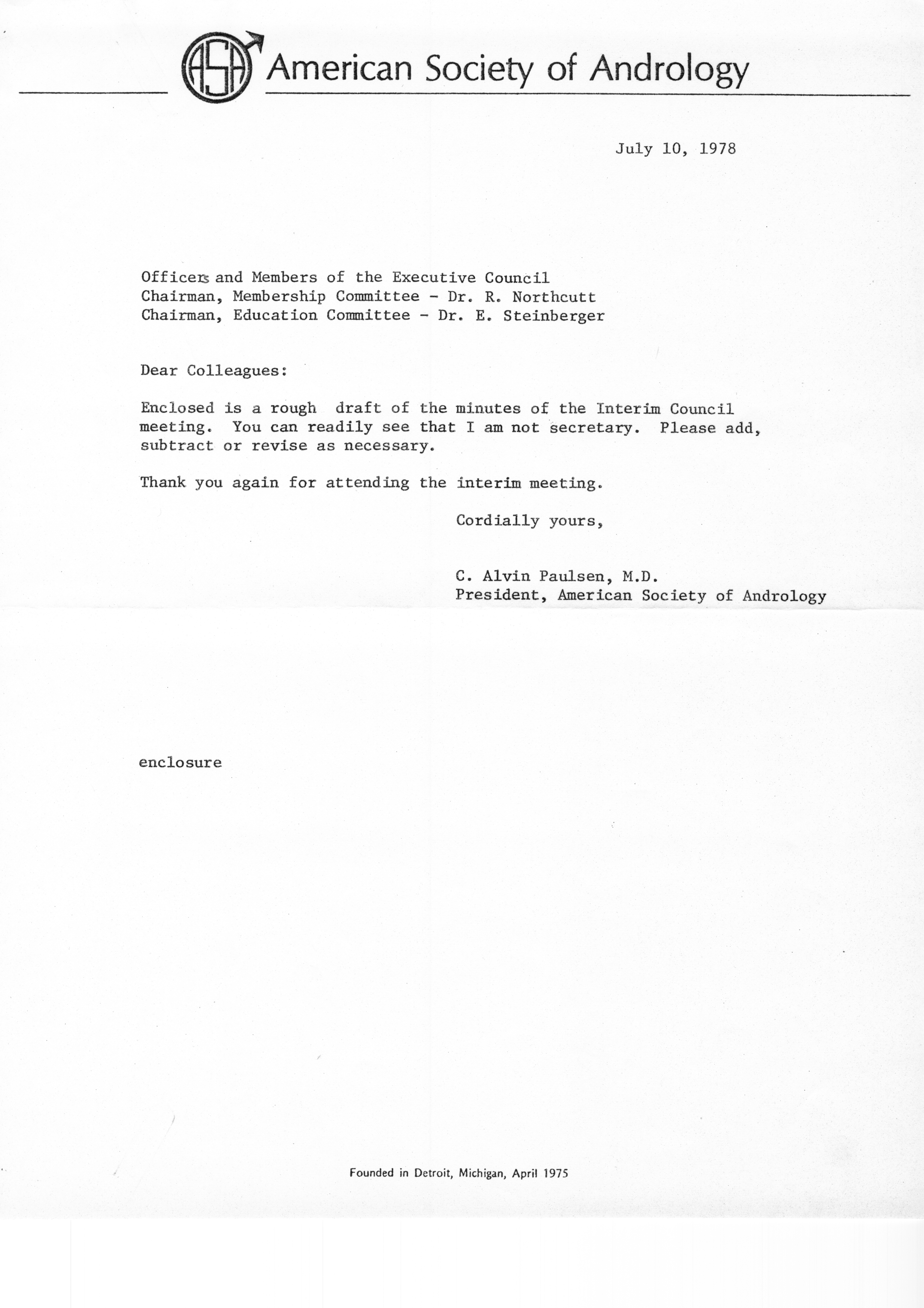 - "Executive Council Meetings of the American Society of Andrology, 1978", American Society of Andrology Collection, Iowa State University Library Digital Collections