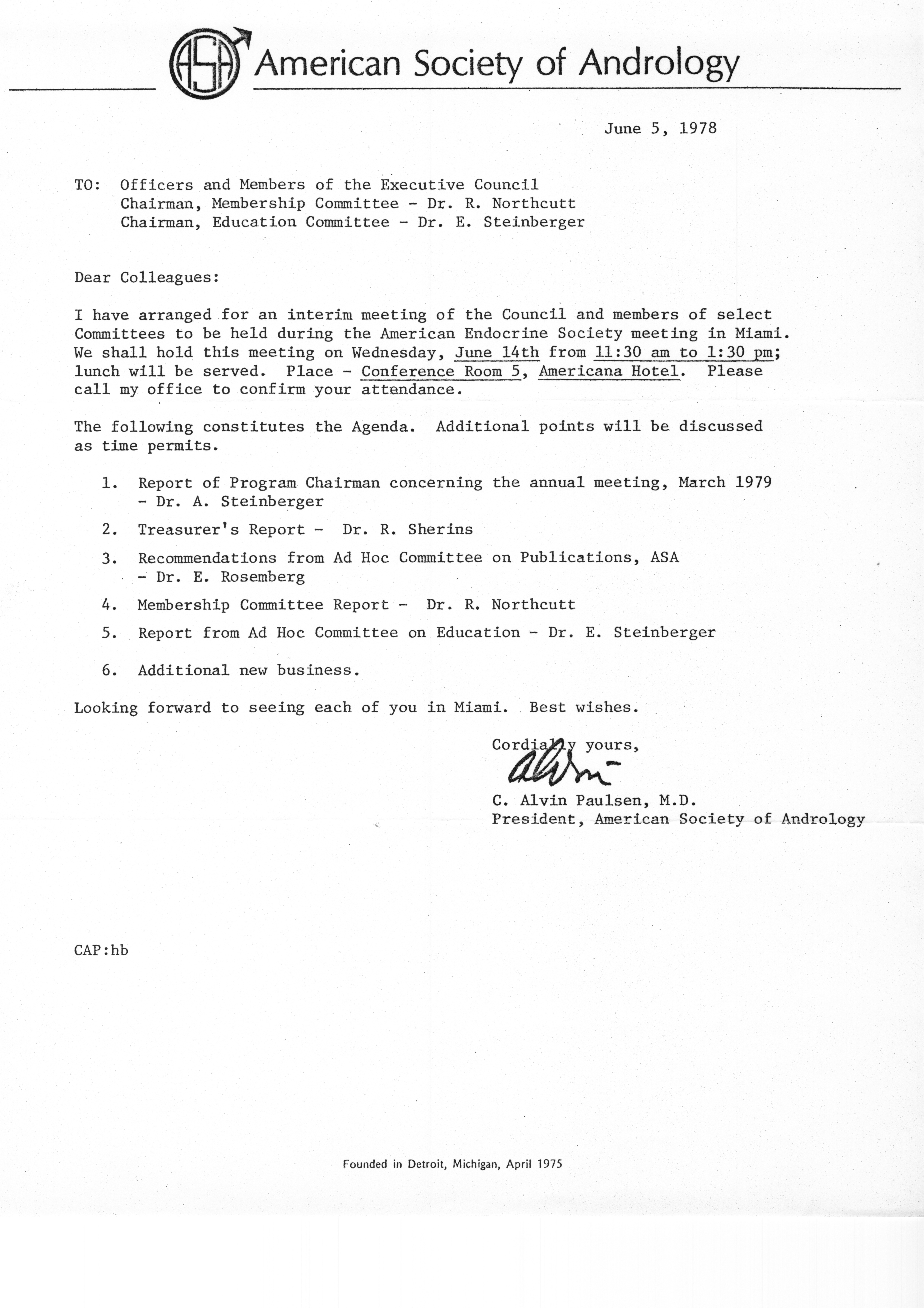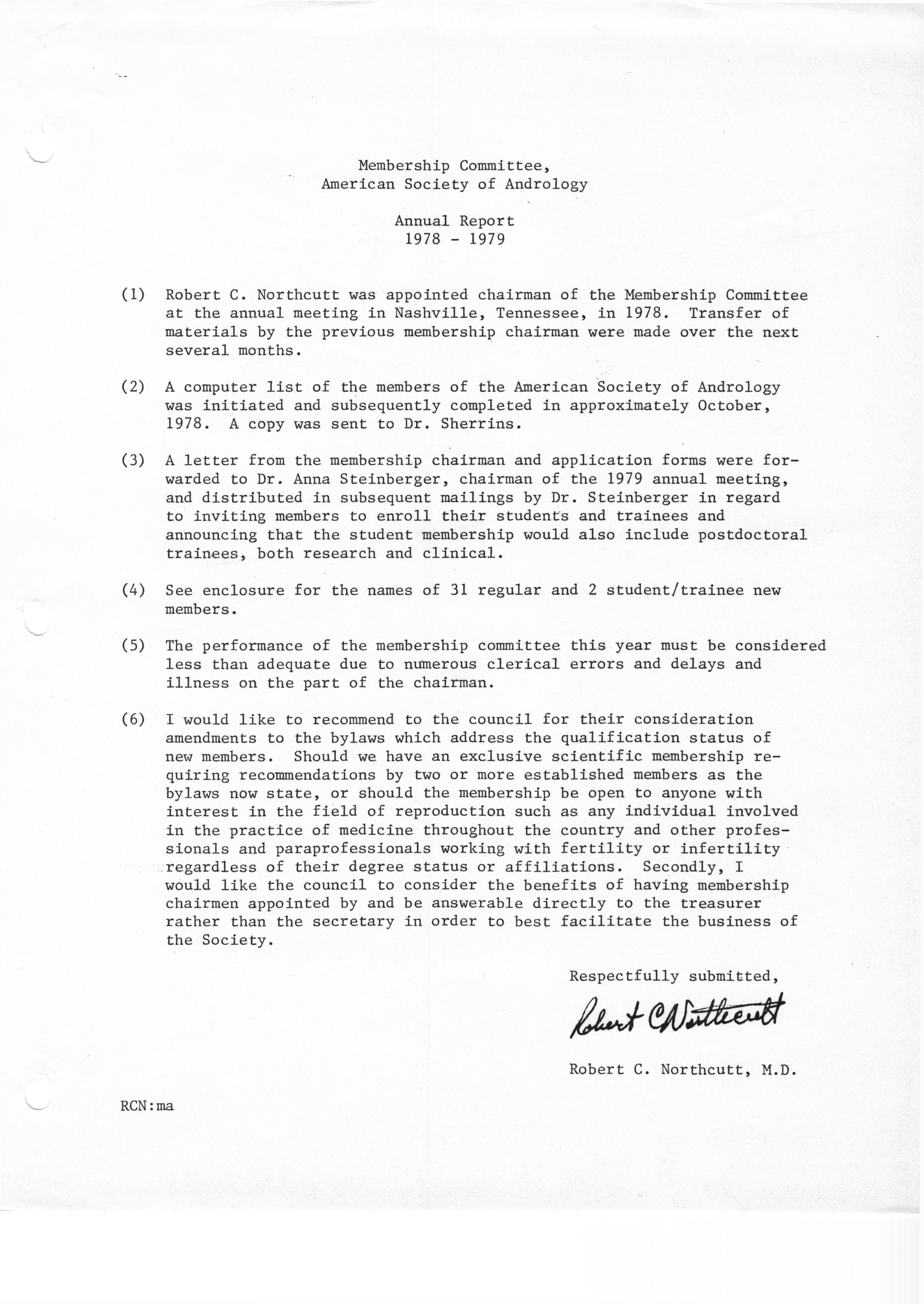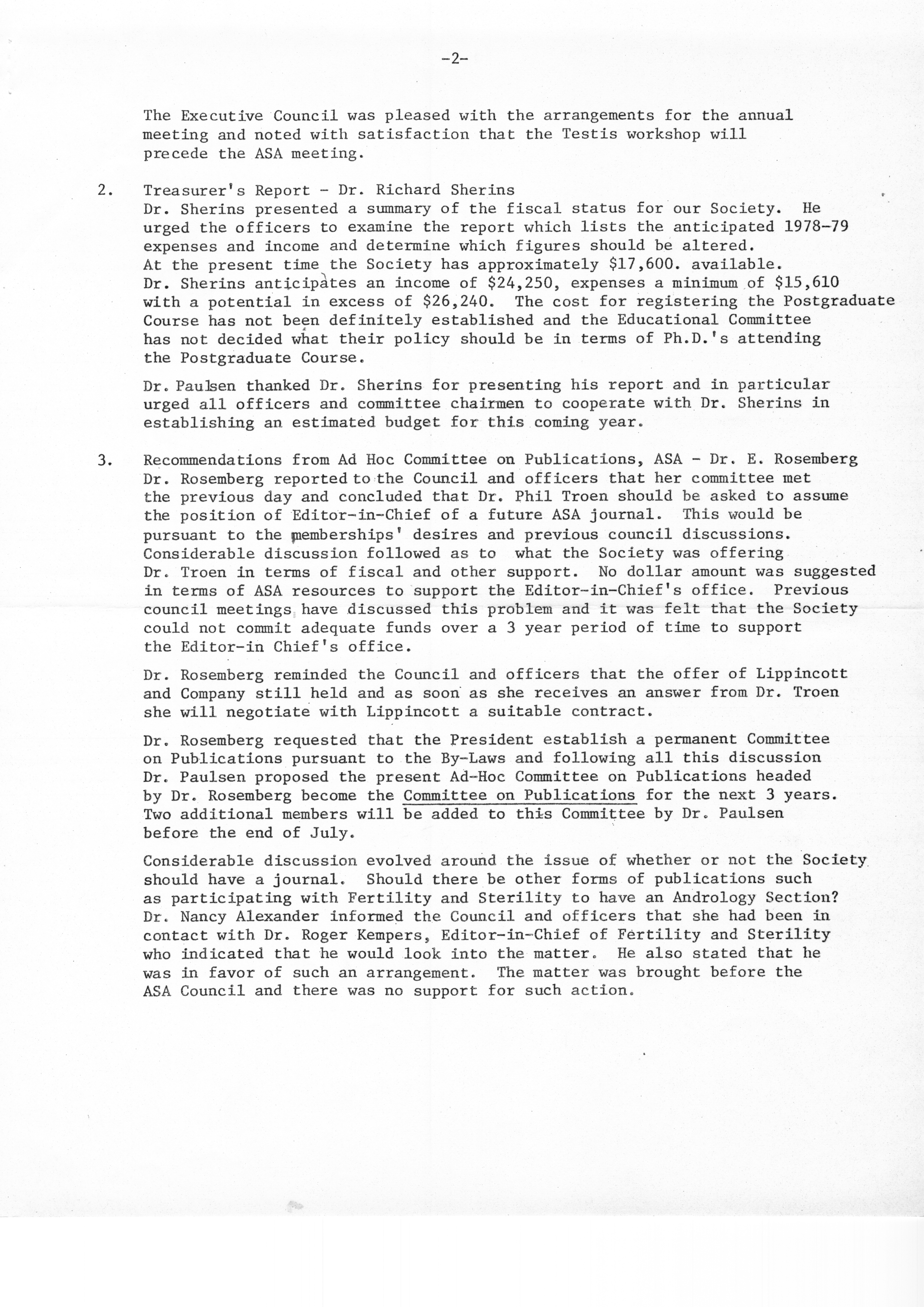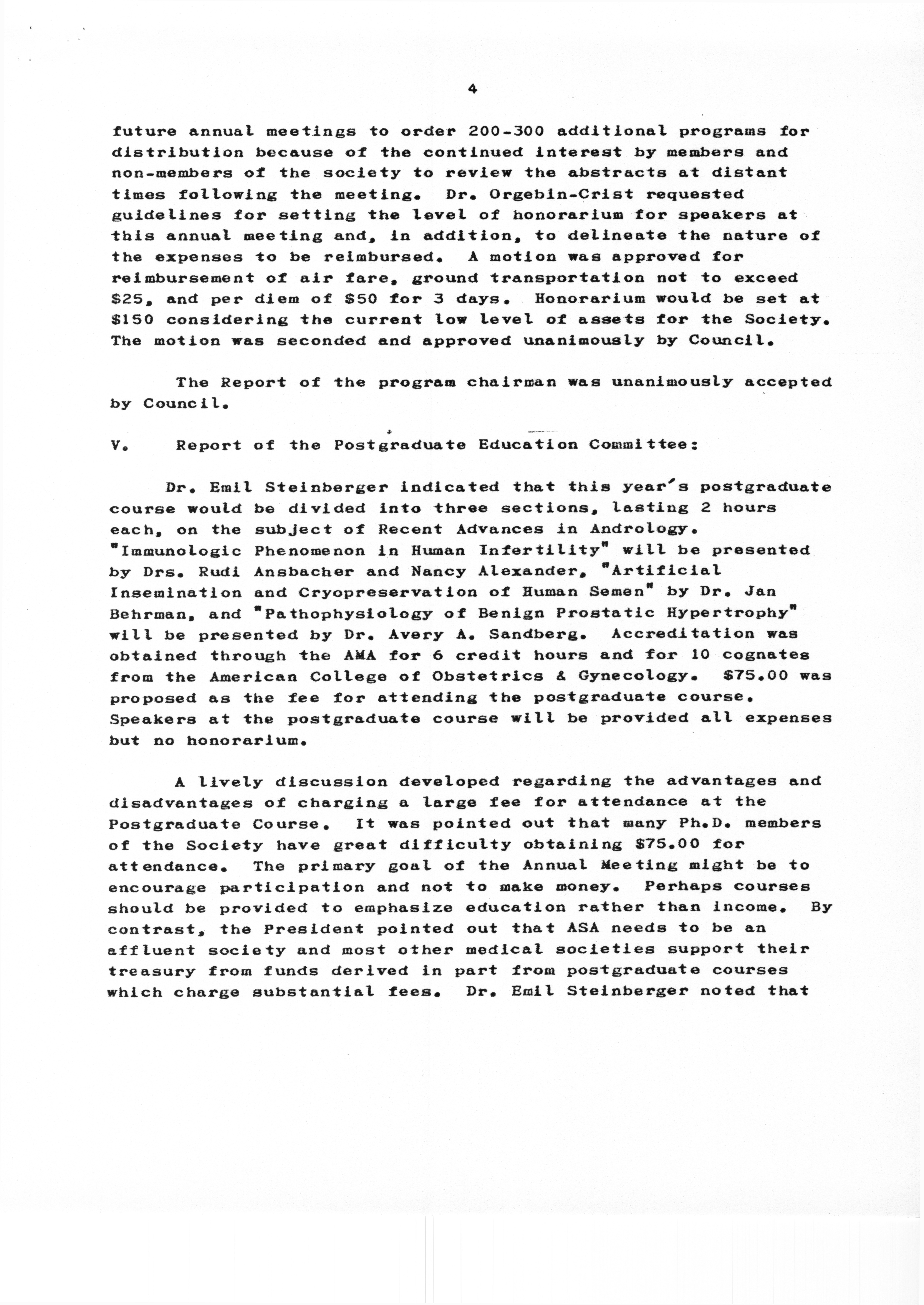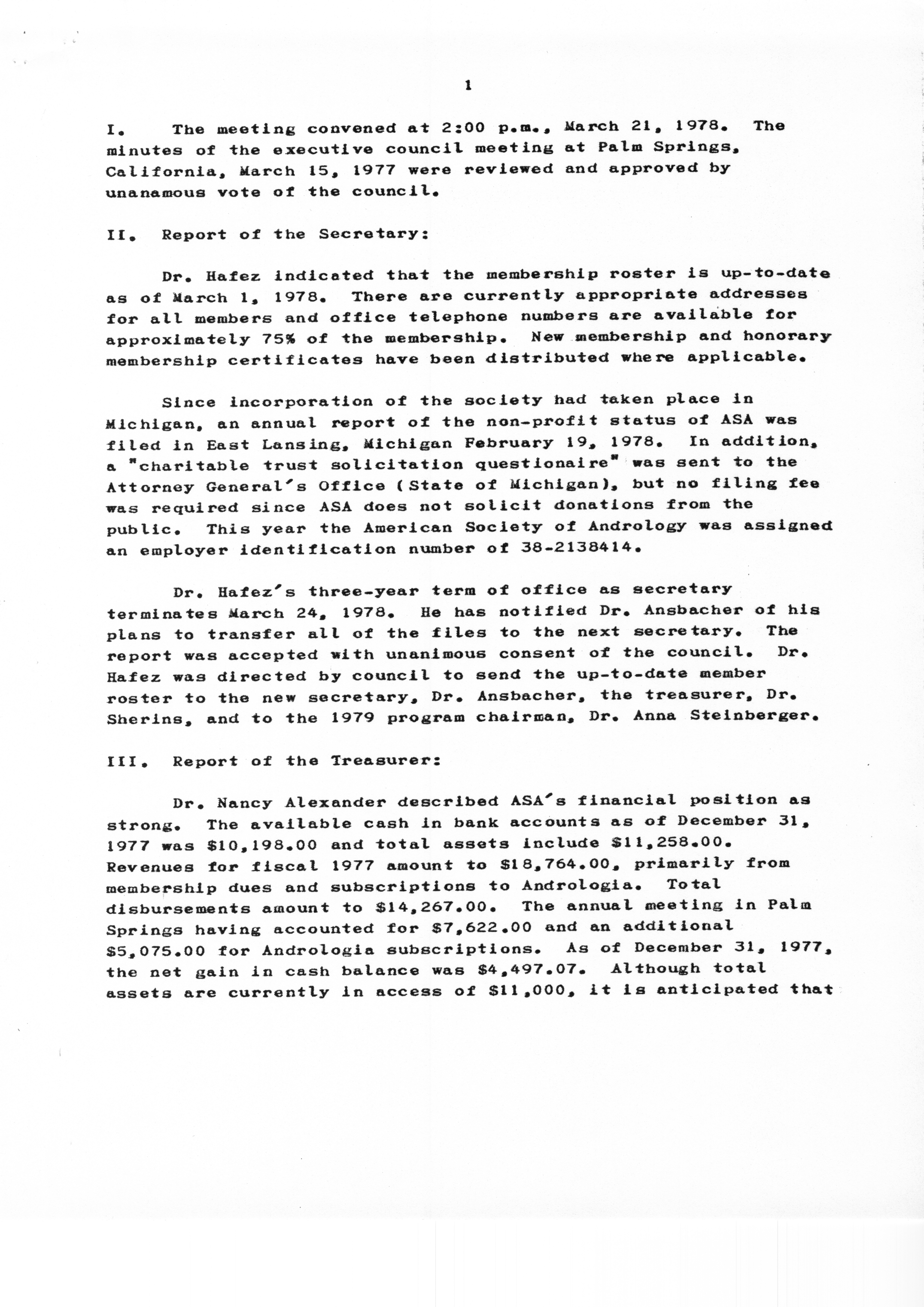 - "Executive Council Meetings of the American Society of Andrology, 1978", American Society of Andrology Collection, Iowa State University Library Digital Collections