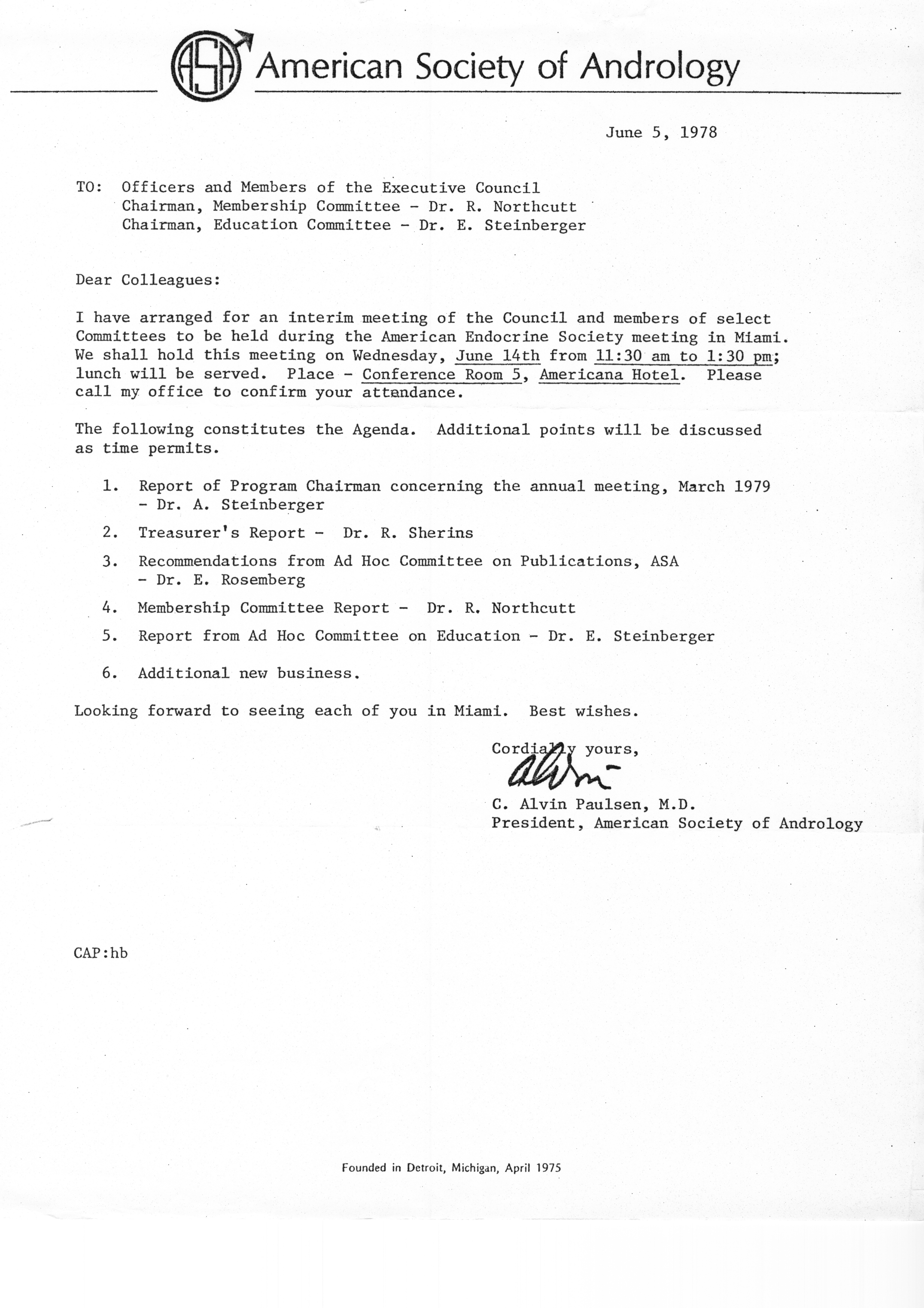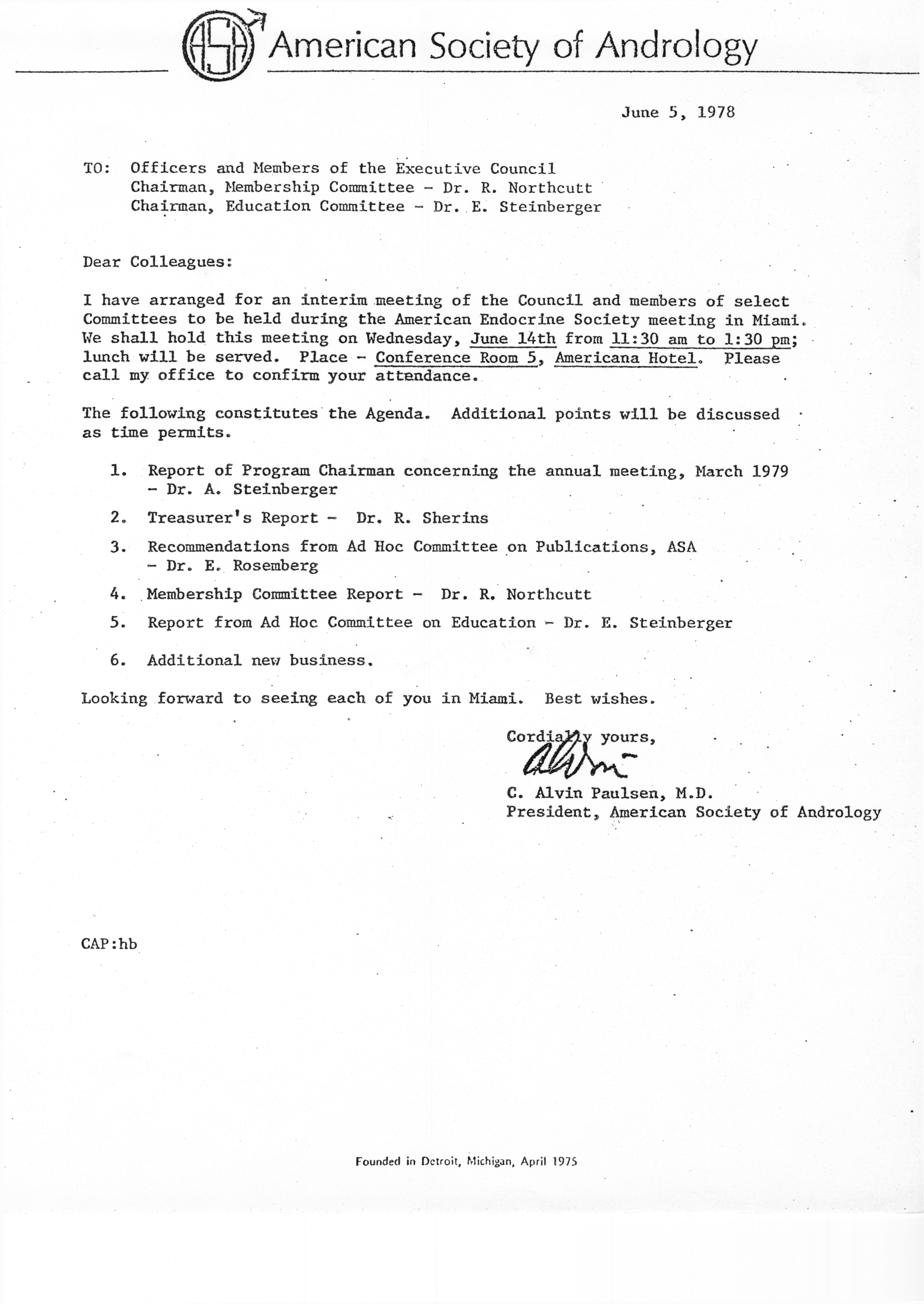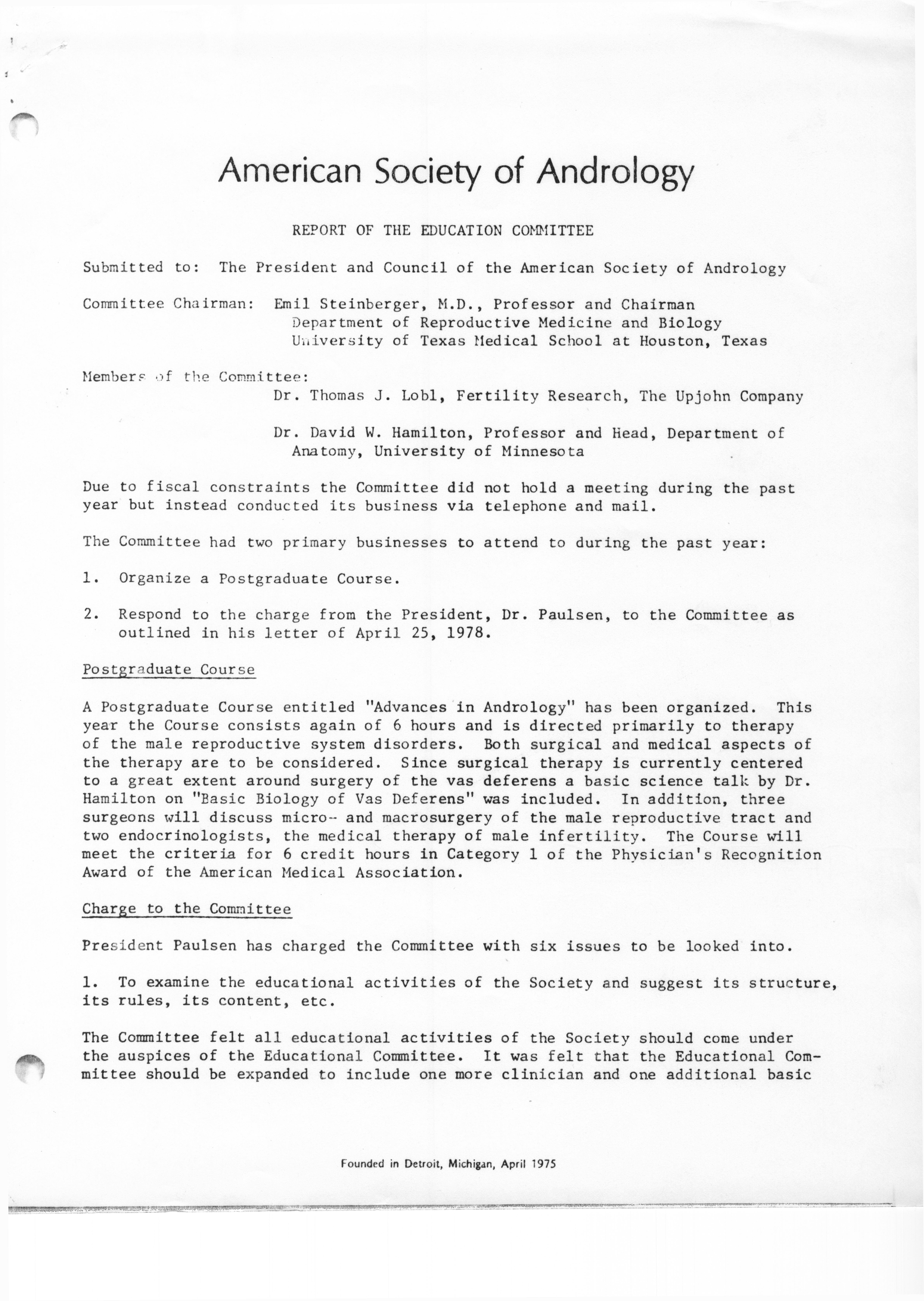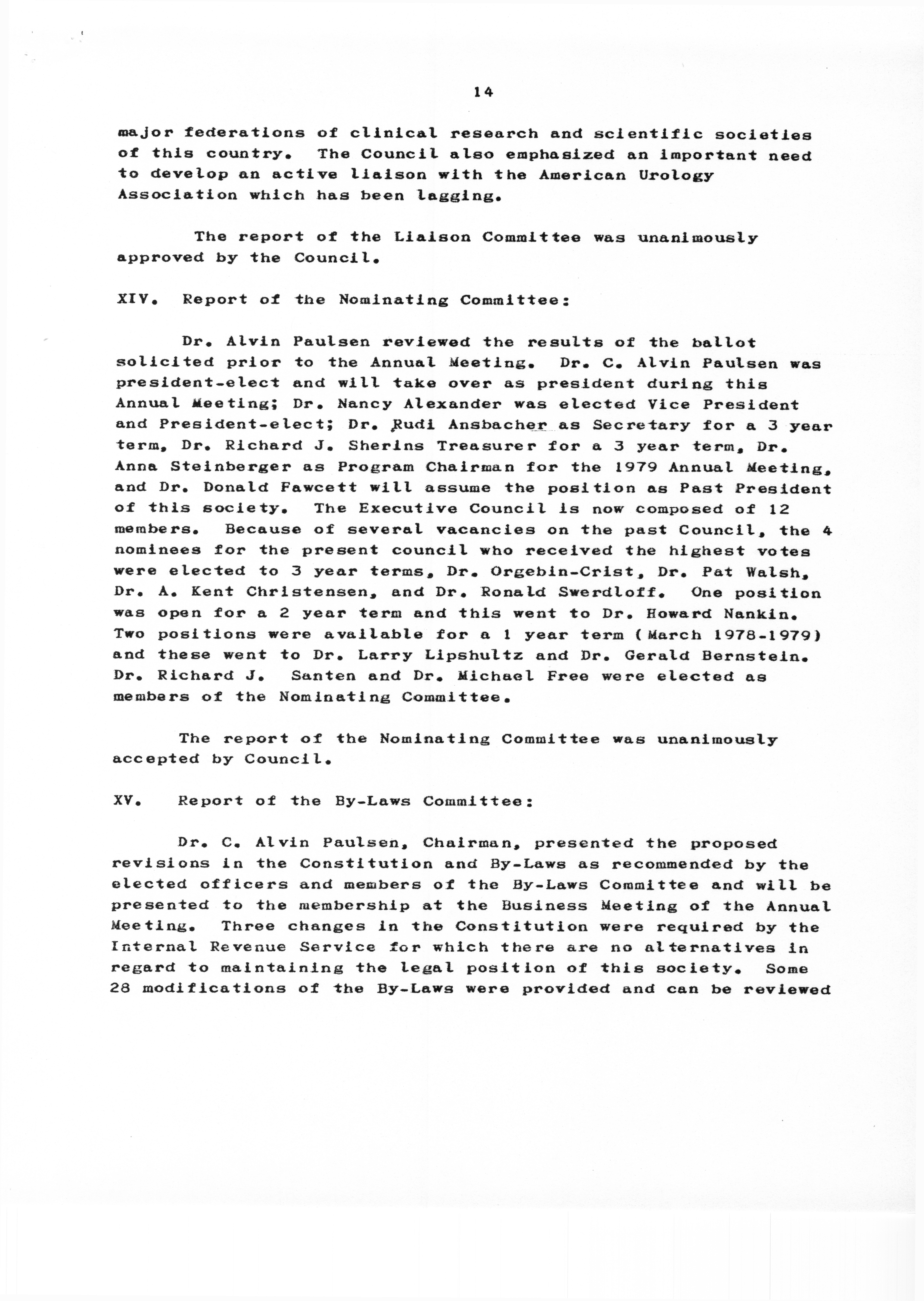 - "Executive Council Meetings of the American Society of Andrology, 1978", American Society of Andrology Collection, Iowa State University Library Digital Collections