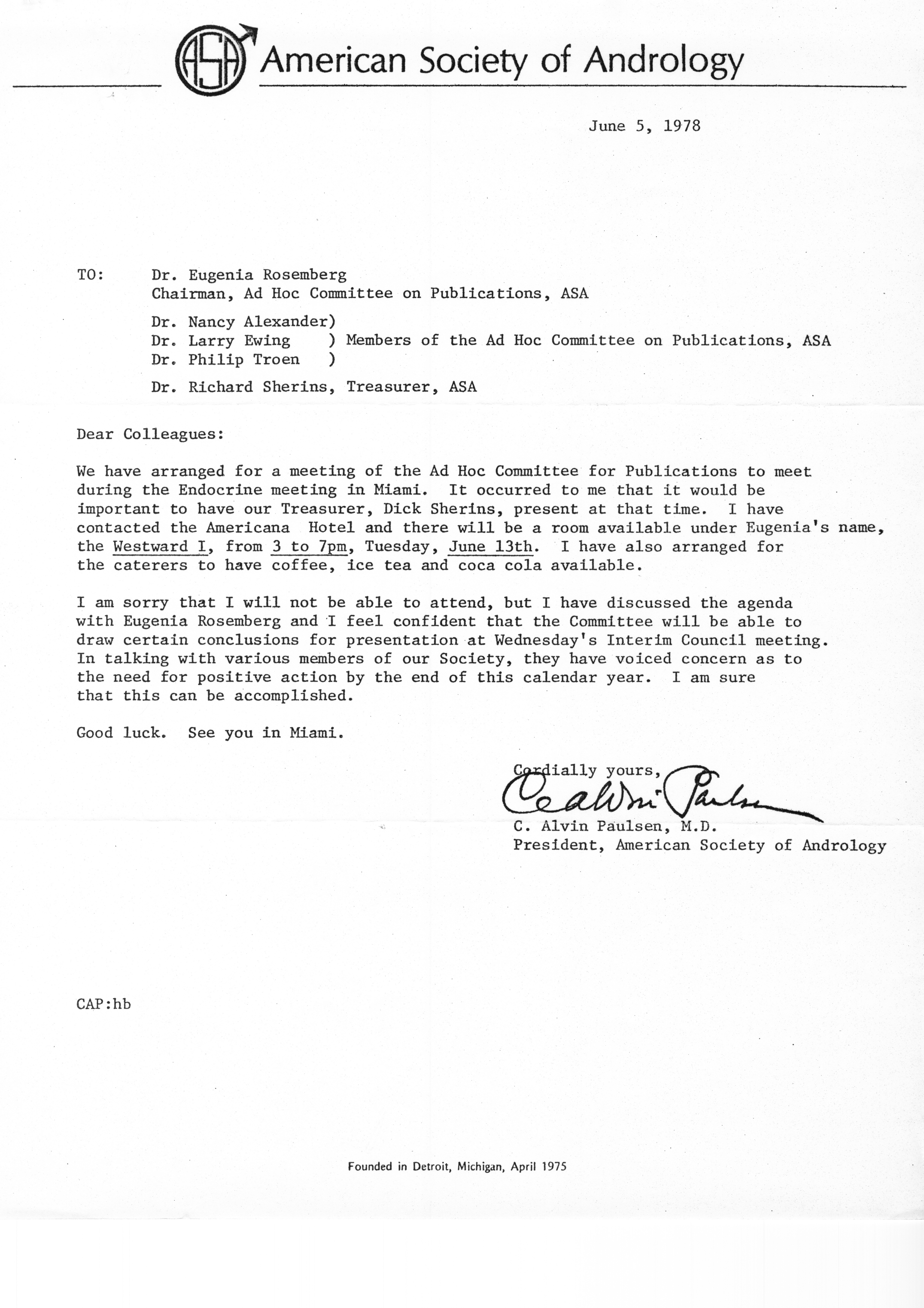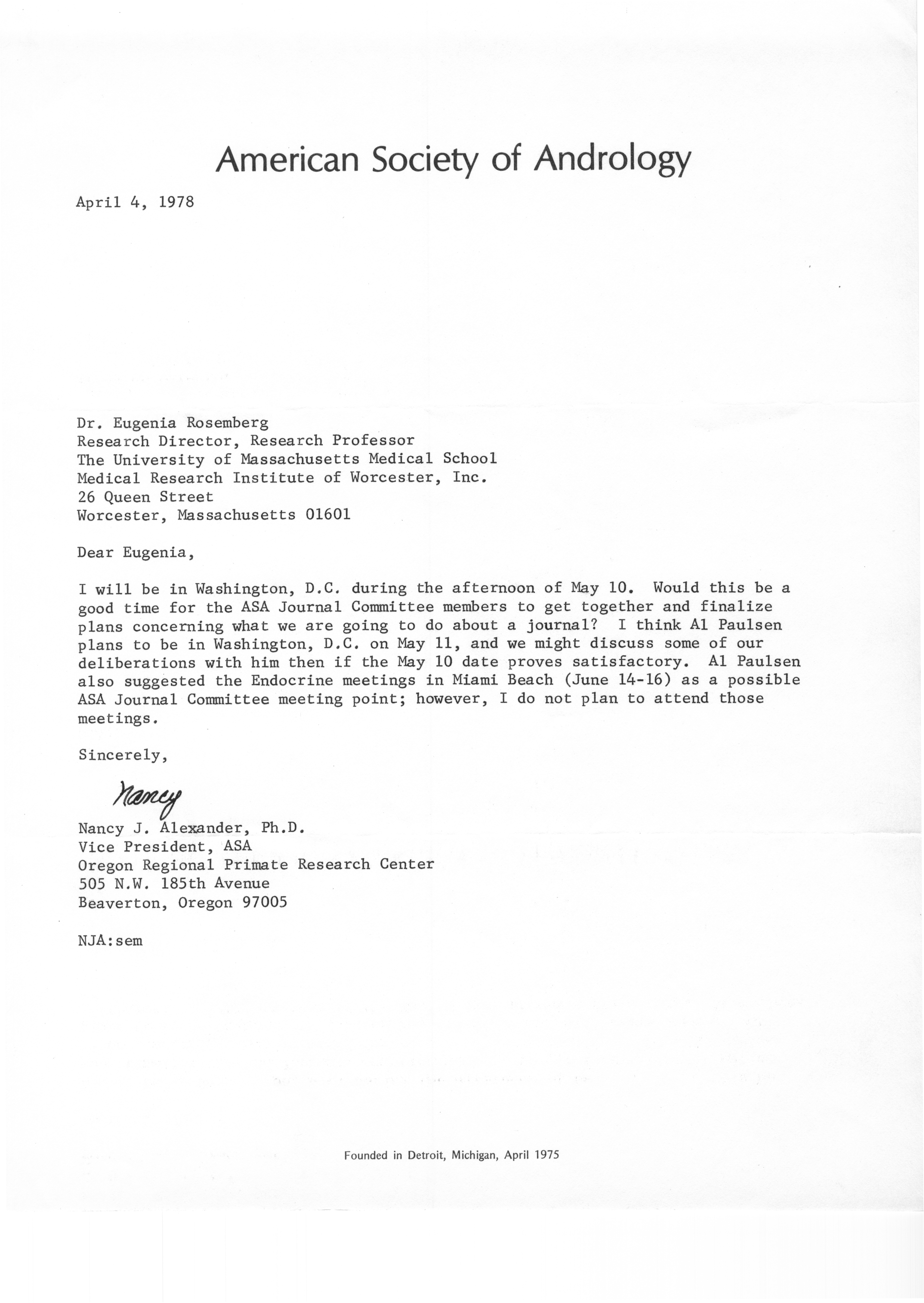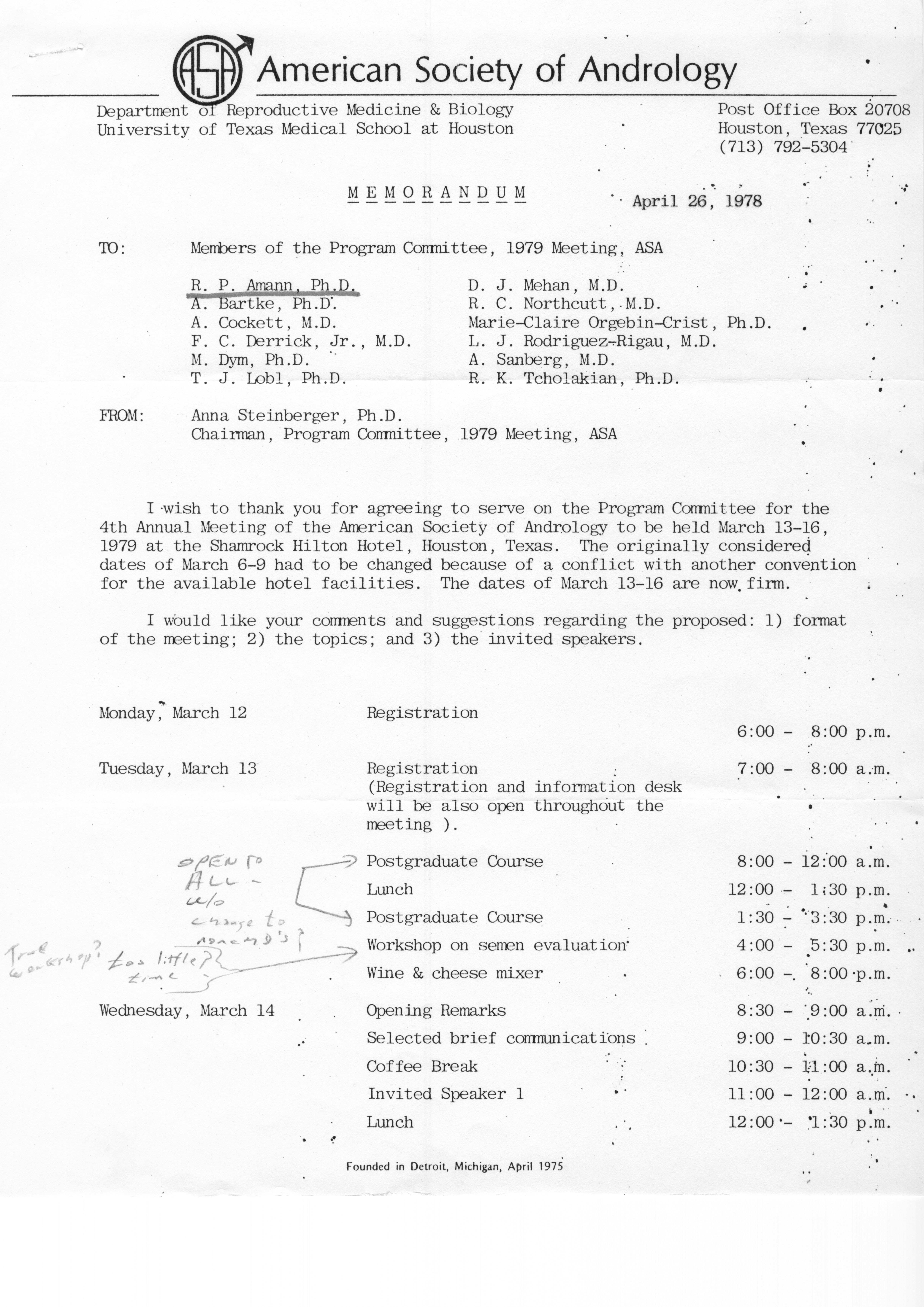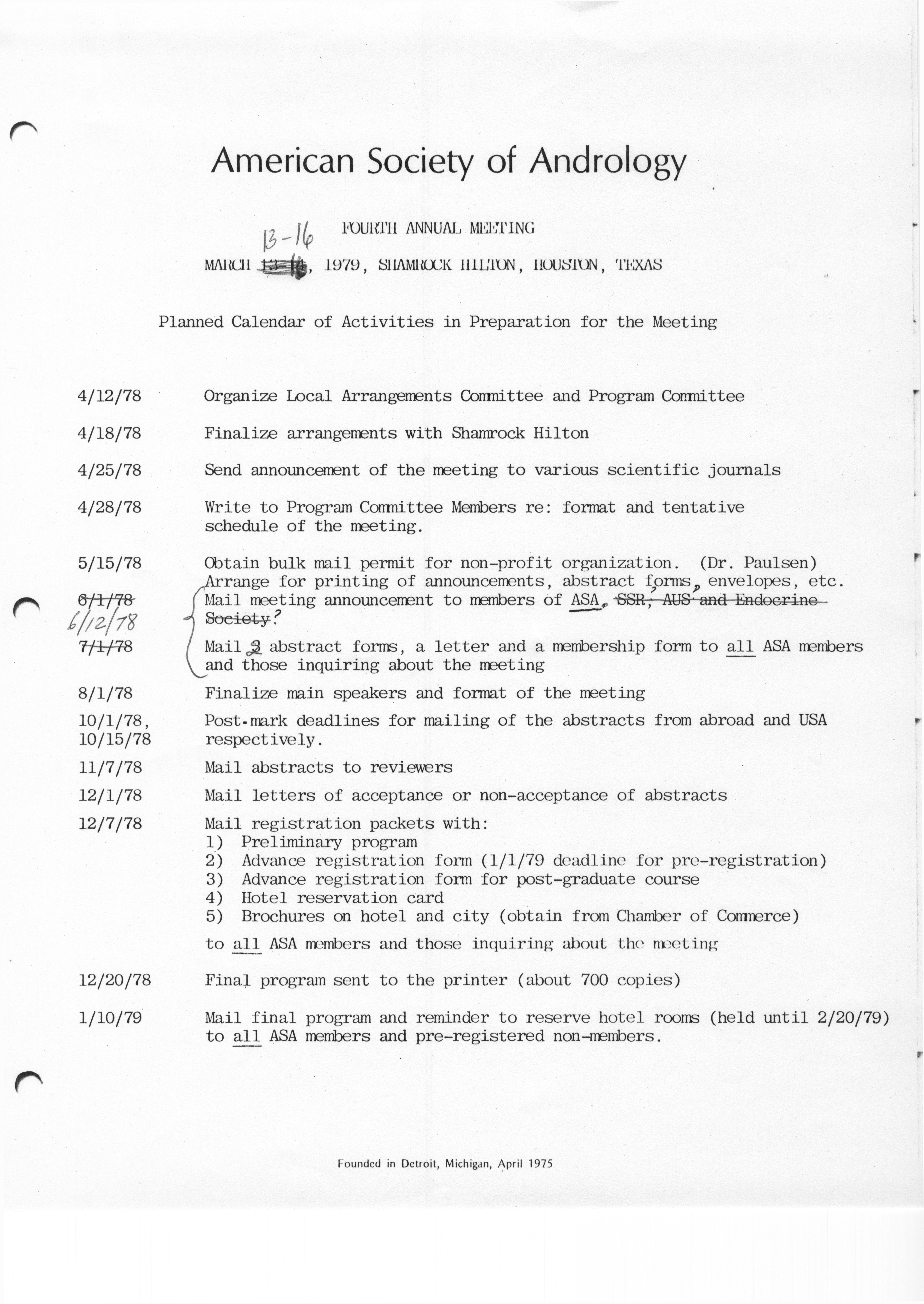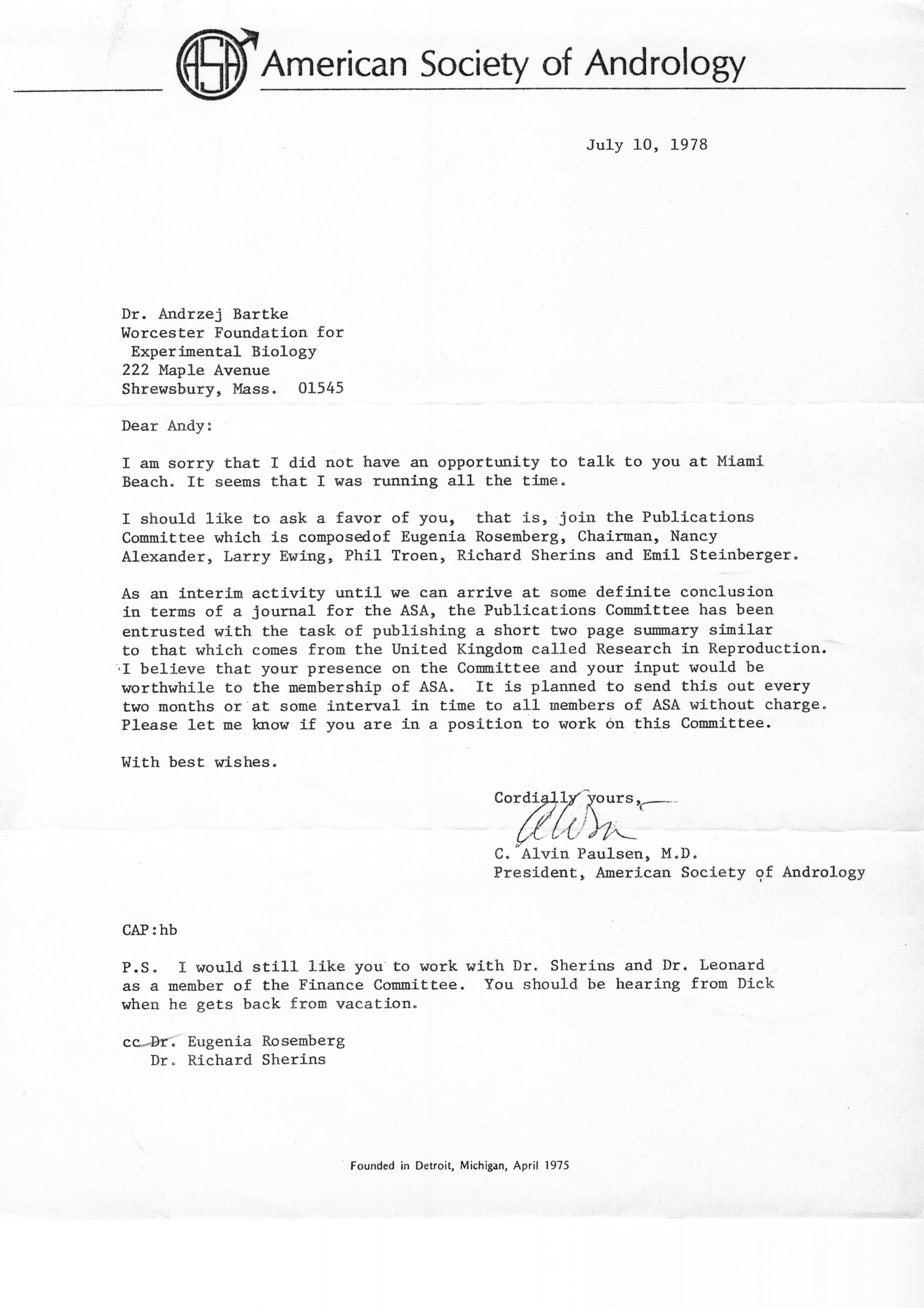 - "Executive Council Meetings of the American Society of Andrology, 1978", American Society of Andrology Collection, Iowa State University Library Digital Collections