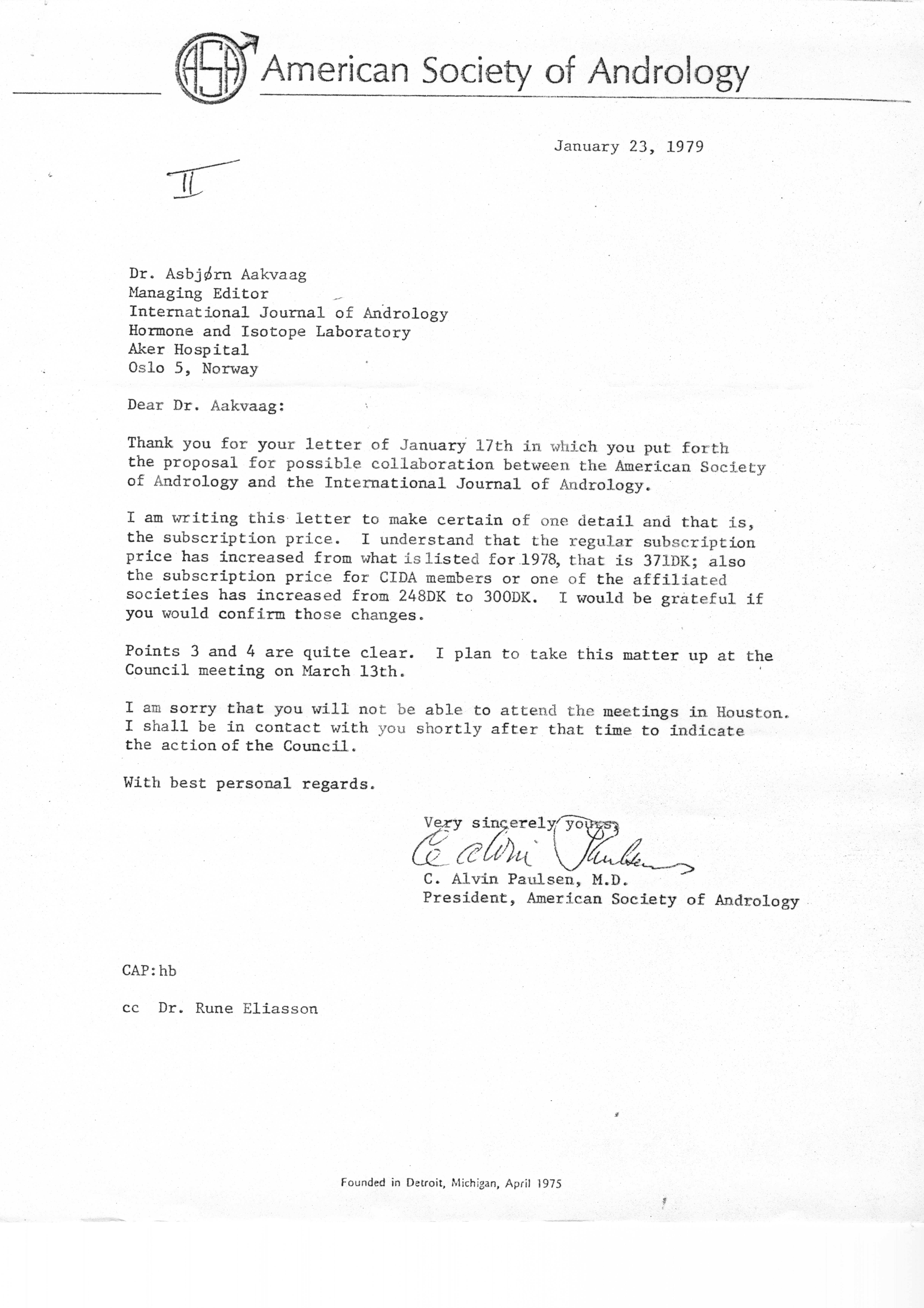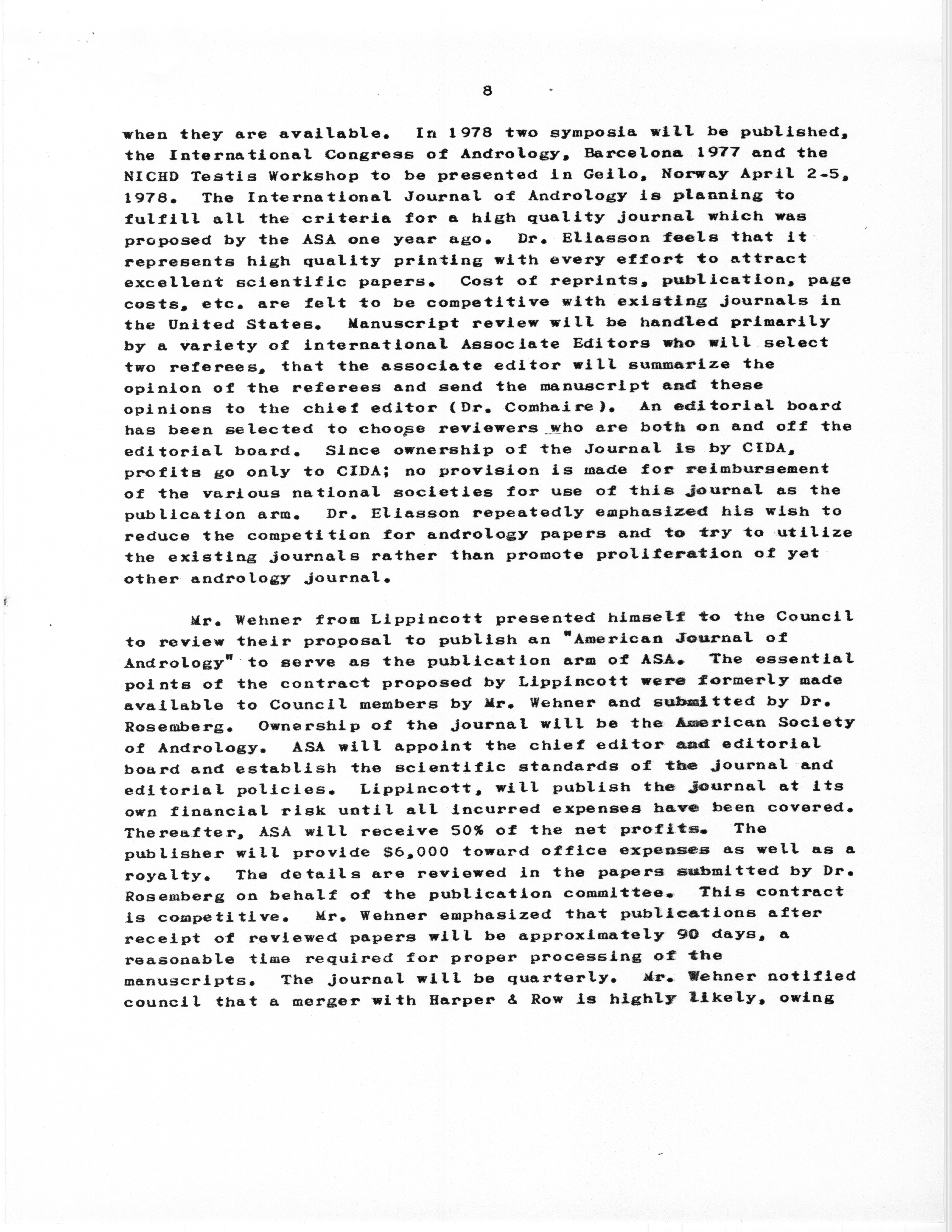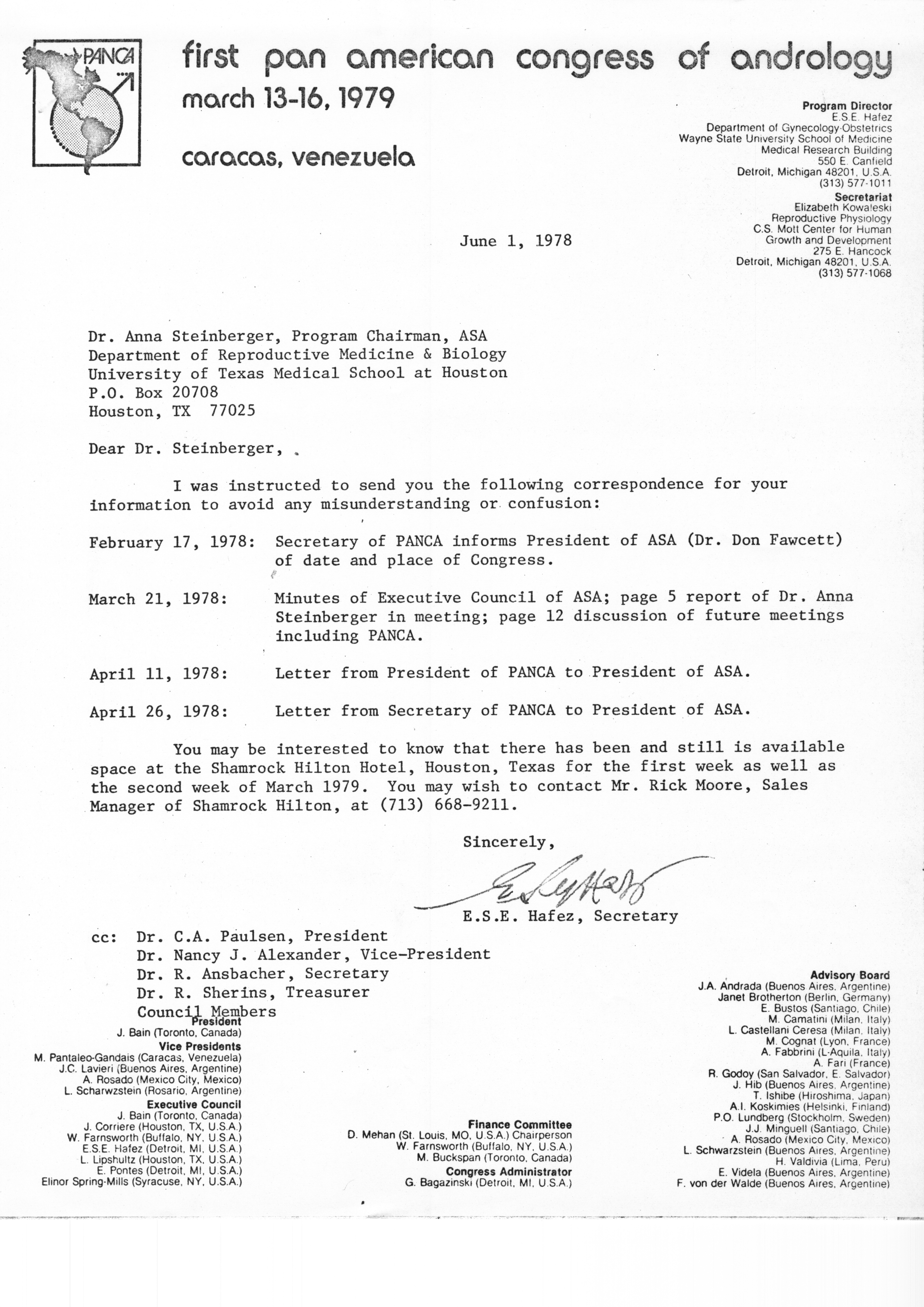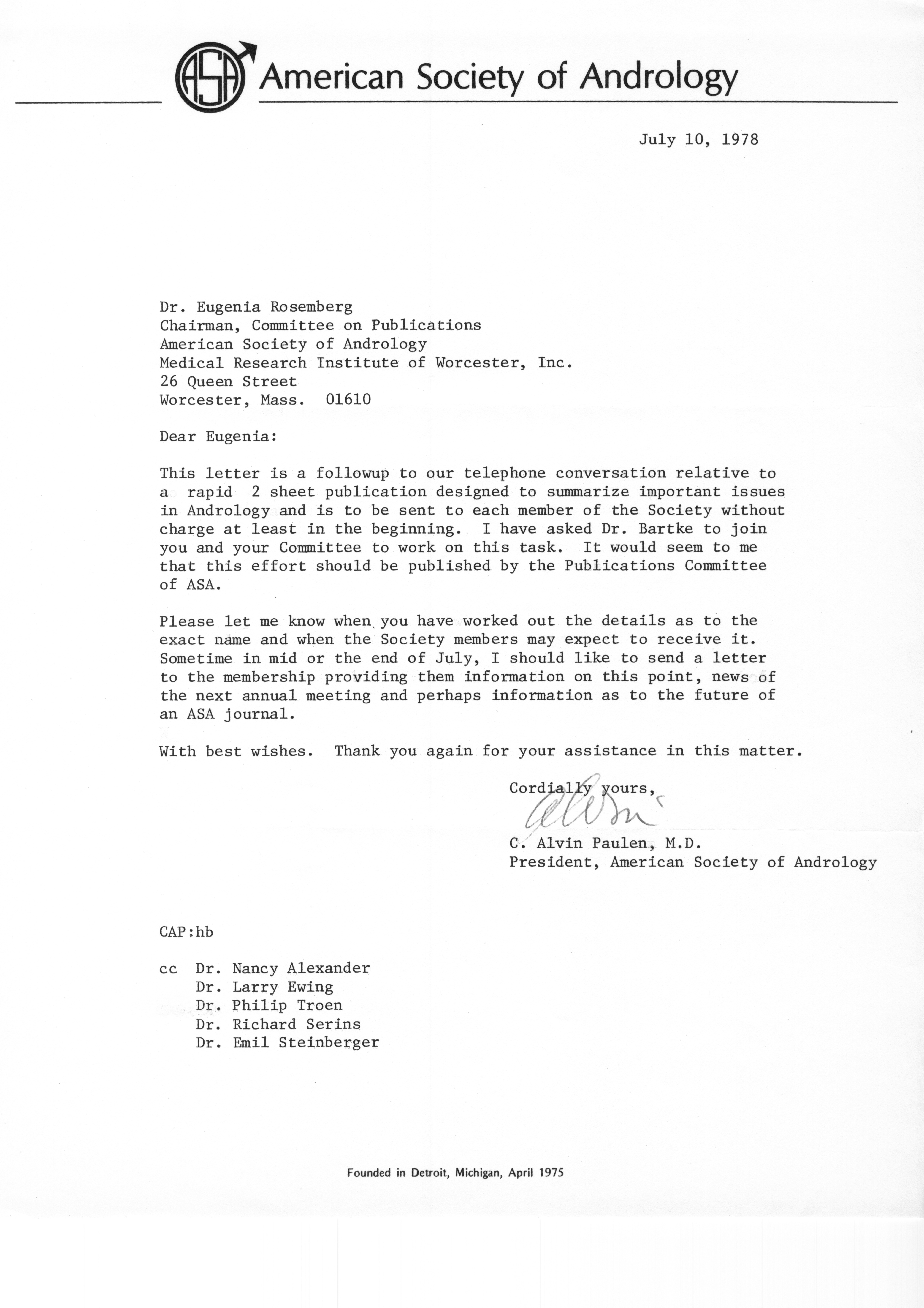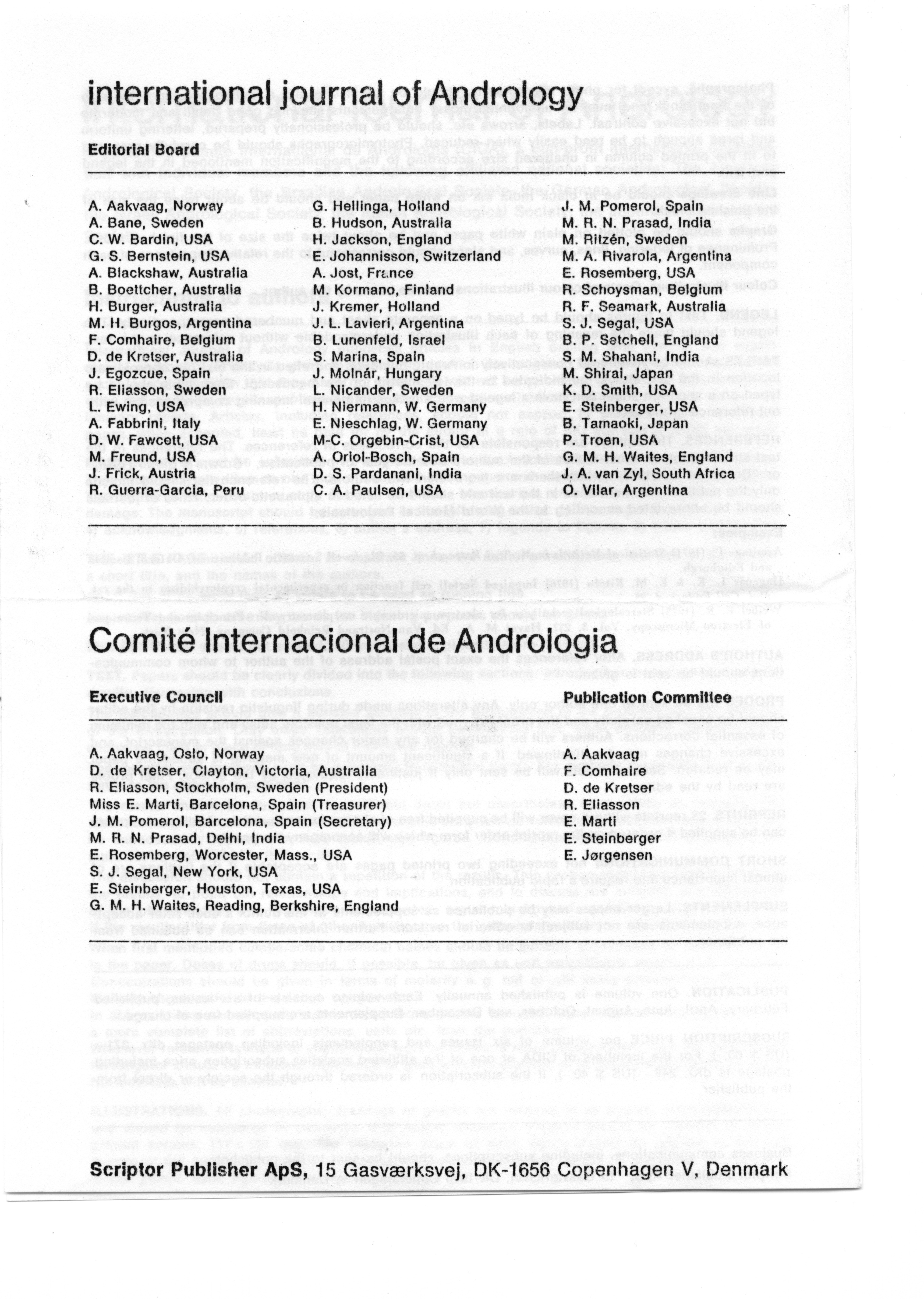 - "Executive Council Meetings of the American Society of Andrology, 1978", American Society of Andrology Collection, Iowa State University Library Digital Collections