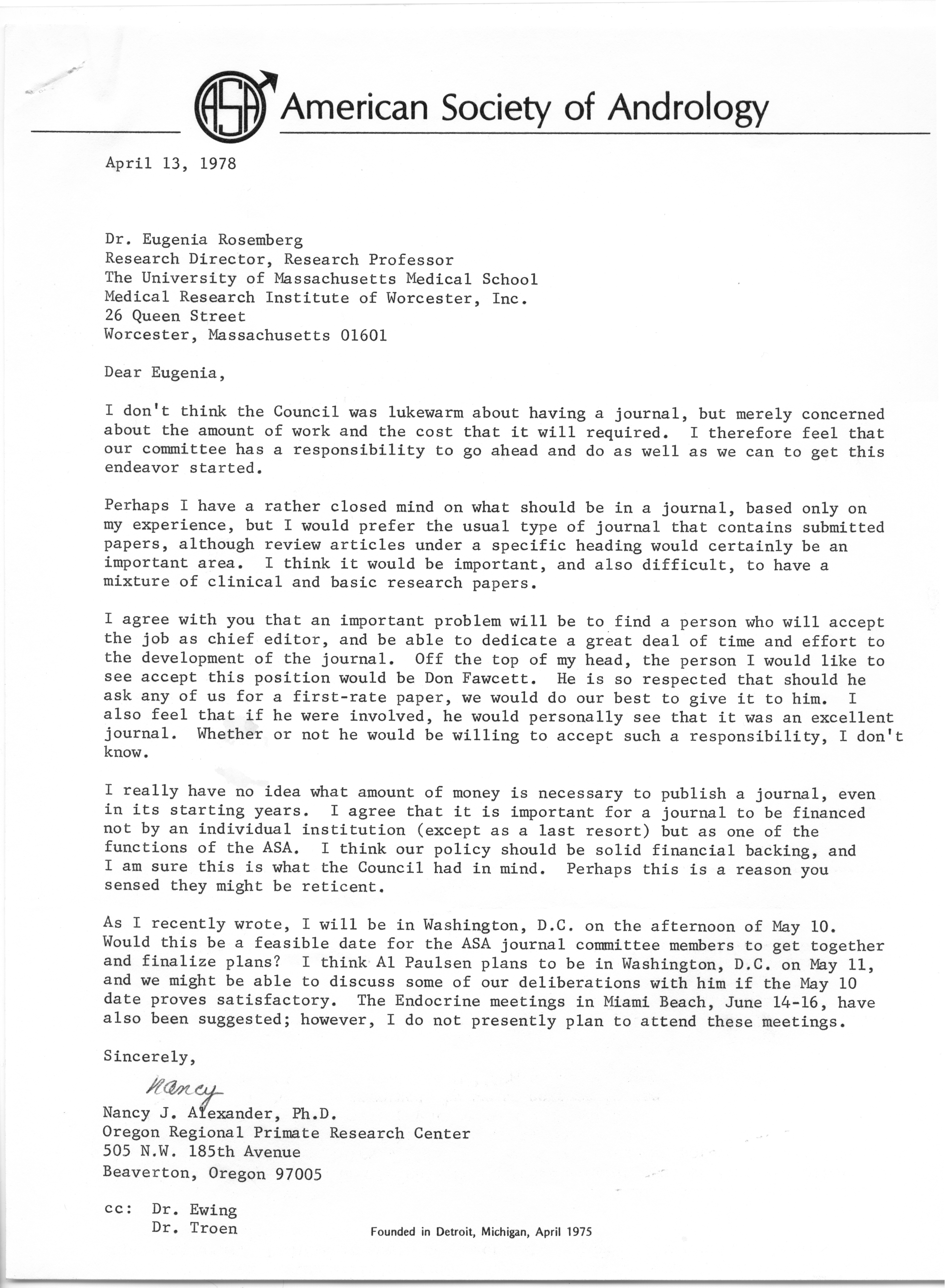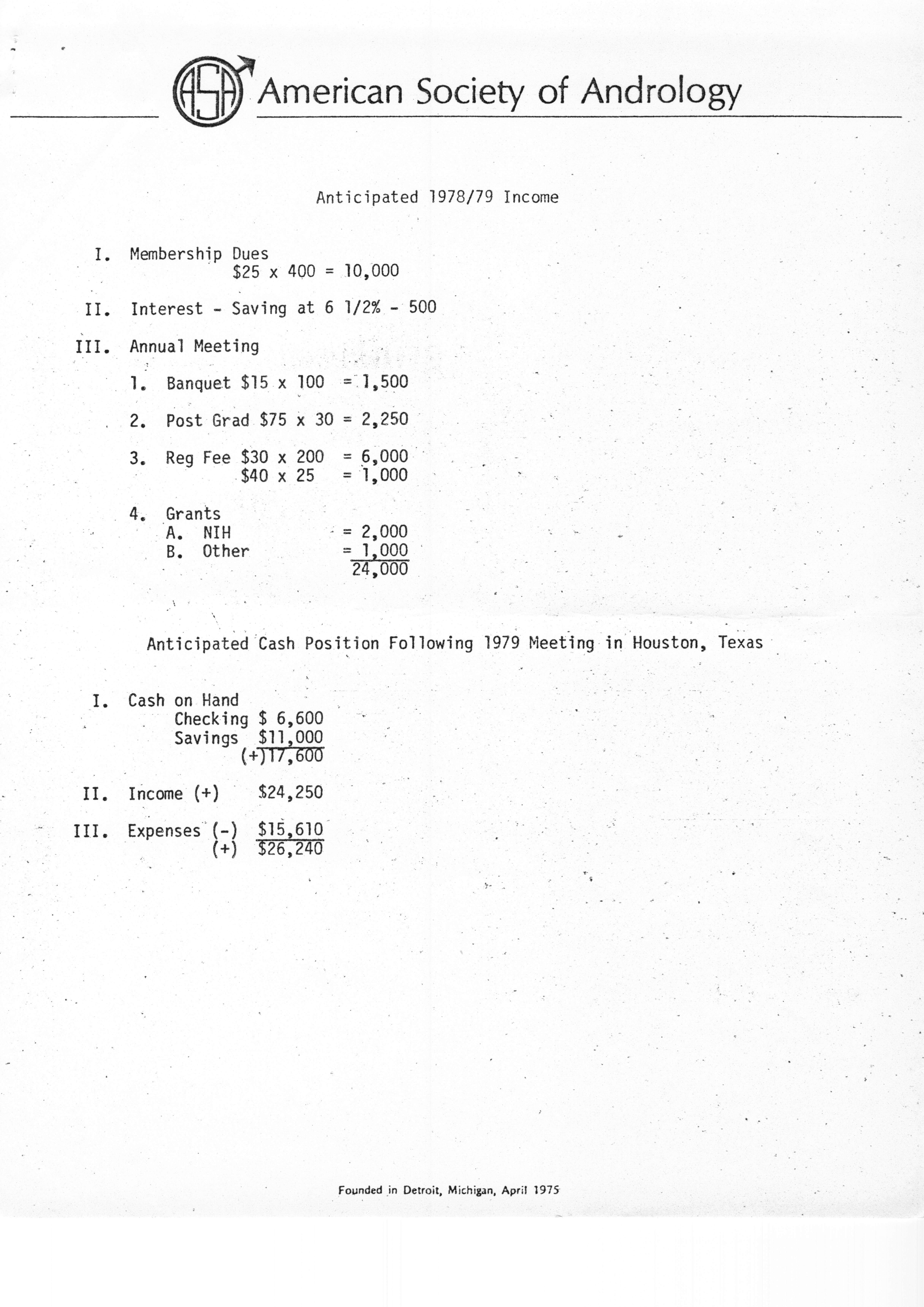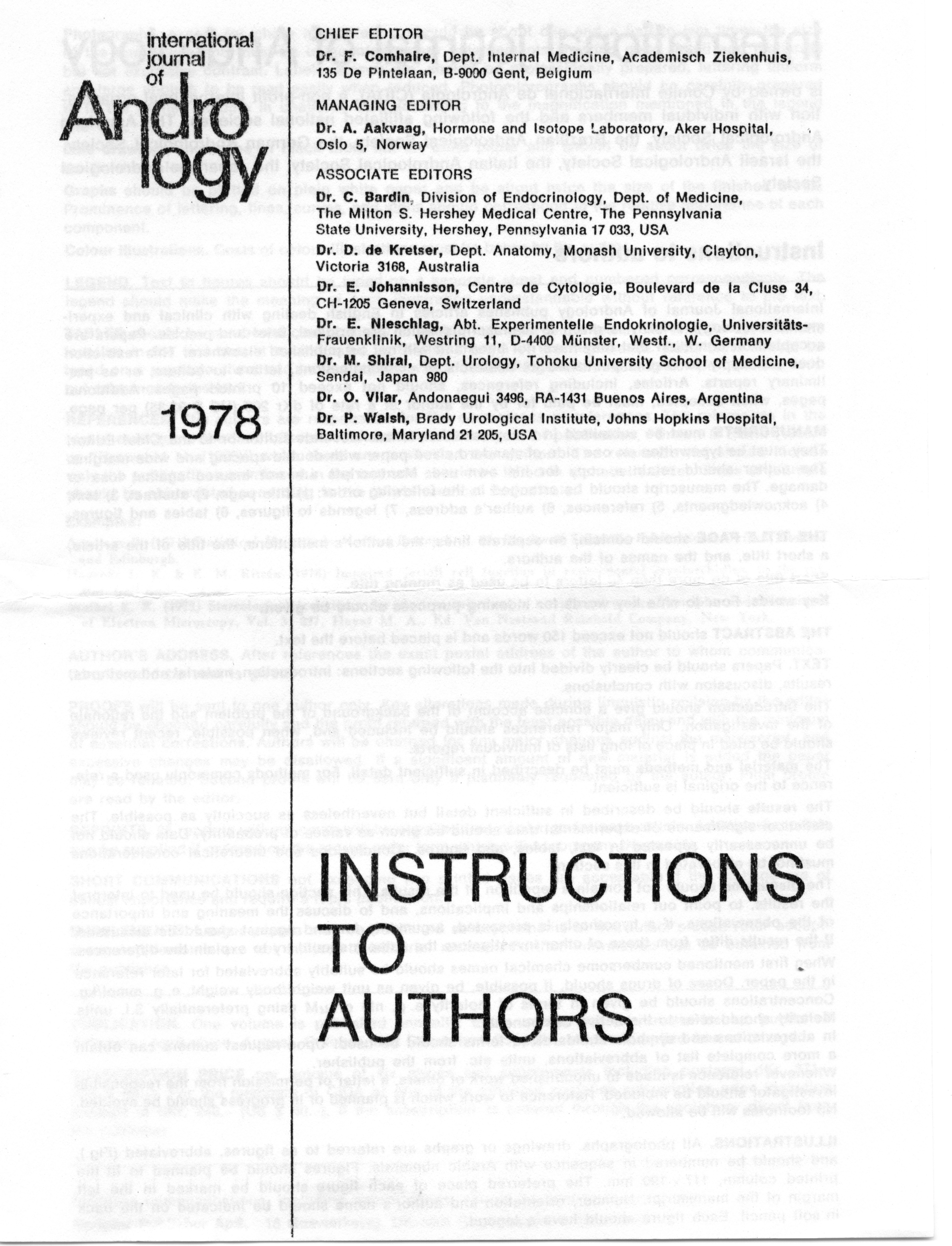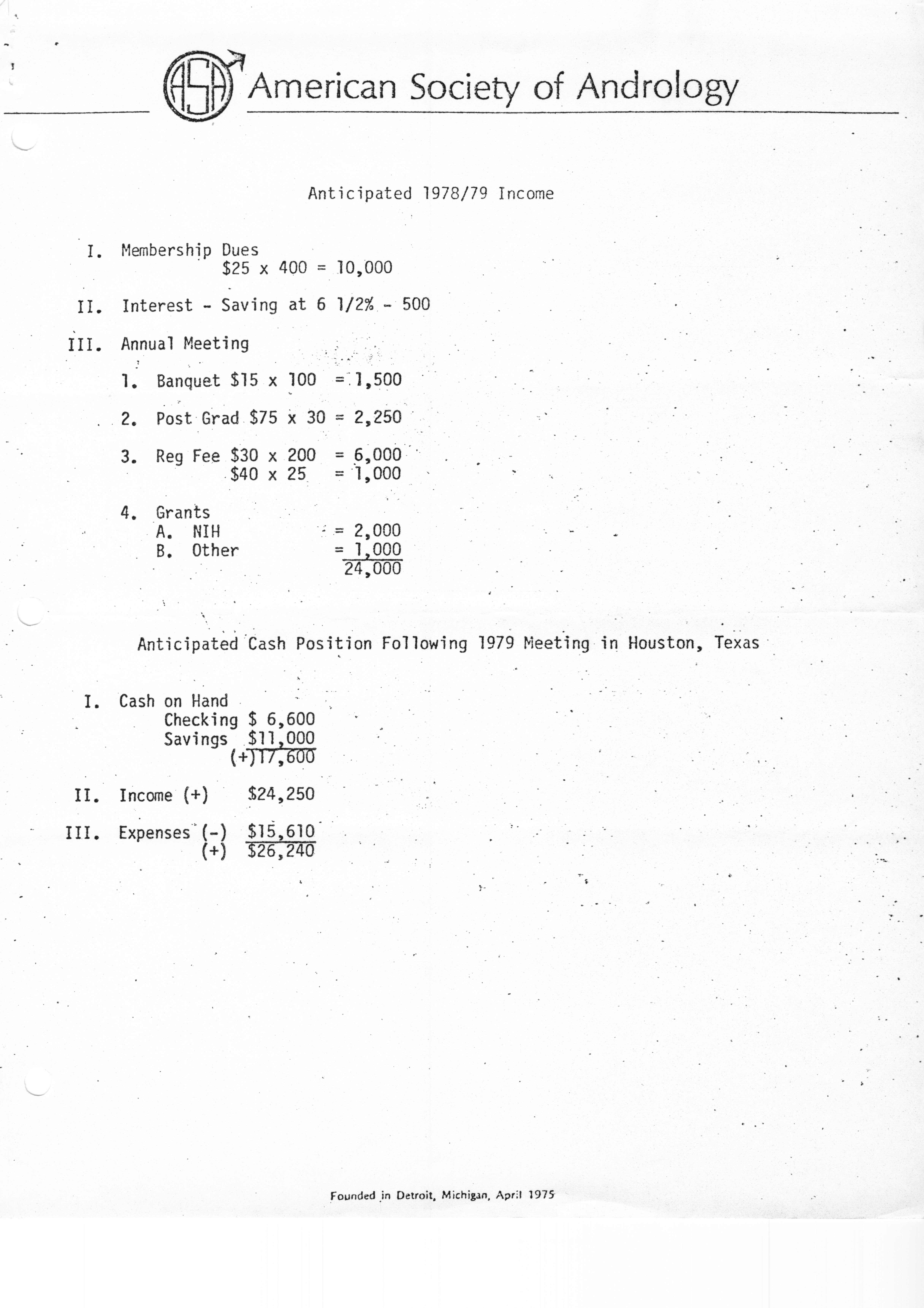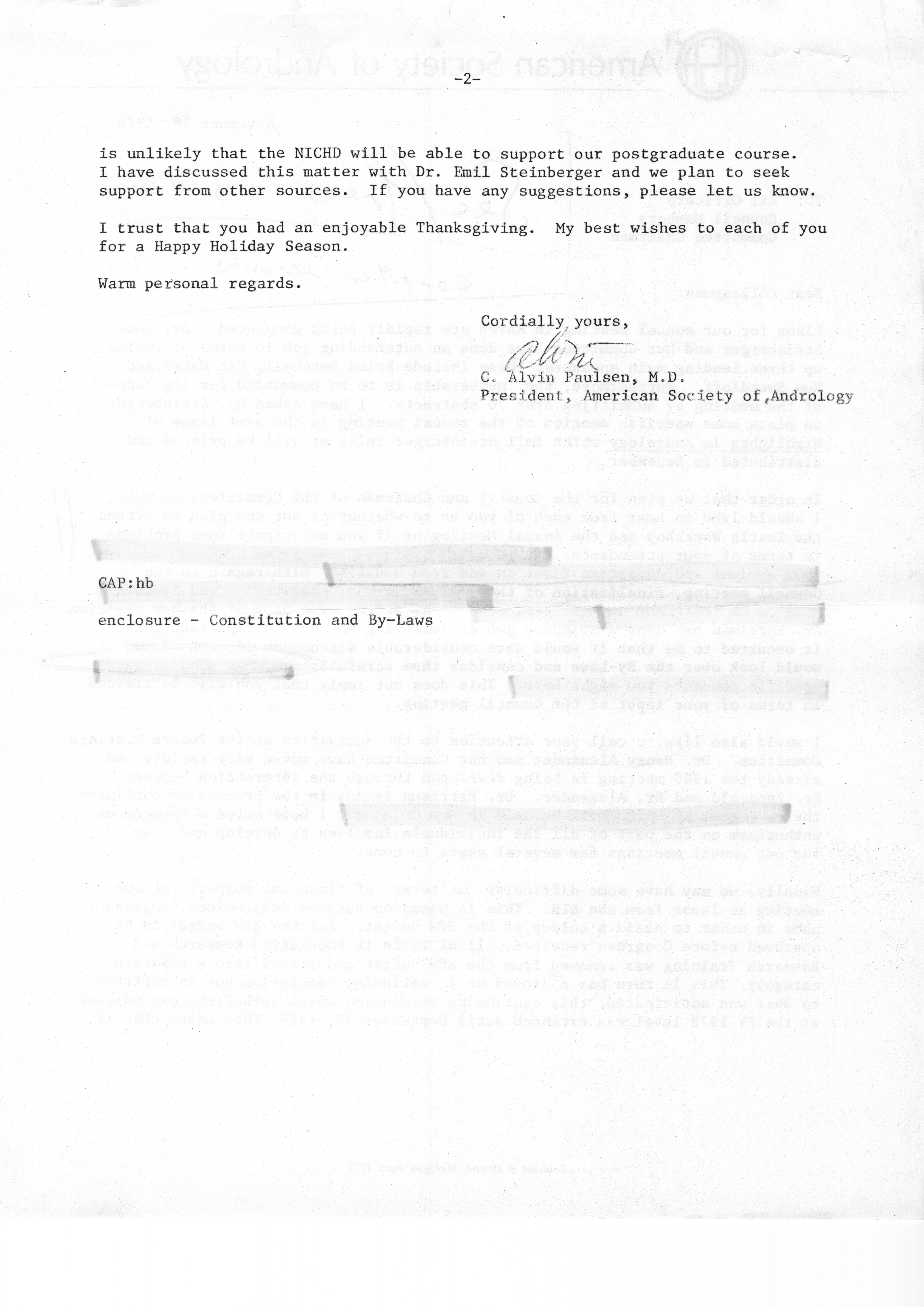 - "Executive Council Meetings of the American Society of Andrology, 1978", American Society of Andrology Collection, Iowa State University Library Digital Collections