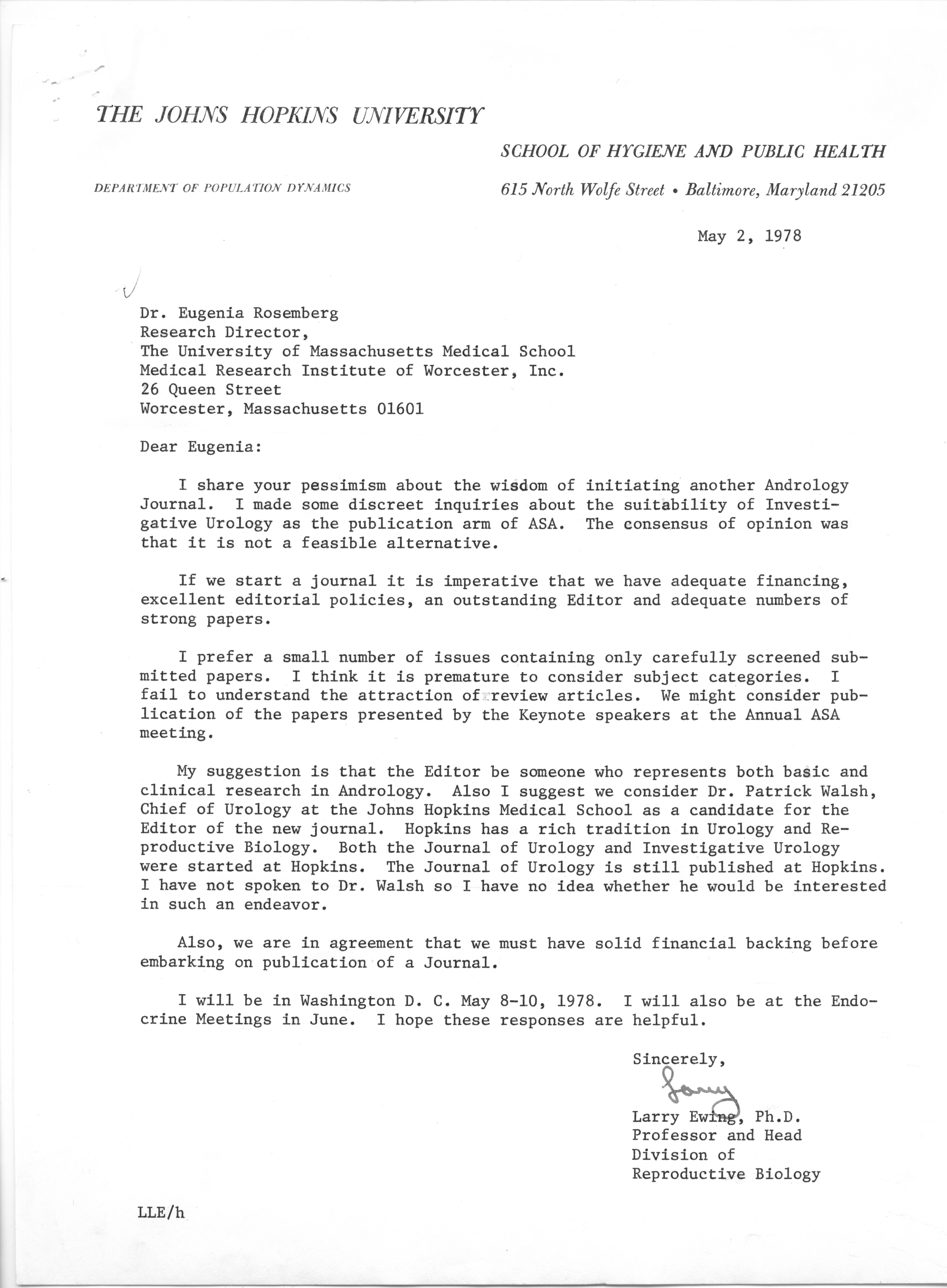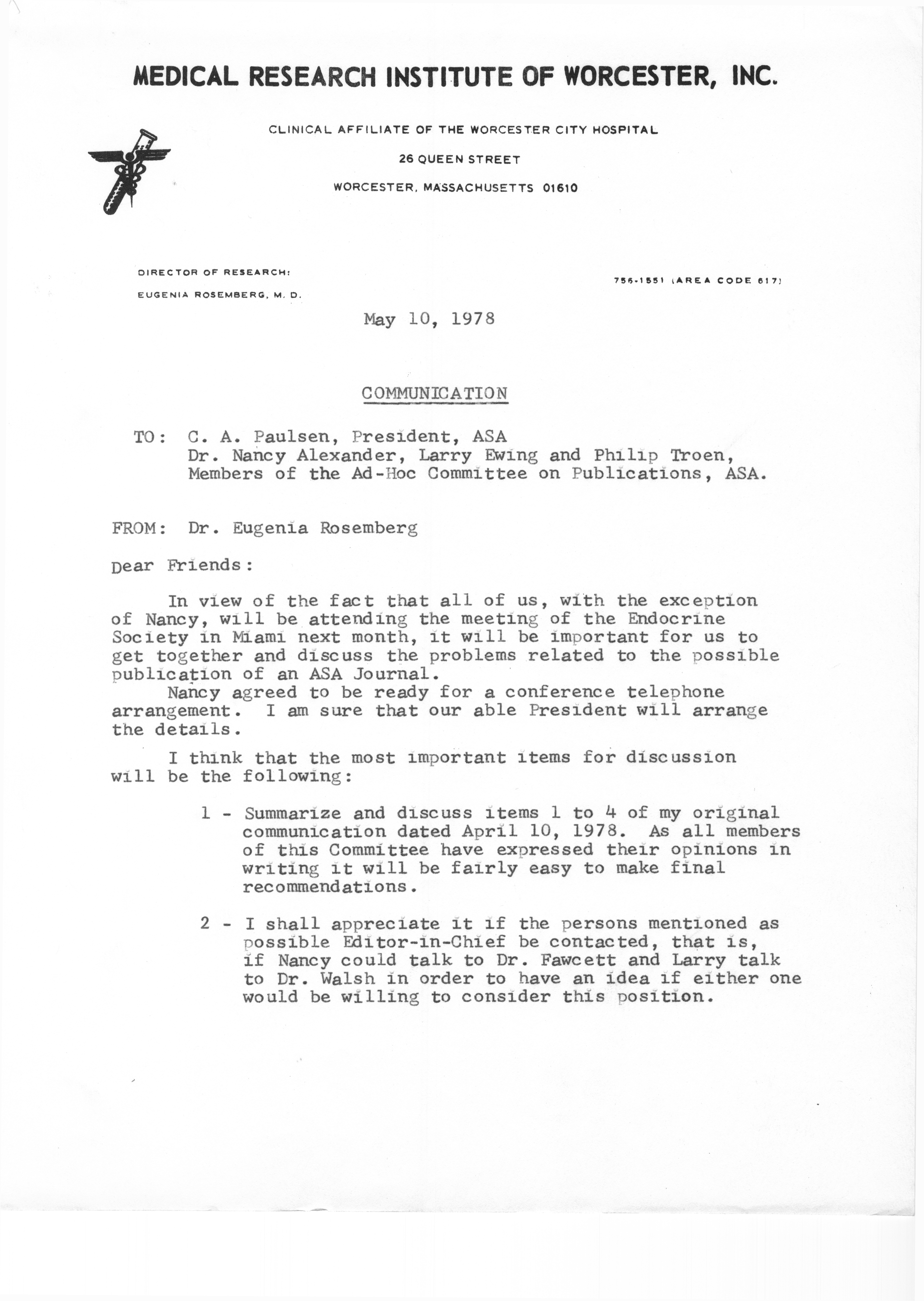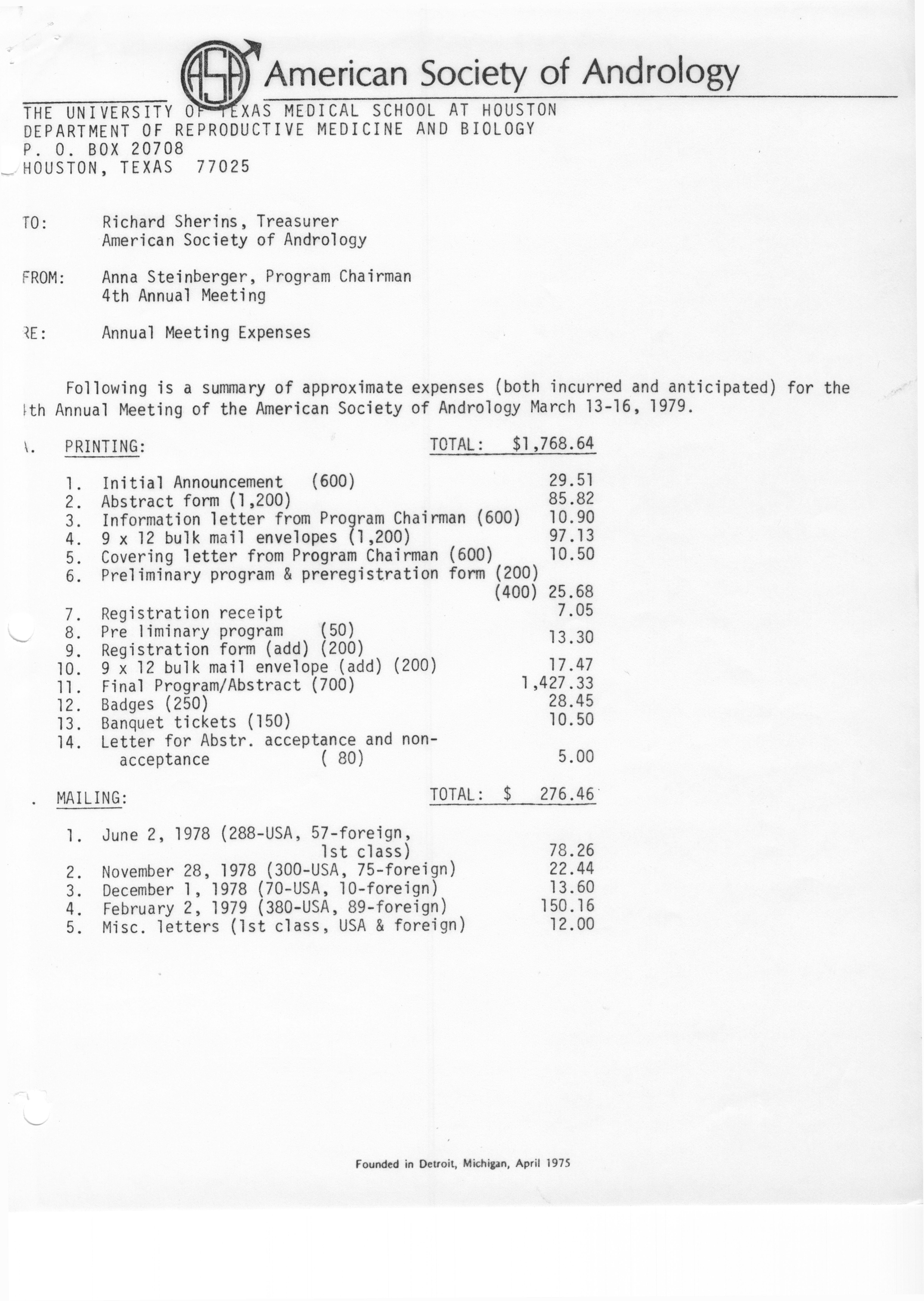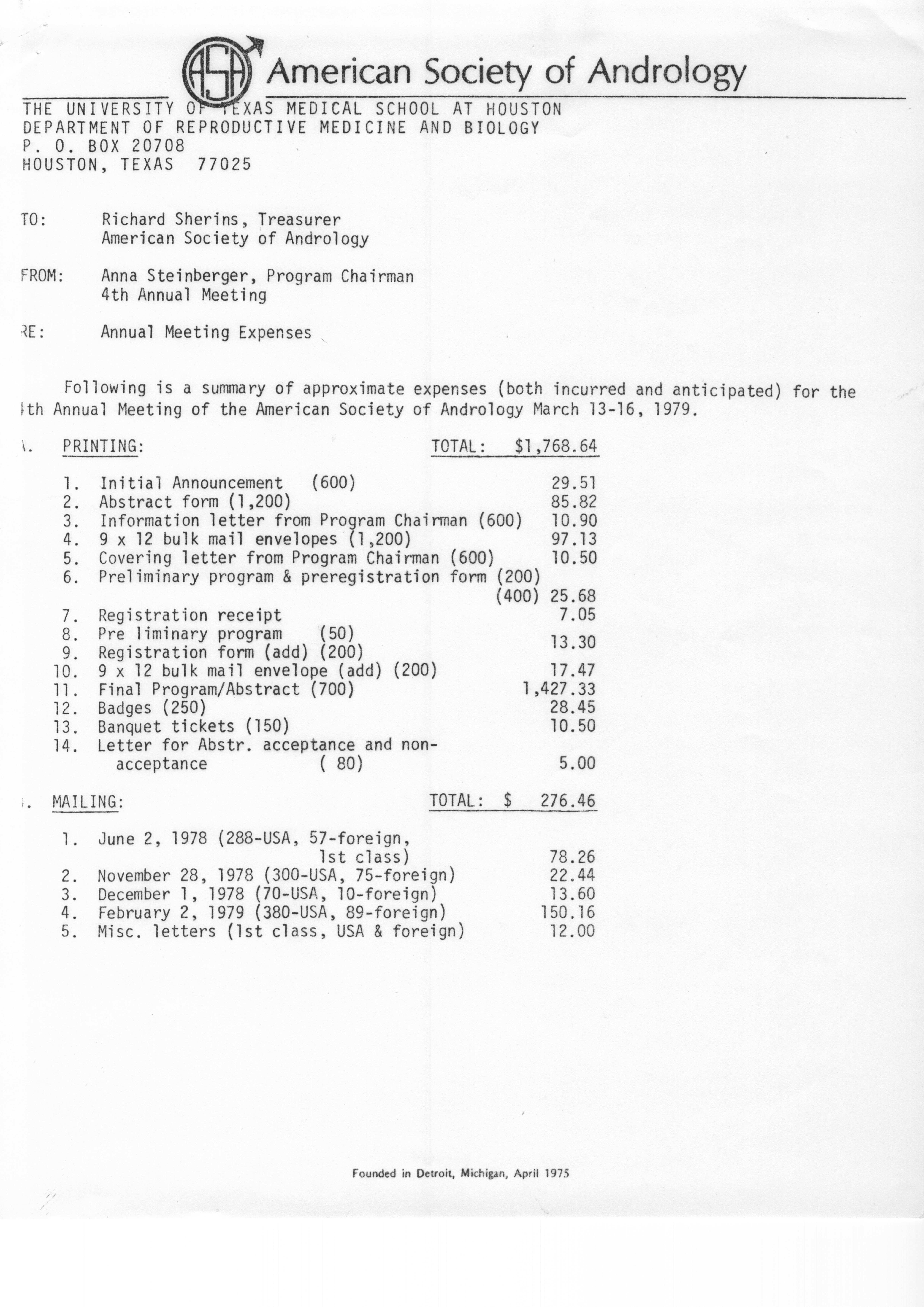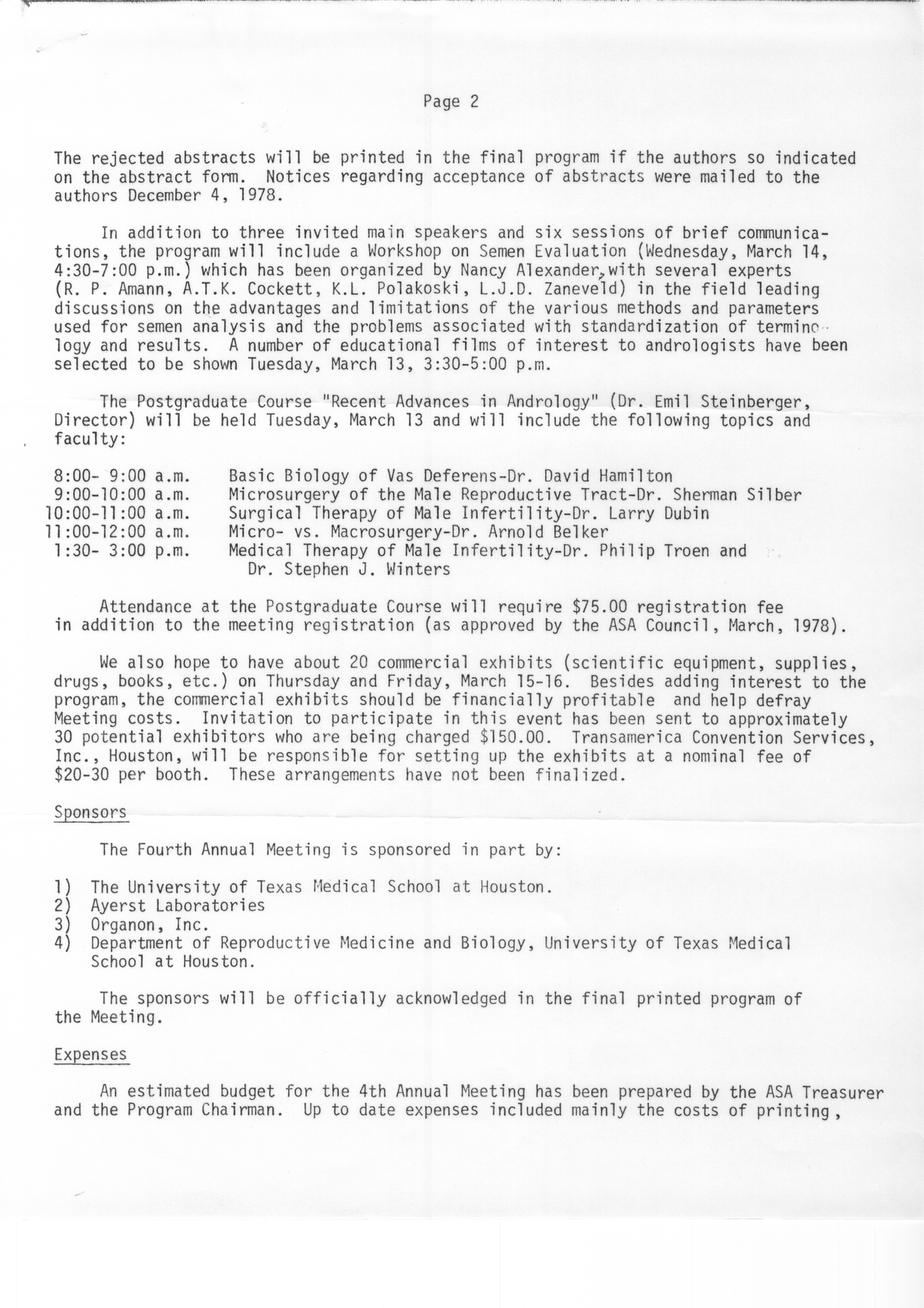 - "Executive Council Meetings of the American Society of Andrology, 1978", American Society of Andrology Collection, Iowa State University Library Digital Collections