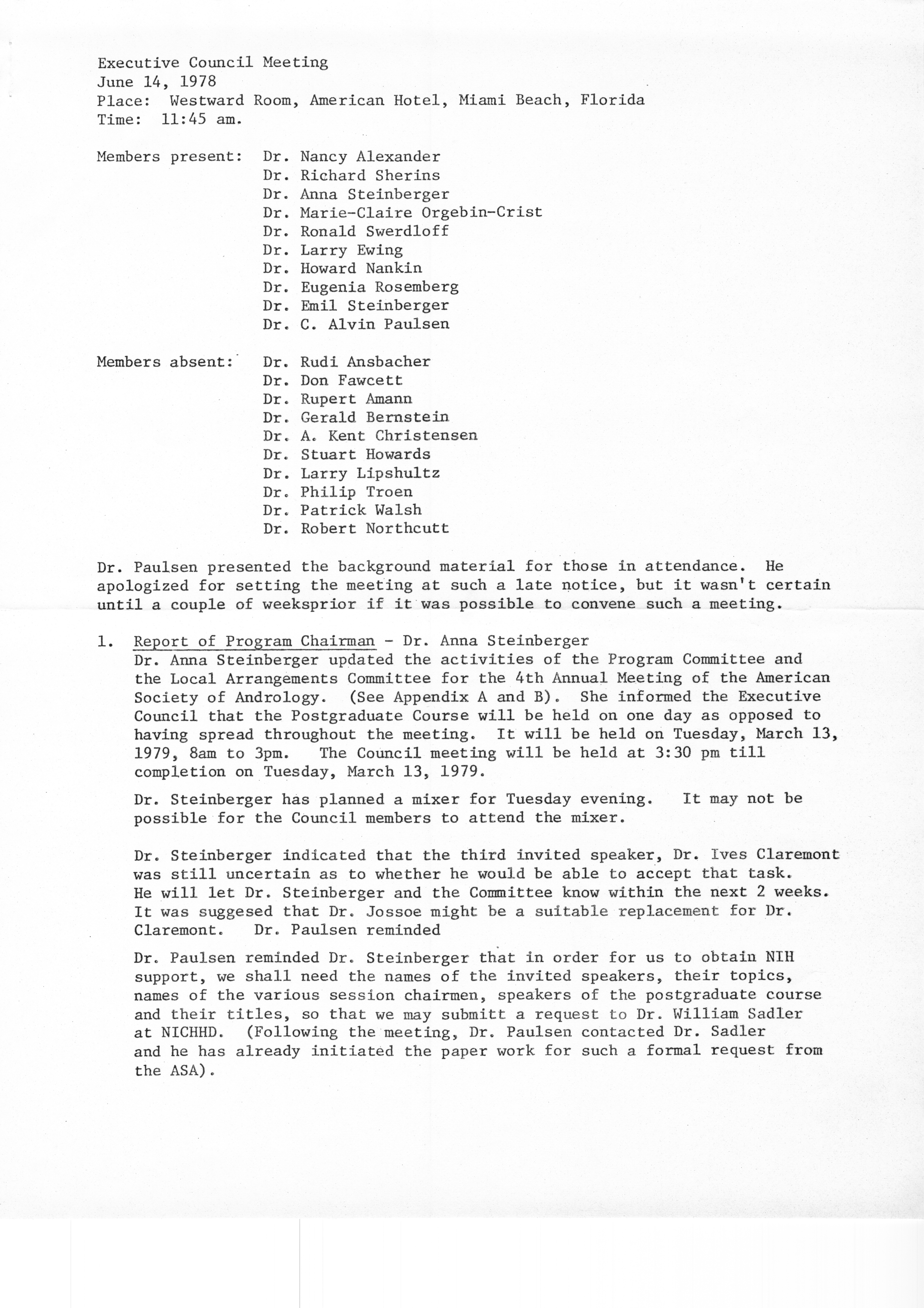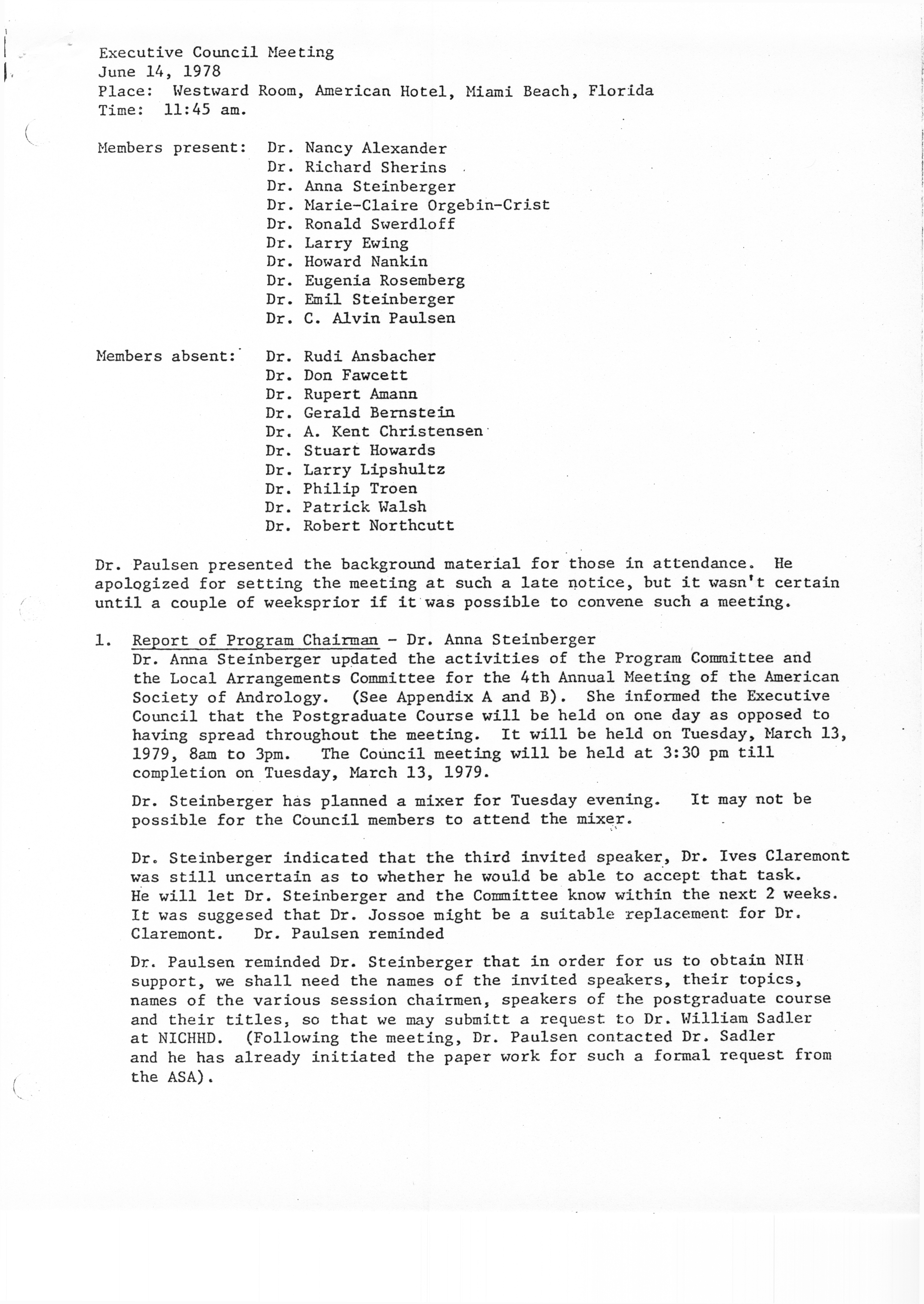 - Executive Council Meetings of the American Society of Andrology, 1978